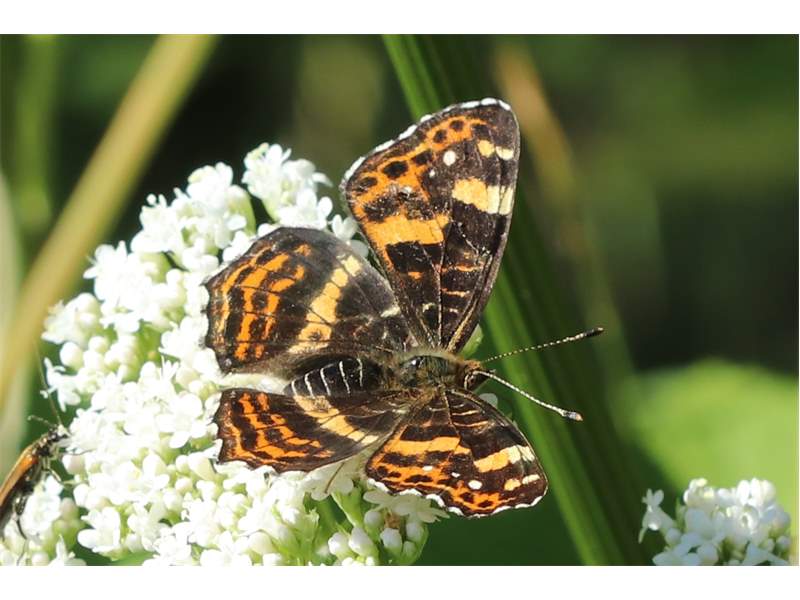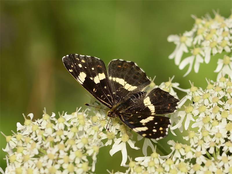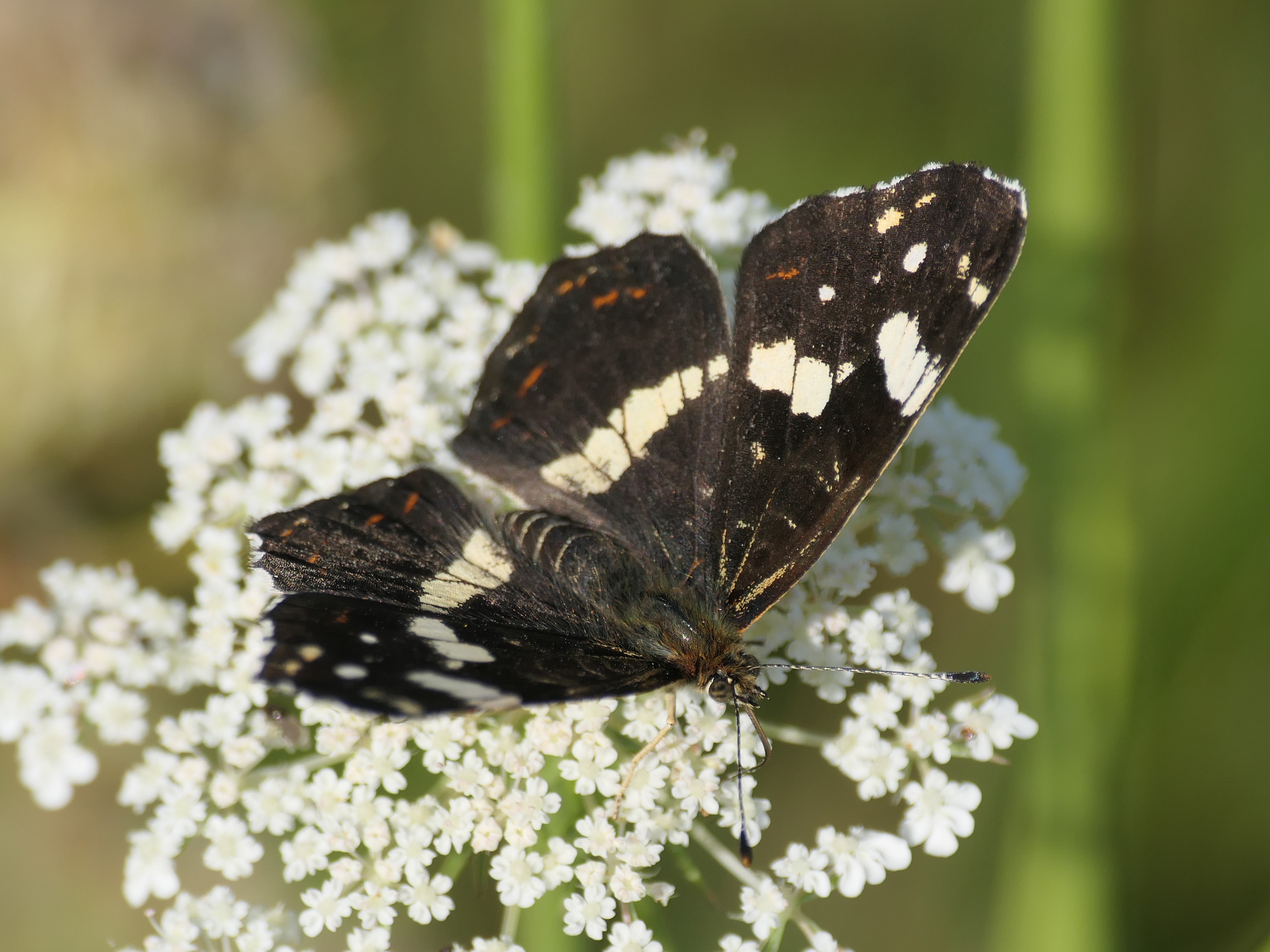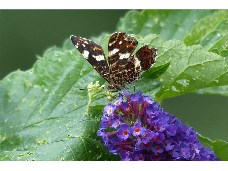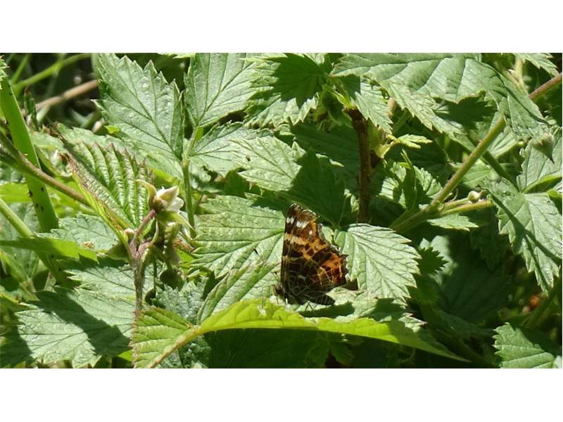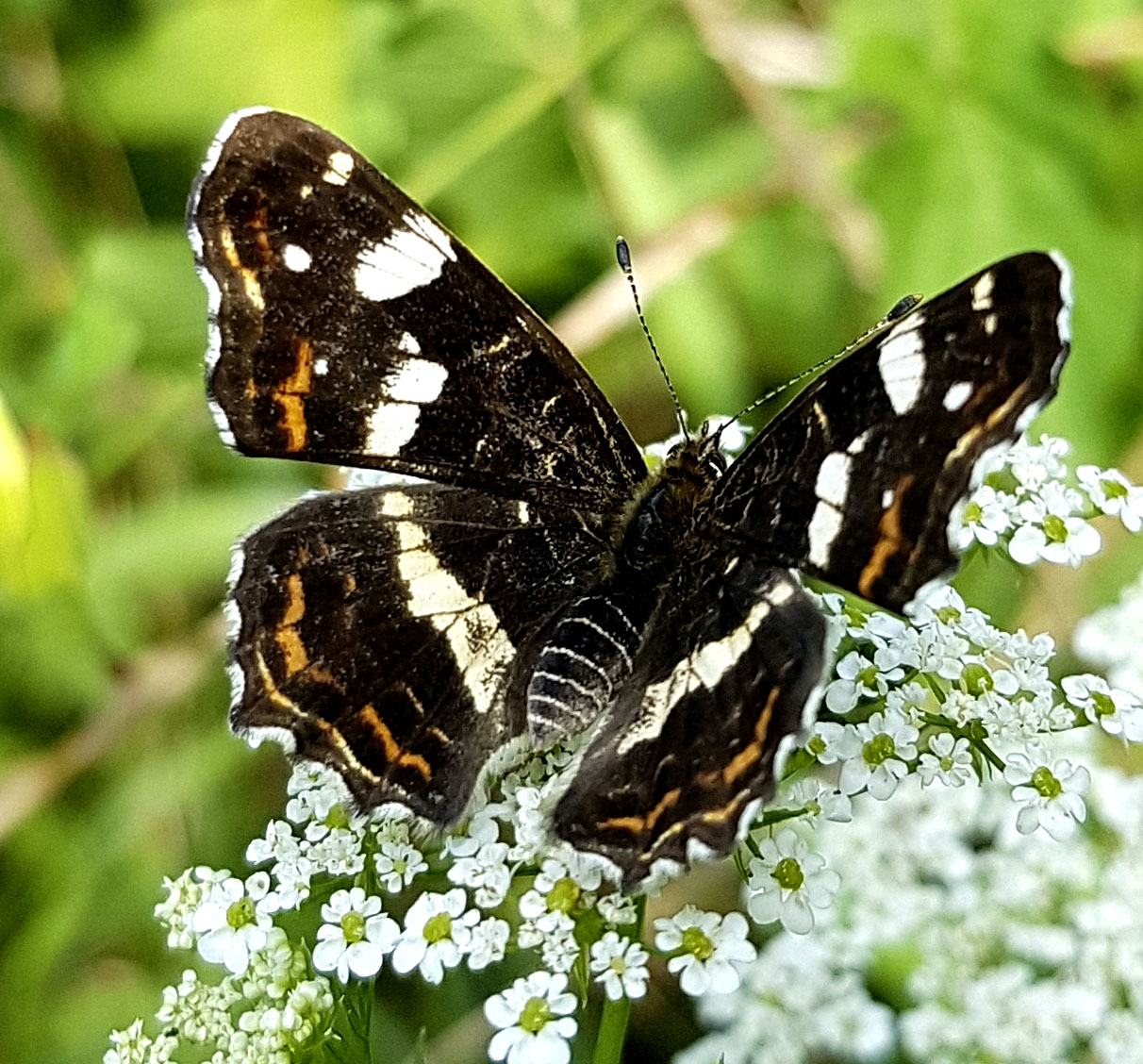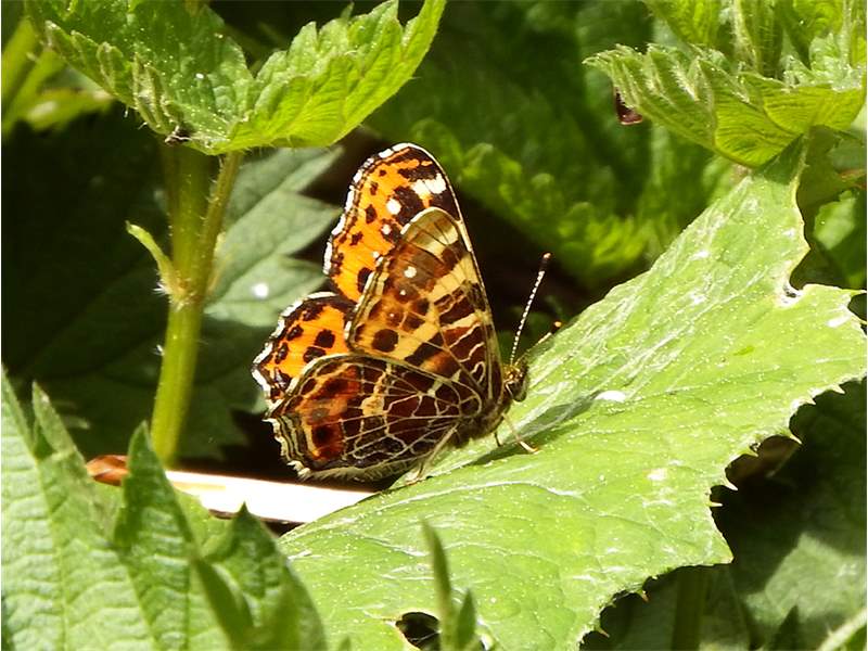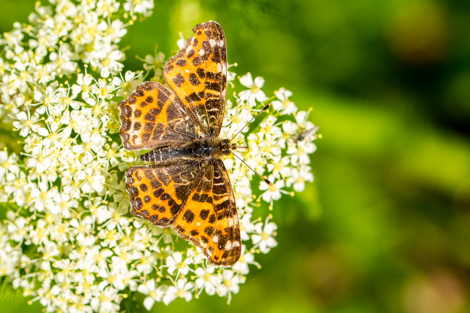 Landkärtchen, Sommergeneration der Schmetterlingsart auf Nektarspender Doldenblüte fotografiert, Falteroberseite im Sichtfeld, Ende Juni 2022, Auwald bei 06254 Horburg-Masslau (Sachsen-Anhalt) (© Heinz Sass)( Bild vergrößern)