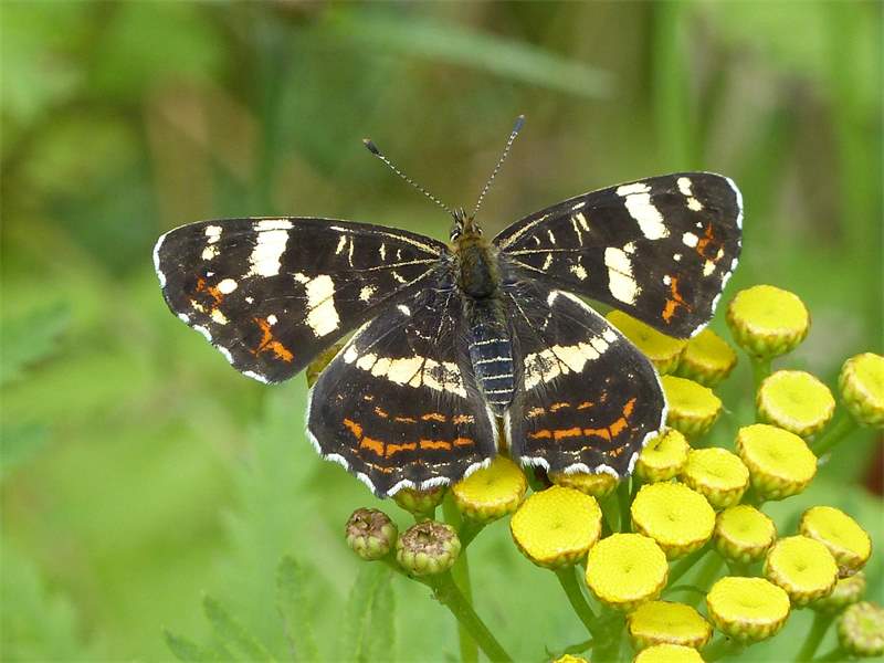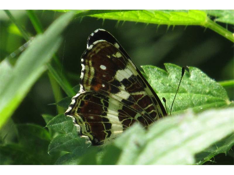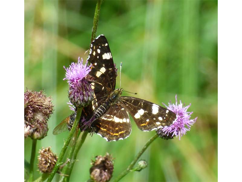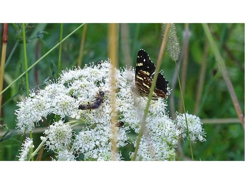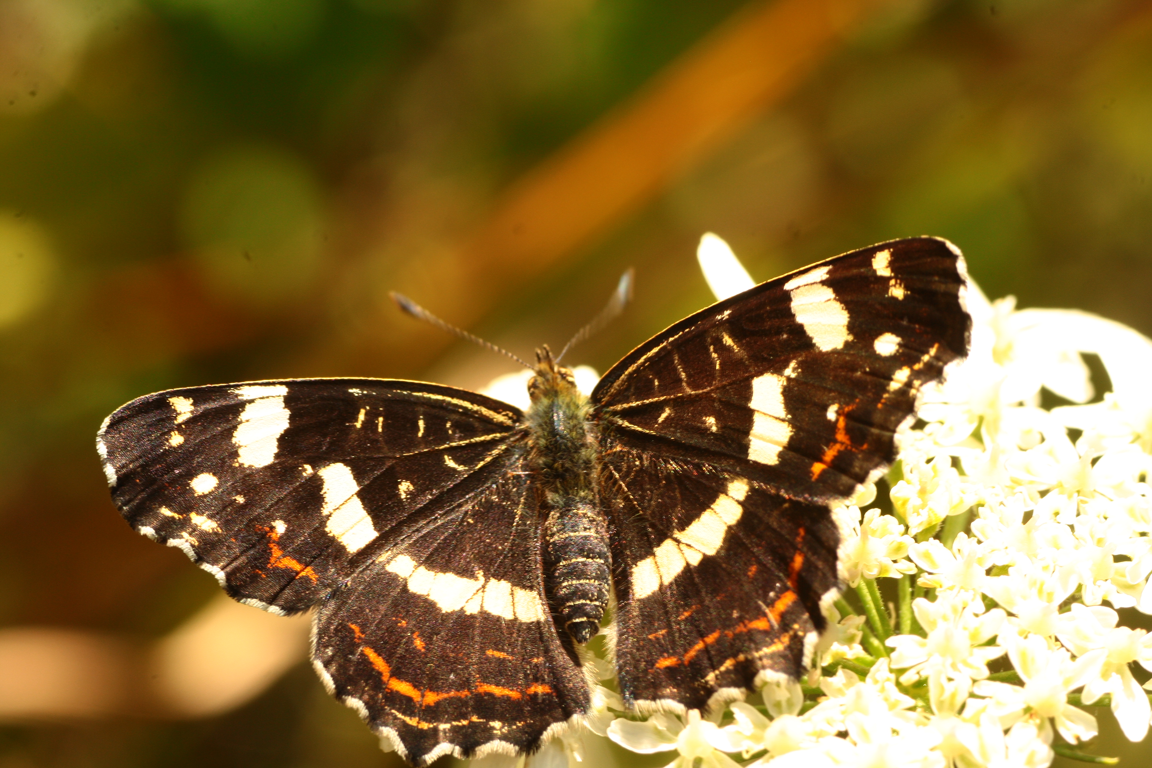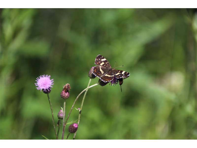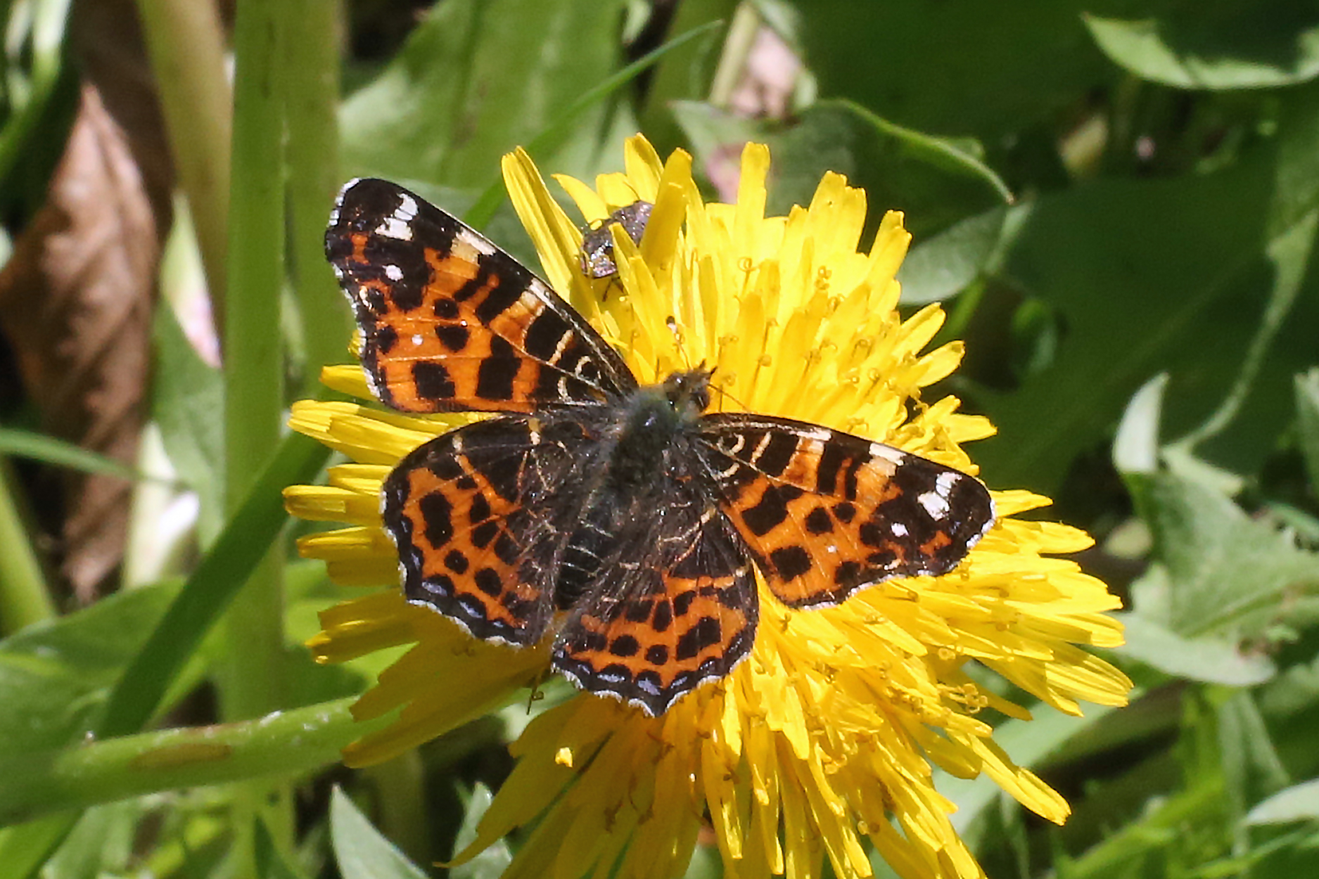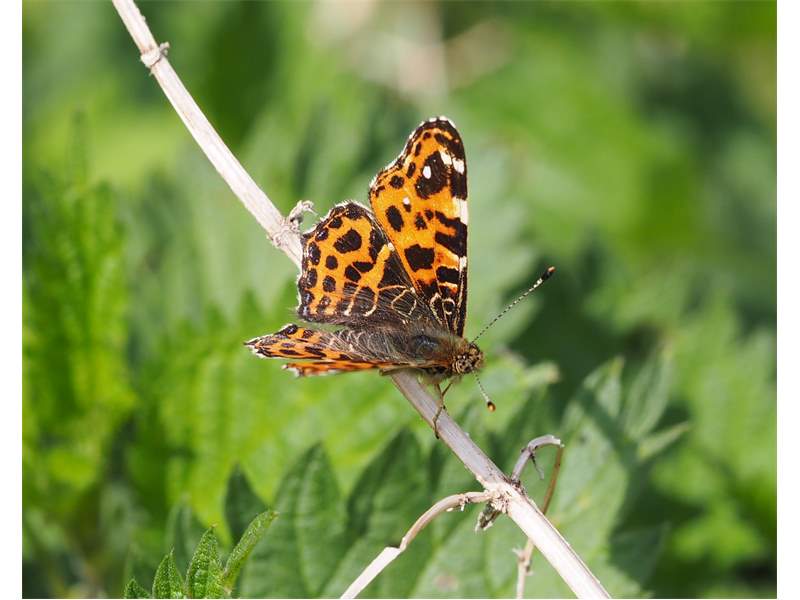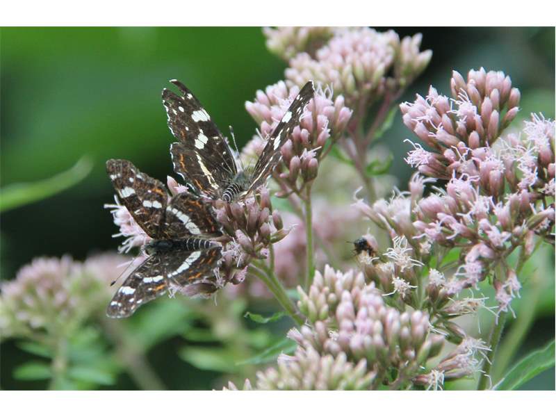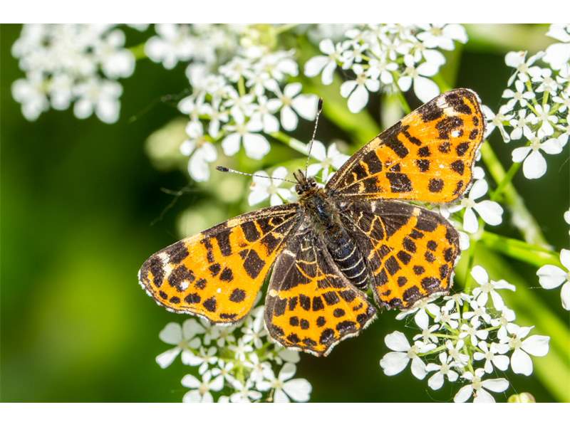 Landkärtchen, Sommergeneration der Schmetterlingsart auf Nektarspender Doldenblüte fotografiert, Falteroberseite im Sichtfeld, Ende Juni 2022, Auwald bei 06254 Horburg-Masslau (Sachsen-Anhalt) (© Heinz Sass)( Bild vergrößern)