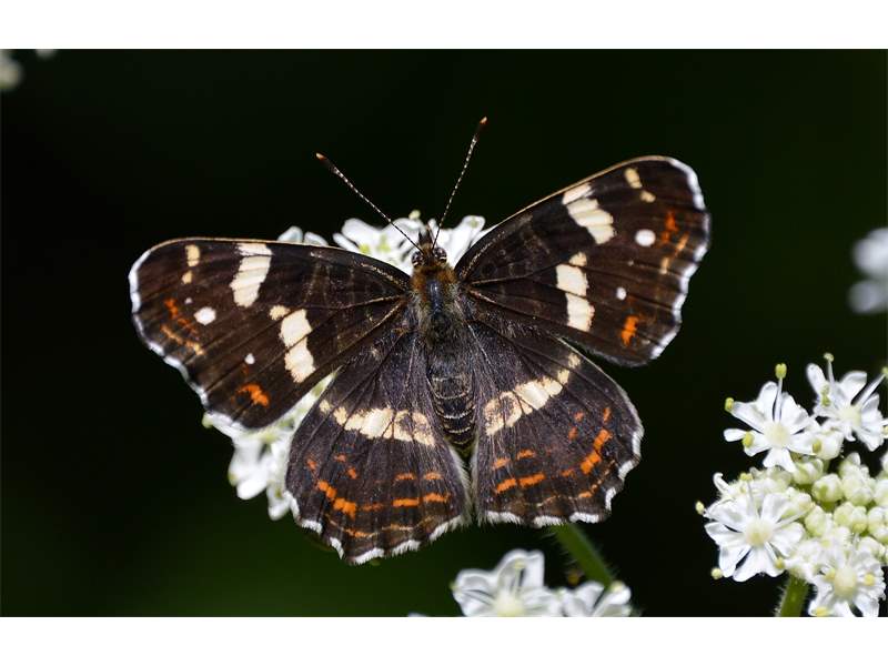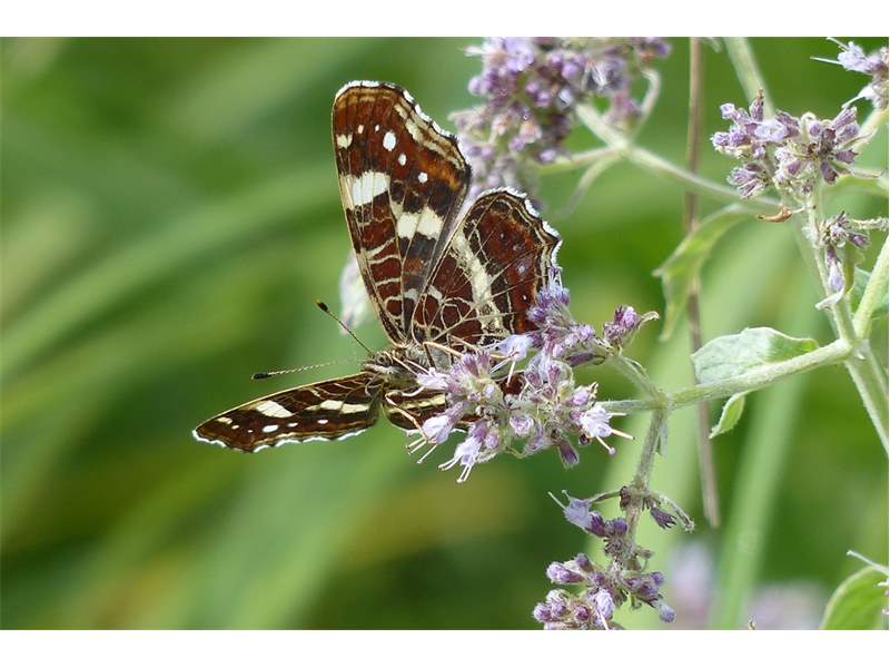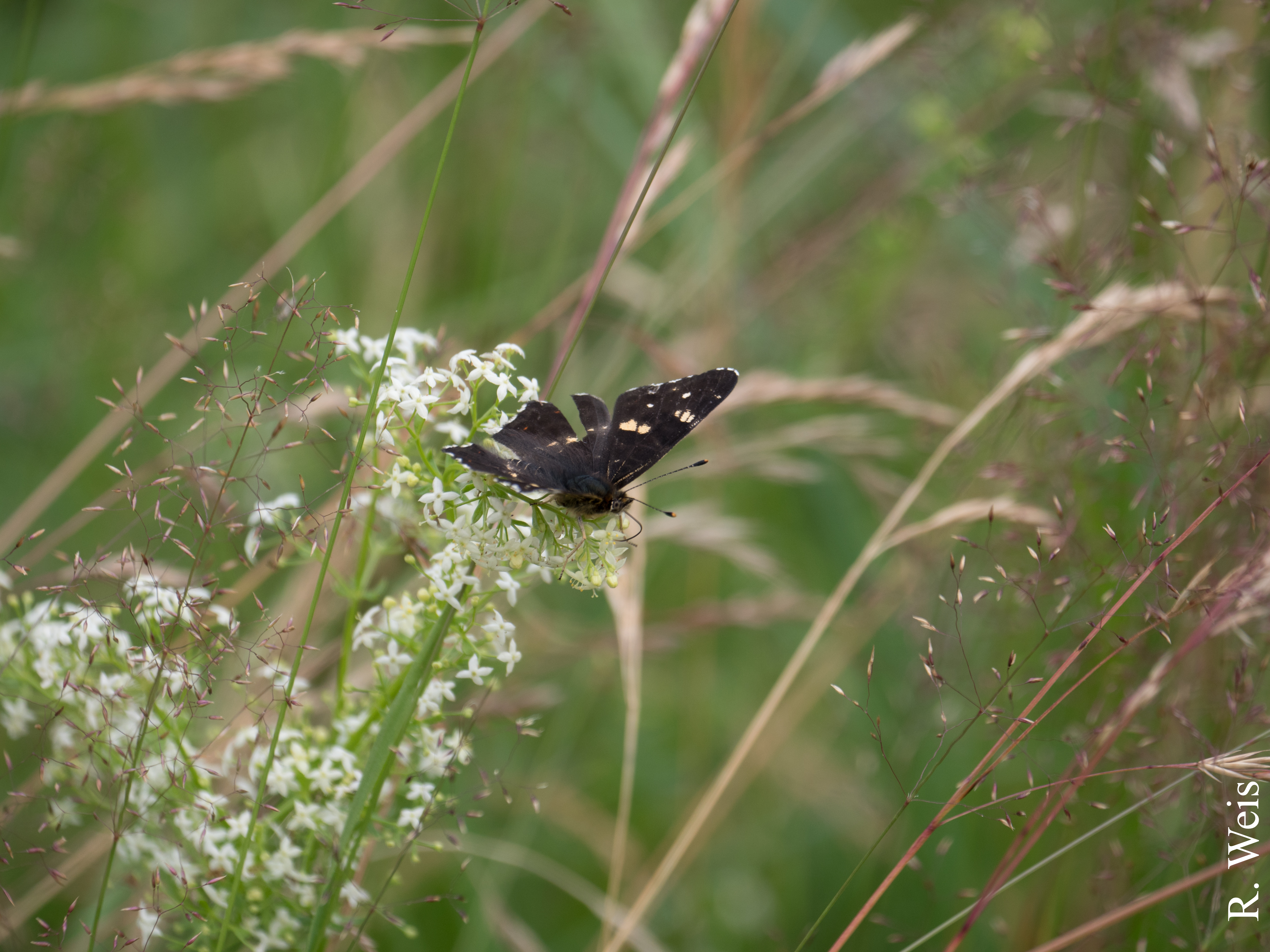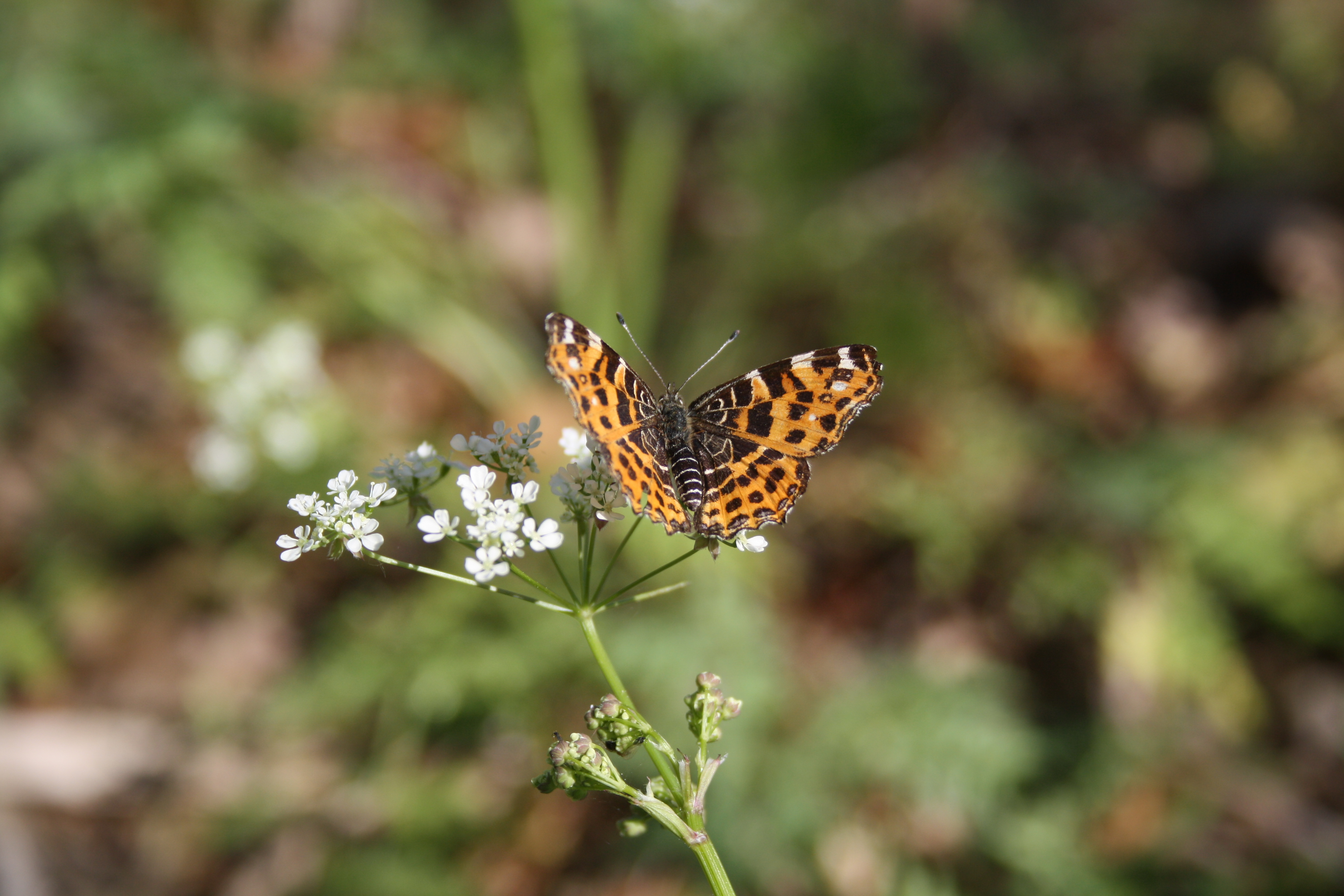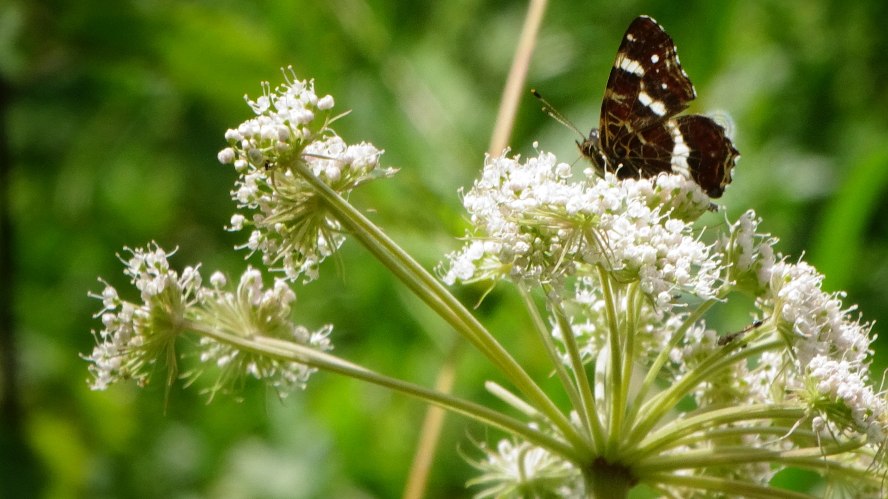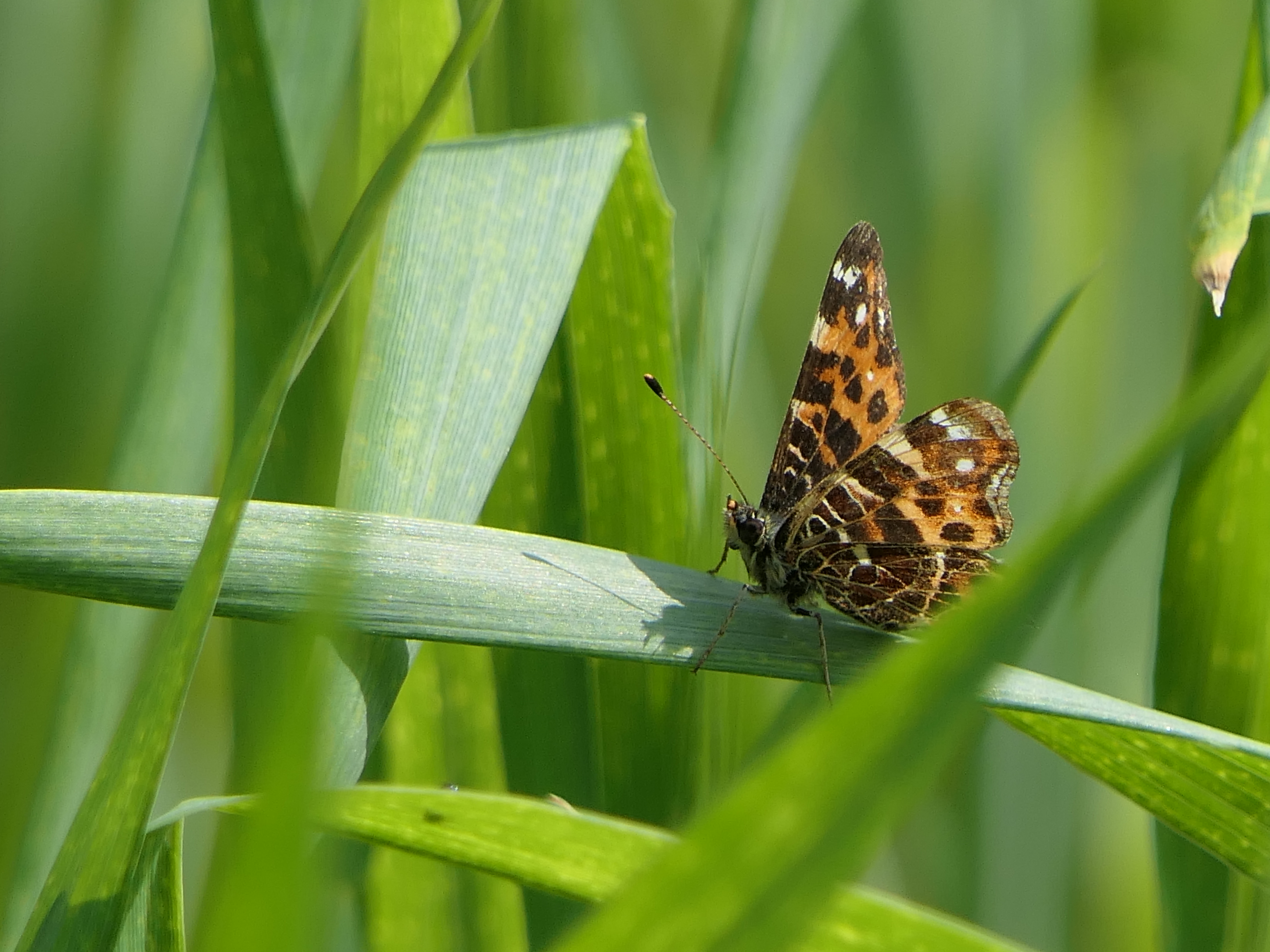 Landkärtchen, Sommergeneration der Schmetterlingsart auf Nektarspender Doldenblüte fotografiert, Falteroberseite im Sichtfeld, Ende Juni 2022, Auwald bei 06254 Horburg-Masslau (Sachsen-Anhalt) (© Heinz Sass)( Bild vergrößern)