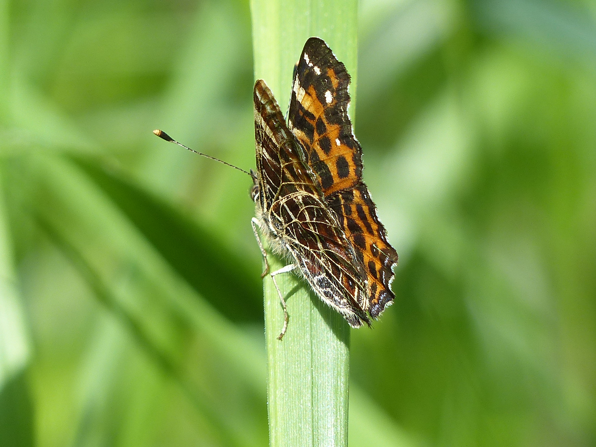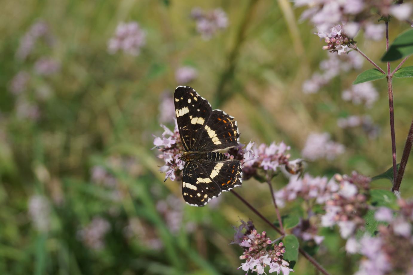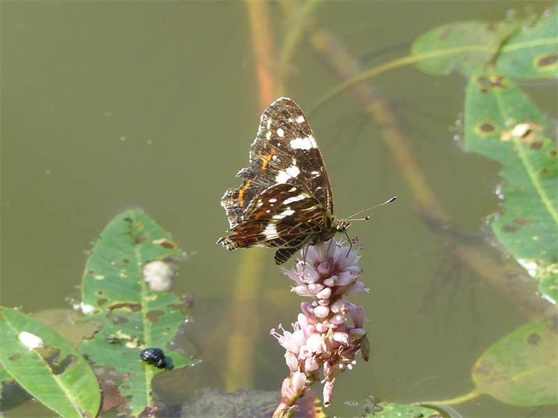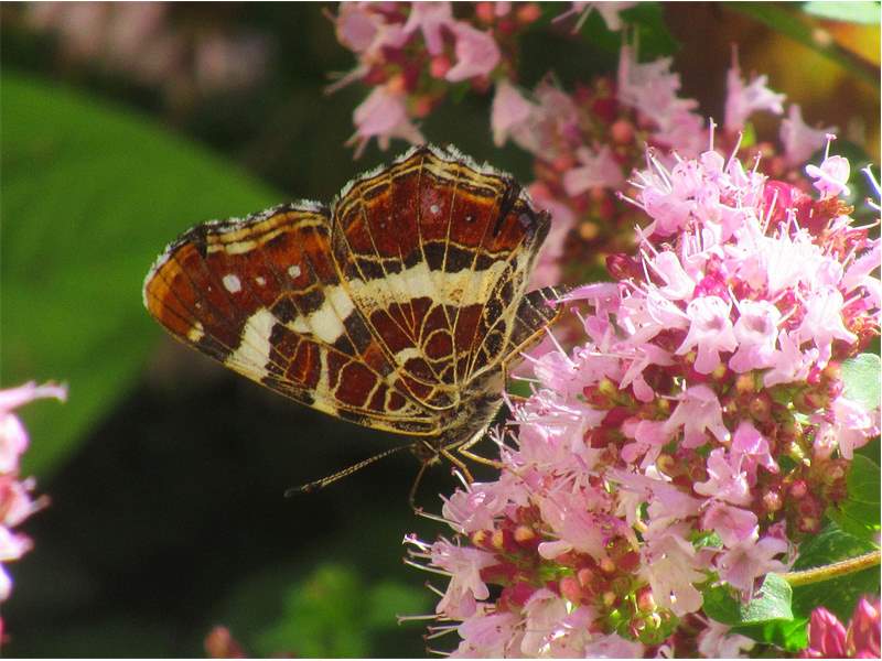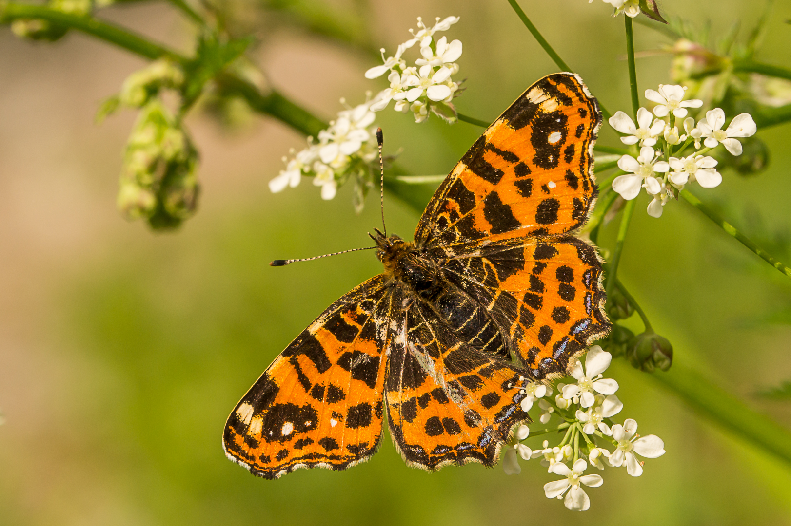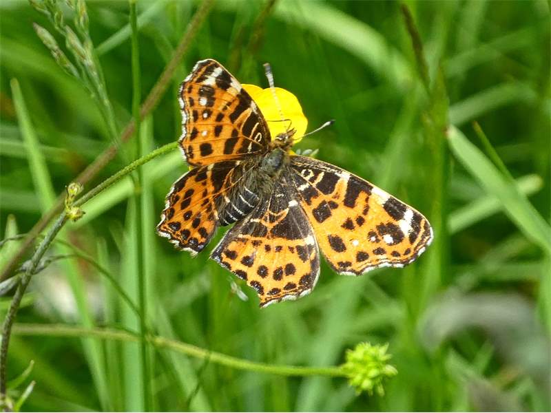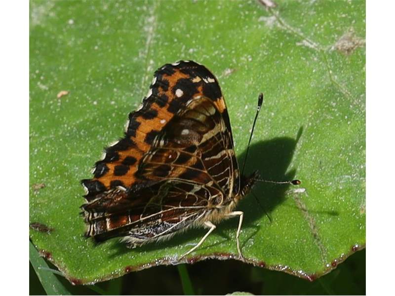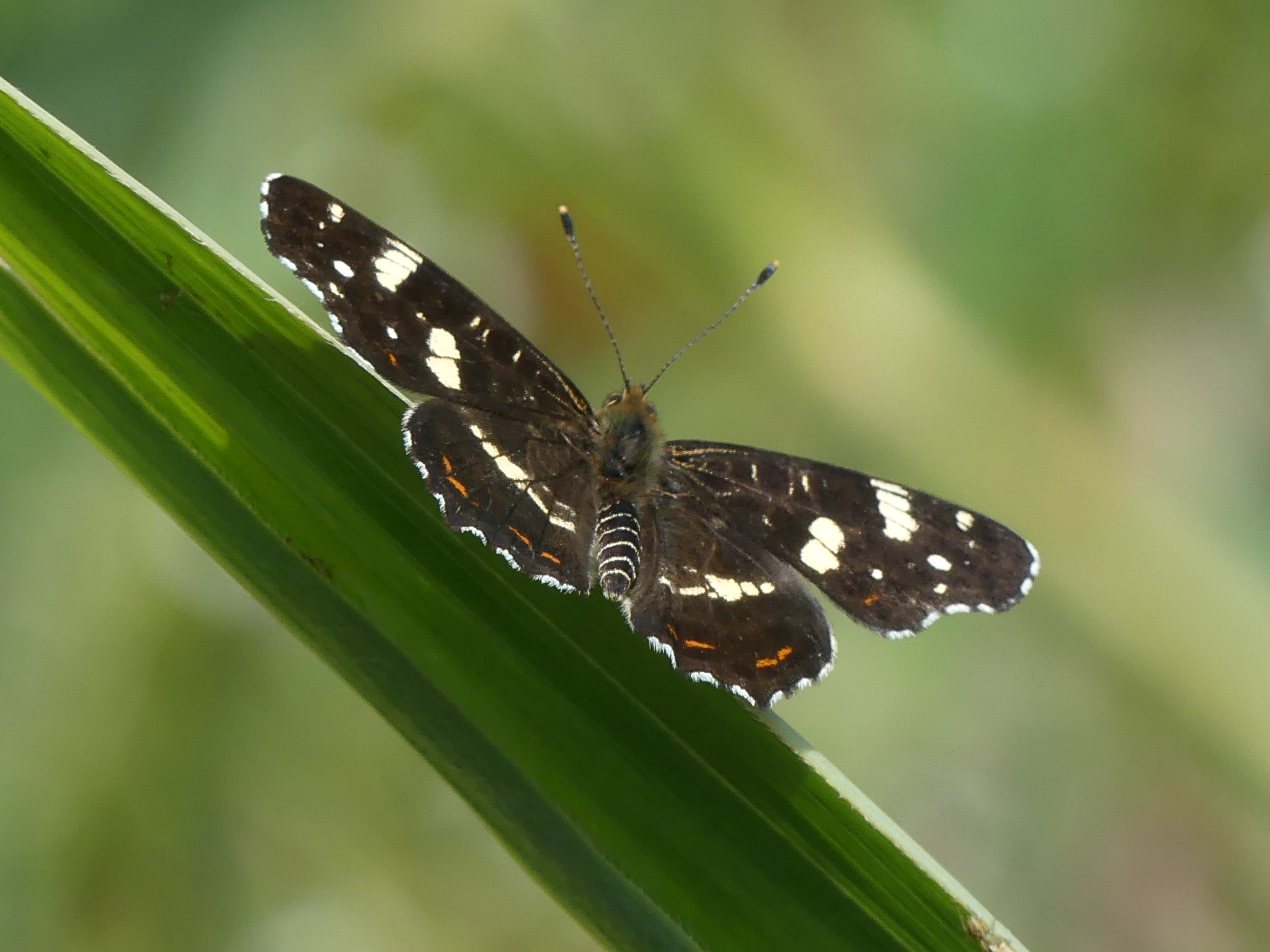 Landkärtchen, Sommergeneration der Schmetterlingsart auf Nektarspender Doldenblüte fotografiert, Falteroberseite im Sichtfeld, Ende Juni 2022, Auwald bei 06254 Horburg-Masslau (Sachsen-Anhalt) (© Heinz Sass)( Bild vergrößern)