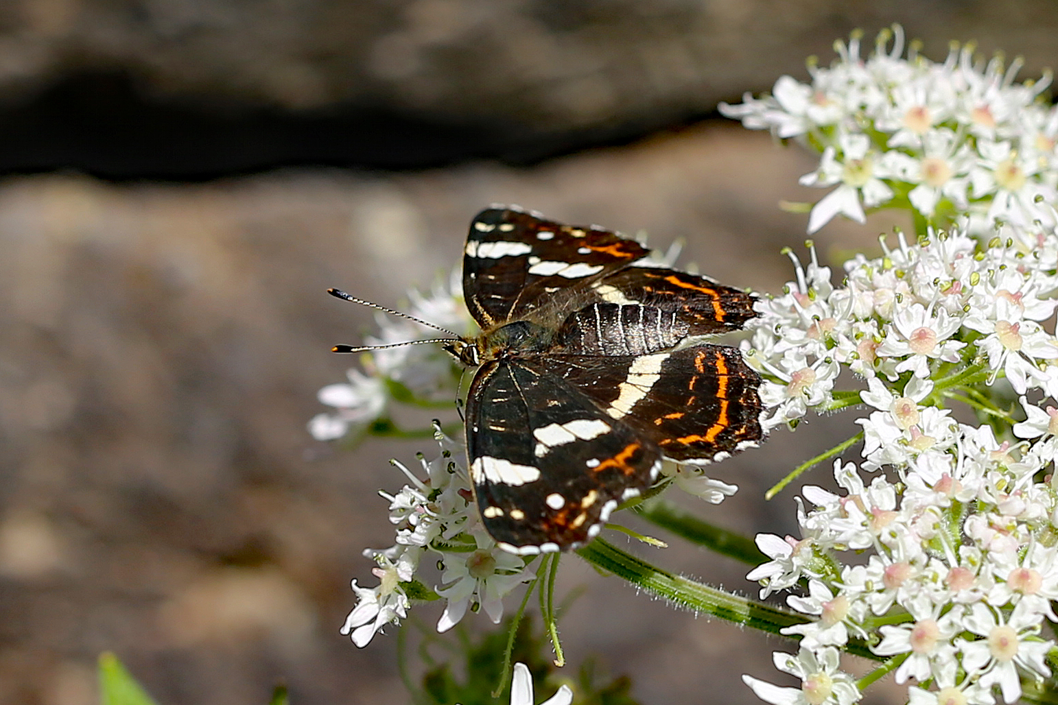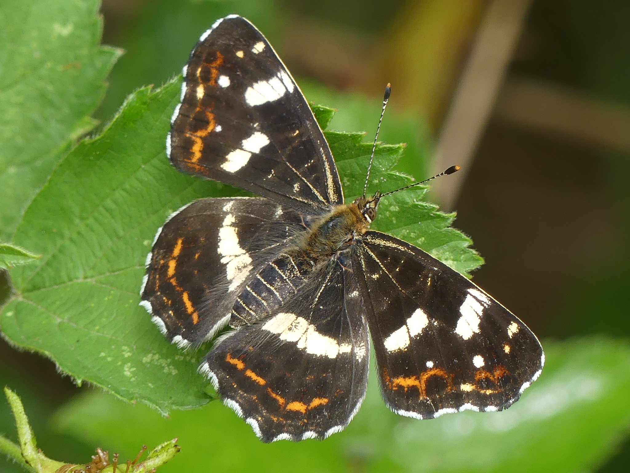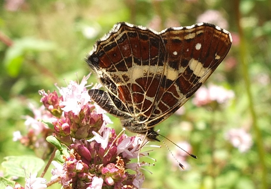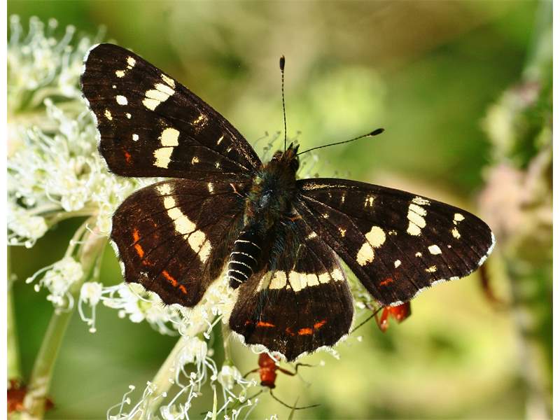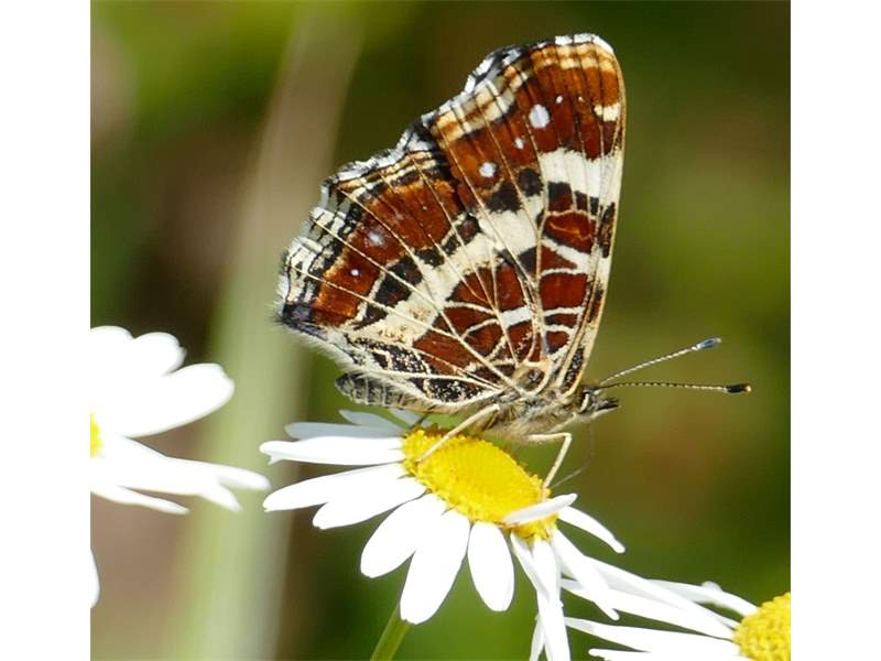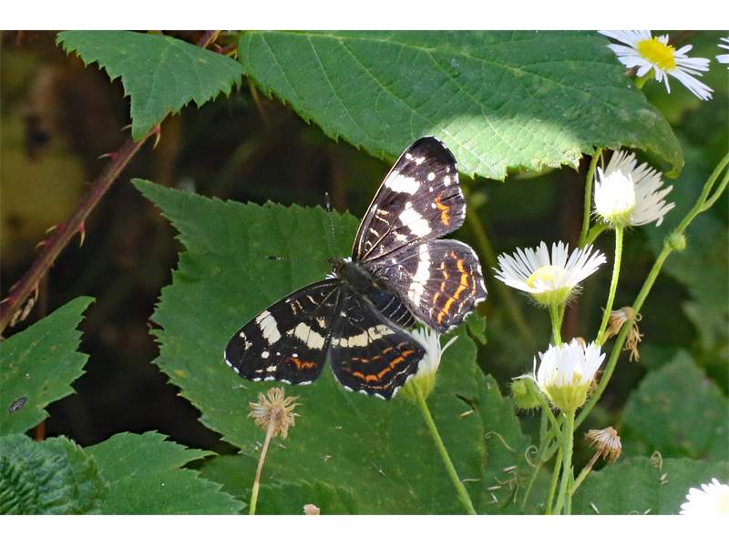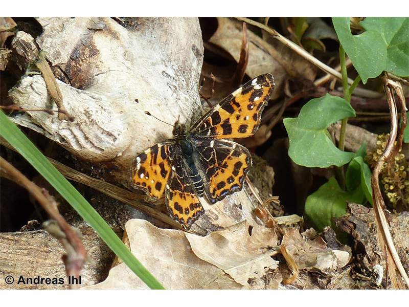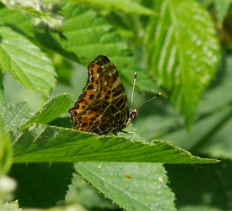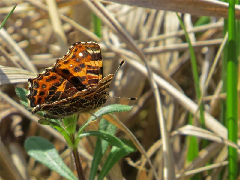 Landkärtchen, Sommergeneration der Schmetterlingsart auf Nektarspender Doldenblüte fotografiert, Falteroberseite im Sichtfeld, Ende Juni 2022, Auwald bei 06254 Horburg-Masslau (Sachsen-Anhalt) (© Heinz Sass)( Bild vergrößern)