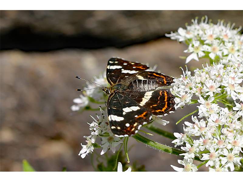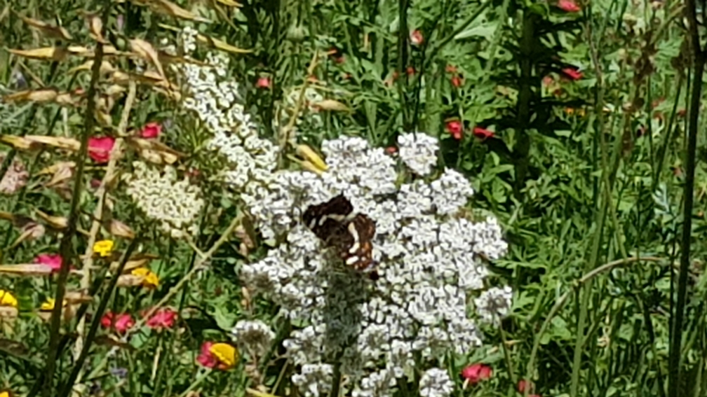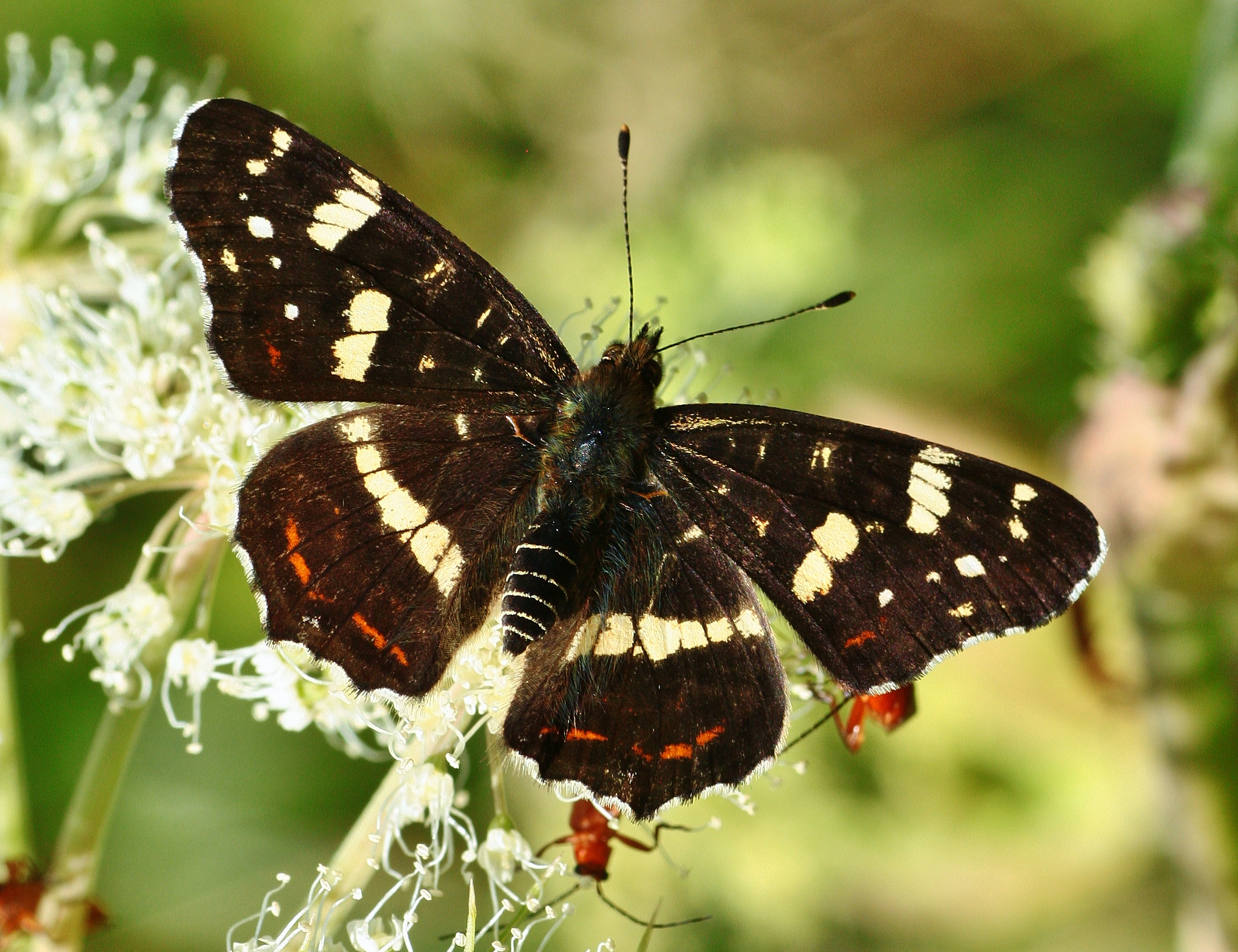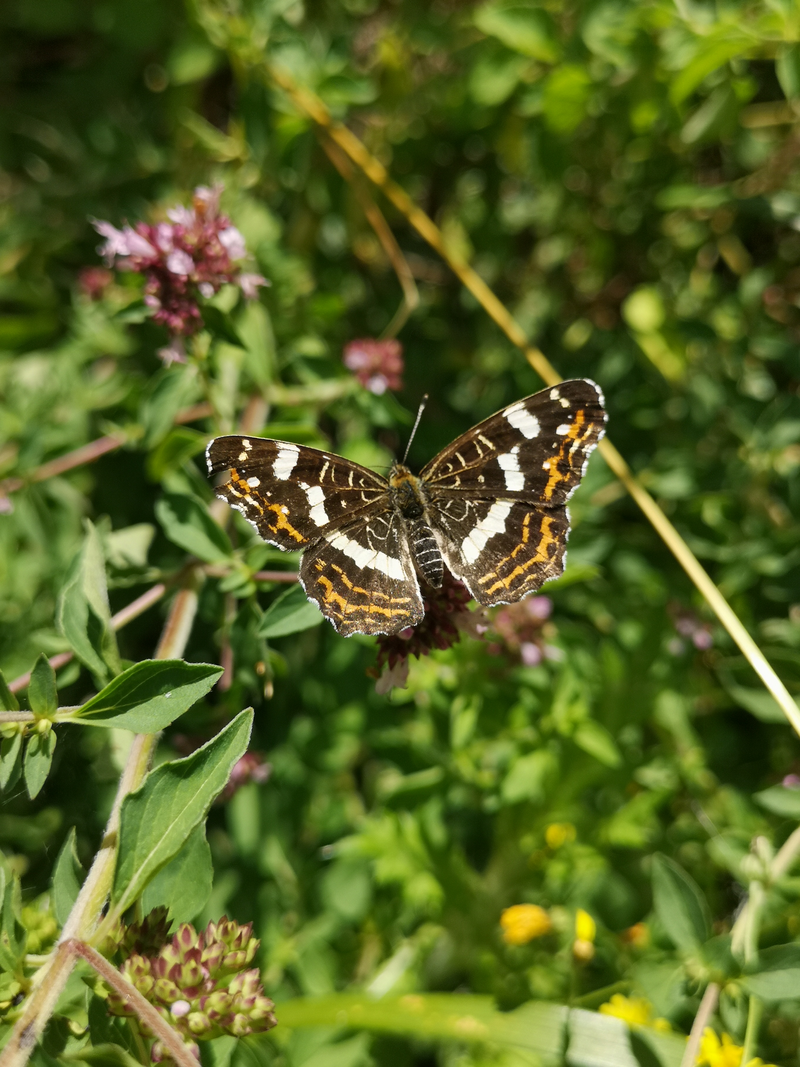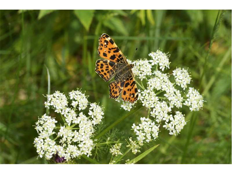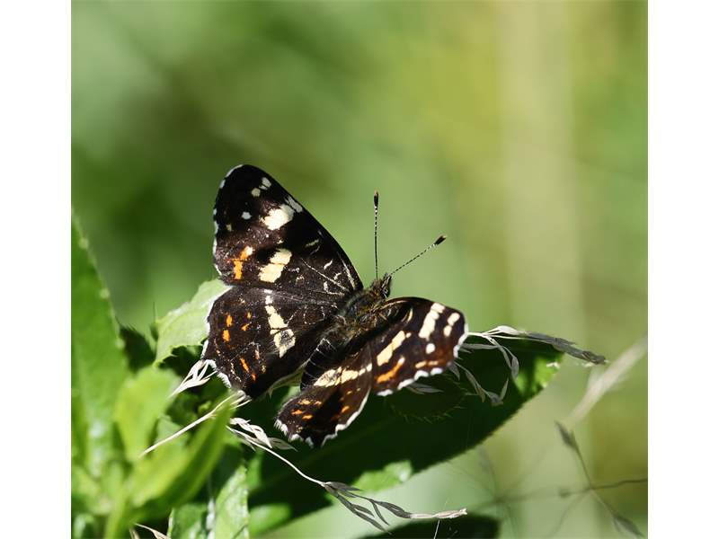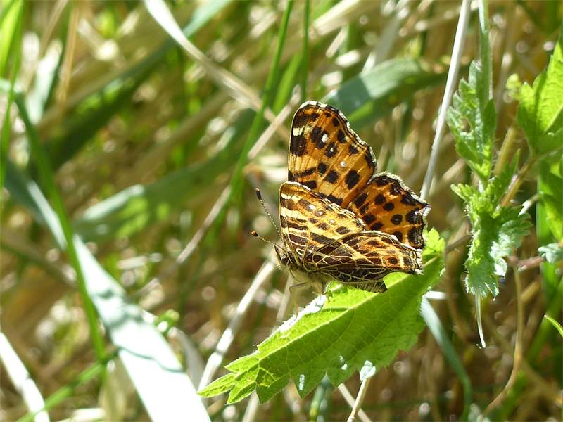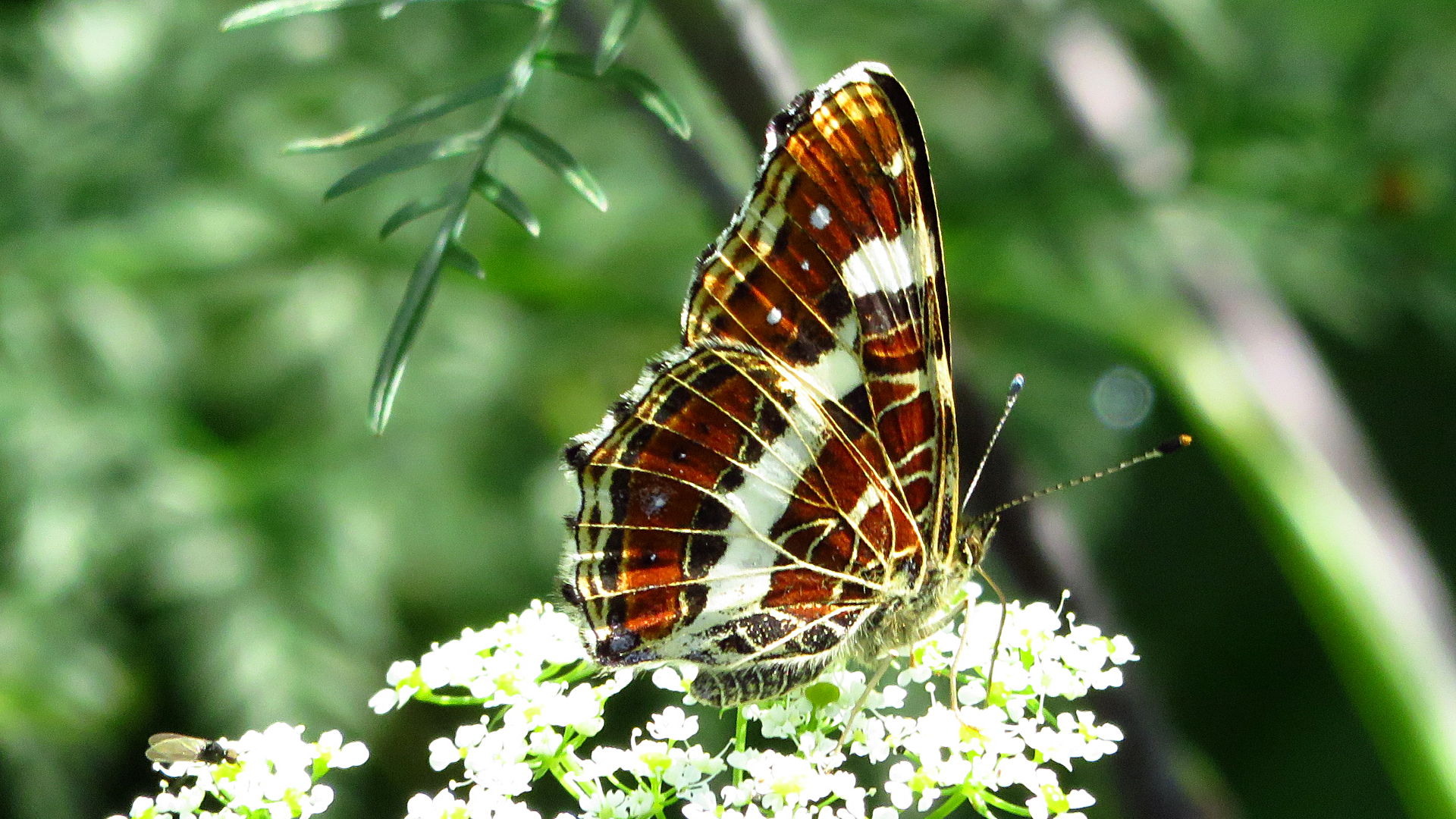 Landkärtchen, Sommergeneration der Schmetterlingsart auf Nektarspender Doldenblüte fotografiert, Falteroberseite im Sichtfeld, Ende Juni 2022, Auwald bei 06254 Horburg-Masslau (Sachsen-Anhalt) (© Heinz Sass)( Bild vergrößern)