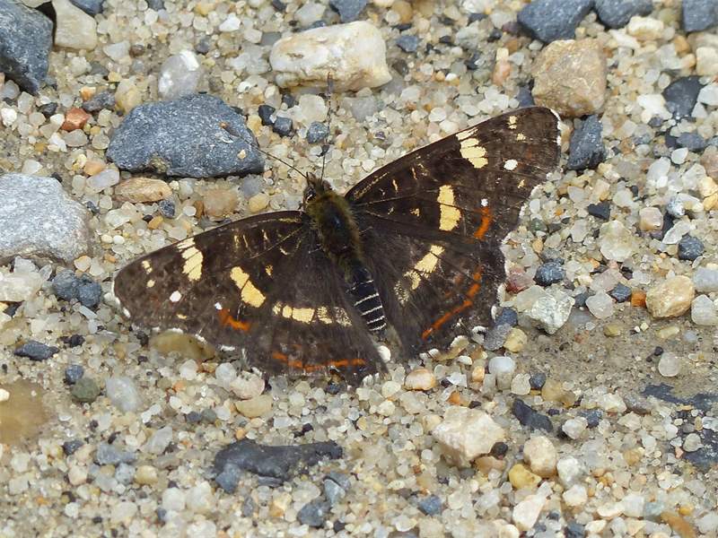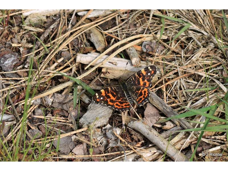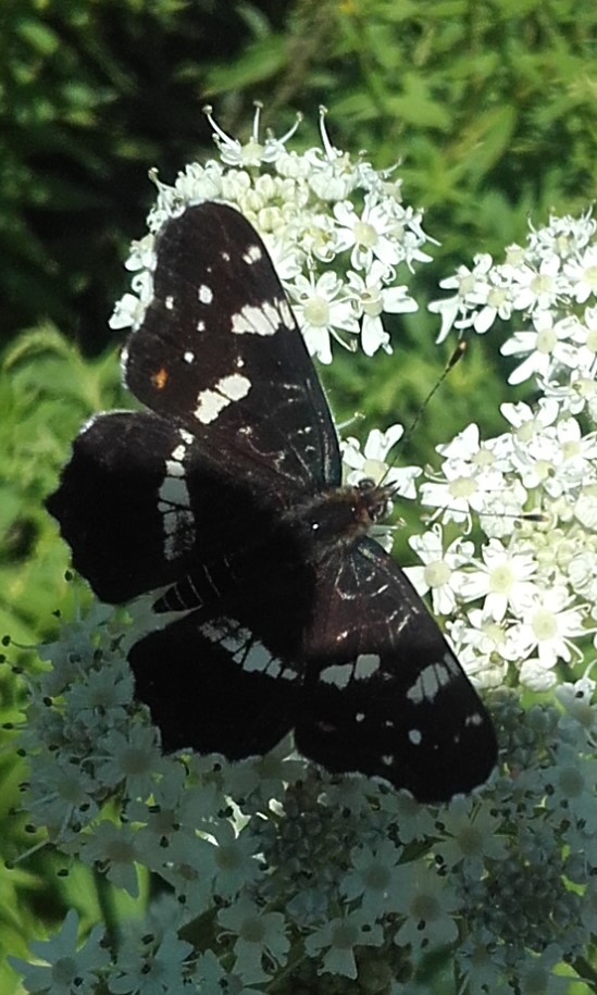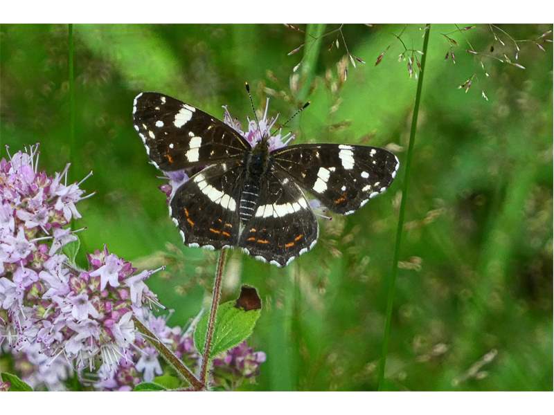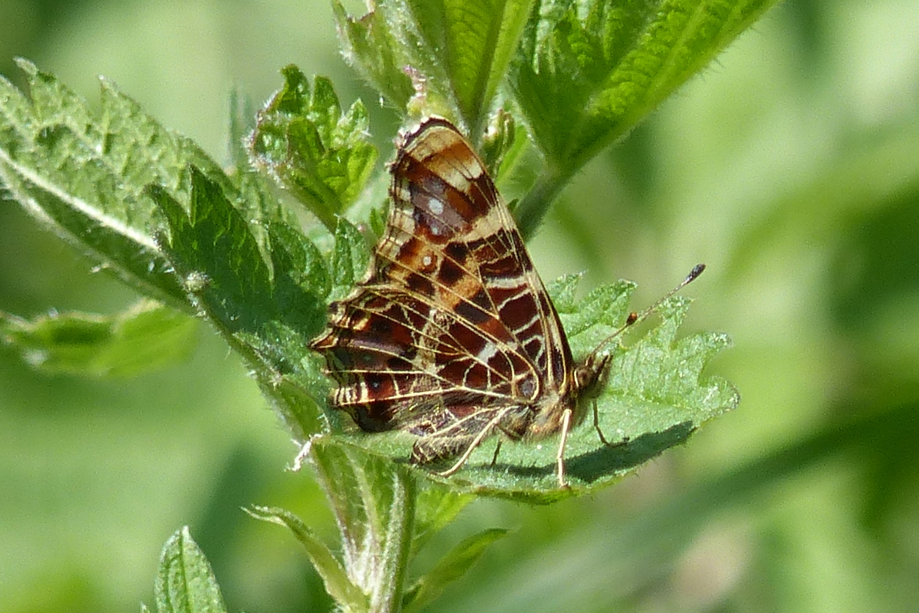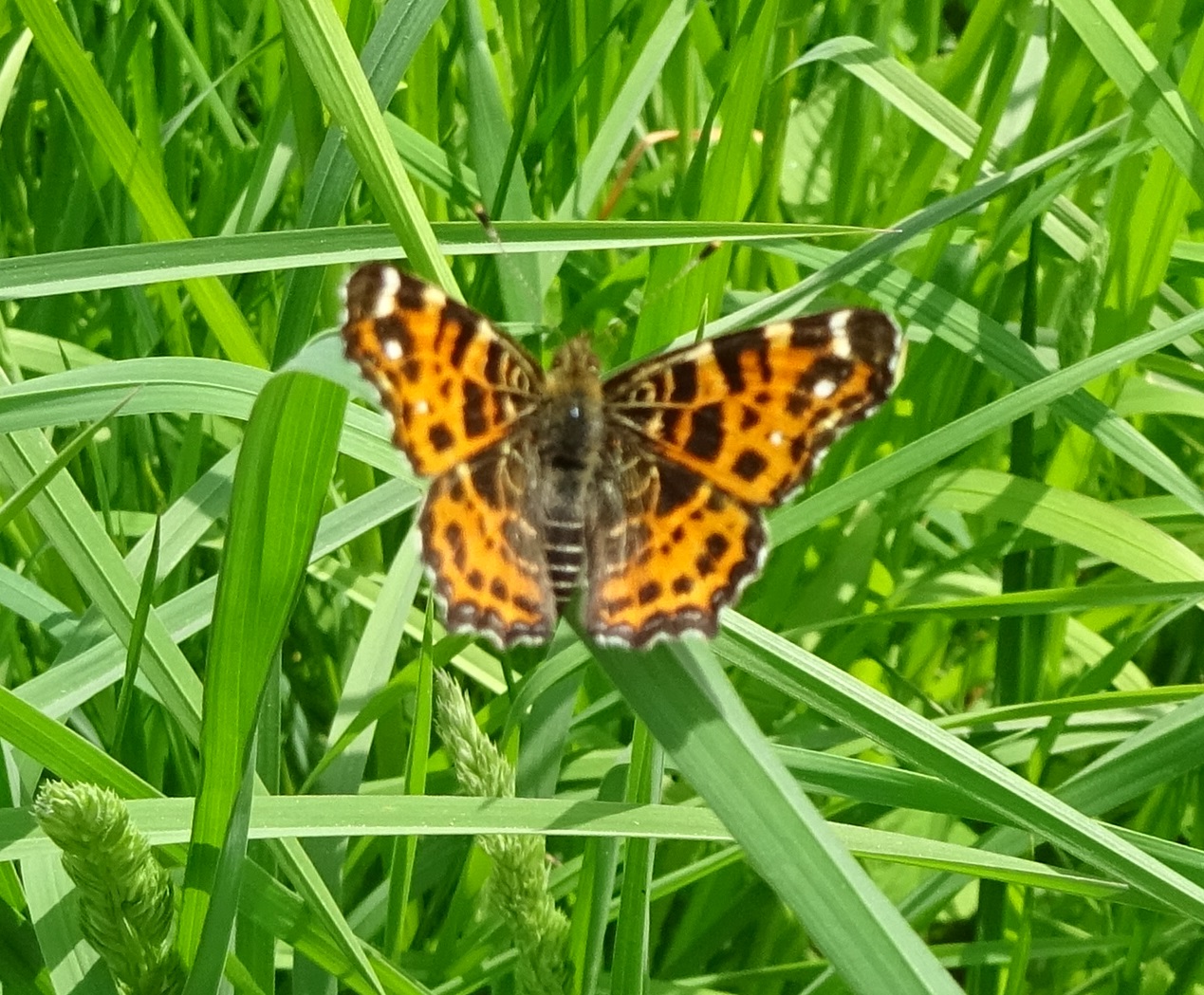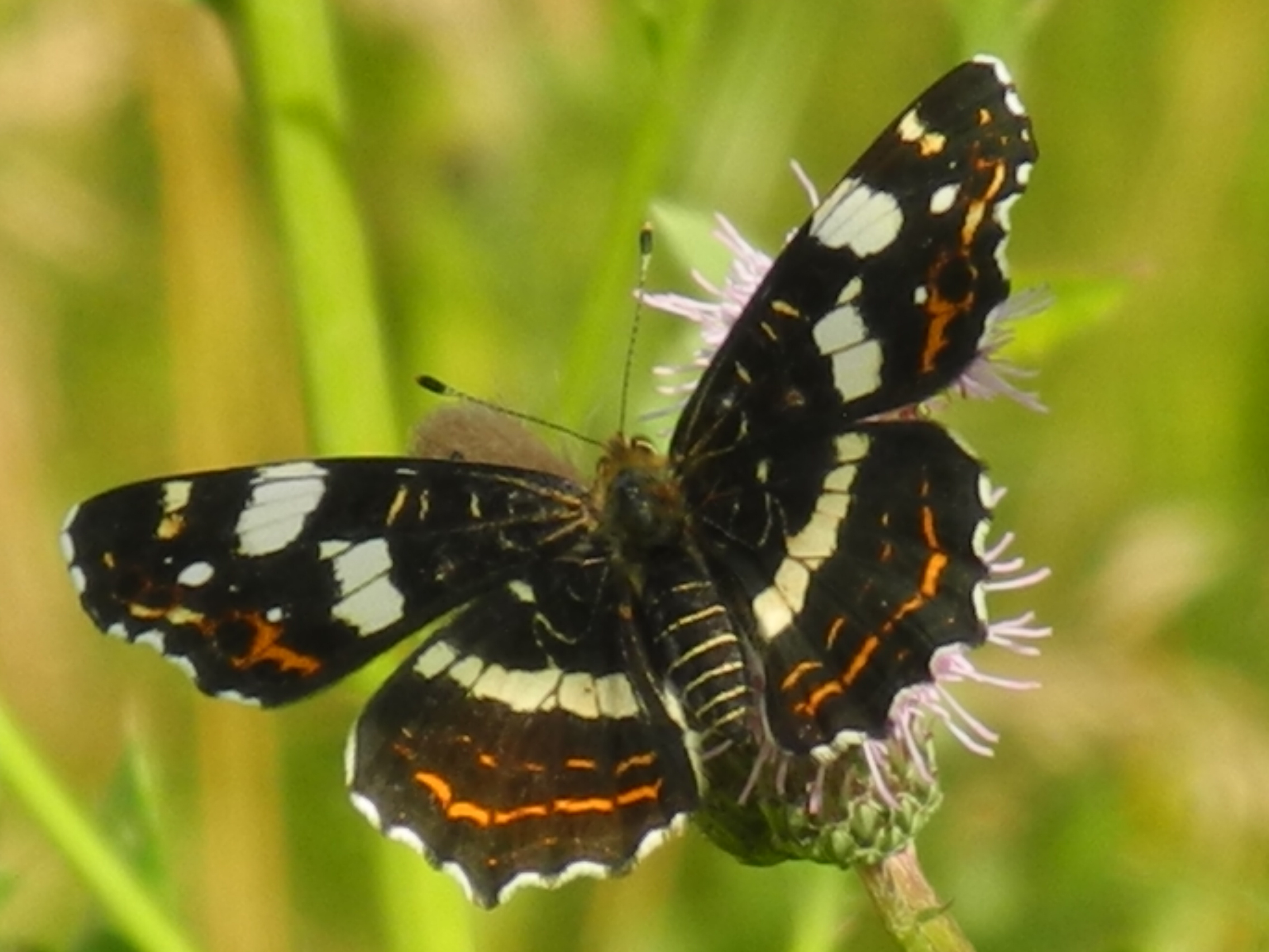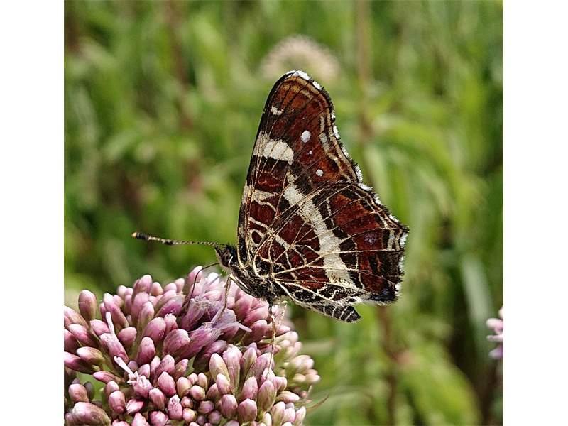 Landkärtchen, Sommergeneration der Schmetterlingsart auf Nektarspender Doldenblüte fotografiert, Falteroberseite im Sichtfeld, Ende Juni 2022, Auwald bei 06254 Horburg-Masslau (Sachsen-Anhalt) (© Heinz Sass)( Bild vergrößern)