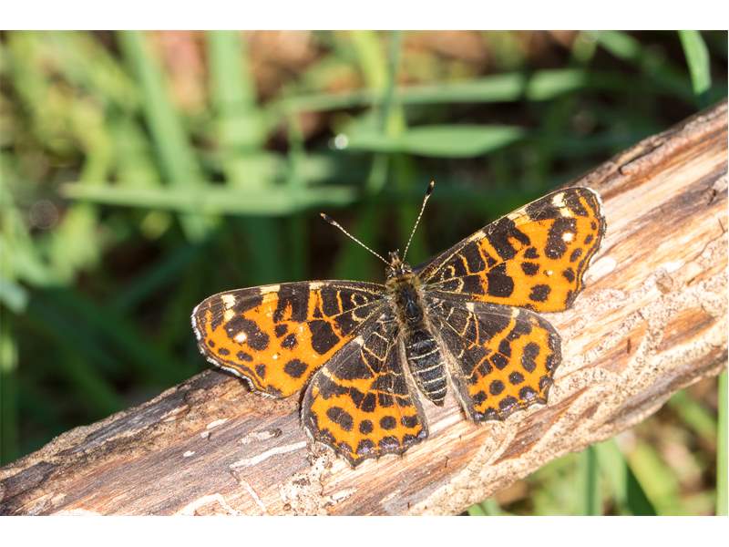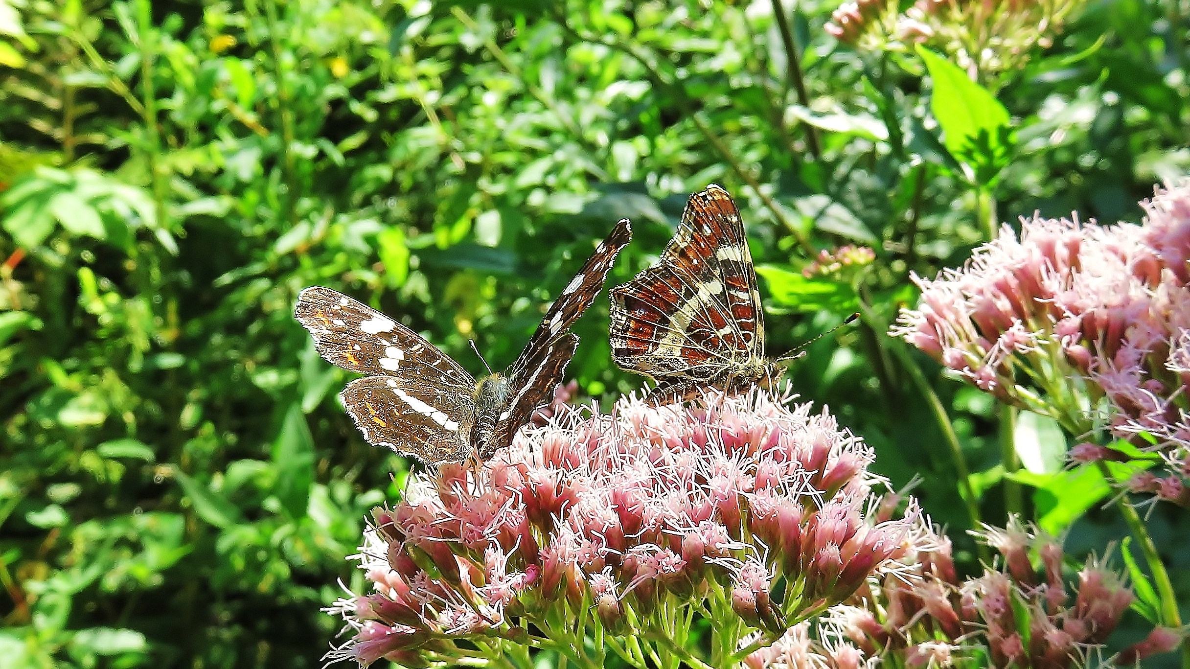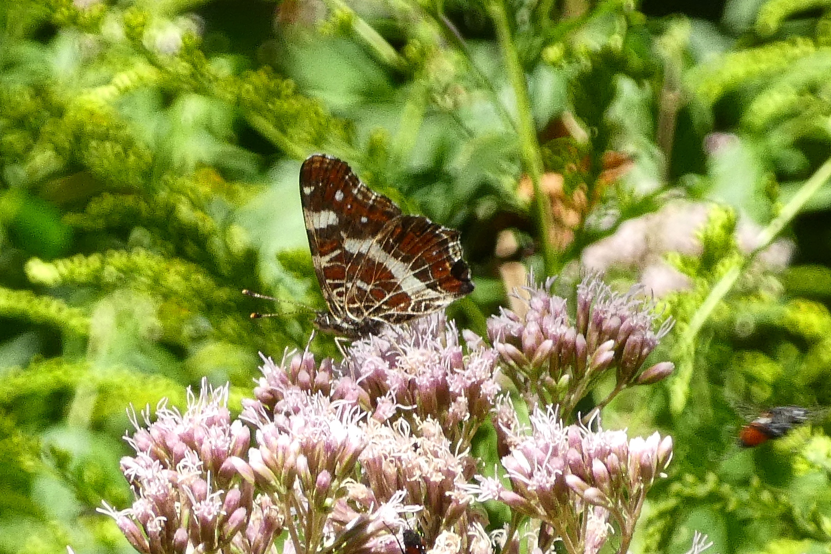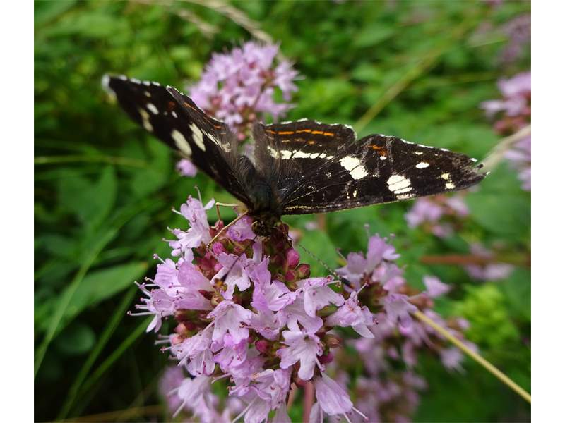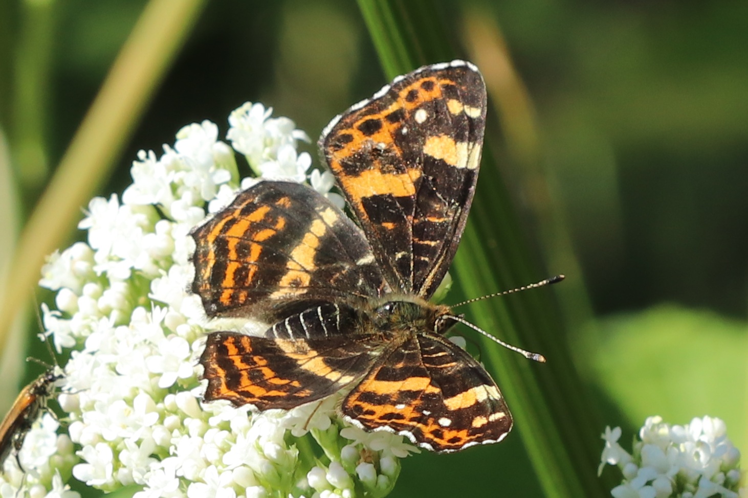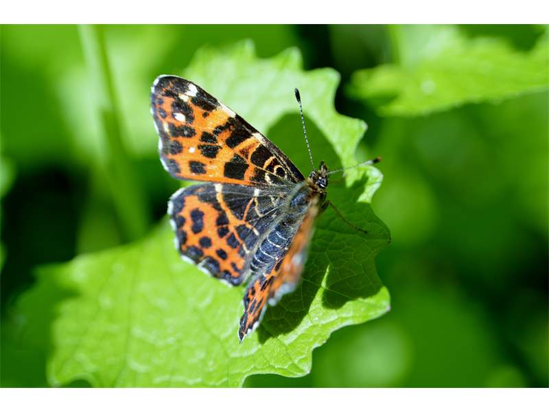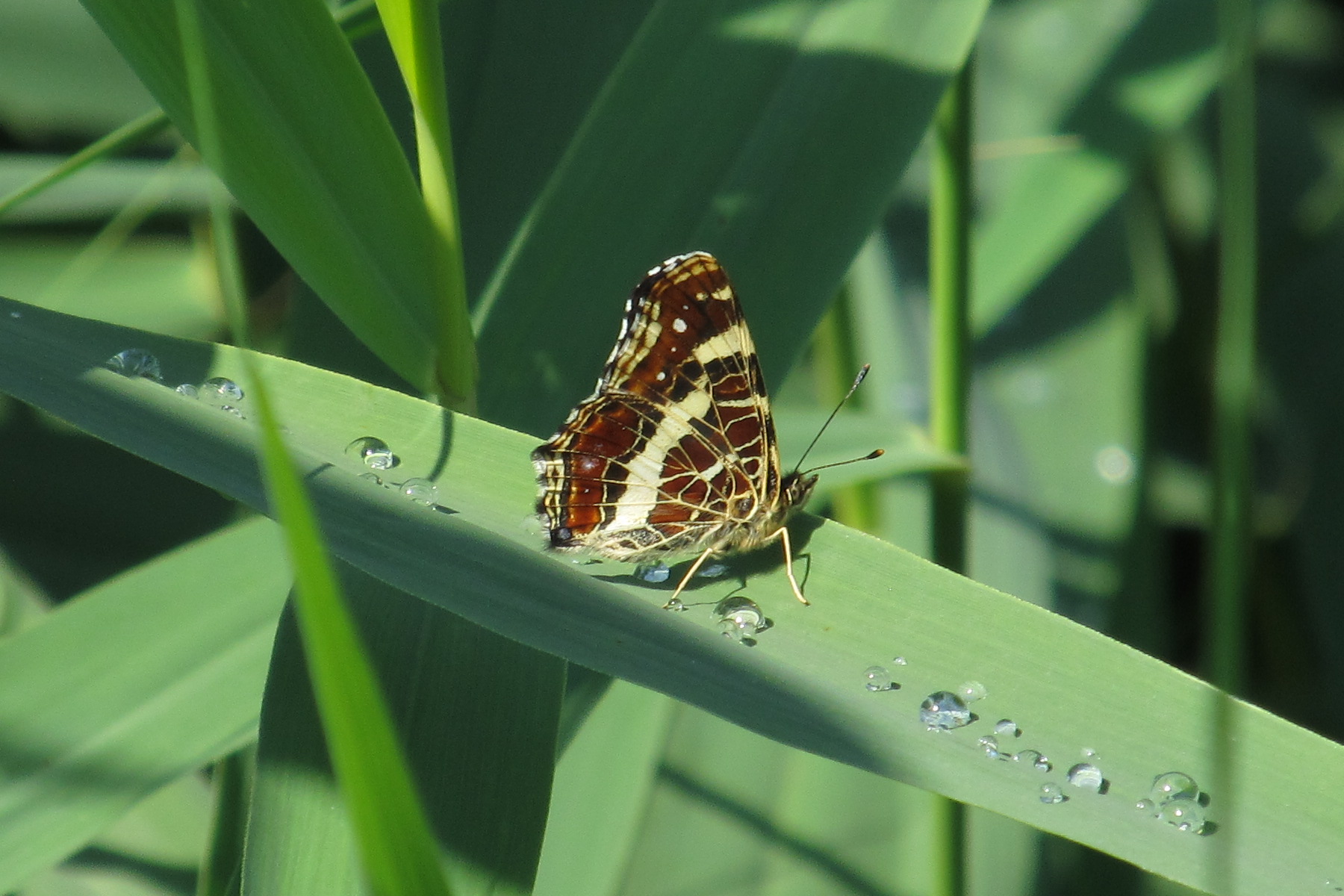 Landkärtchen, Sommergeneration der Schmetterlingsart auf Nektarspender Doldenblüte fotografiert, Falteroberseite im Sichtfeld, Ende Juni 2022, Auwald bei 06254 Horburg-Masslau (Sachsen-Anhalt) (© Heinz Sass)( Bild vergrößern)