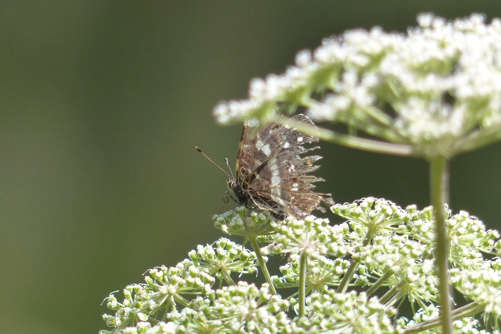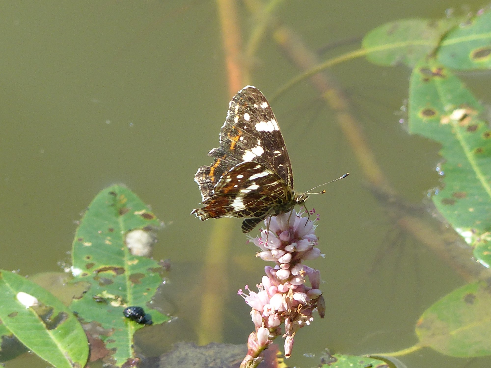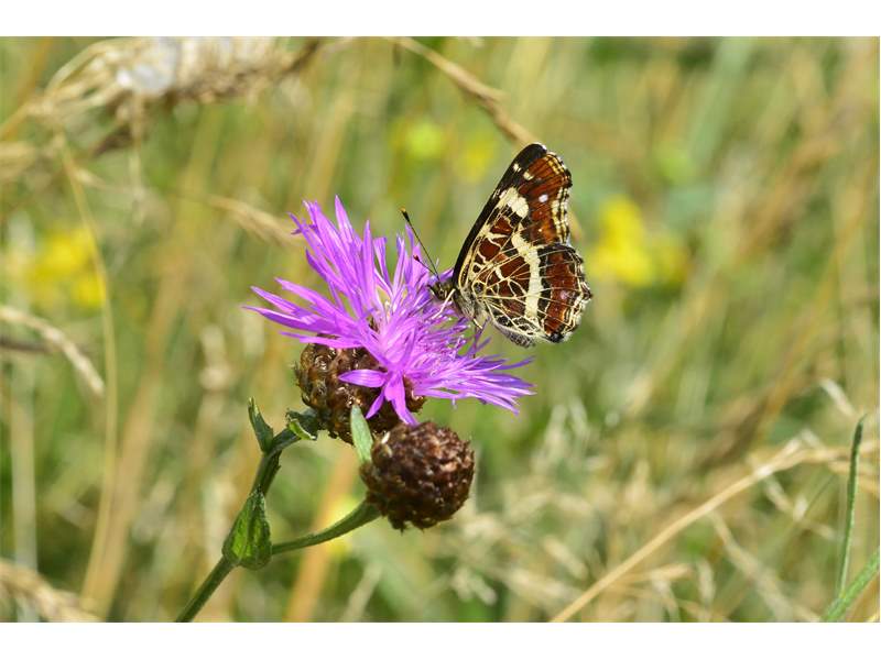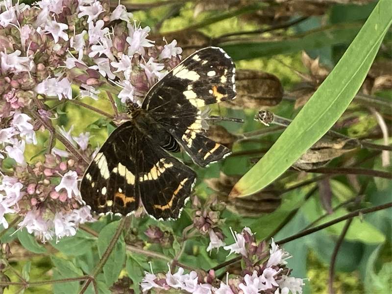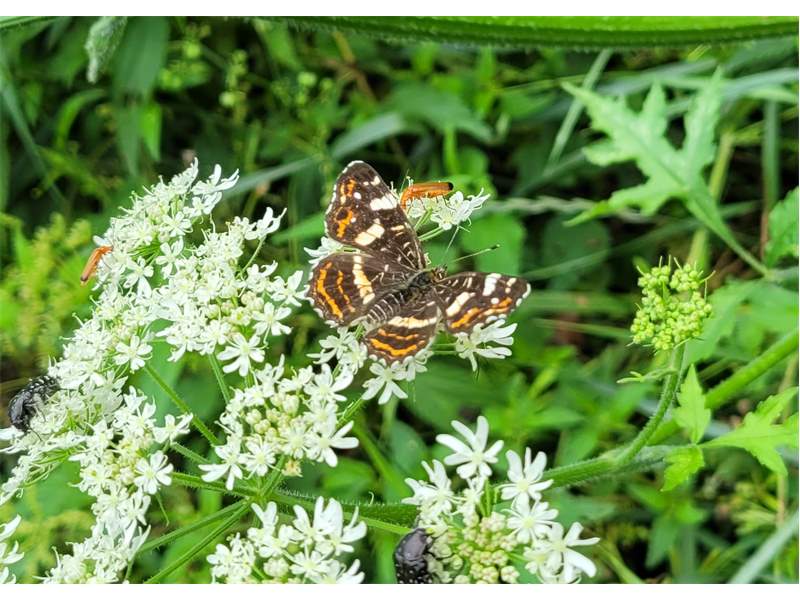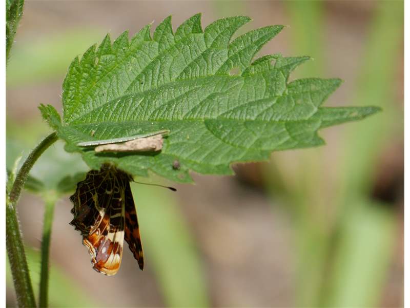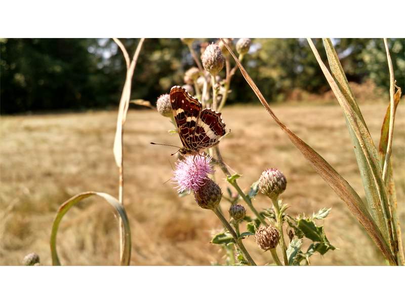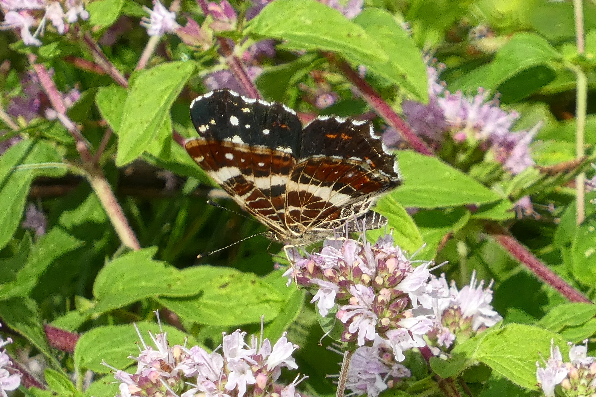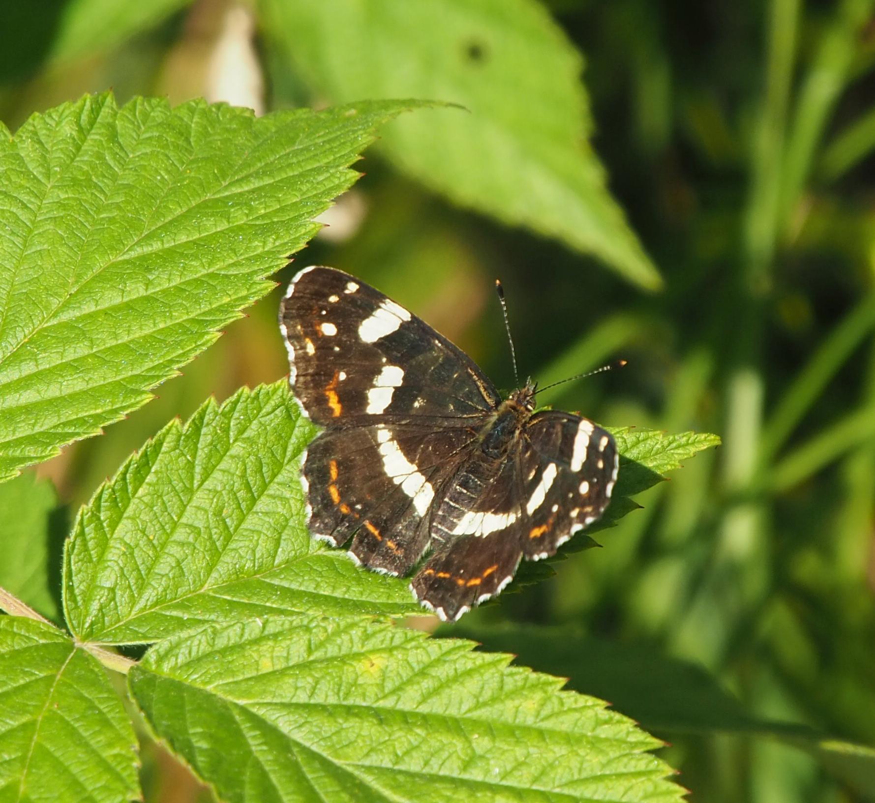 Landkärtchen, Sommergeneration der Schmetterlingsart auf Nektarspender Doldenblüte fotografiert, Falteroberseite im Sichtfeld, Ende Juni 2022, Auwald bei 06254 Horburg-Masslau (Sachsen-Anhalt) (© Heinz Sass)( Bild vergrößern)