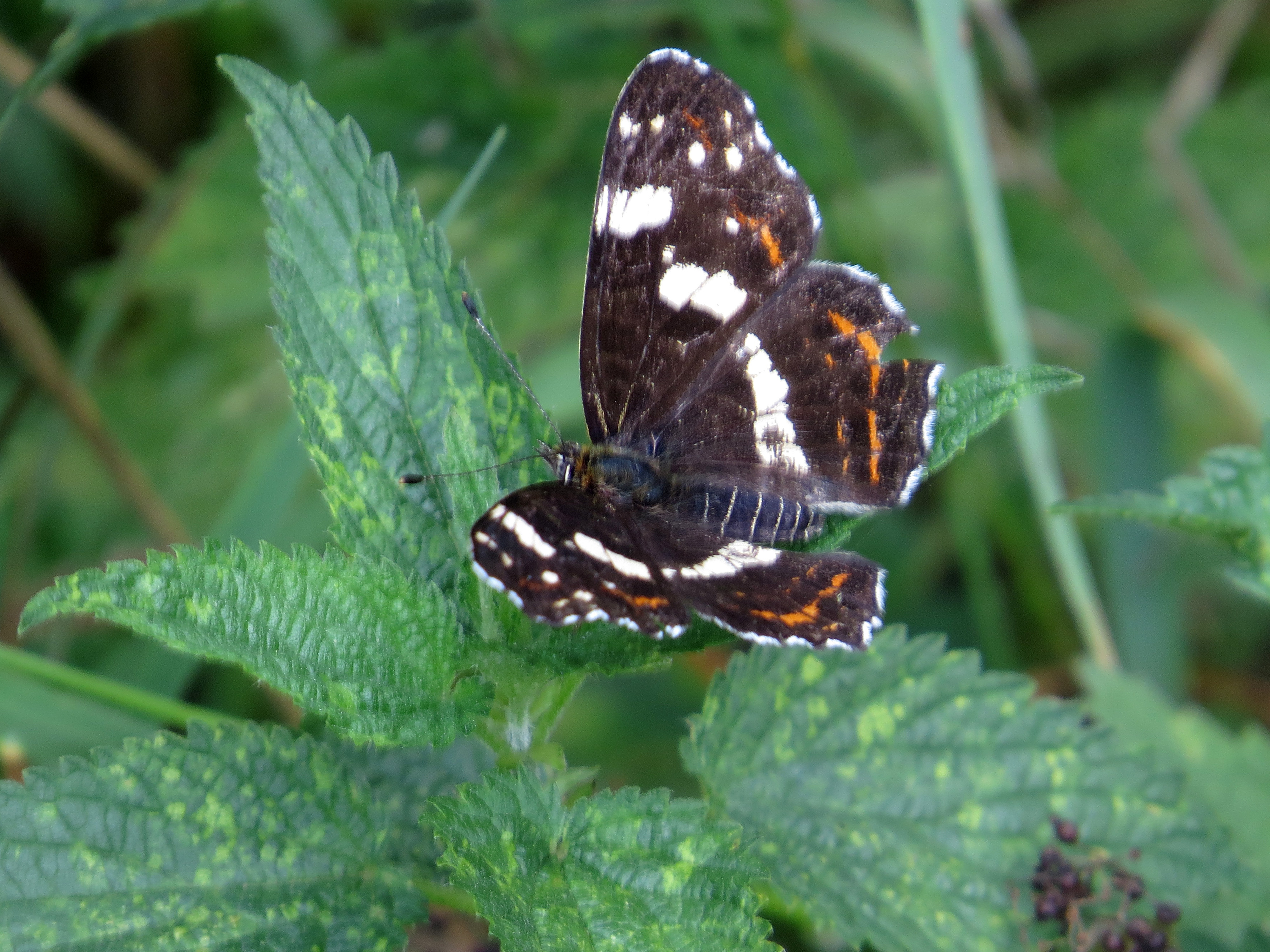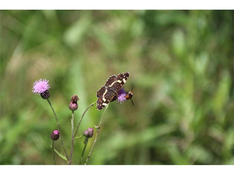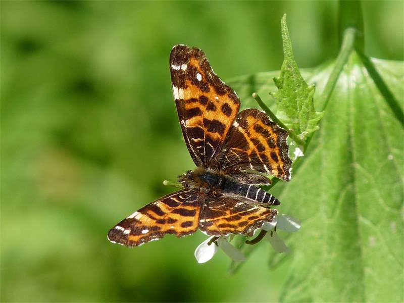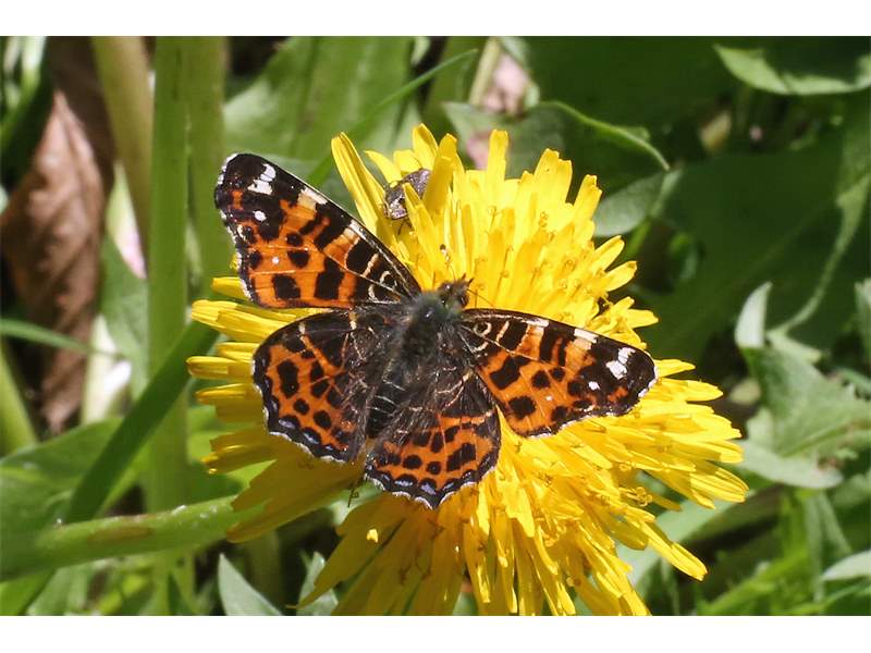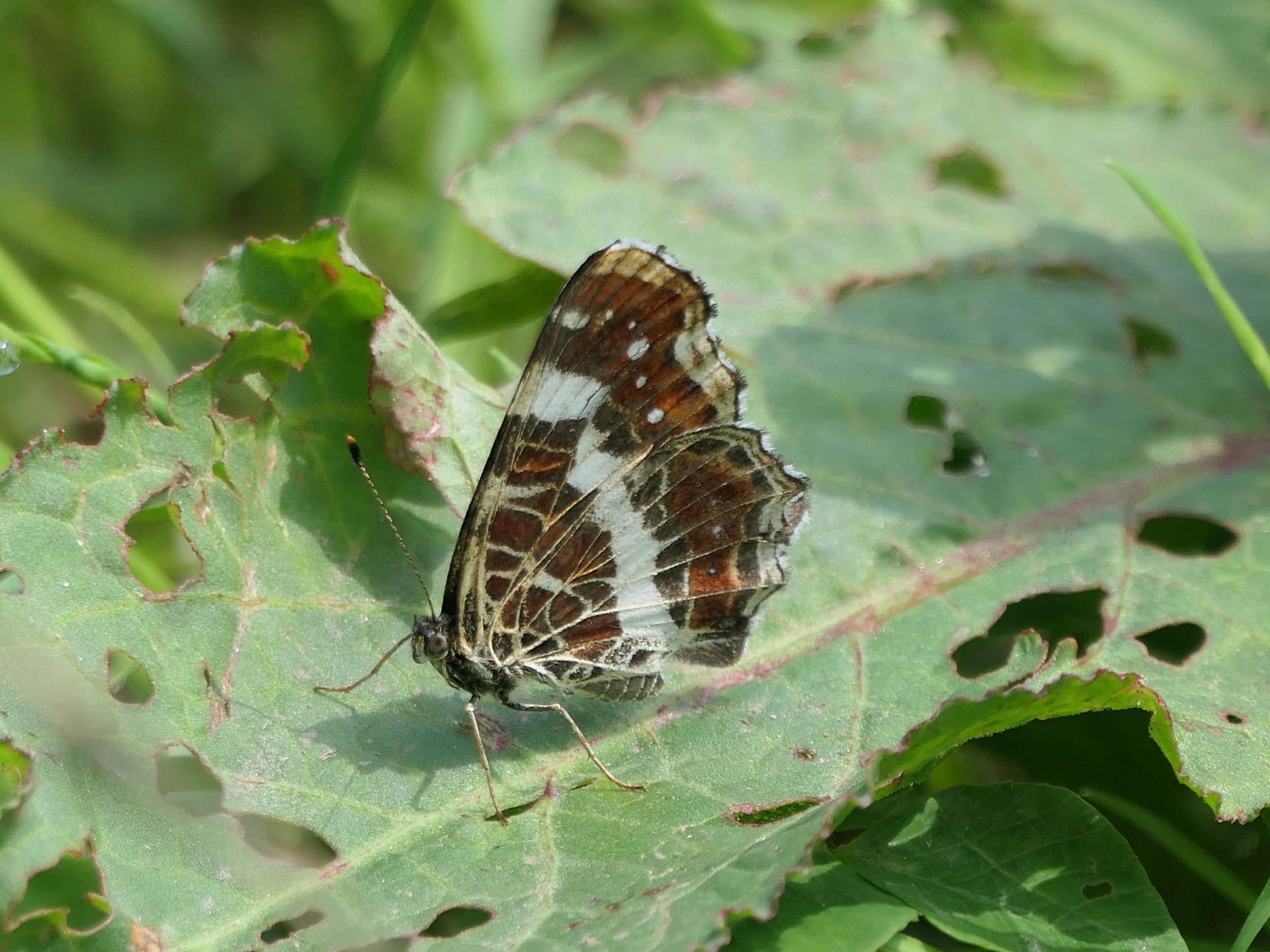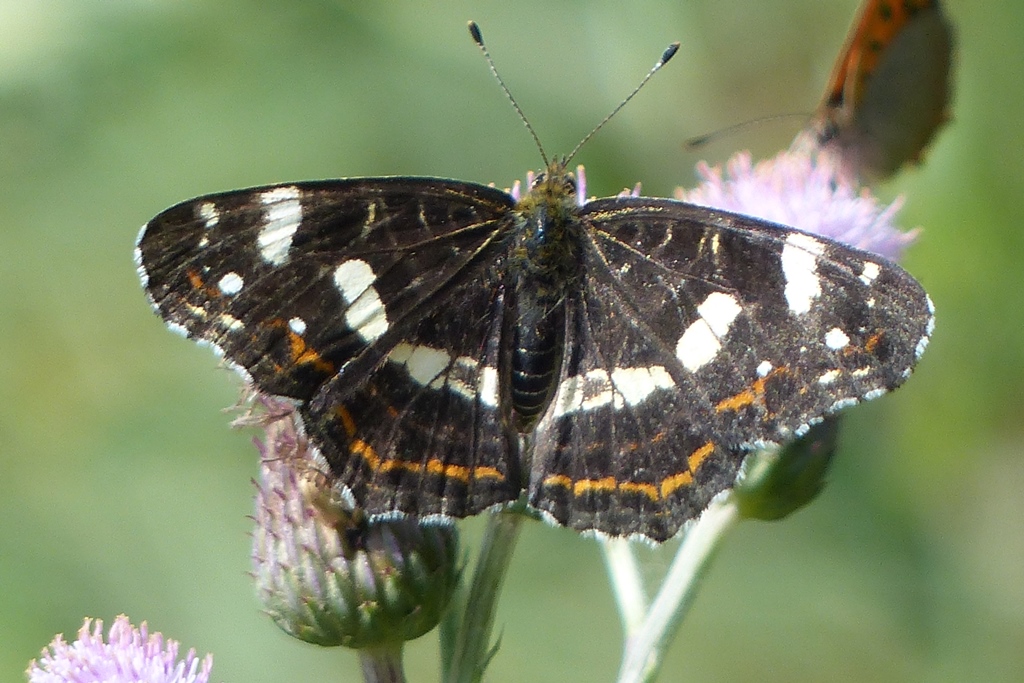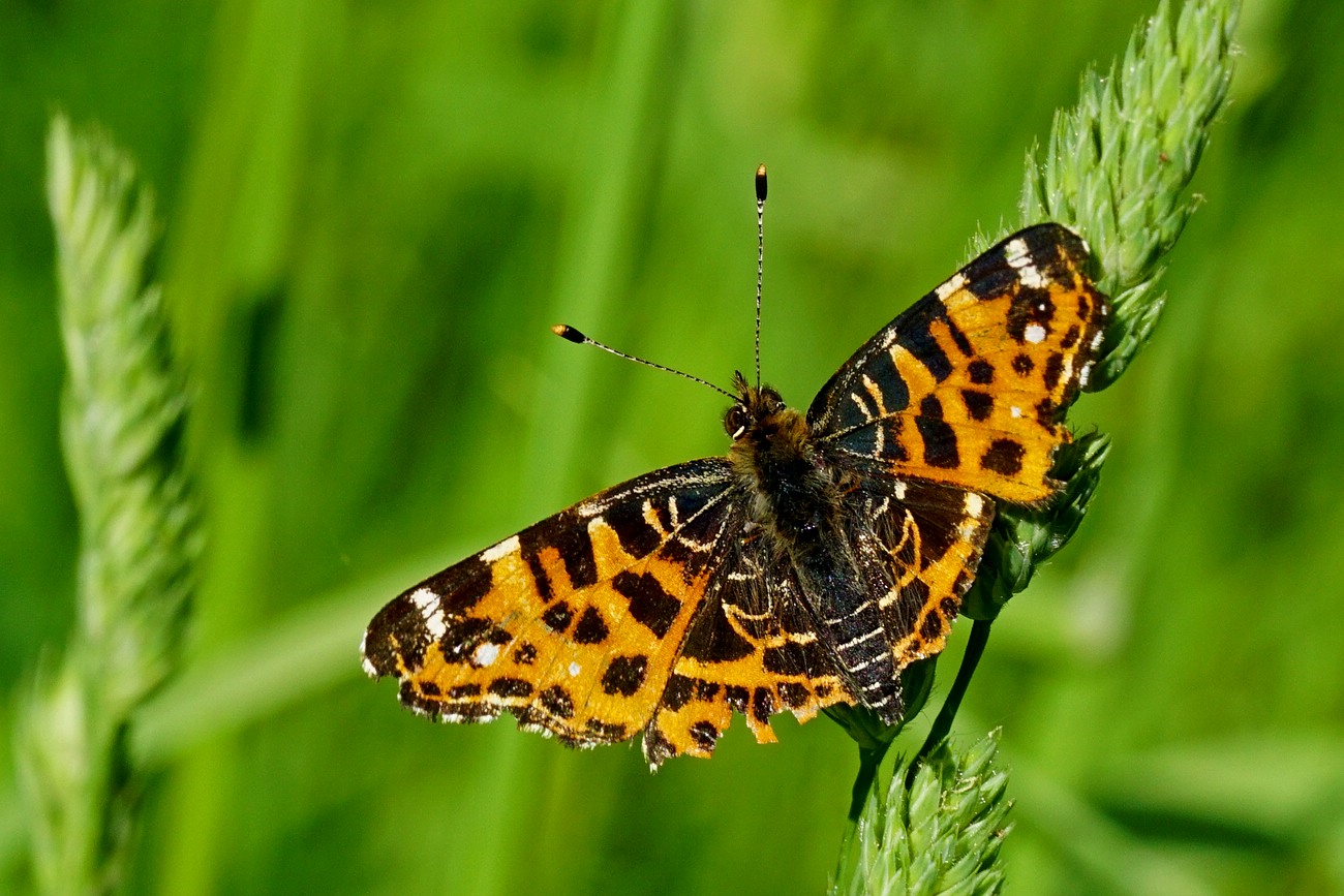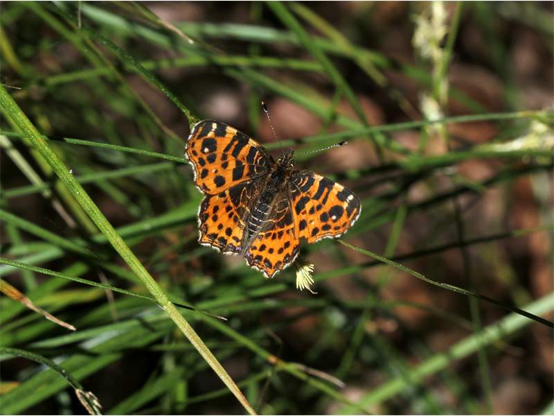 Landkärtchen, Sommergeneration der Schmetterlingsart auf Nektarspender Doldenblüte fotografiert, Falteroberseite im Sichtfeld, Ende Juni 2022, Auwald bei 06254 Horburg-Masslau (Sachsen-Anhalt) (© Heinz Sass)( Bild vergrößern)