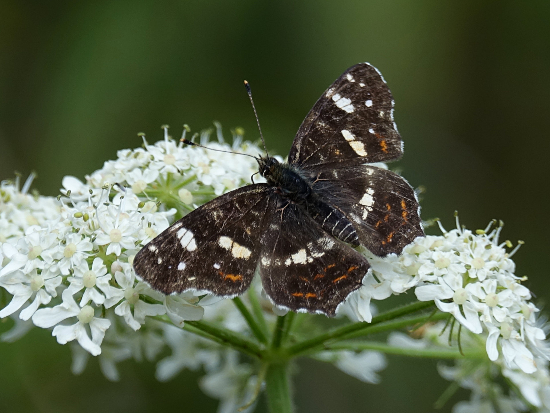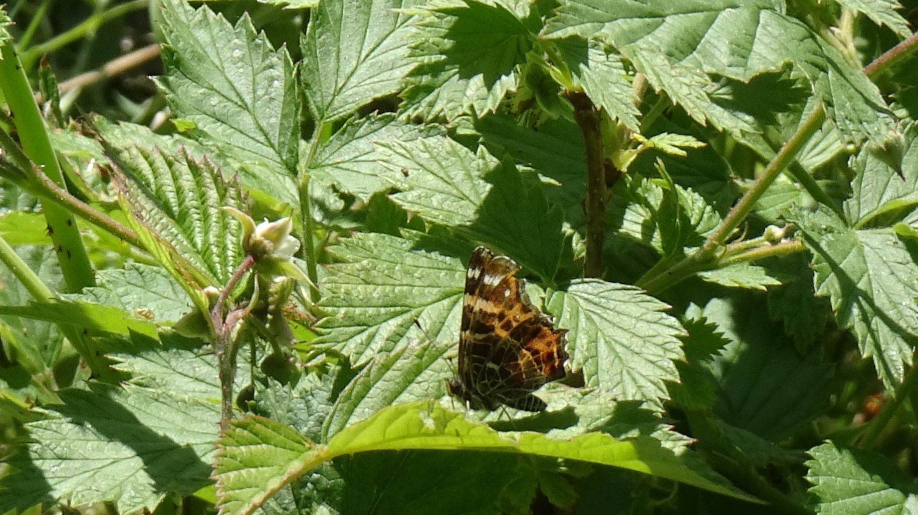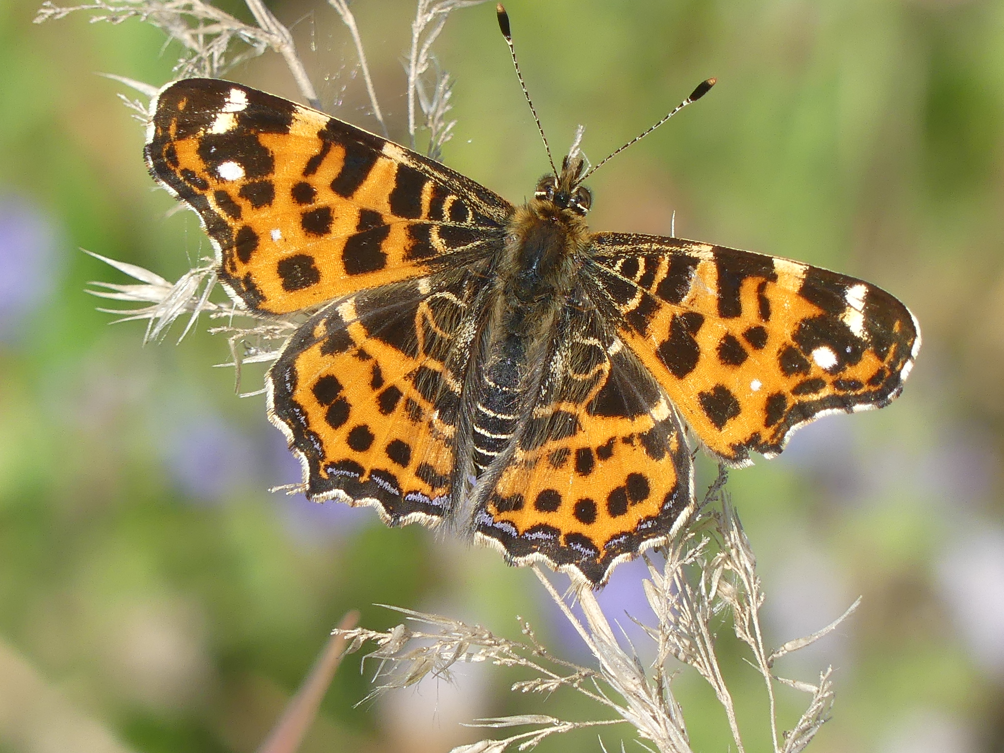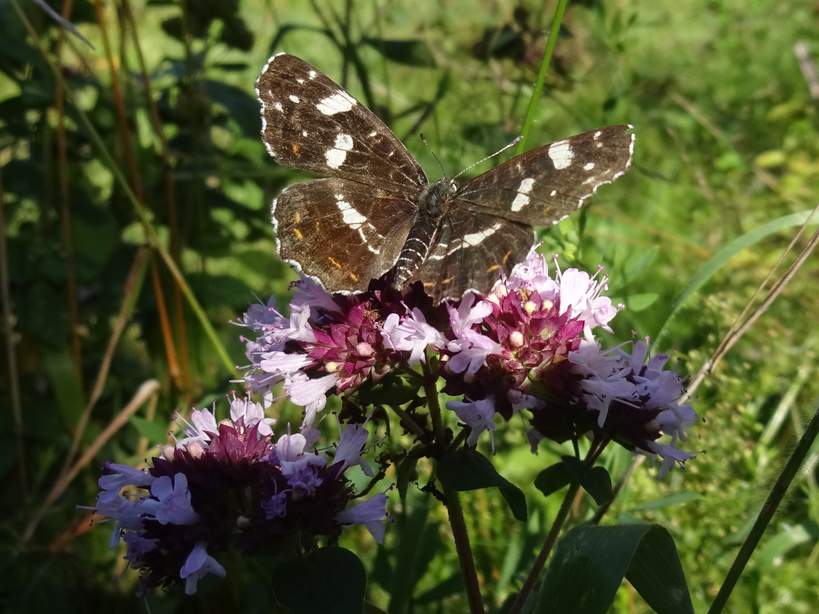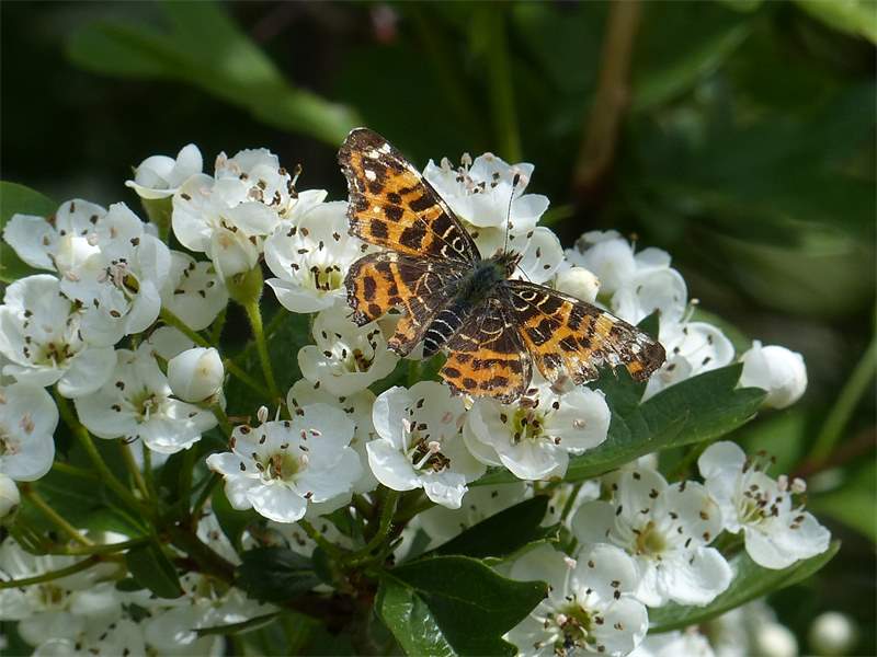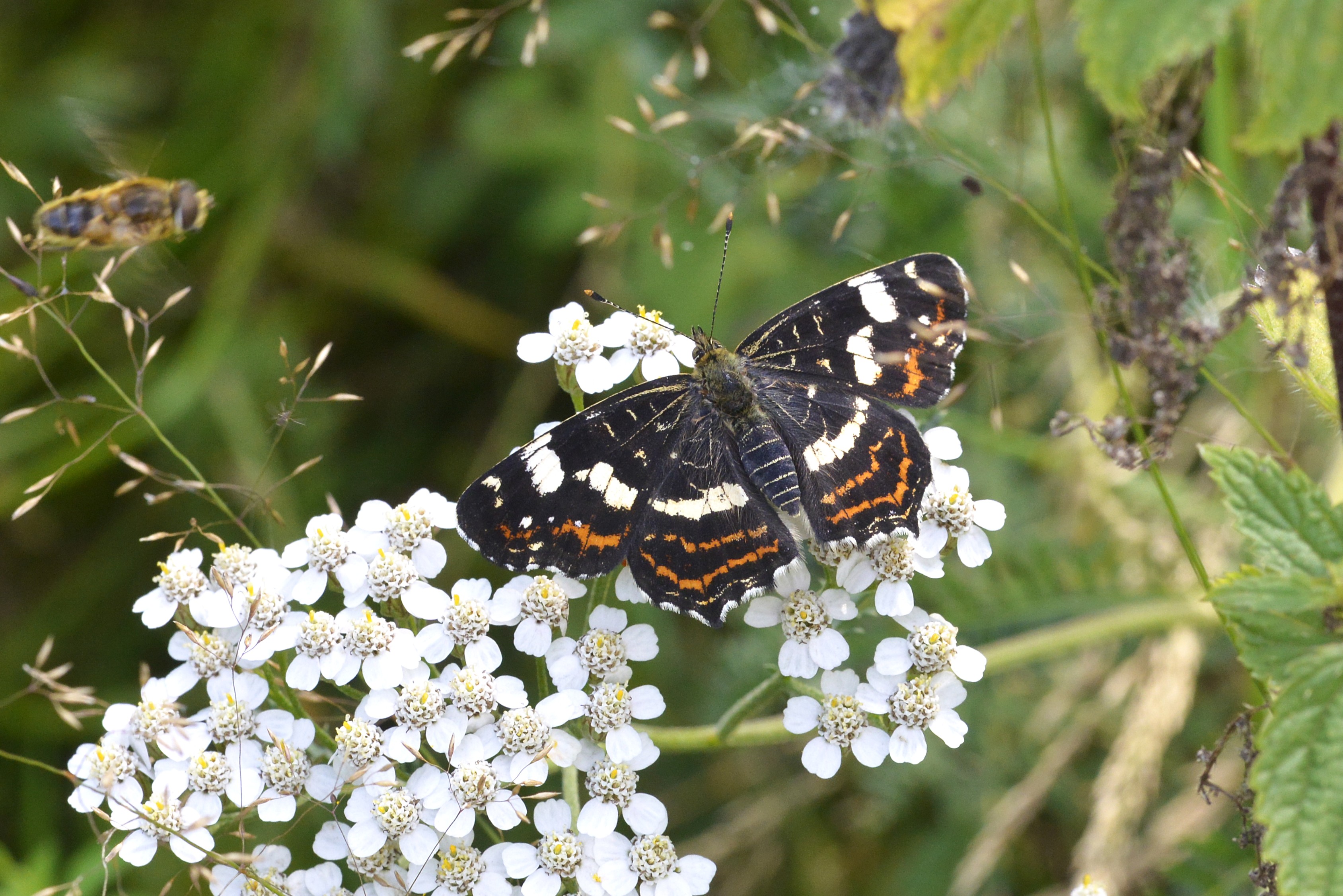 Landkärtchen, Sommergeneration der Schmetterlingsart auf Nektarspender Doldenblüte fotografiert, Falteroberseite im Sichtfeld, Ende Juni 2022, Auwald bei 06254 Horburg-Masslau (Sachsen-Anhalt) (© Heinz Sass)( Bild vergrößern)