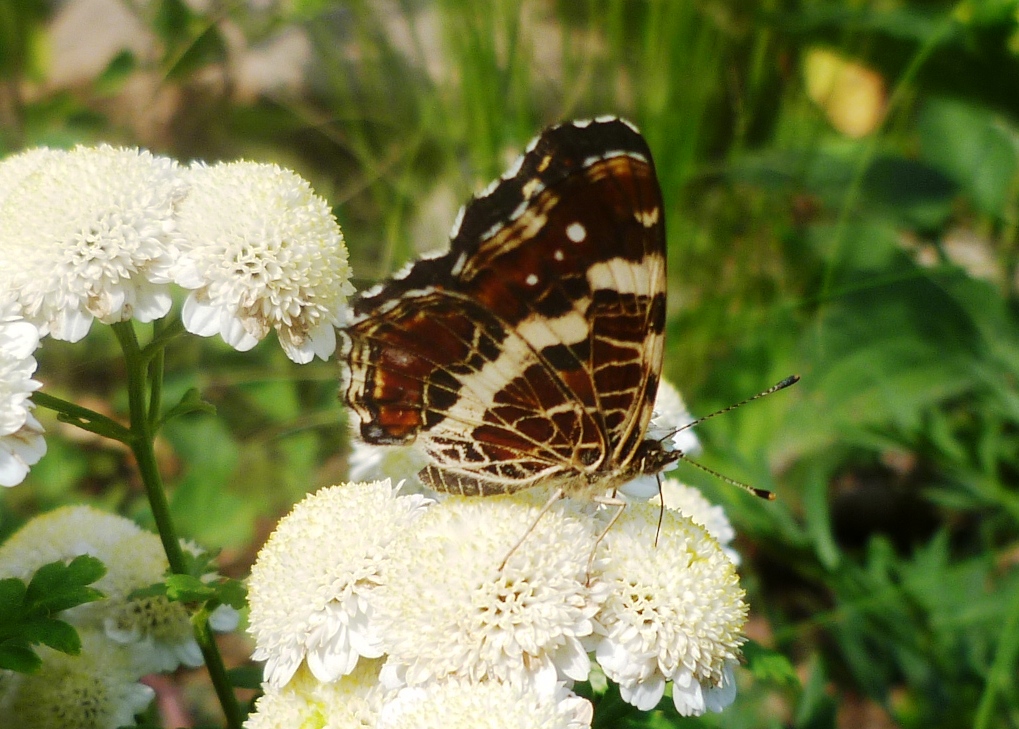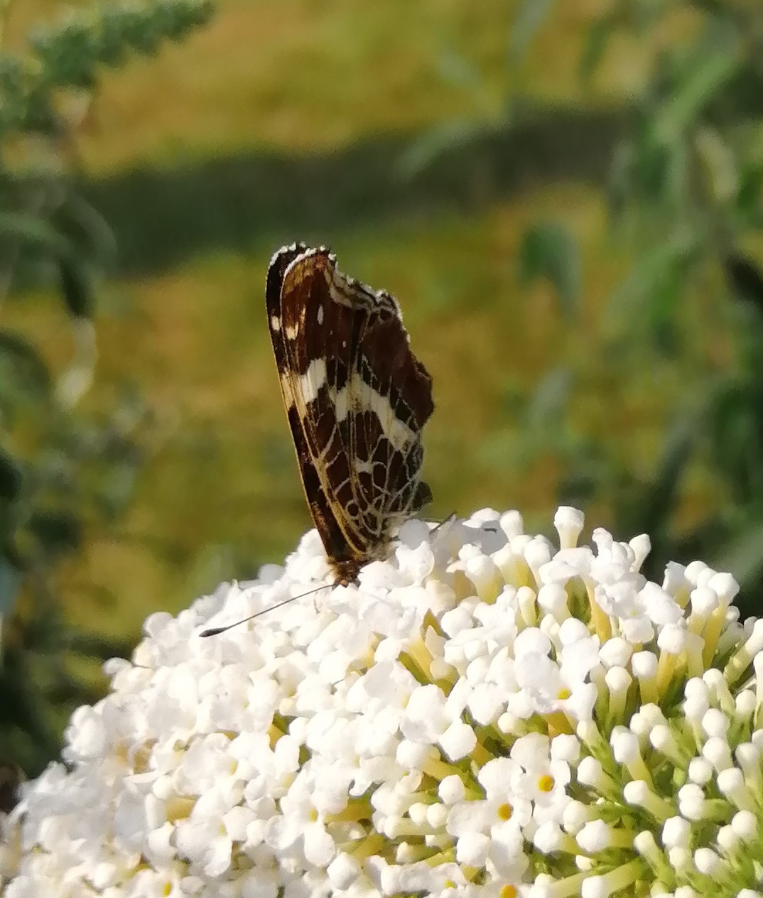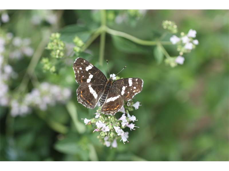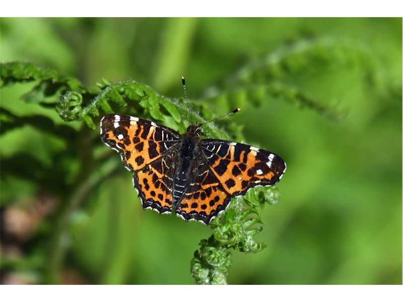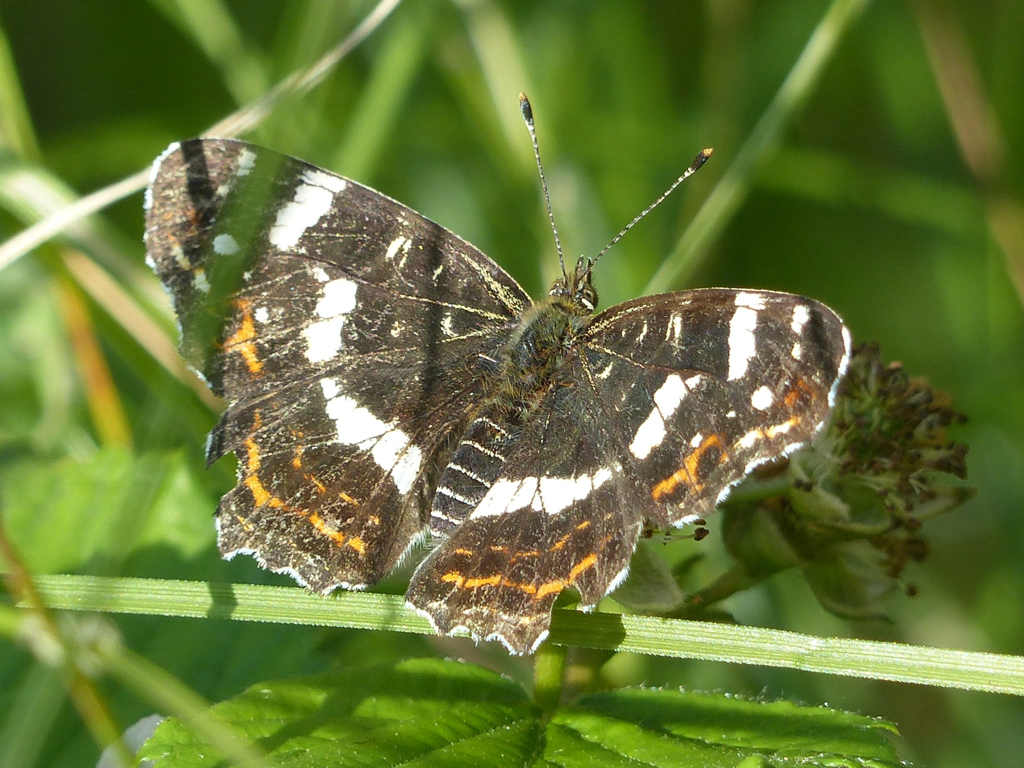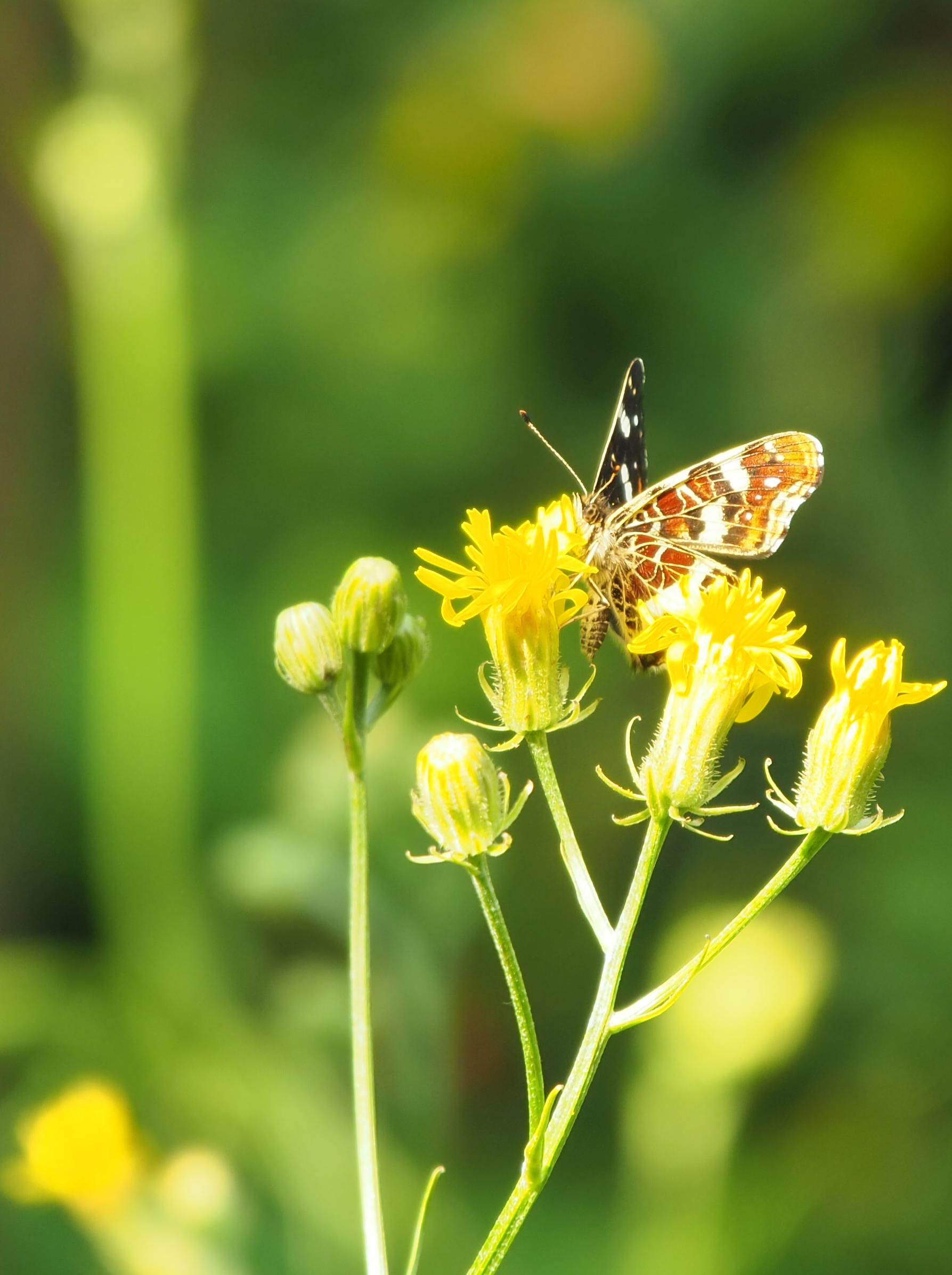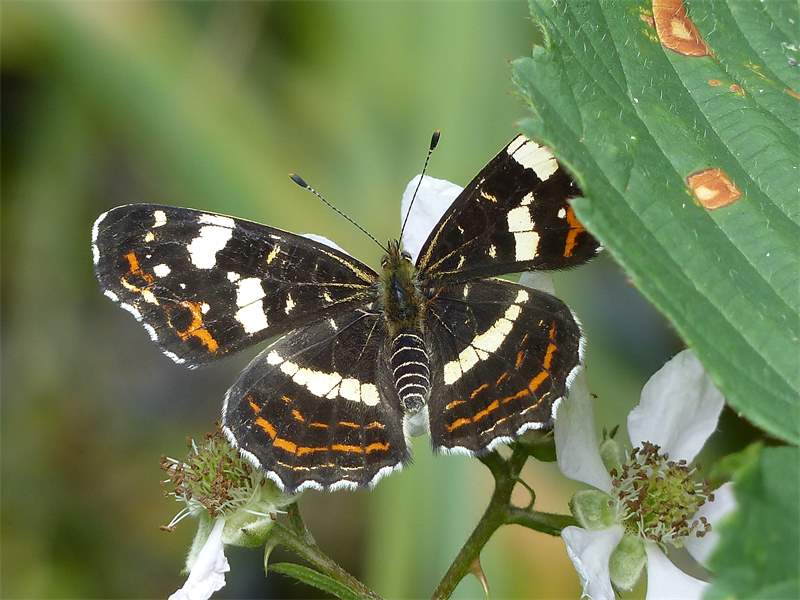Landkärtchen, Sommergeneration der Schmetterlingsart auf Nektarspender Doldenblüte fotografiert, Falteroberseite im Sichtfeld, Ende Juni 2022, Auwald bei 06254 Horburg-Masslau (Sachsen-Anhalt) (© Heinz Sass)( Bild vergrößern)