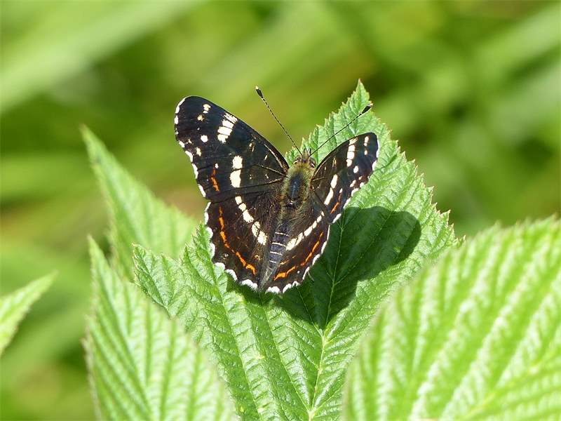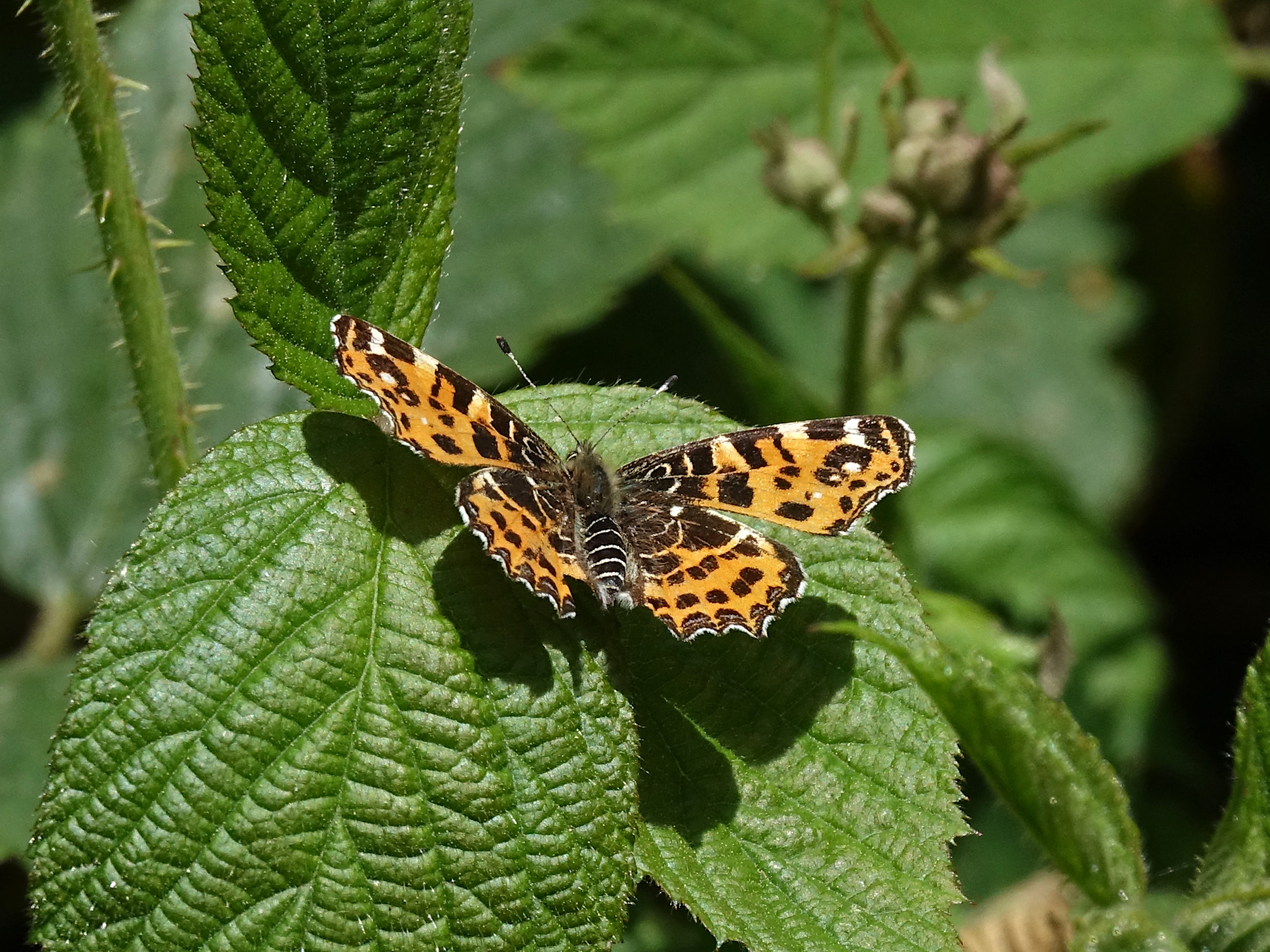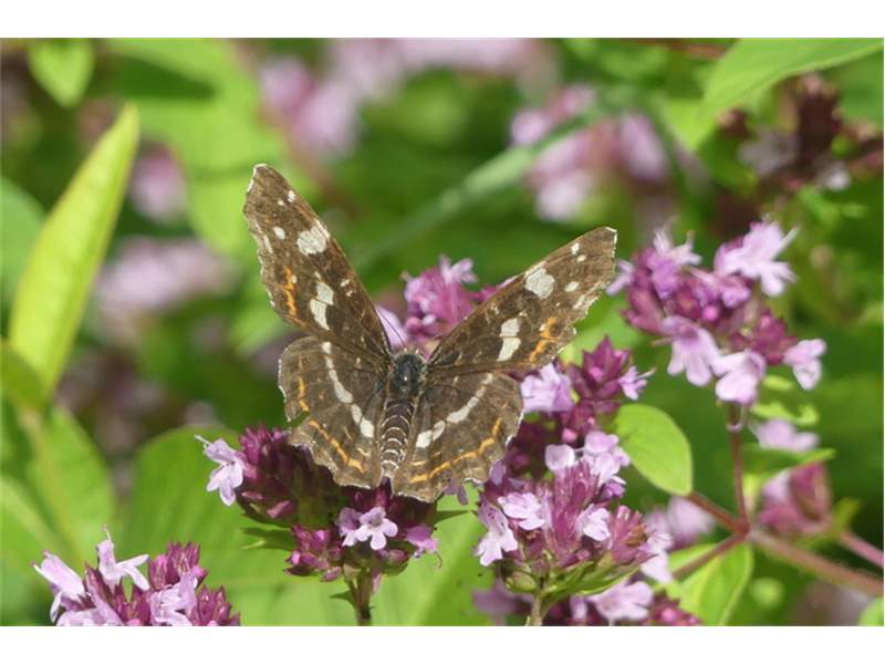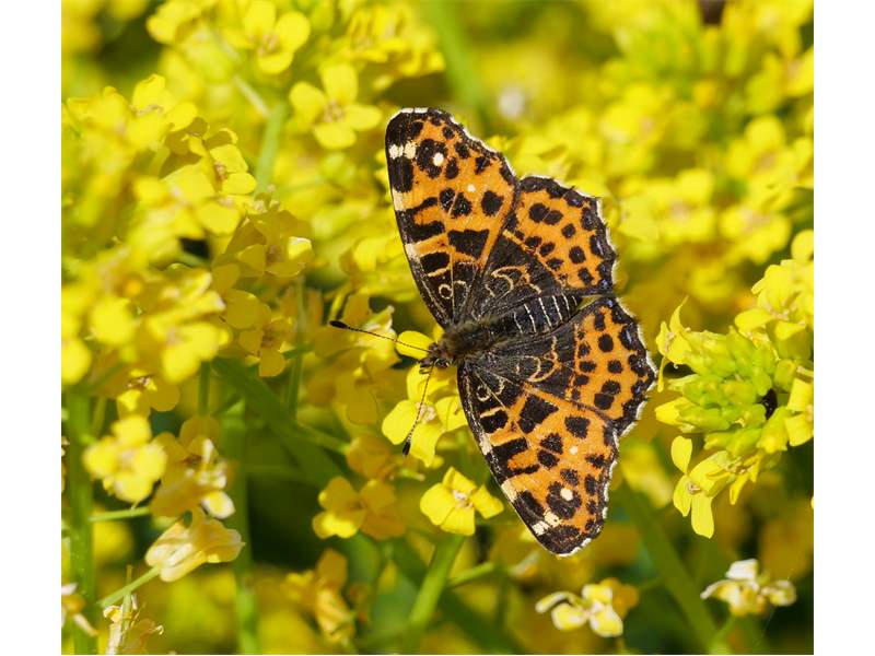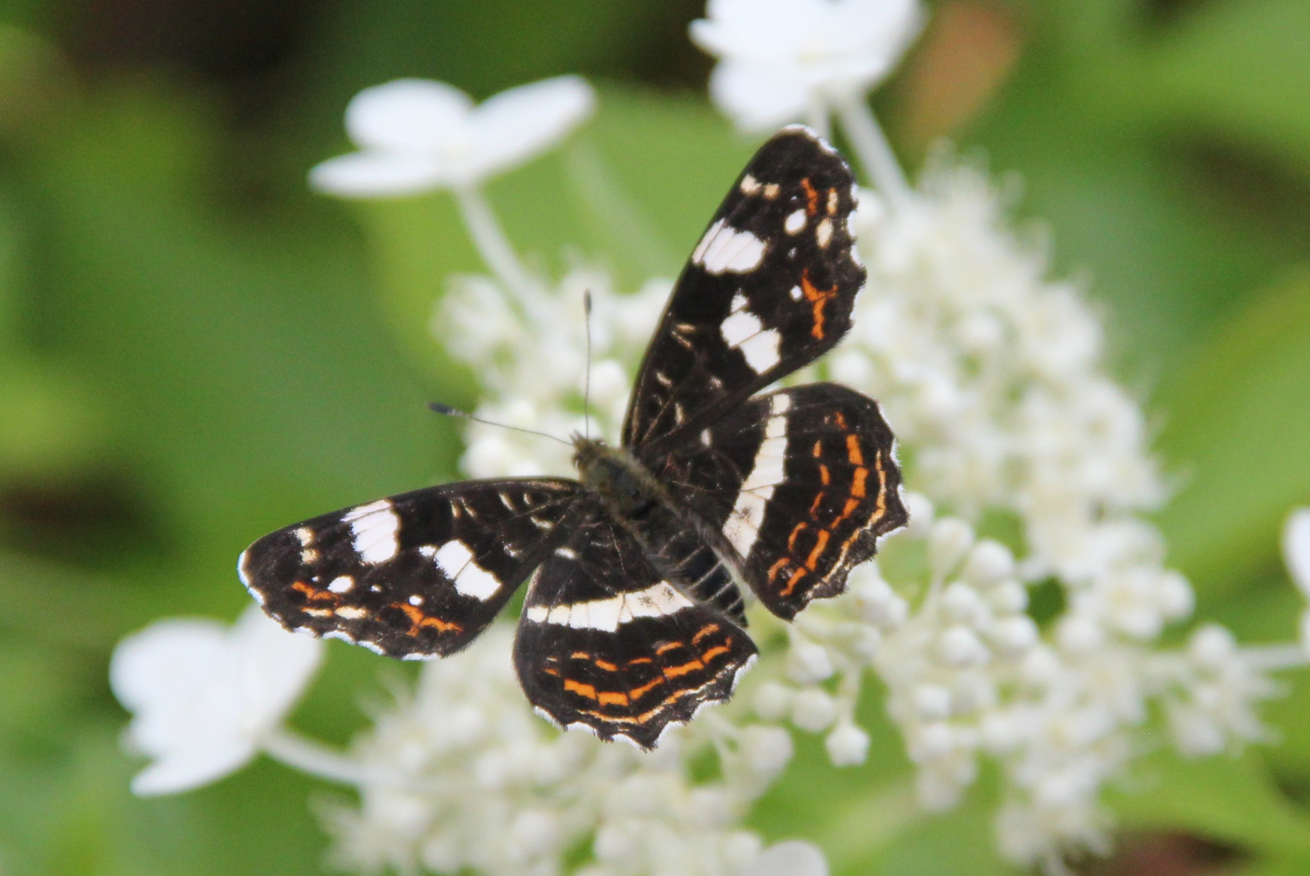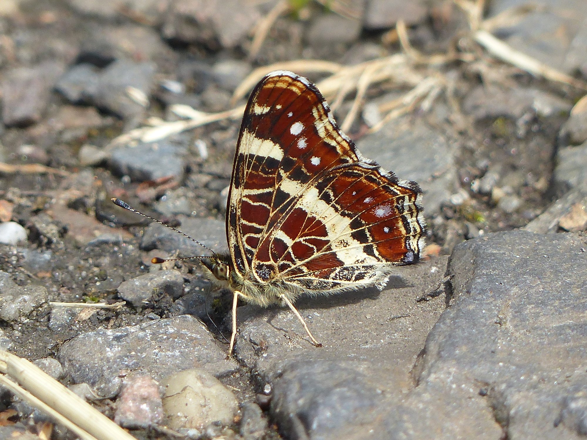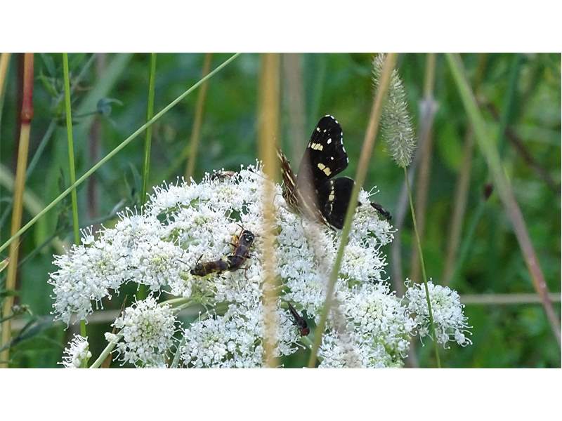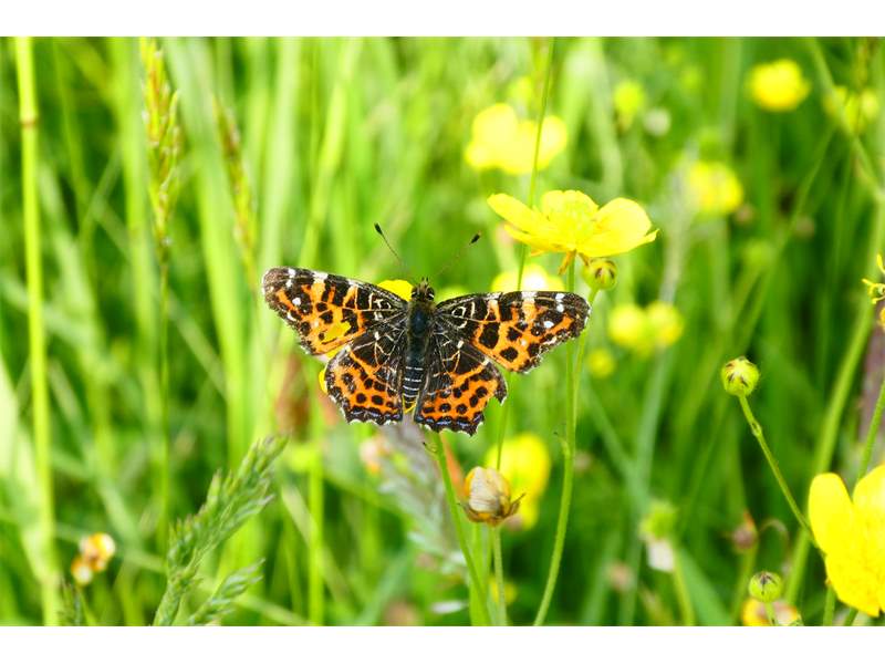 Landkärtchen, Sommergeneration der Schmetterlingsart auf Nektarspender Doldenblüte fotografiert, Falteroberseite im Sichtfeld, Ende Juni 2022, Auwald bei 06254 Horburg-Masslau (Sachsen-Anhalt) (© Heinz Sass)( Bild vergrößern)