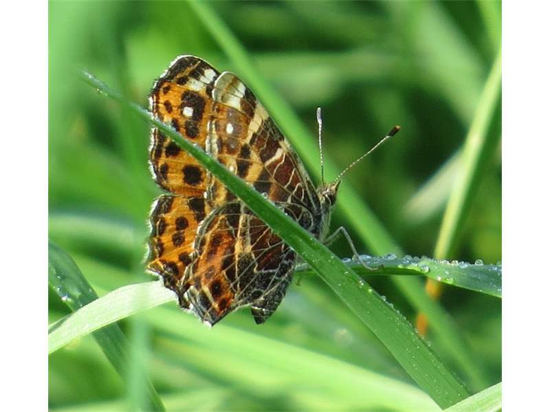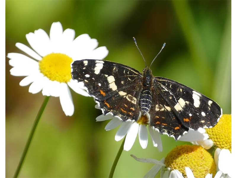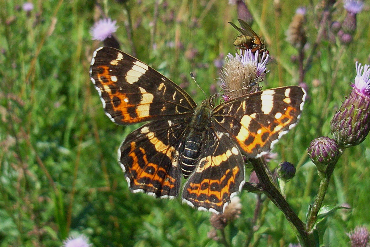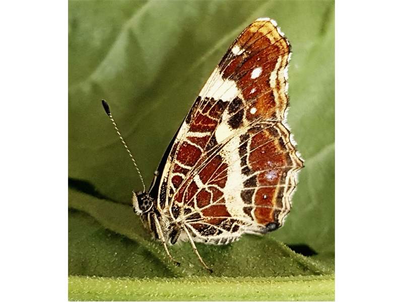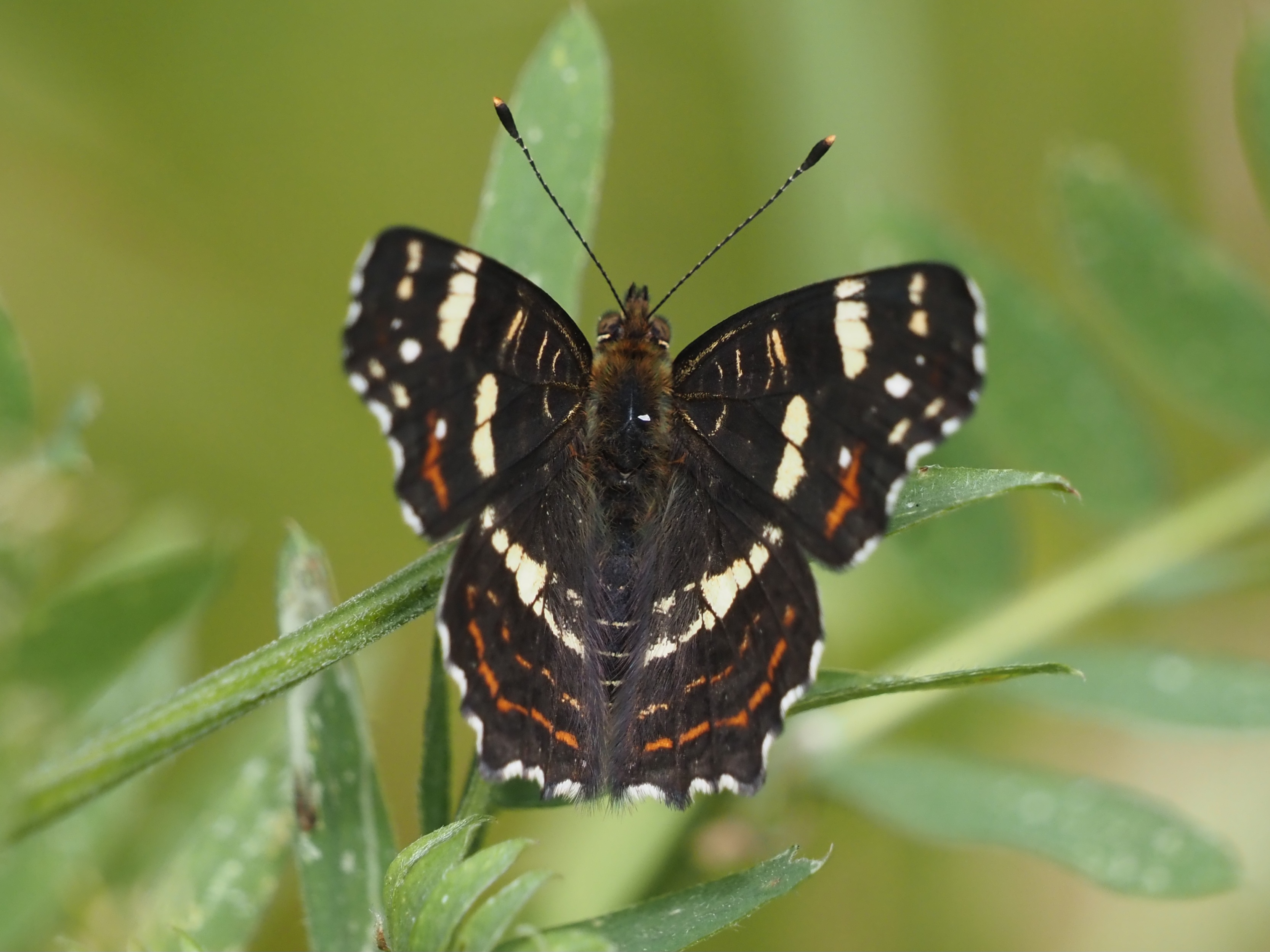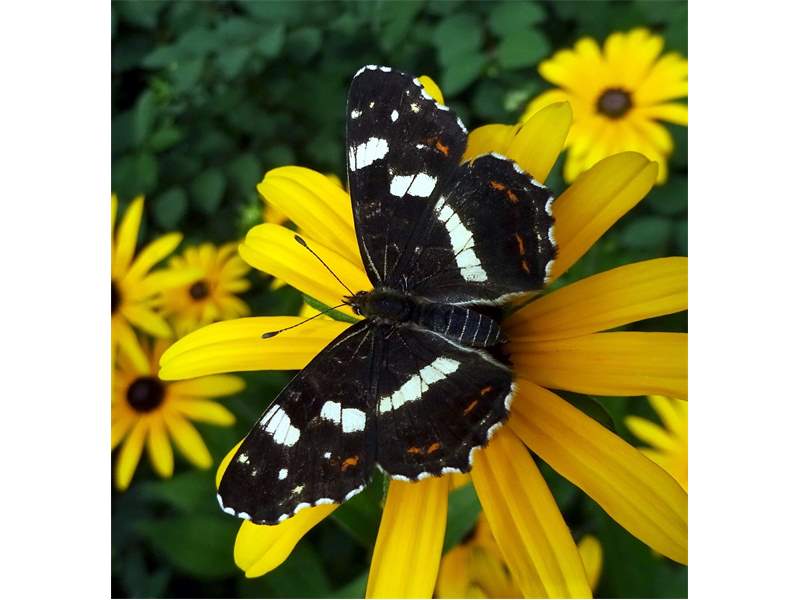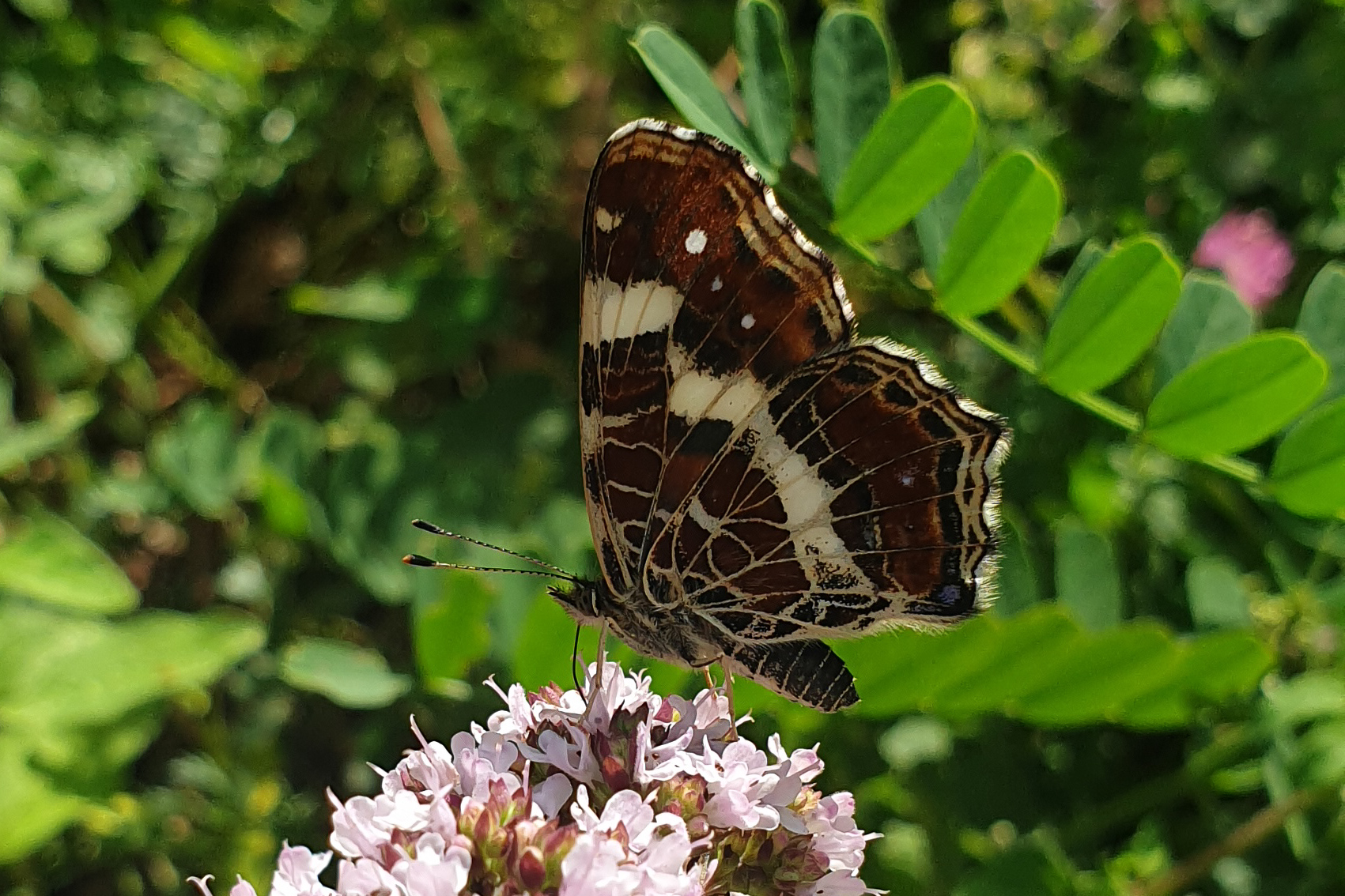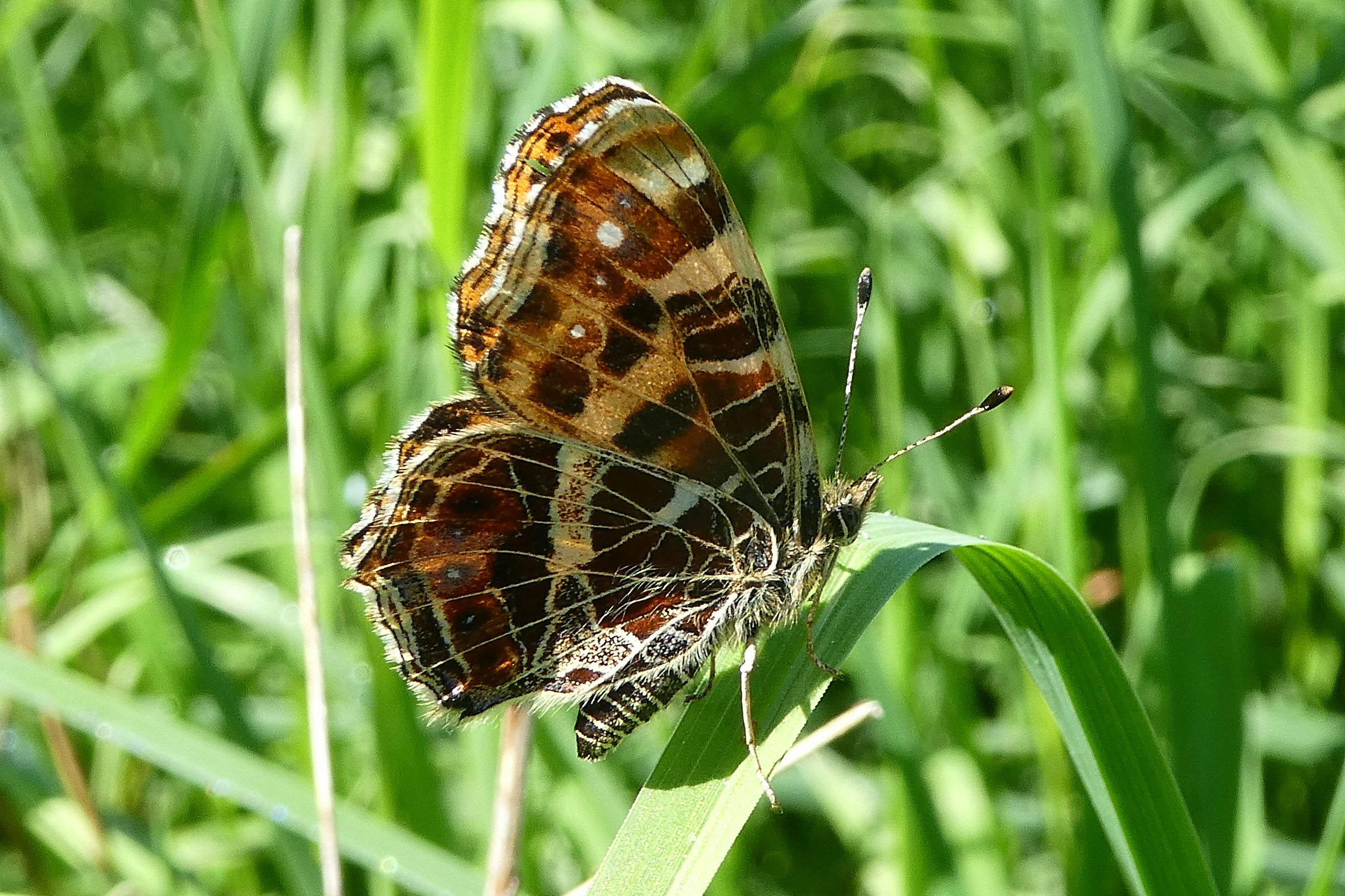 Landkärtchen, Sommergeneration der Schmetterlingsart auf Nektarspender Doldenblüte fotografiert, Falteroberseite im Sichtfeld, Ende Juni 2022, Auwald bei 06254 Horburg-Masslau (Sachsen-Anhalt) (© Heinz Sass)( Bild vergrößern)