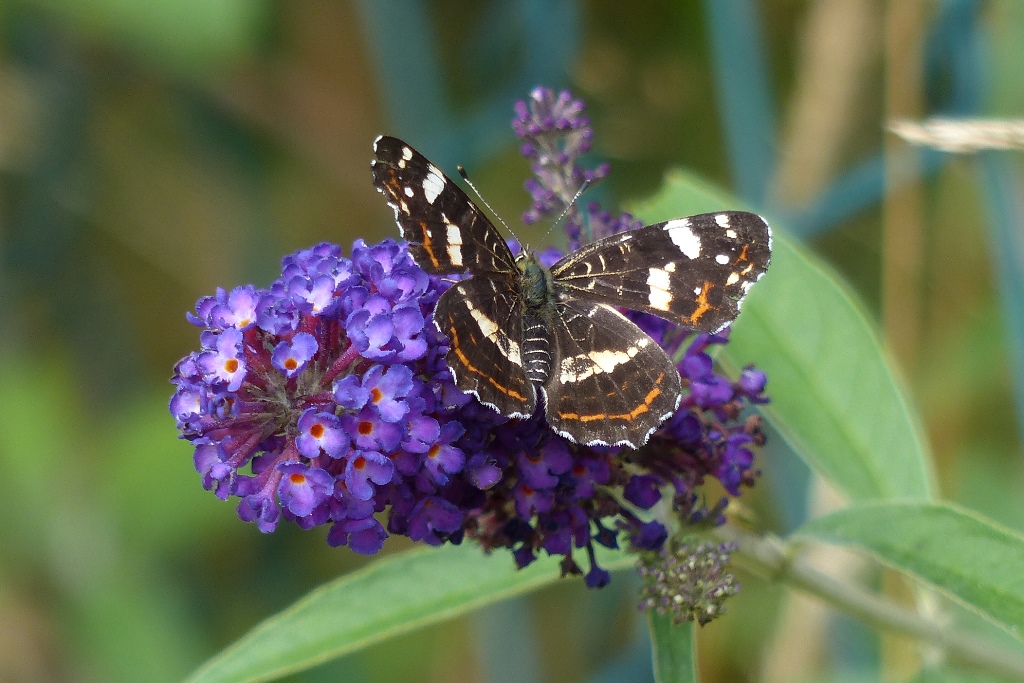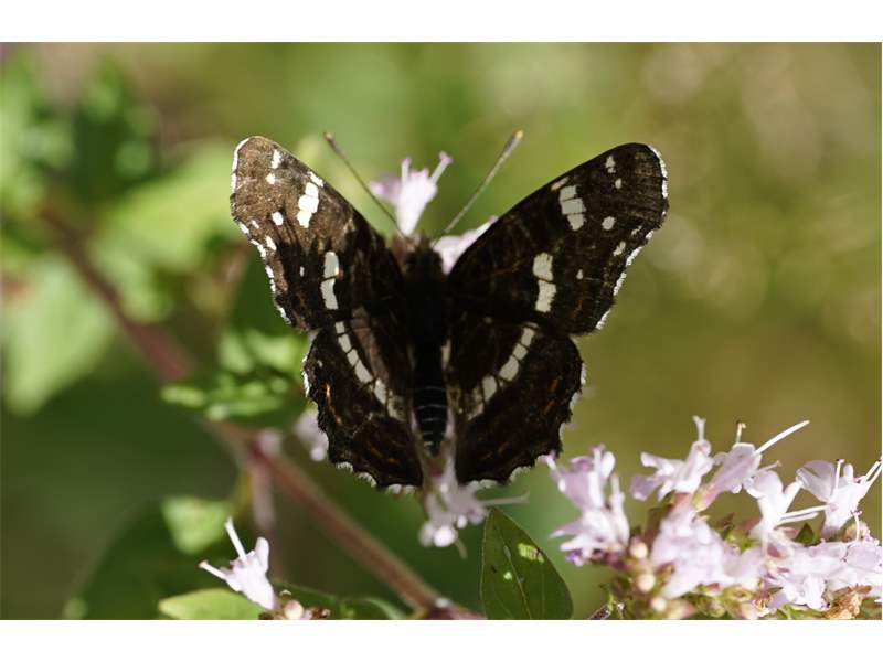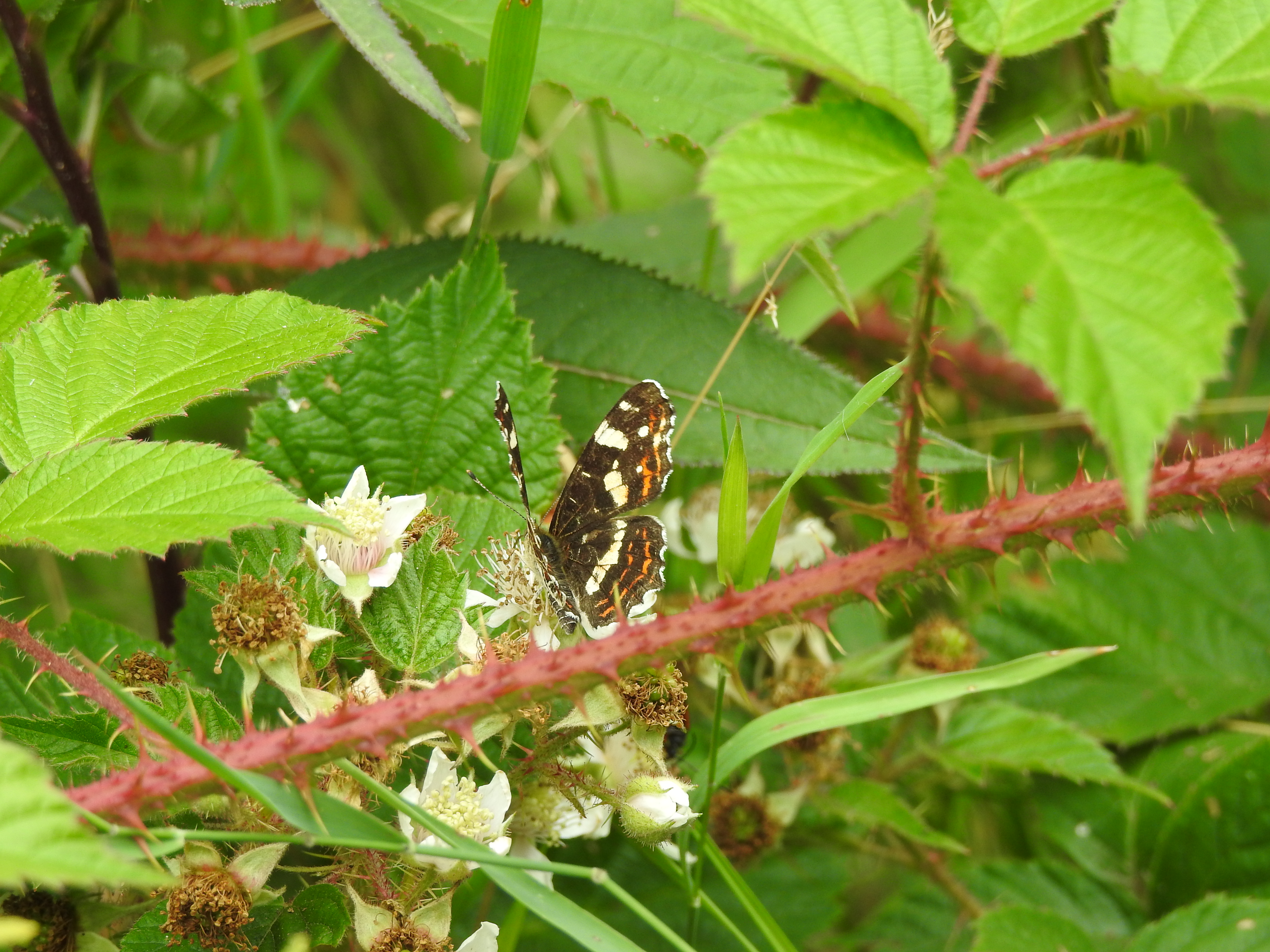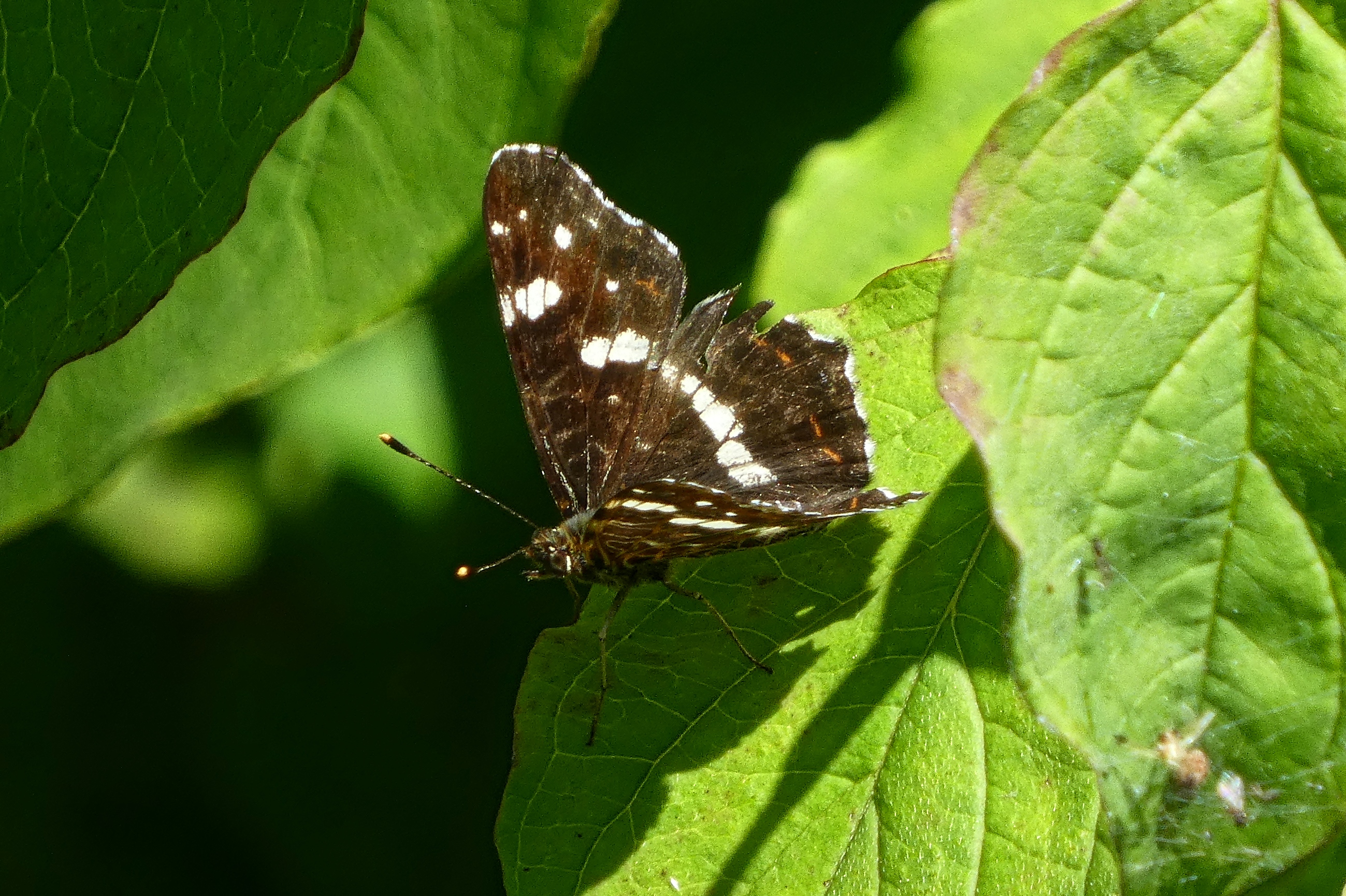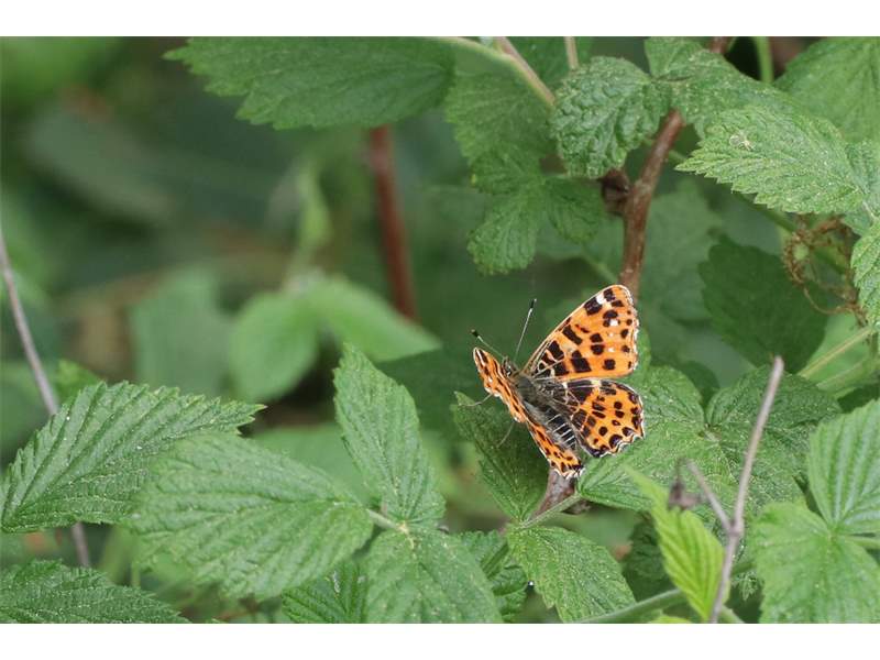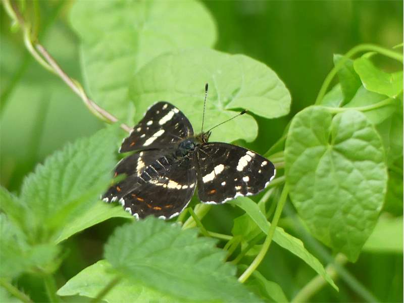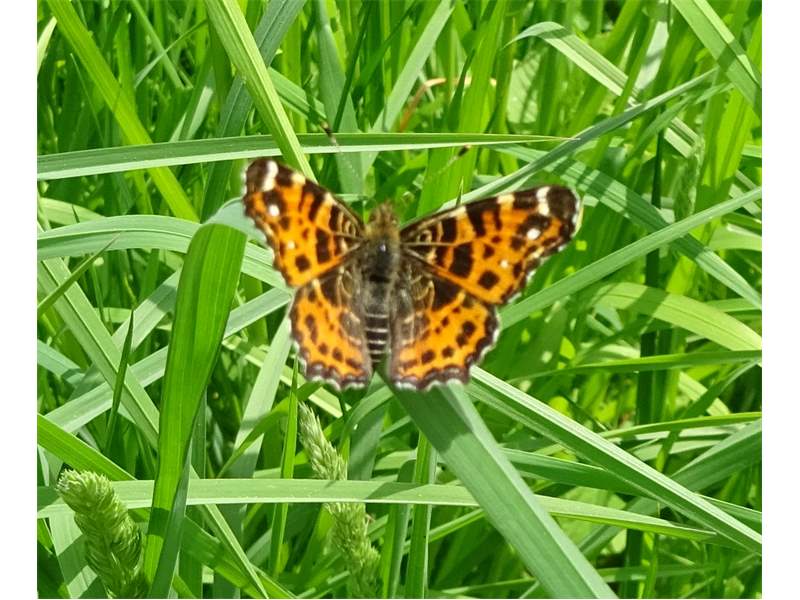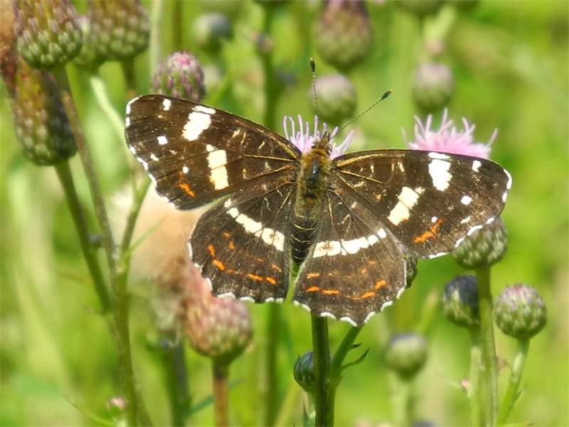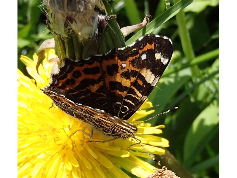 Landkärtchen, Sommergeneration der Schmetterlingsart auf Nektarspender Doldenblüte fotografiert, Falteroberseite im Sichtfeld, Ende Juni 2022, Auwald bei 06254 Horburg-Masslau (Sachsen-Anhalt) (© Heinz Sass)( Bild vergrößern)