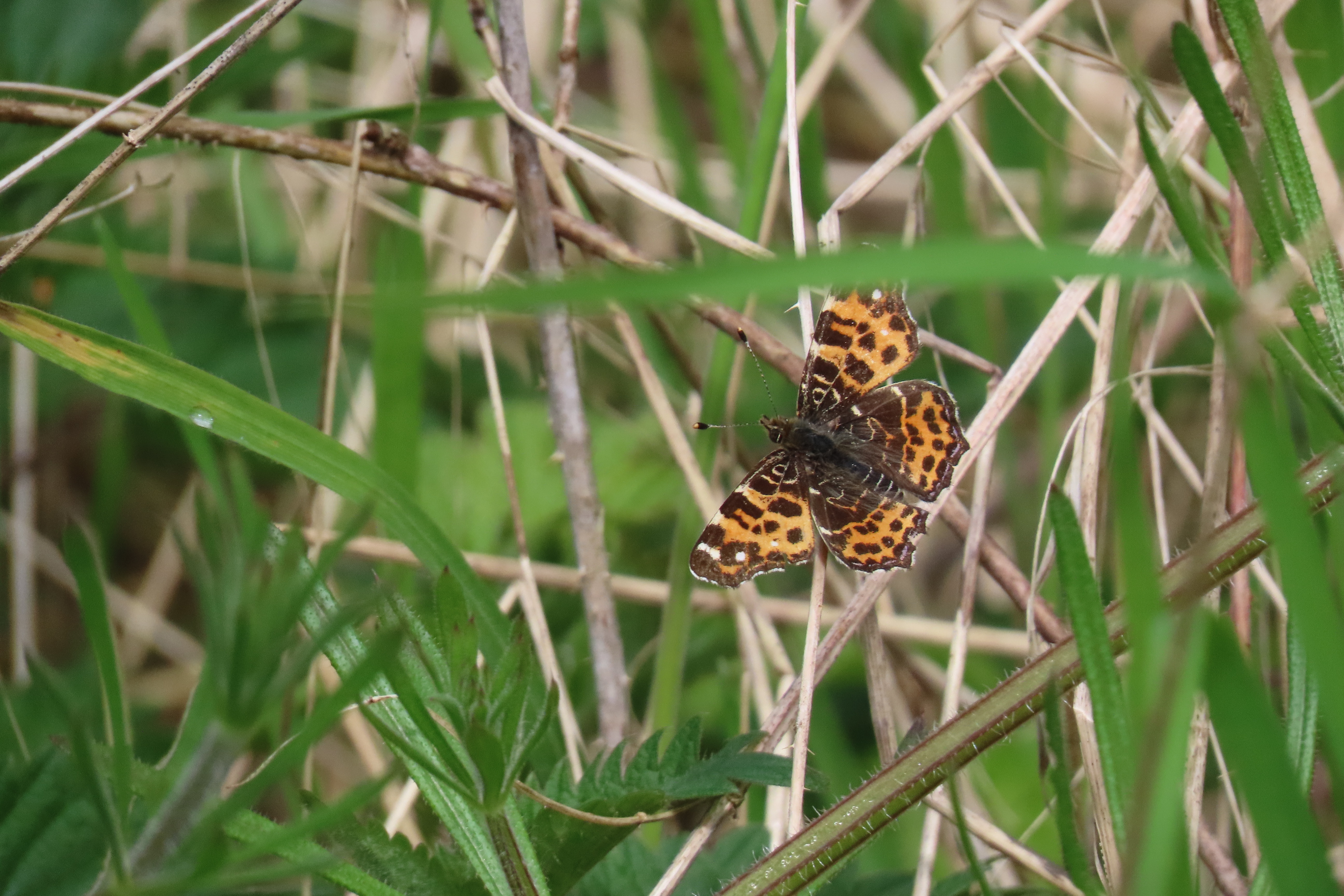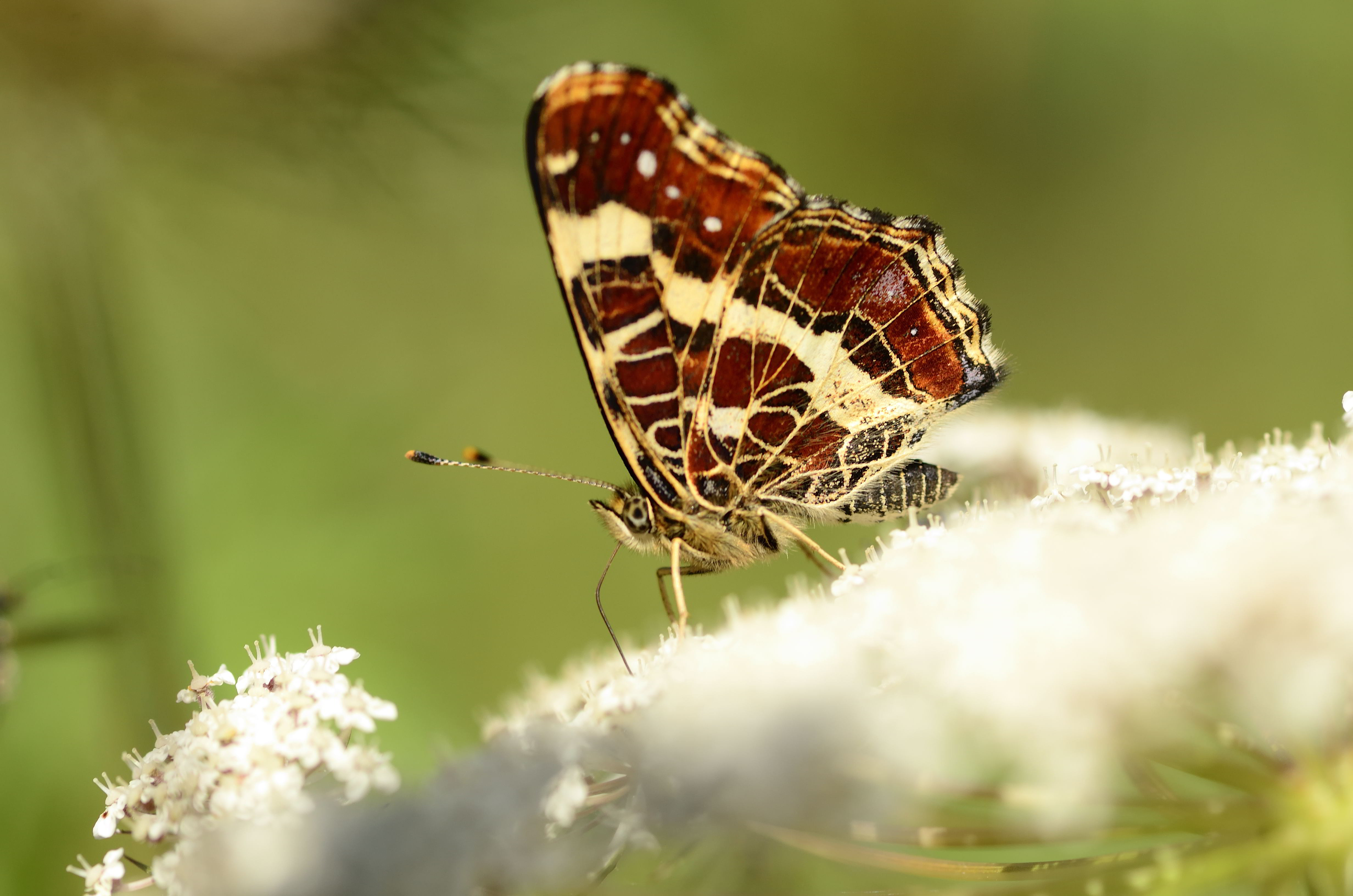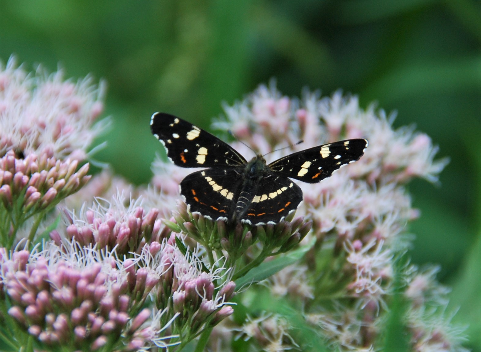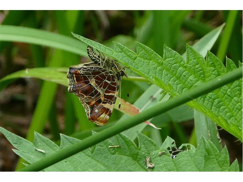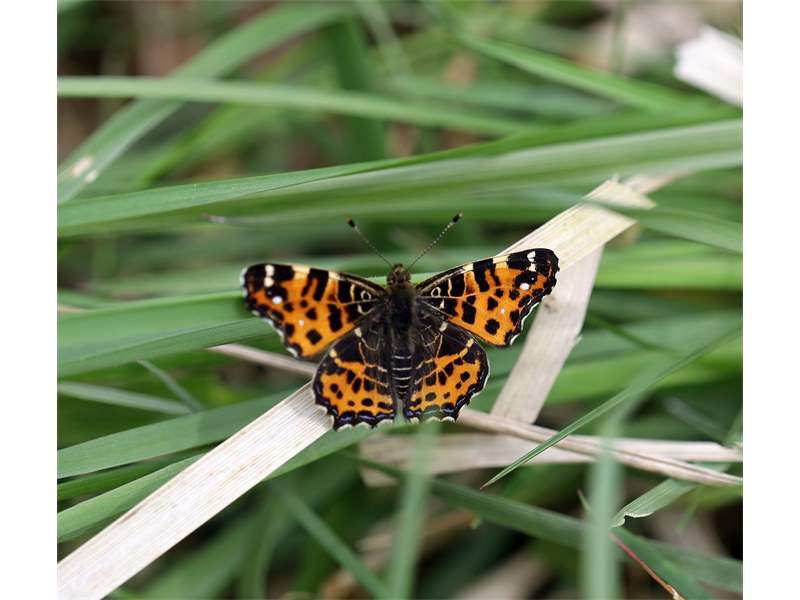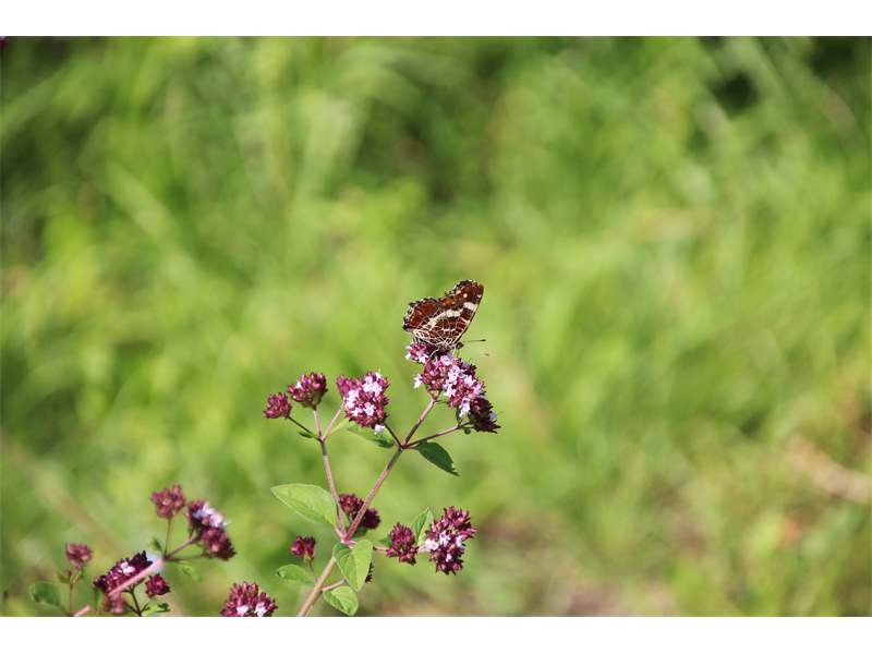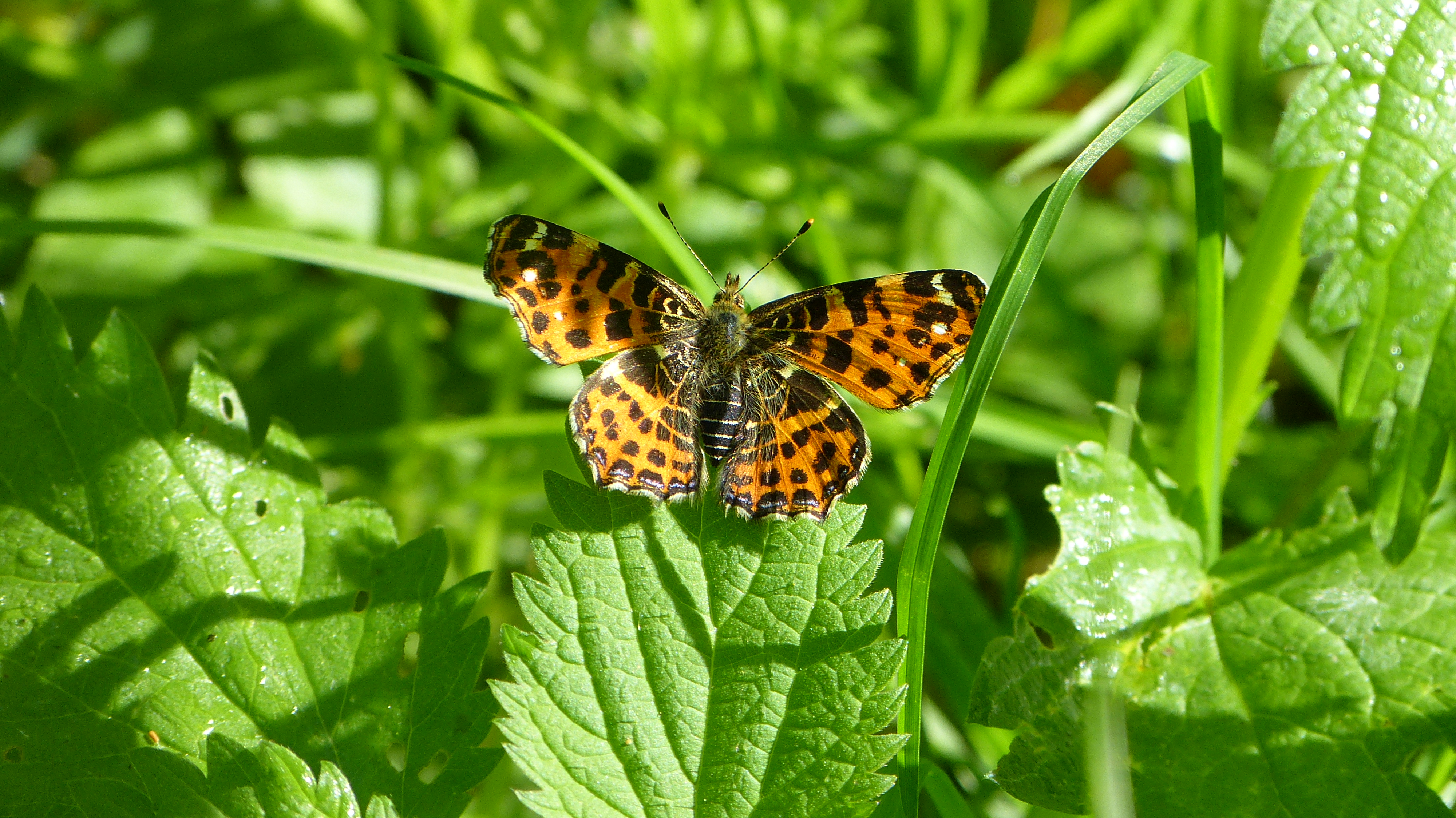 Landkärtchen, Sommergeneration der Schmetterlingsart auf Nektarspender Doldenblüte fotografiert, Falteroberseite im Sichtfeld, Ende Juni 2022, Auwald bei 06254 Horburg-Masslau (Sachsen-Anhalt) (© Heinz Sass)( Bild vergrößern)