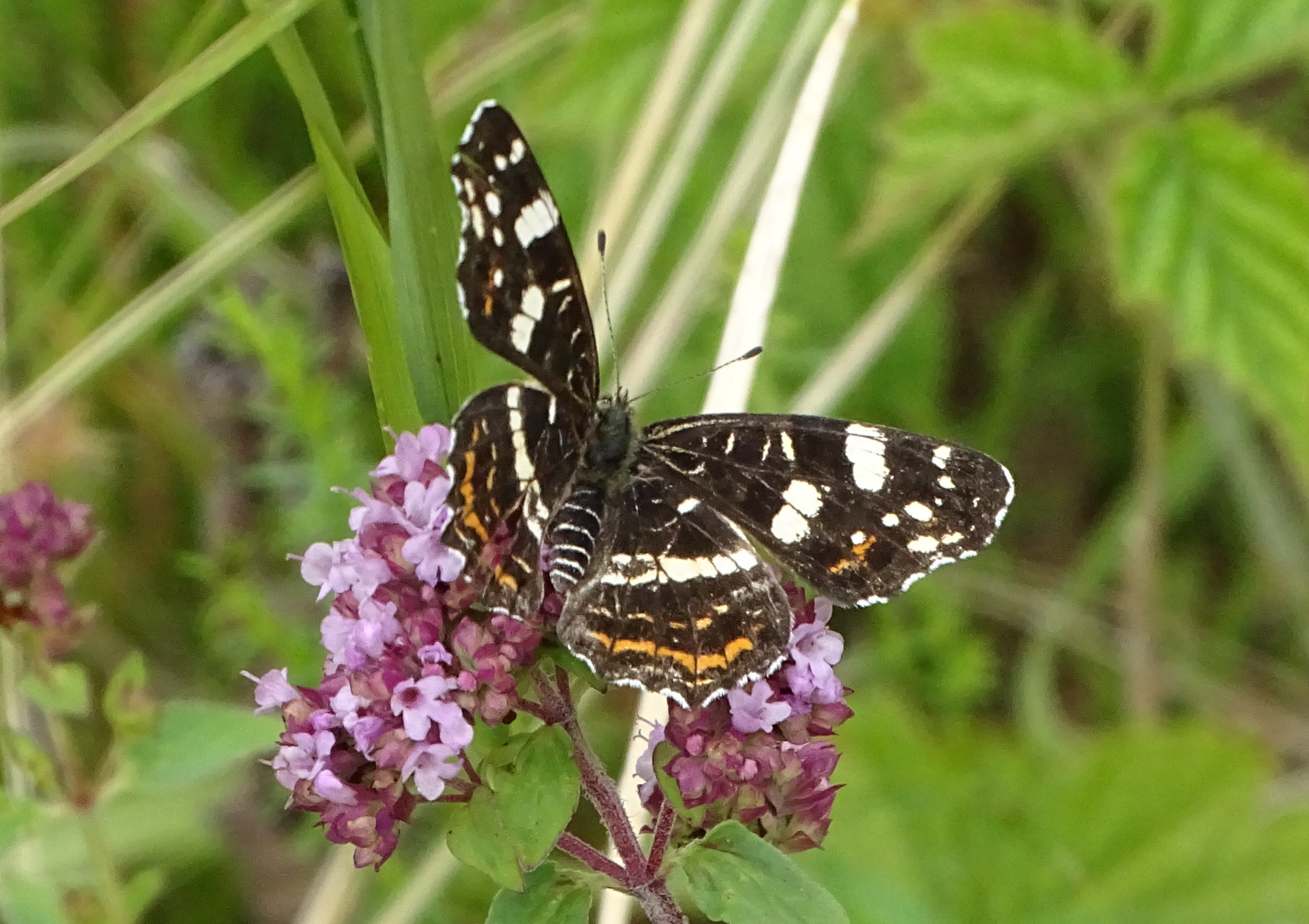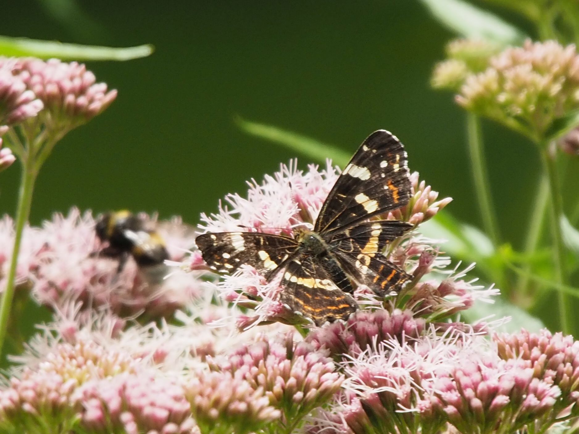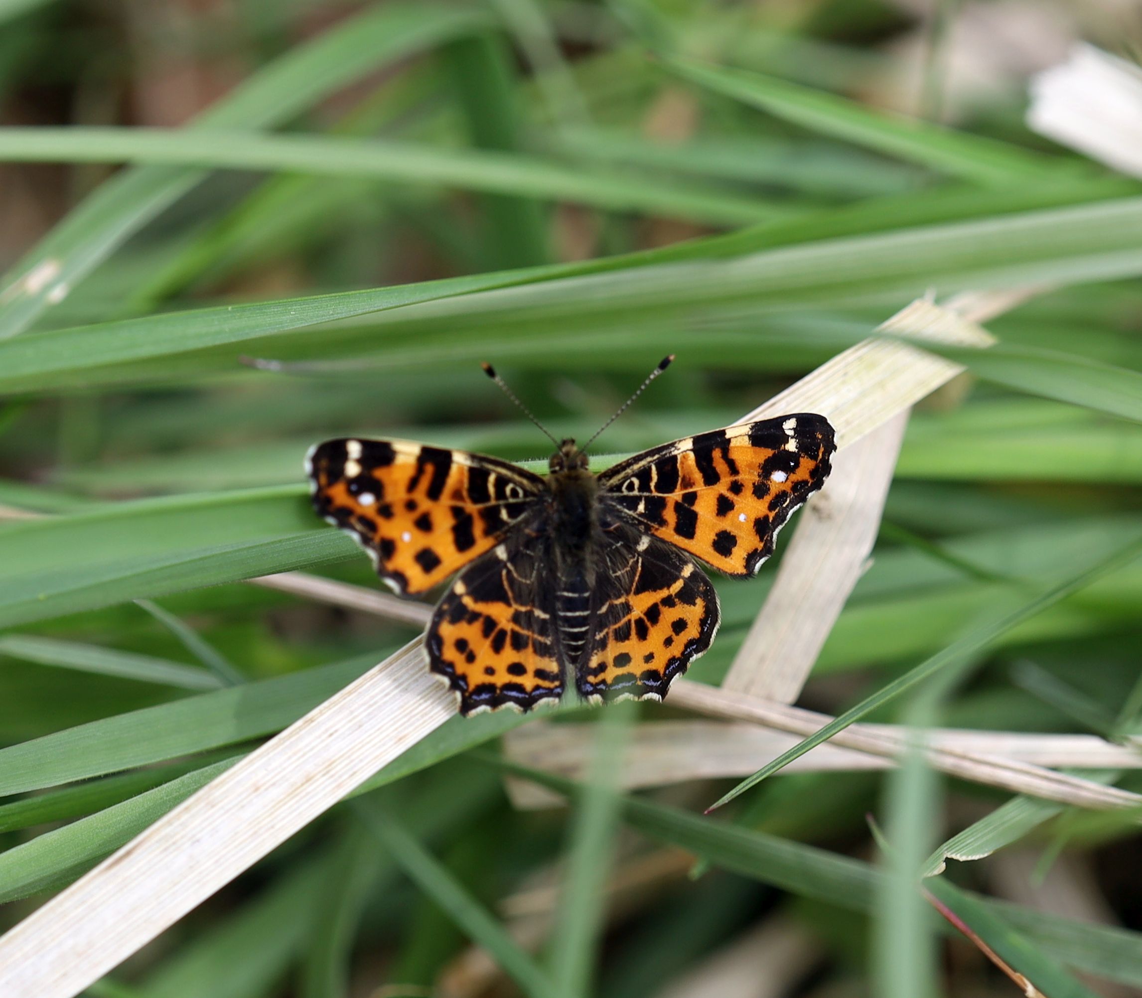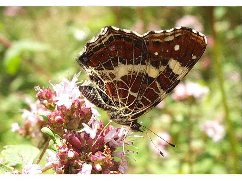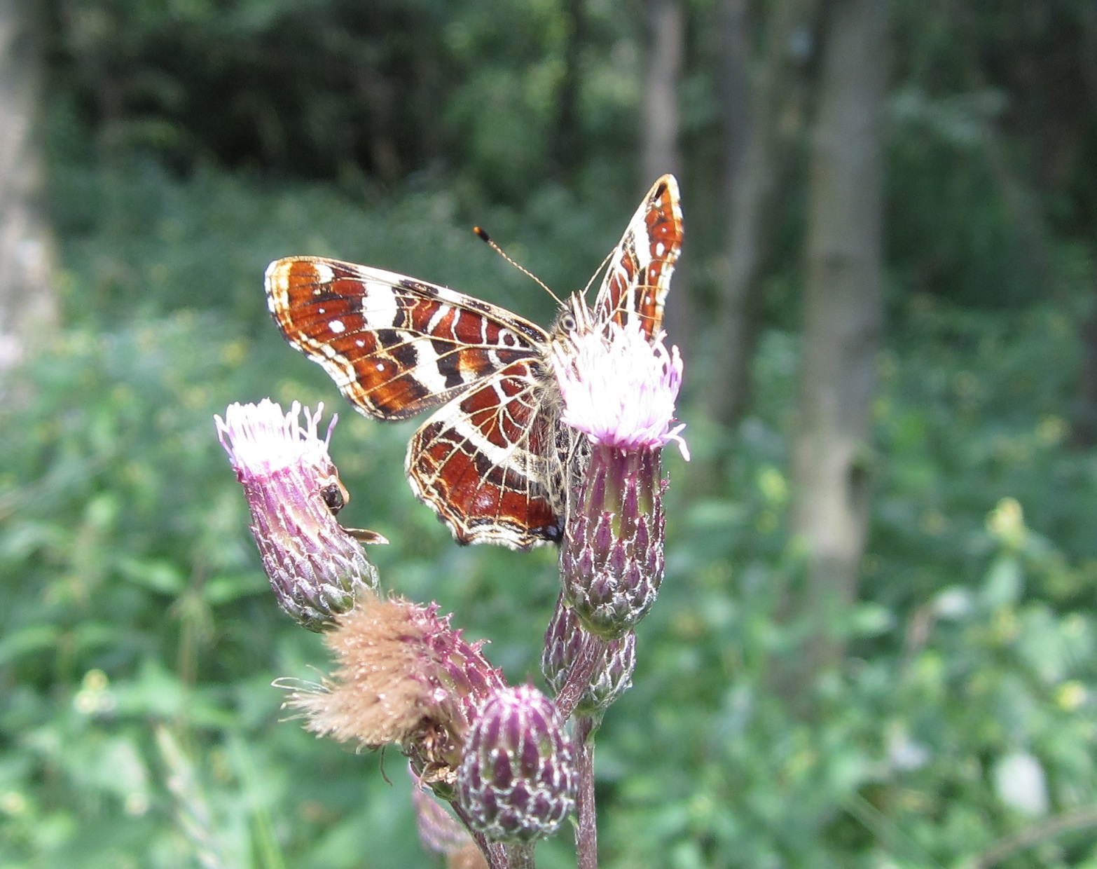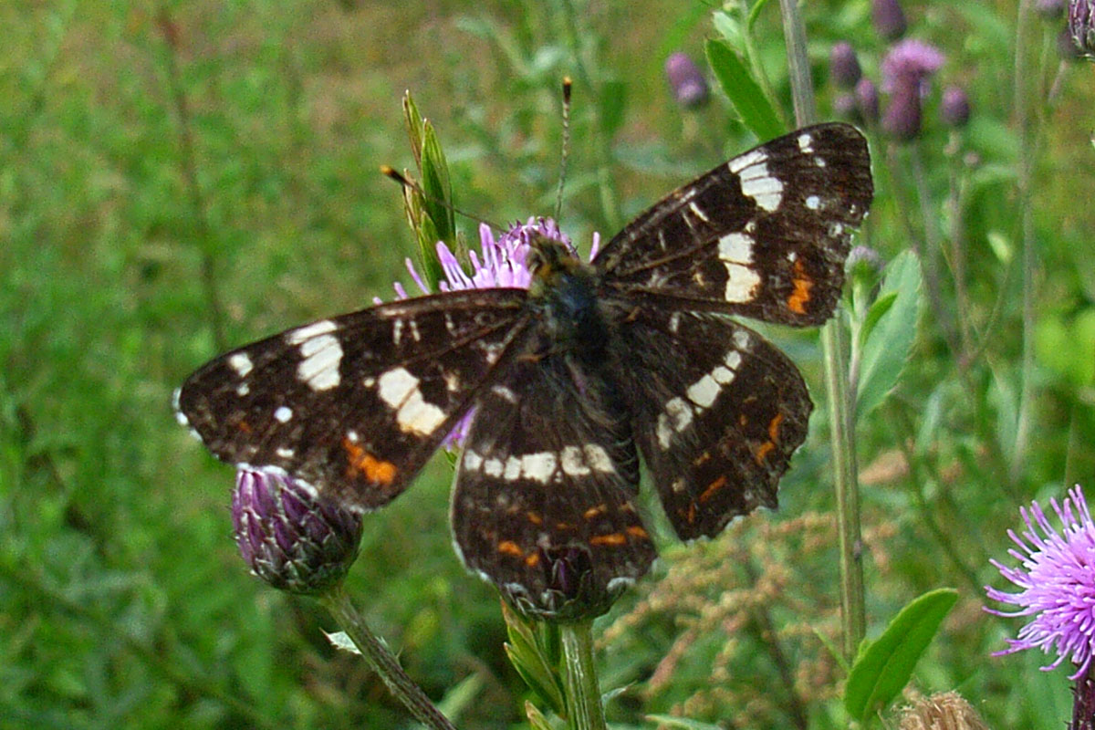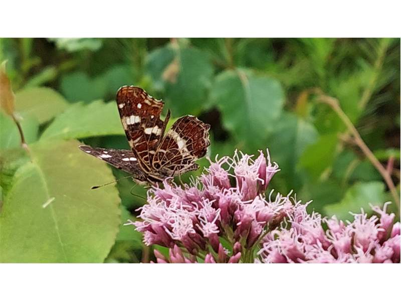 Landkärtchen, Sommergeneration der Schmetterlingsart auf Nektarspender Doldenblüte fotografiert, Falteroberseite im Sichtfeld, Ende Juni 2022, Auwald bei 06254 Horburg-Masslau (Sachsen-Anhalt) (© Heinz Sass)( Bild vergrößern)