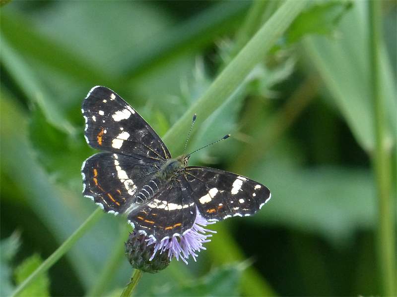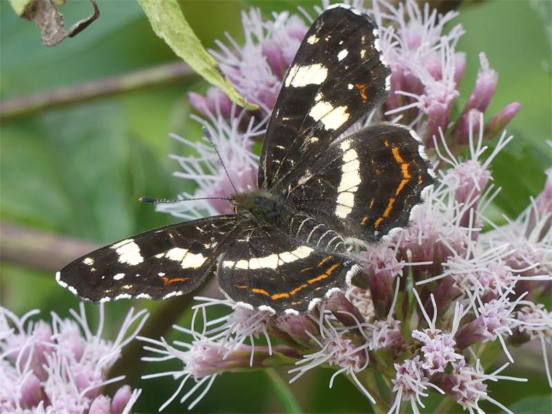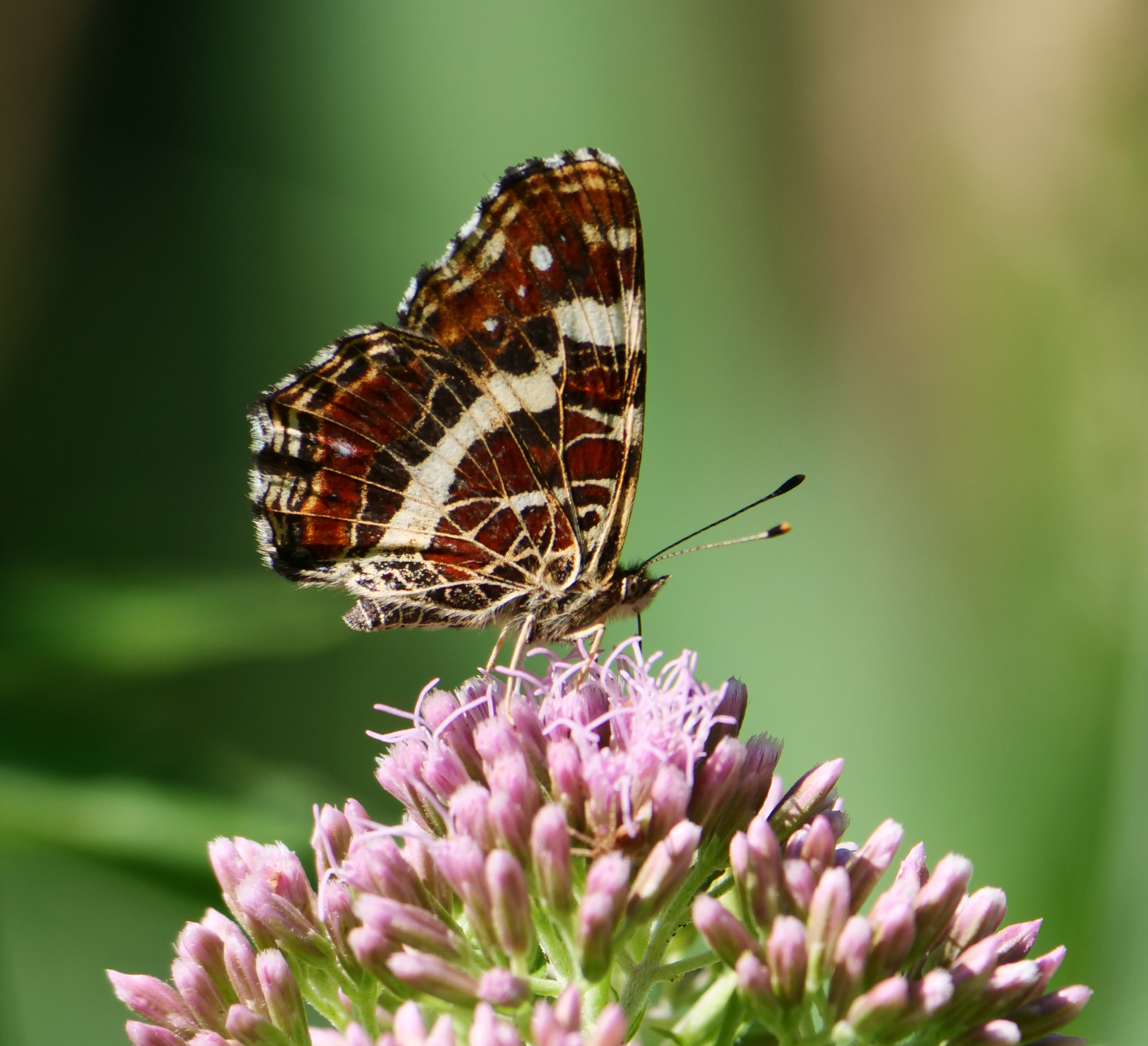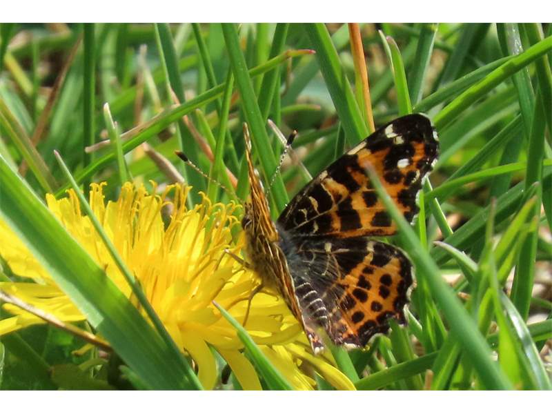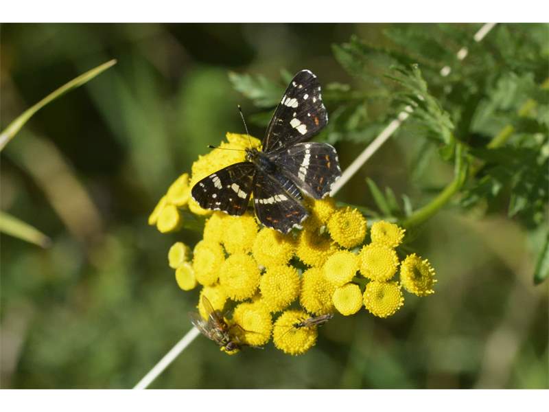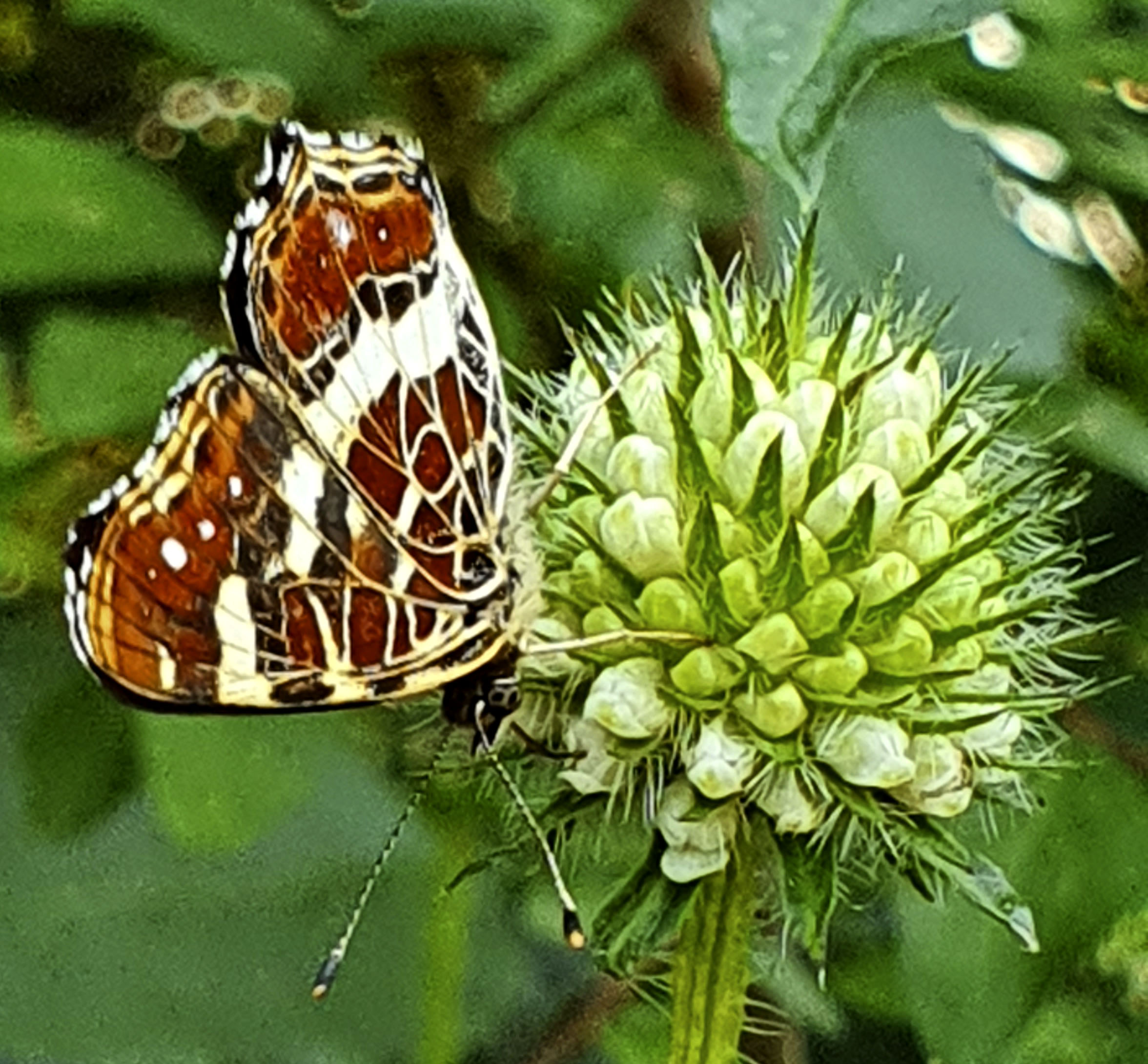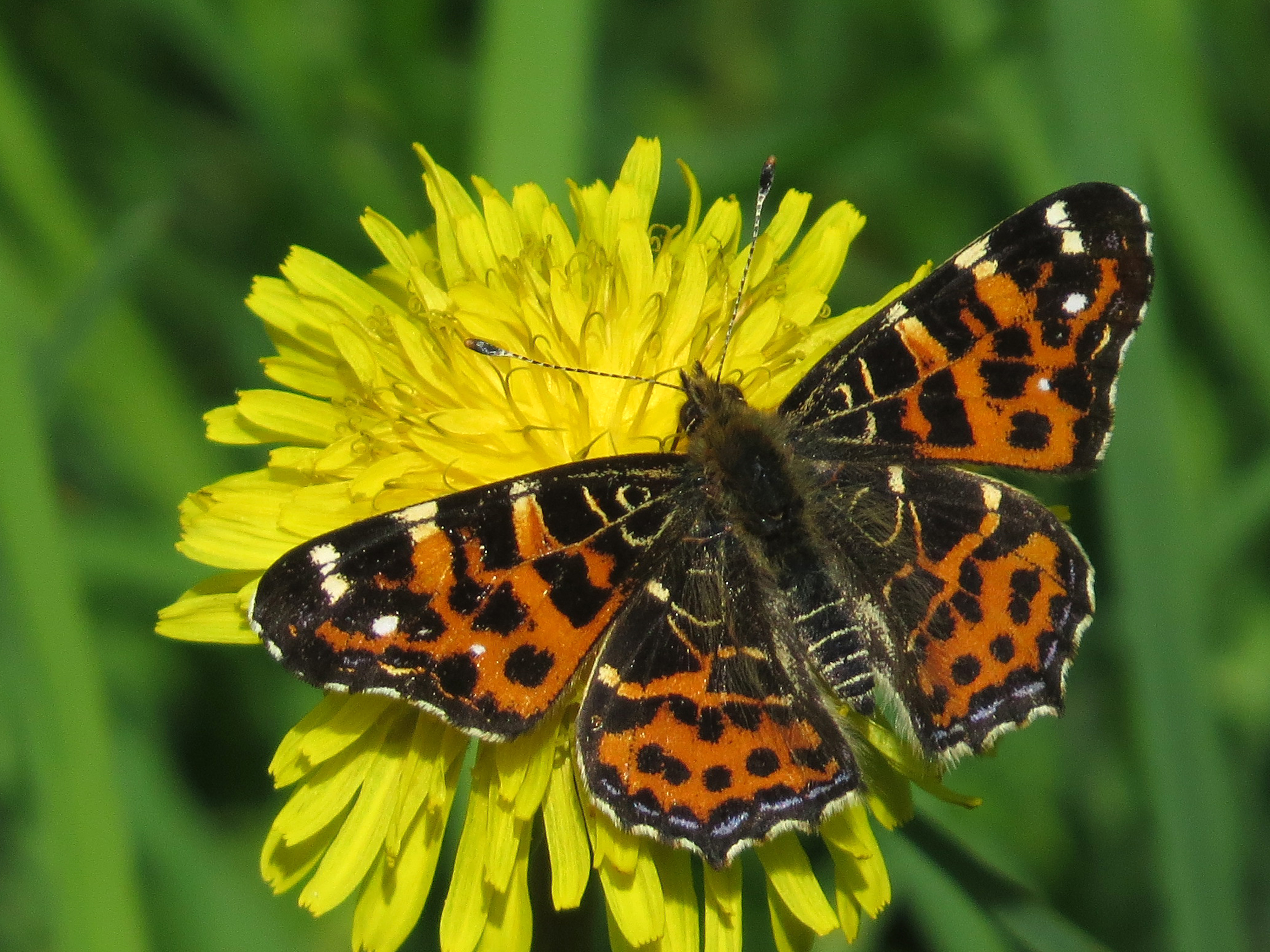 Landkärtchen, Sommergeneration der Schmetterlingsart auf Nektarspender Doldenblüte fotografiert, Falteroberseite im Sichtfeld, Ende Juni 2022, Auwald bei 06254 Horburg-Masslau (Sachsen-Anhalt) (© Heinz Sass)( Bild vergrößern)