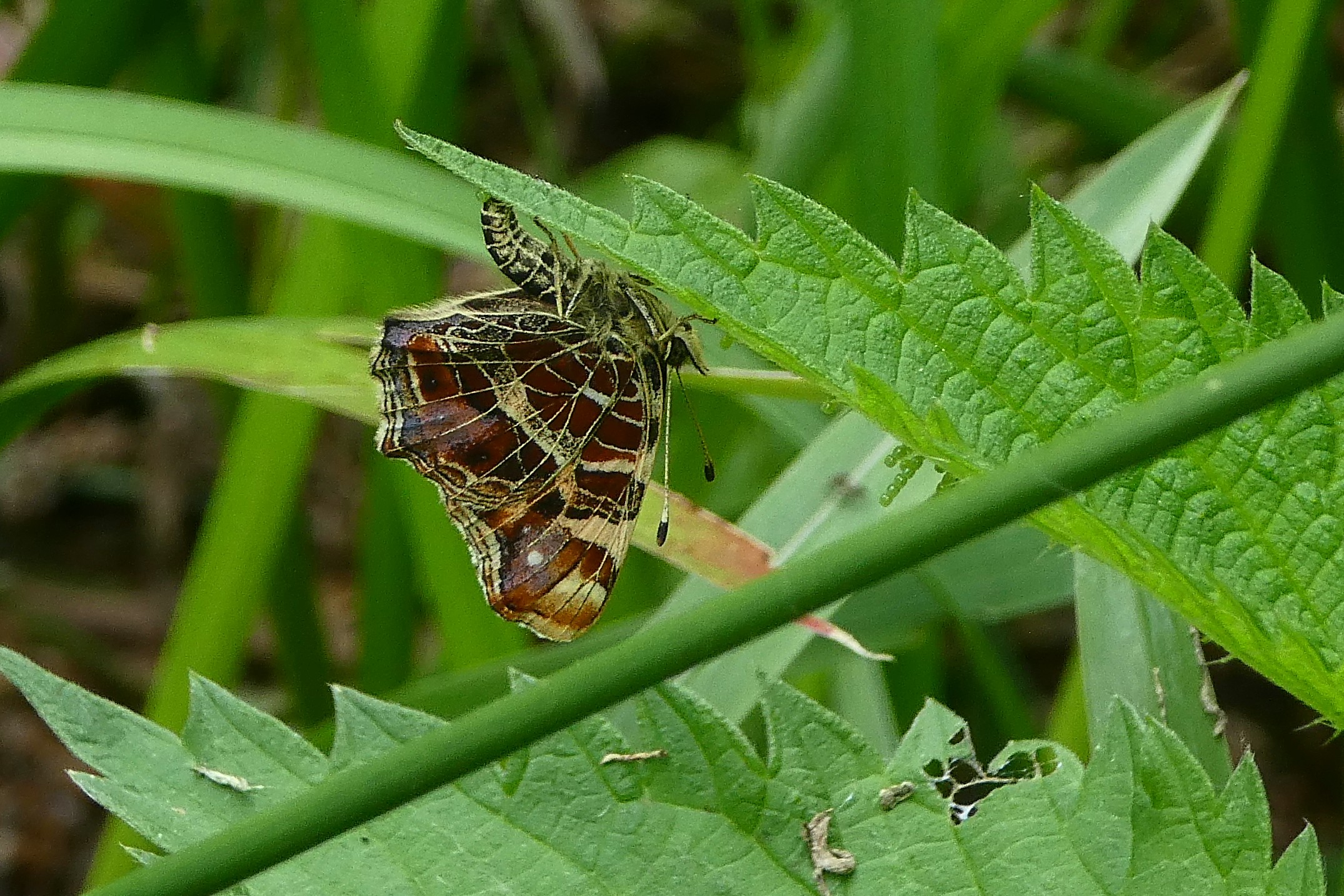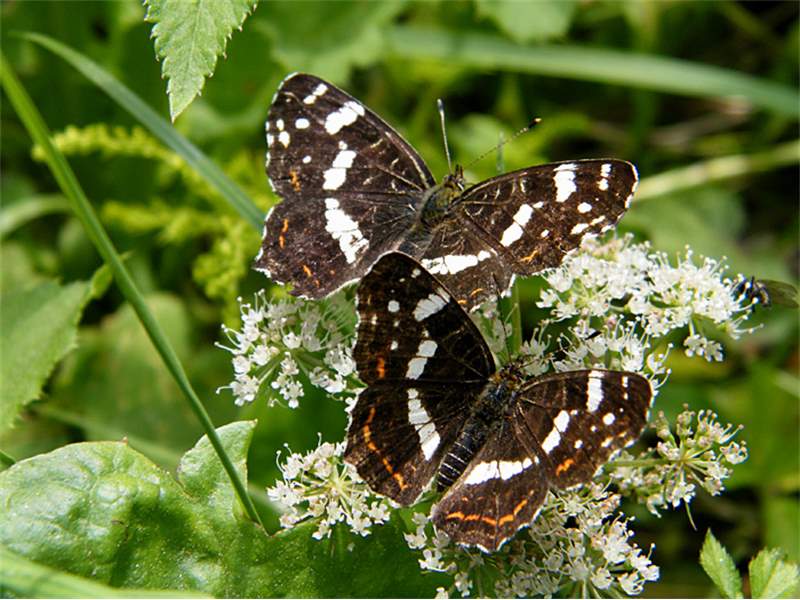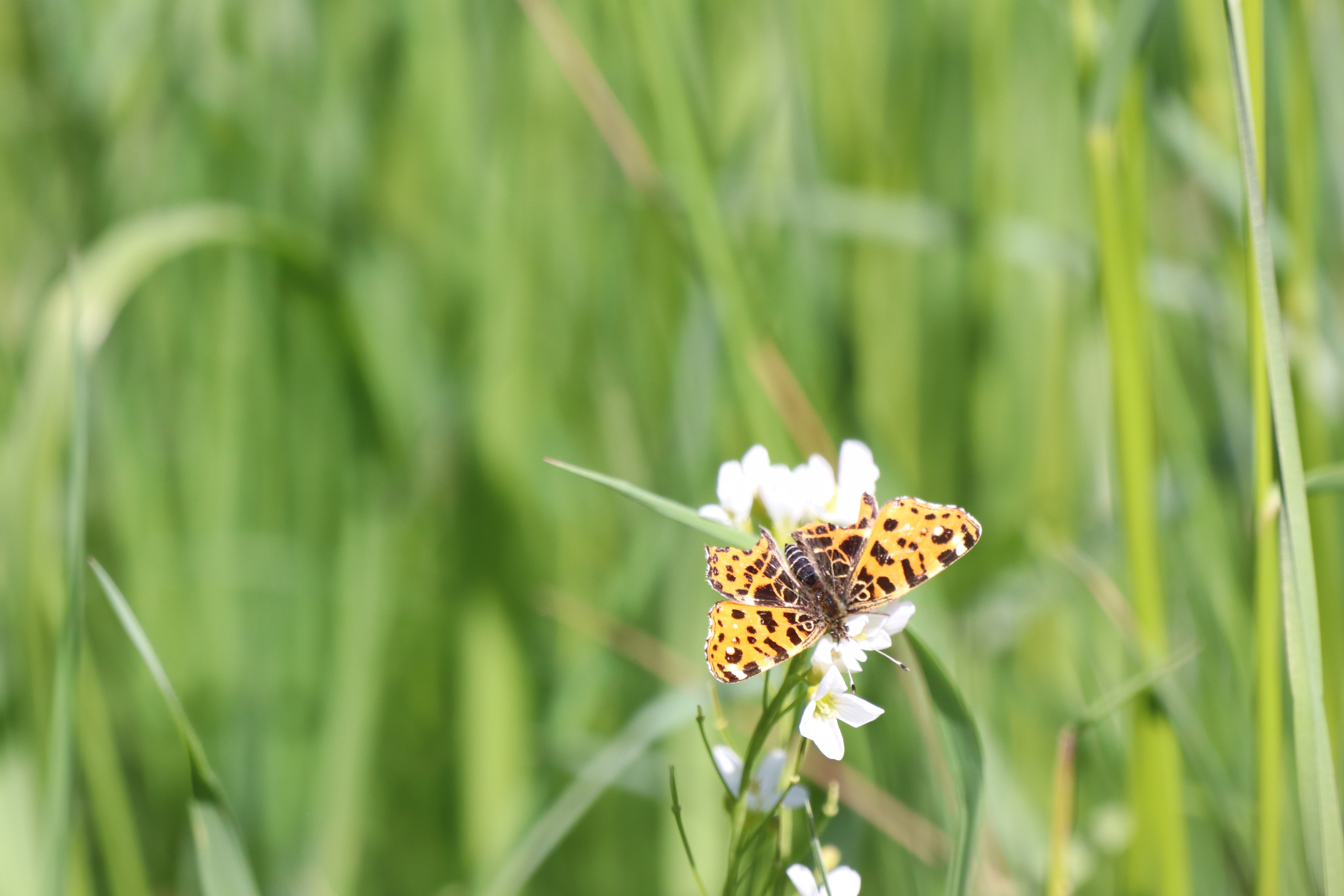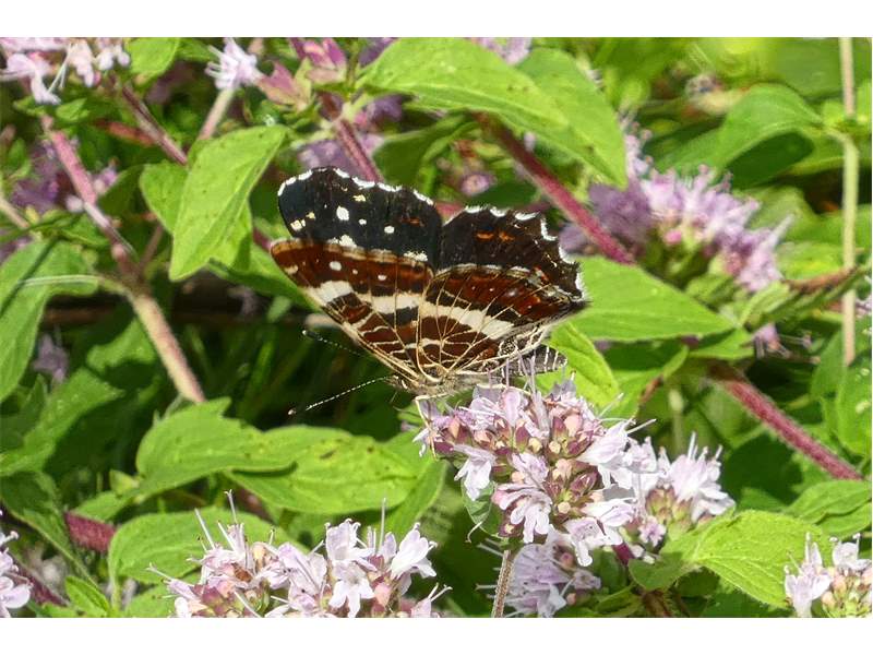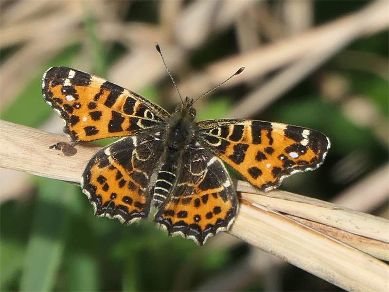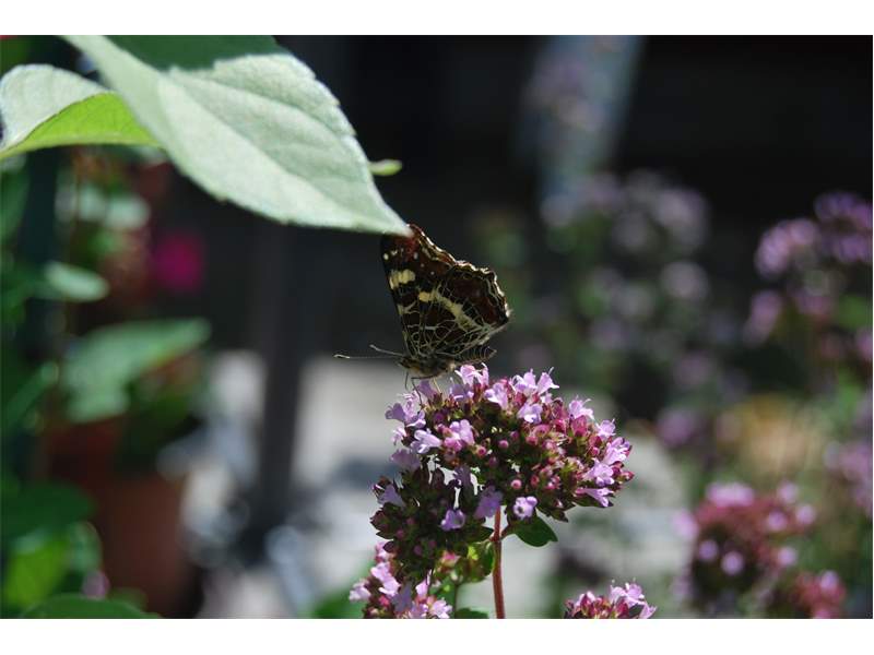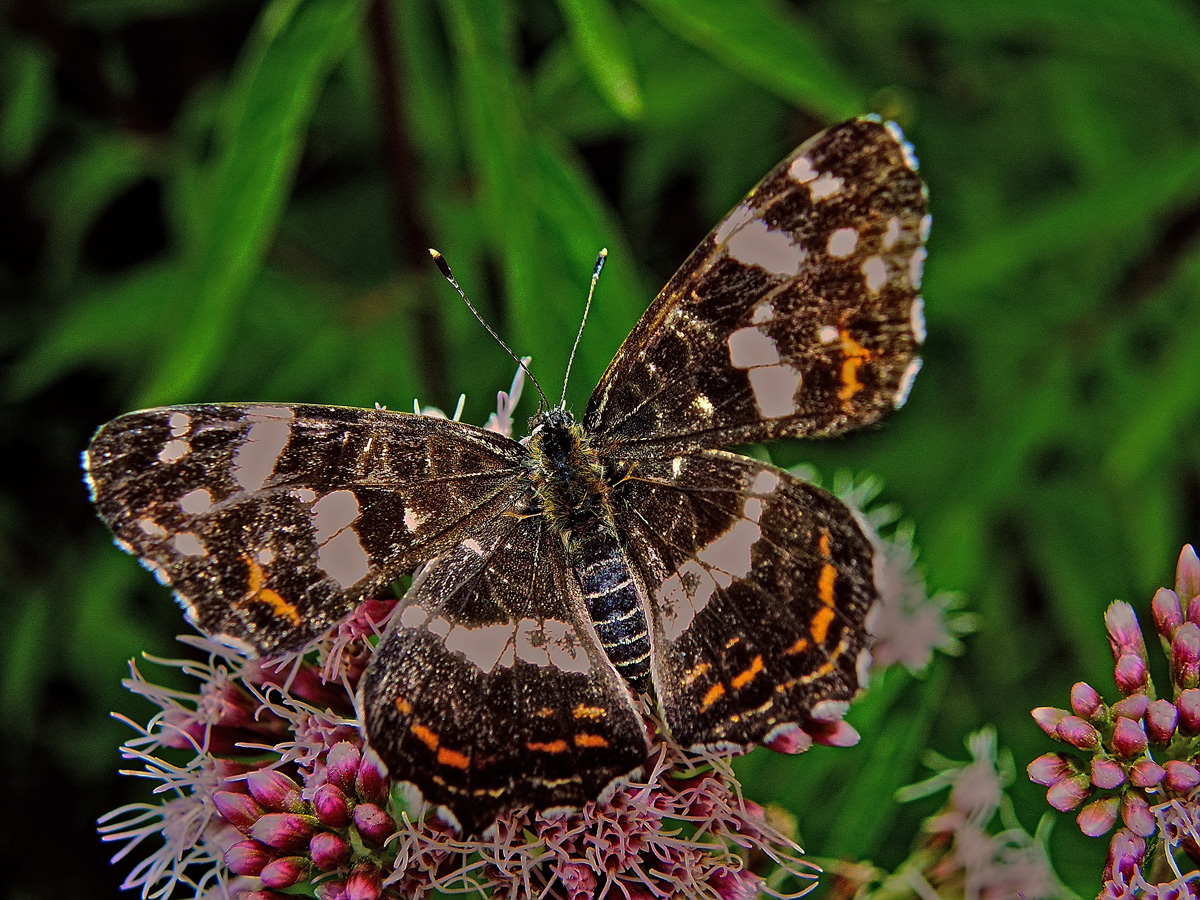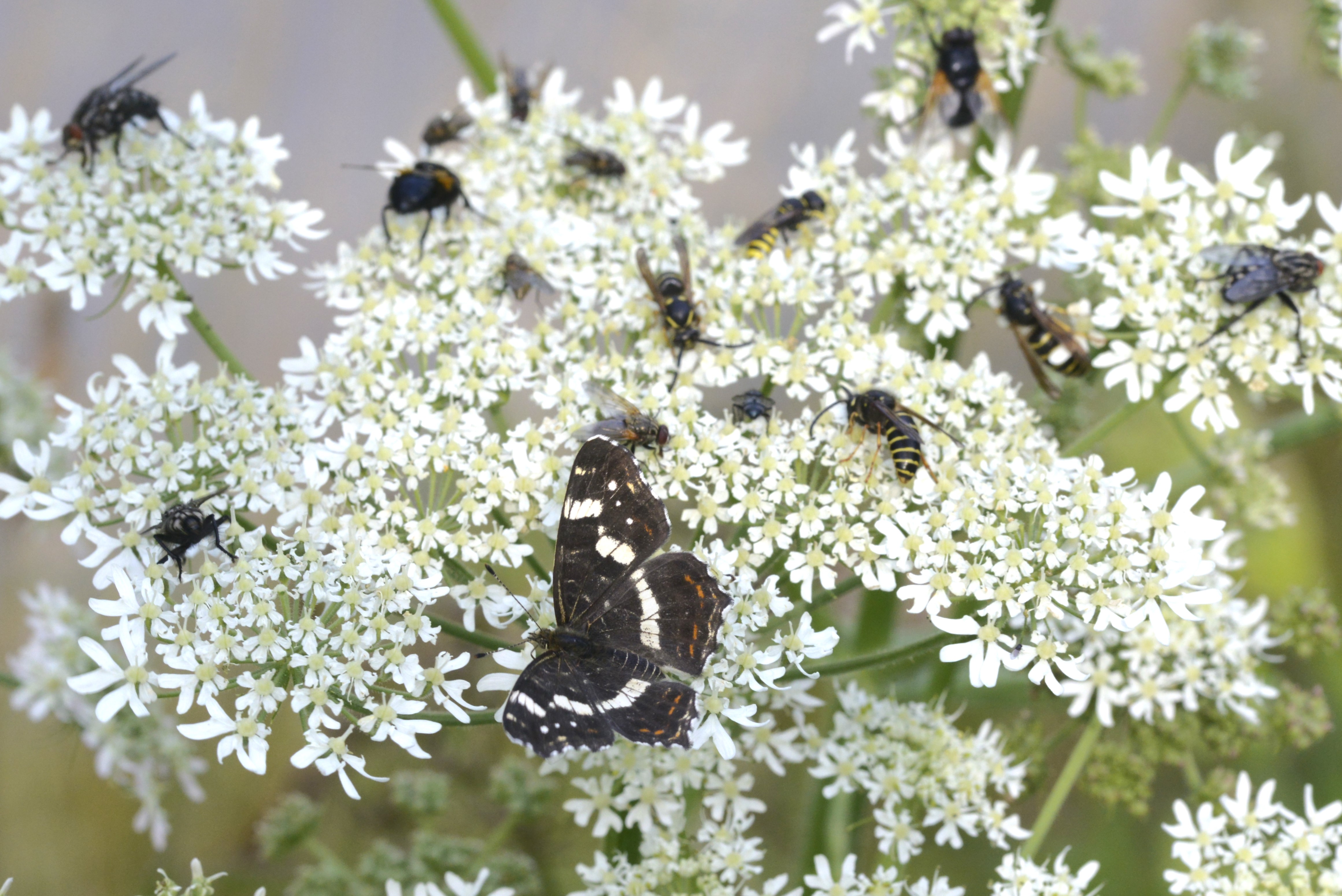 Landkärtchen, Sommergeneration der Schmetterlingsart auf Nektarspender Doldenblüte fotografiert, Falteroberseite im Sichtfeld, Ende Juni 2022, Auwald bei 06254 Horburg-Masslau (Sachsen-Anhalt) (© Heinz Sass)( Bild vergrößern)