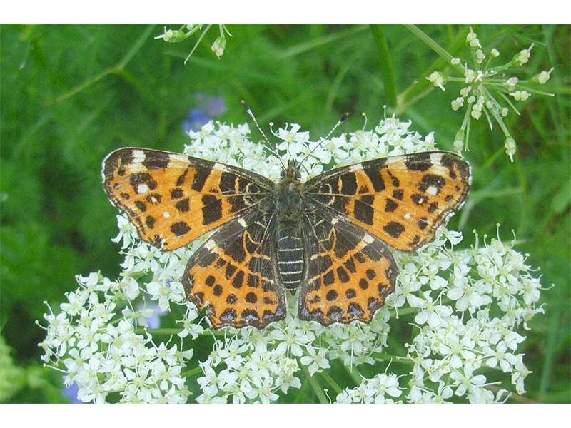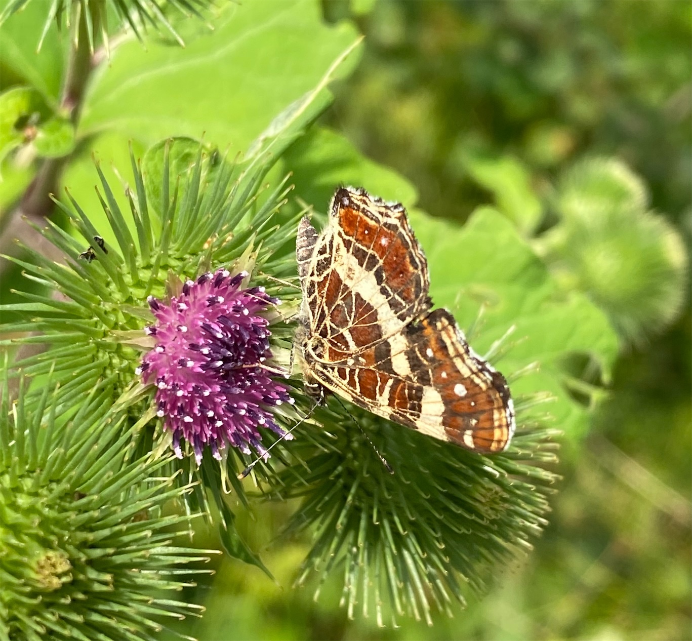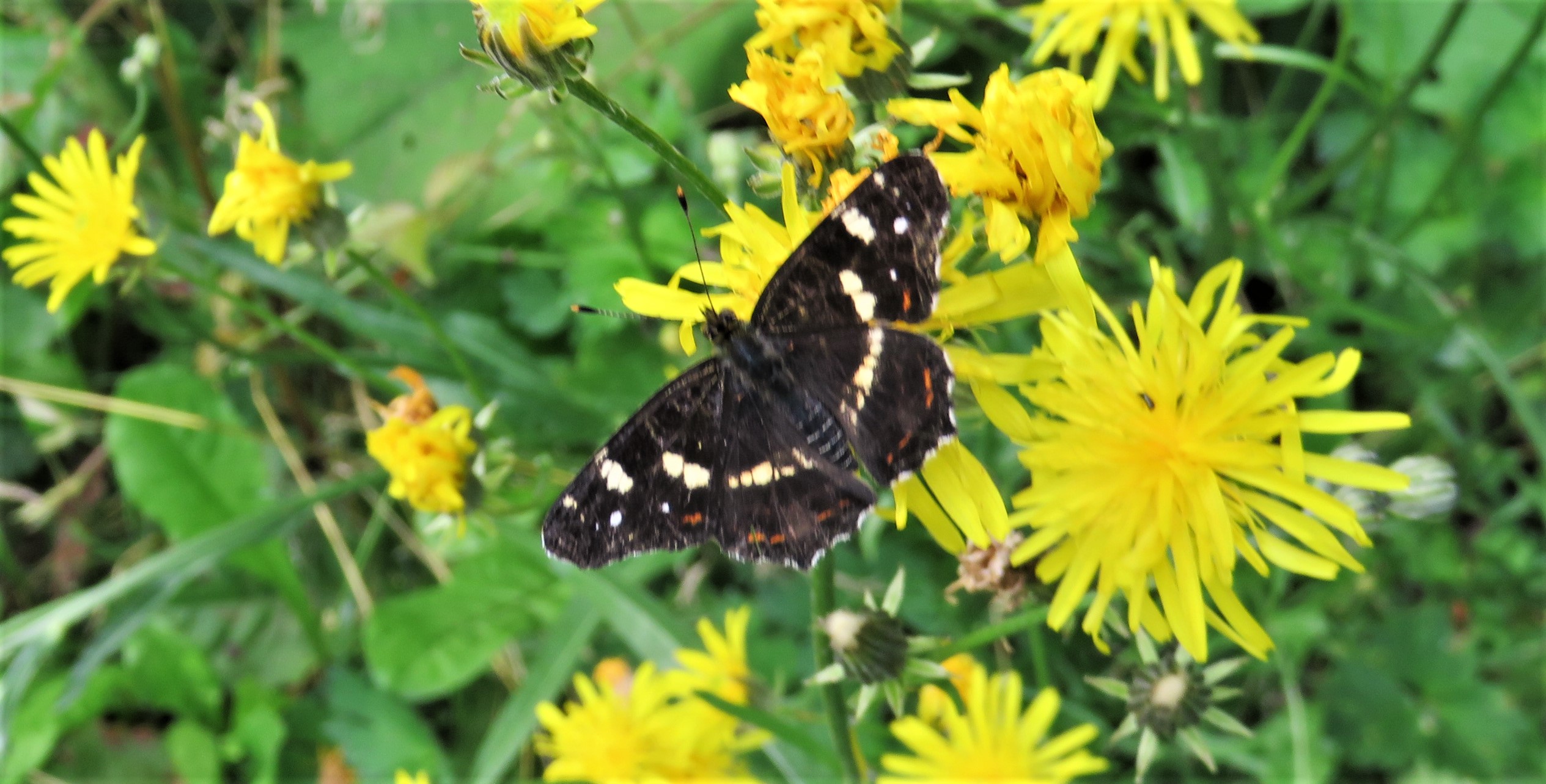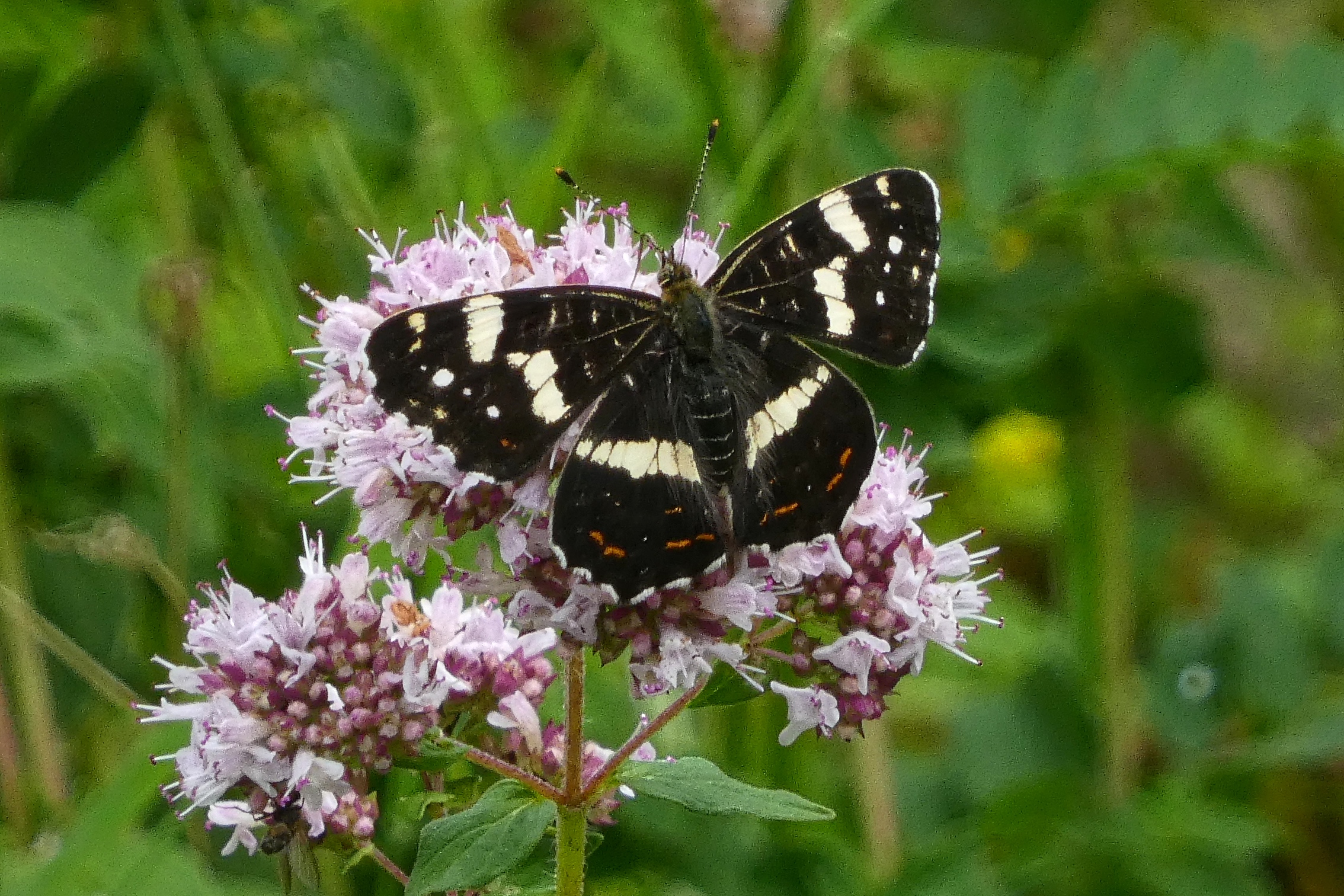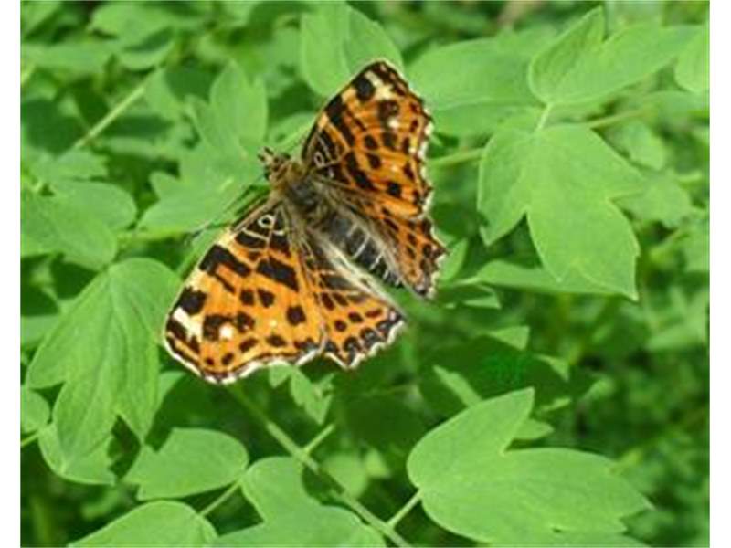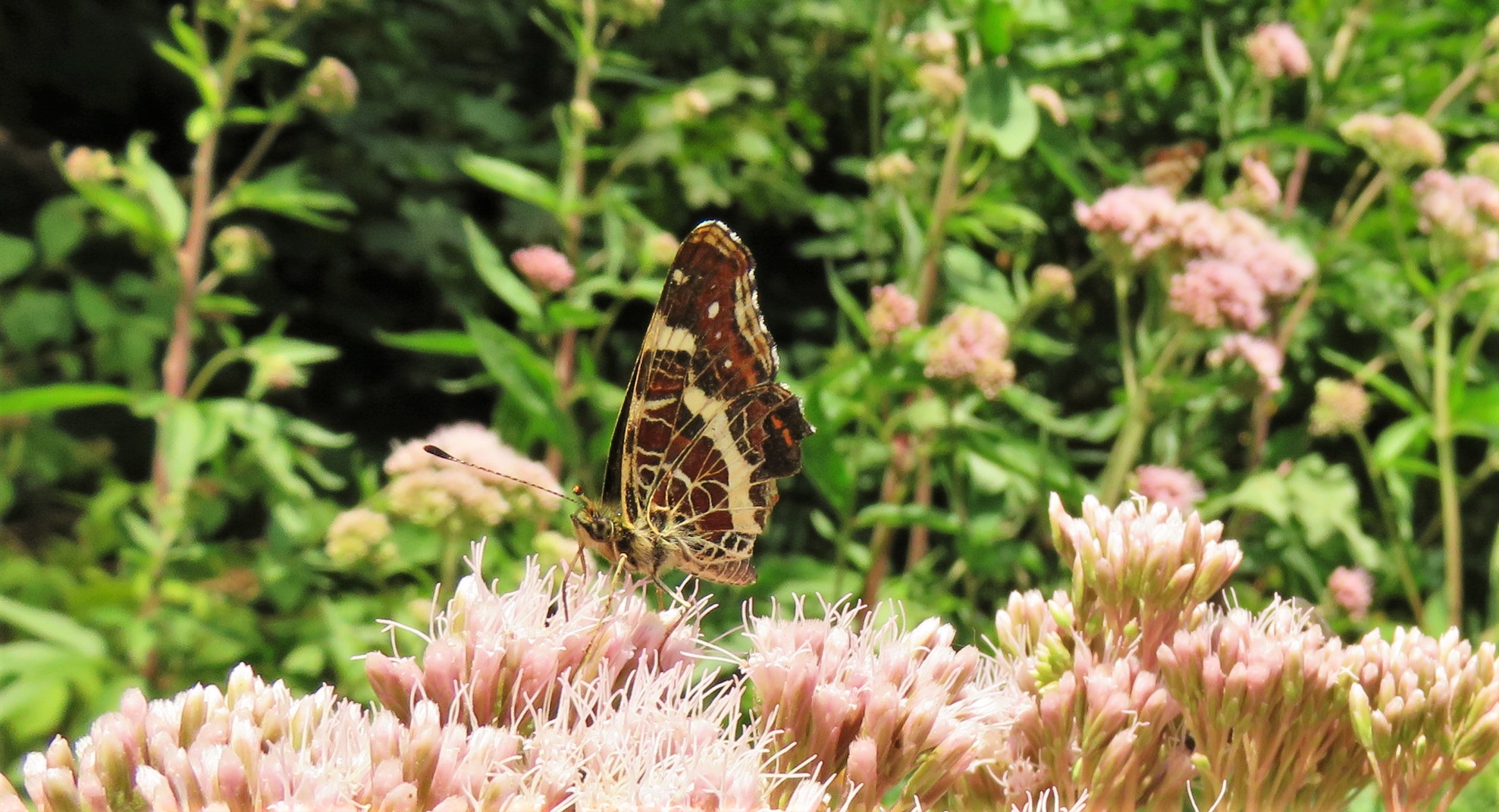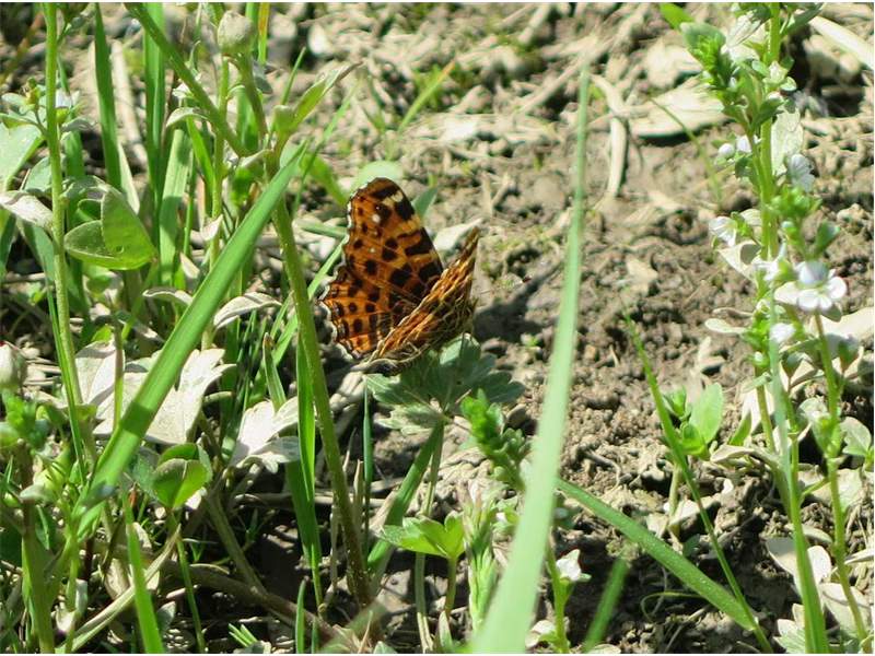 Landkärtchen, Sommergeneration der Schmetterlingsart auf Nektarspender Doldenblüte fotografiert, Falteroberseite im Sichtfeld, Ende Juni 2022, Auwald bei 06254 Horburg-Masslau (Sachsen-Anhalt) (© Heinz Sass)( Bild vergrößern)