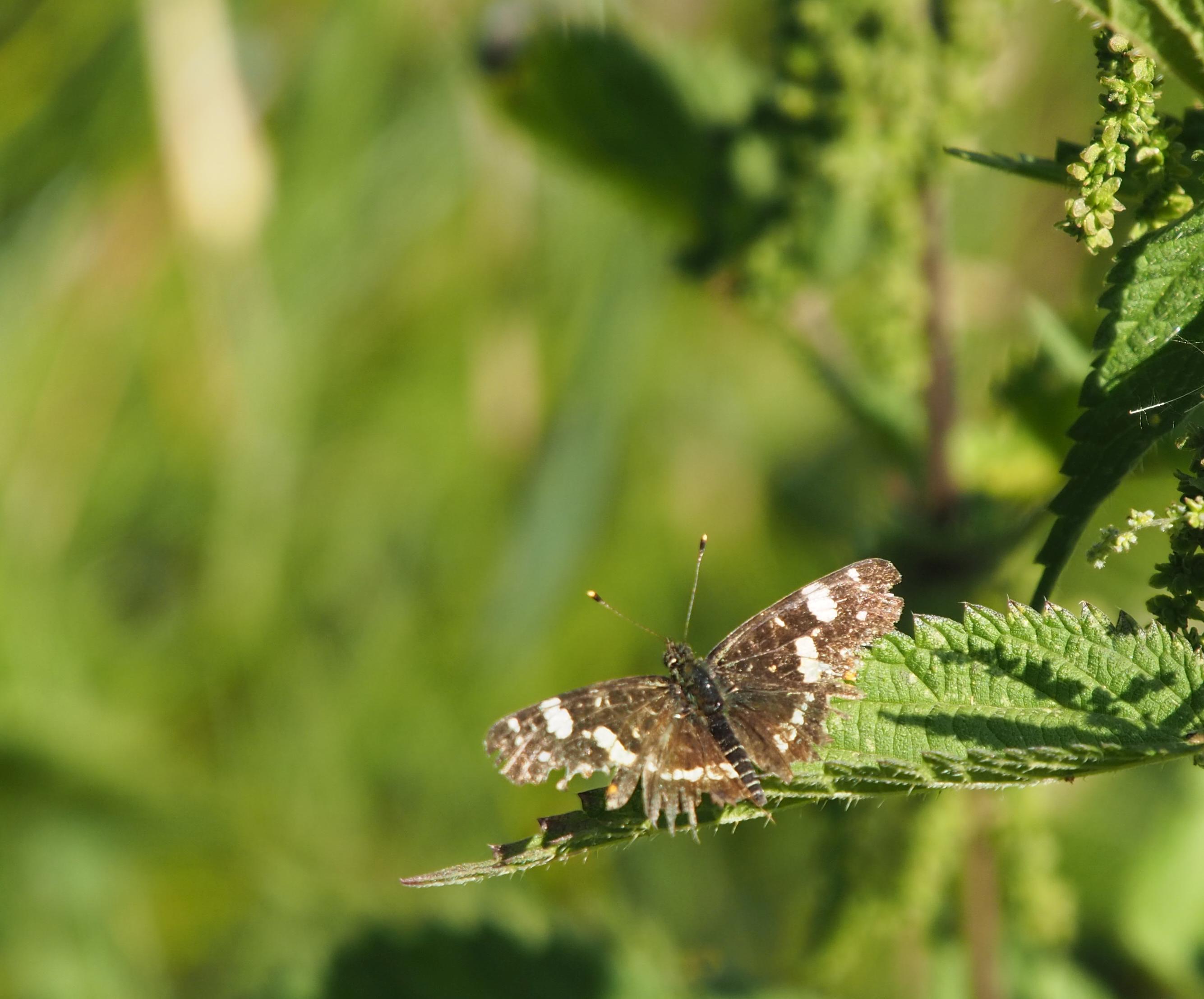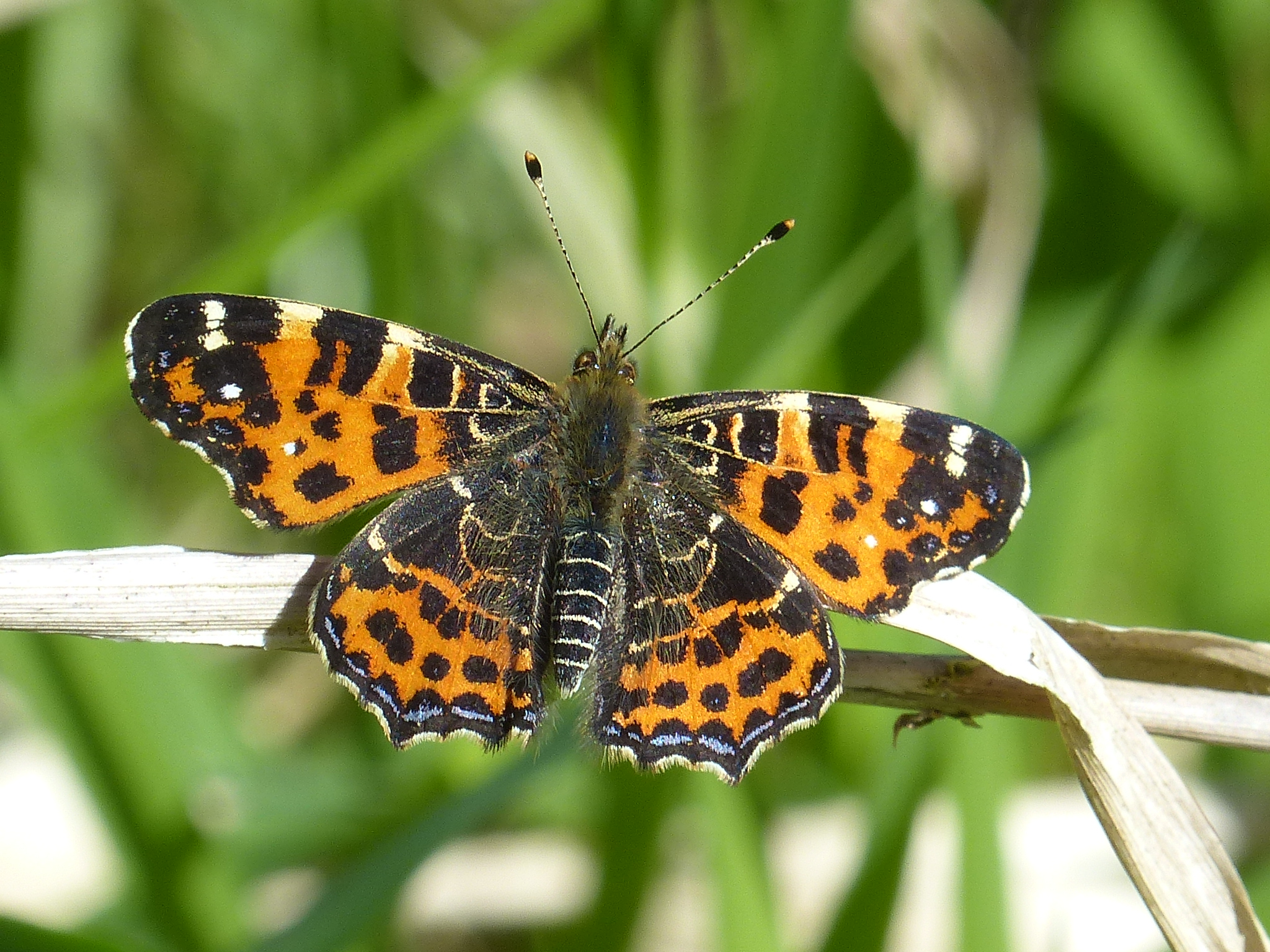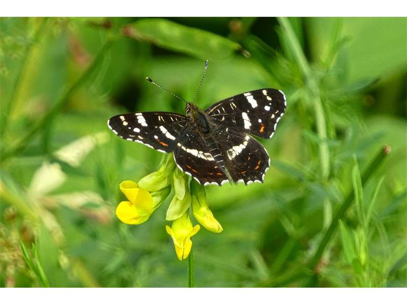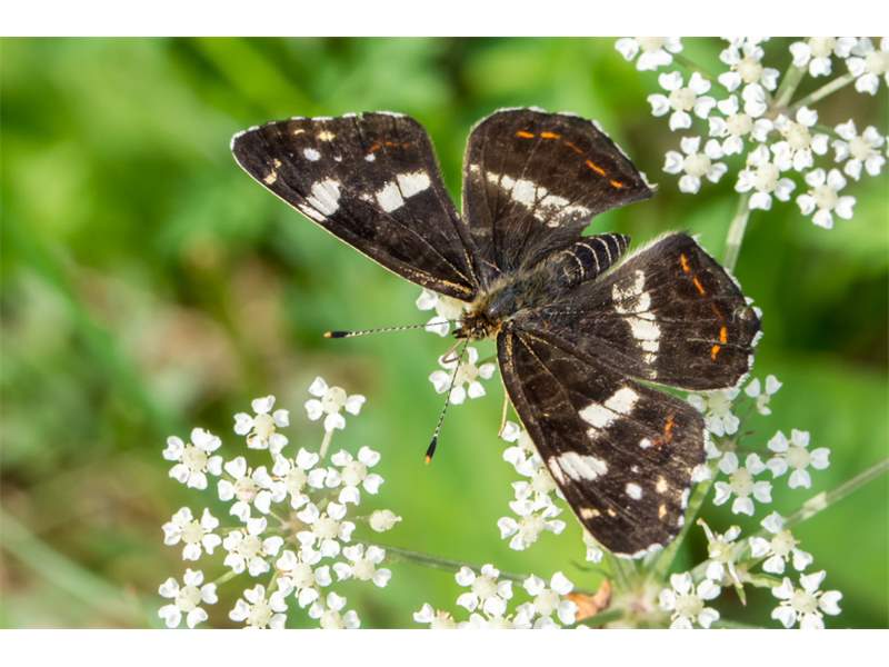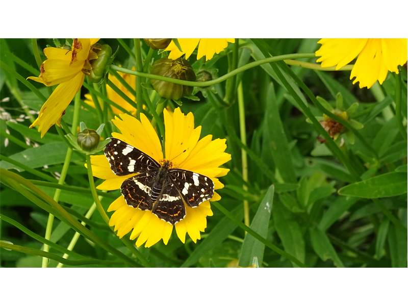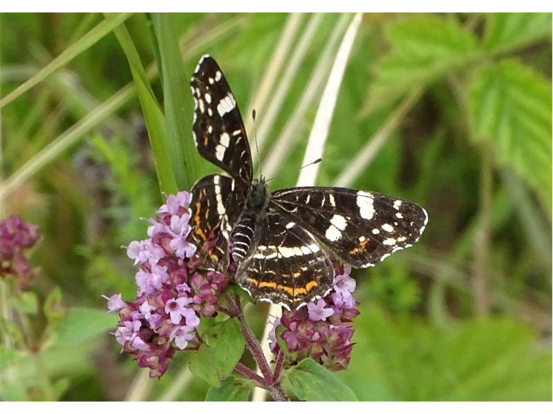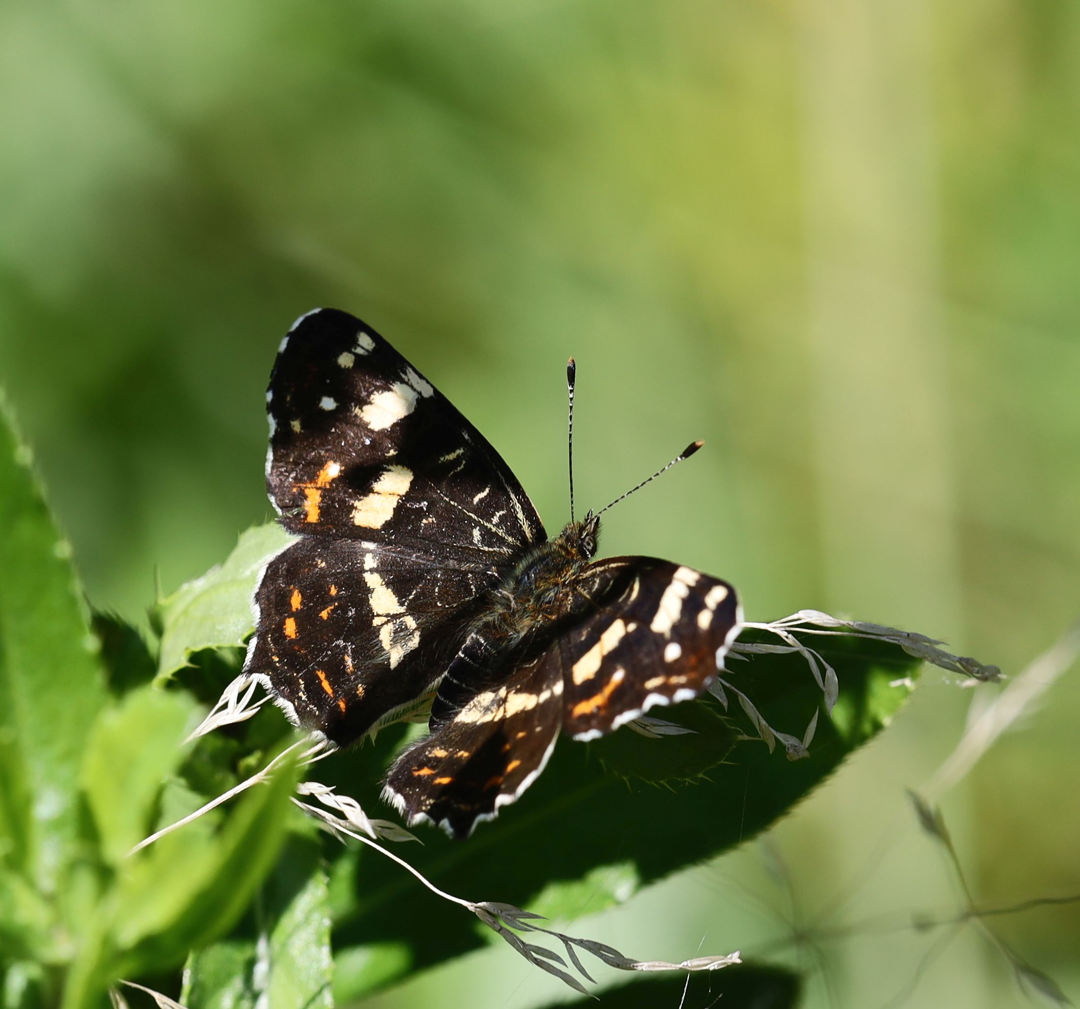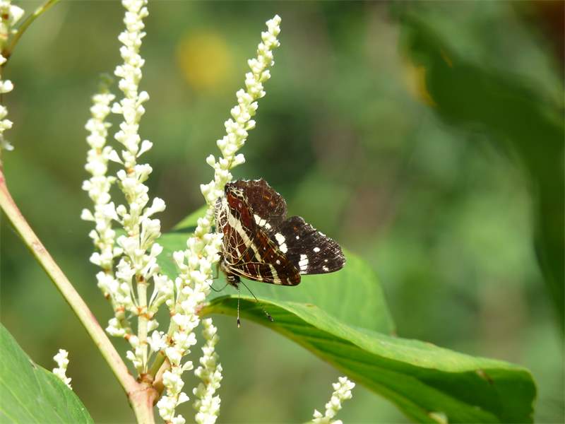 Landkärtchen, Sommergeneration der Schmetterlingsart auf Nektarspender Doldenblüte fotografiert, Falteroberseite im Sichtfeld, Ende Juni 2022, Auwald bei 06254 Horburg-Masslau (Sachsen-Anhalt) (© Heinz Sass)( Bild vergrößern)