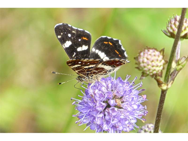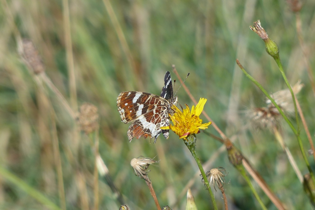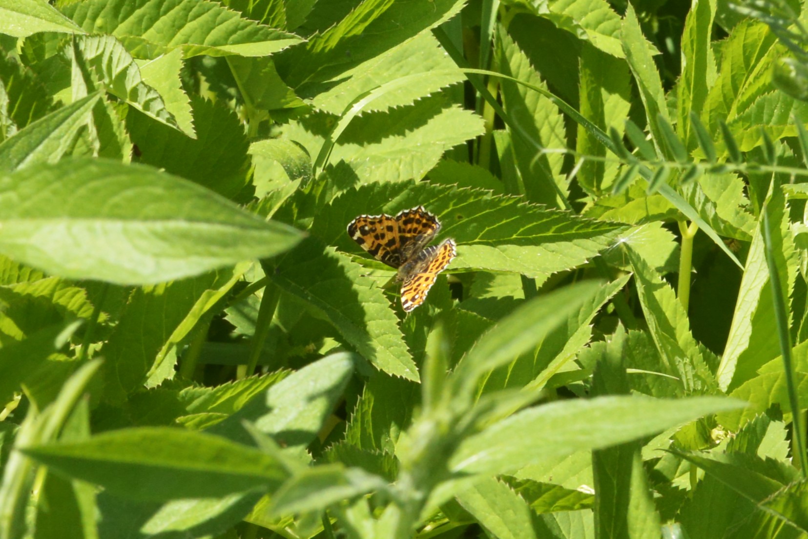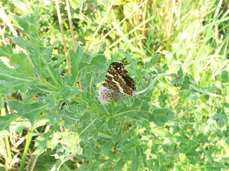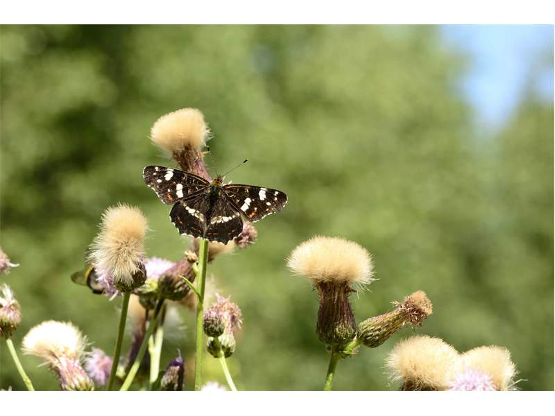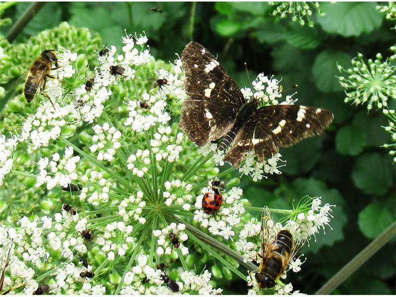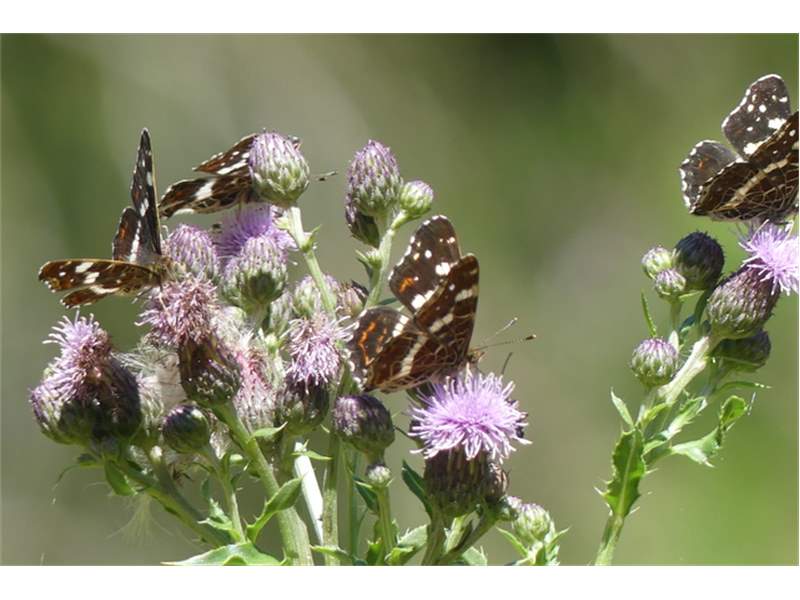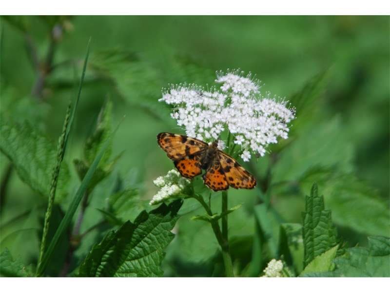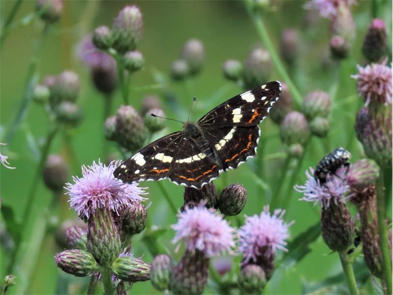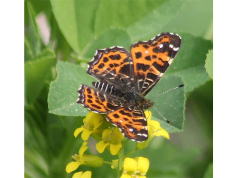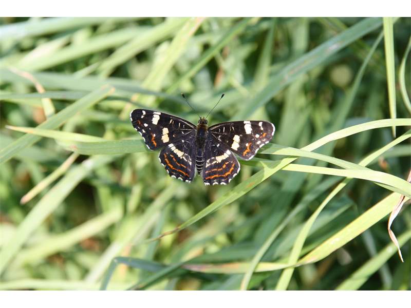 Landkärtchen, Sommergeneration der Schmetterlingsart auf Nektarspender Doldenblüte fotografiert, Falteroberseite im Sichtfeld, Ende Juni 2022, Auwald bei 06254 Horburg-Masslau (Sachsen-Anhalt) (© Heinz Sass)( Bild vergrößern)