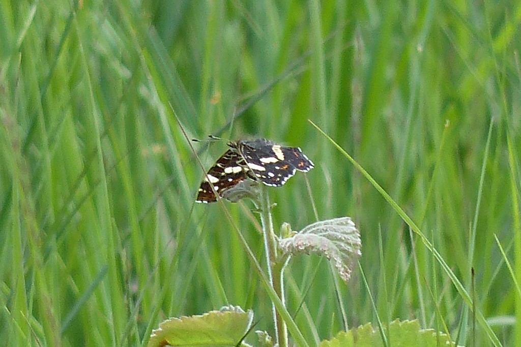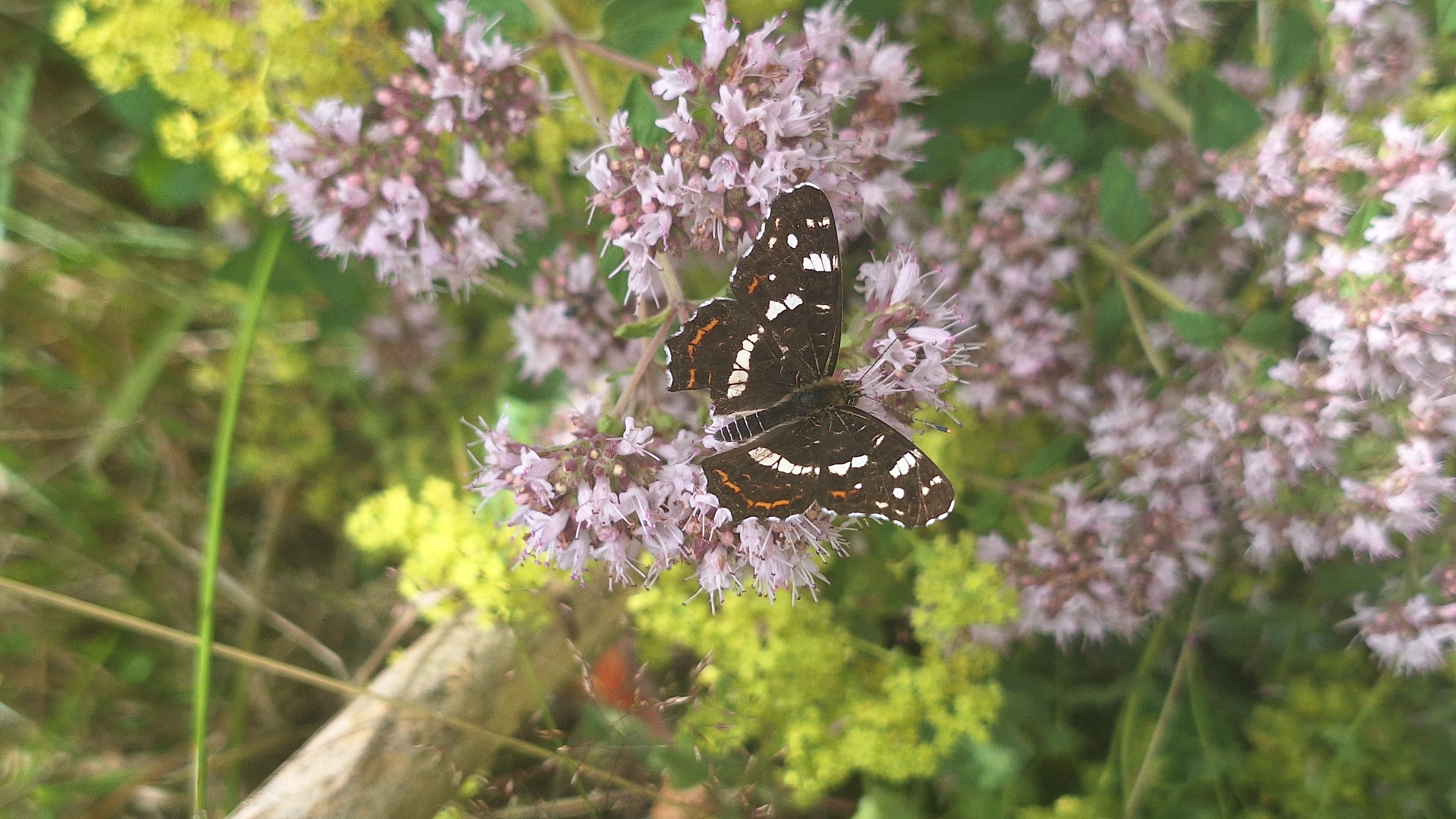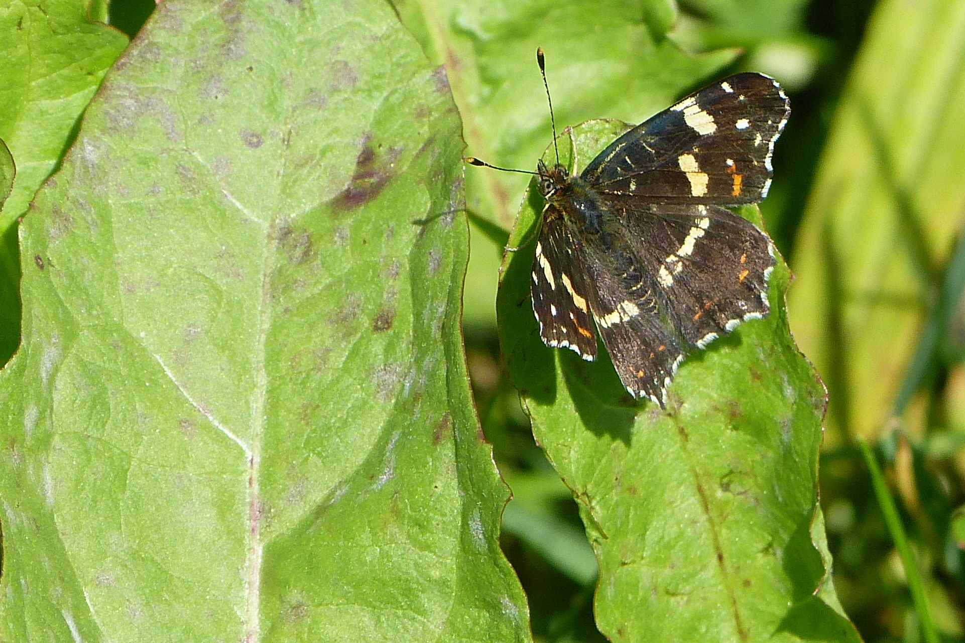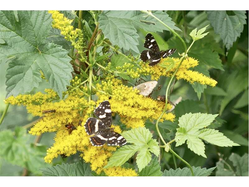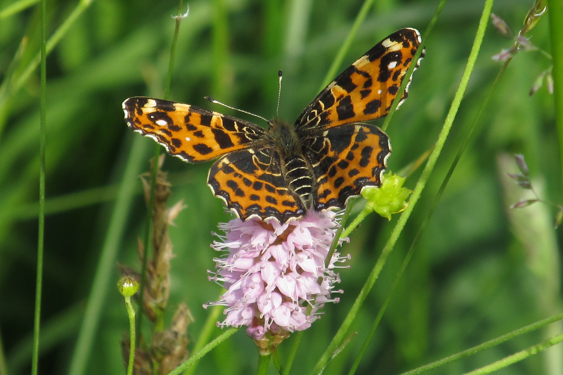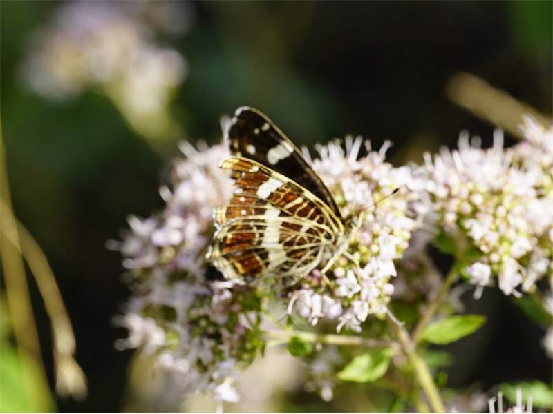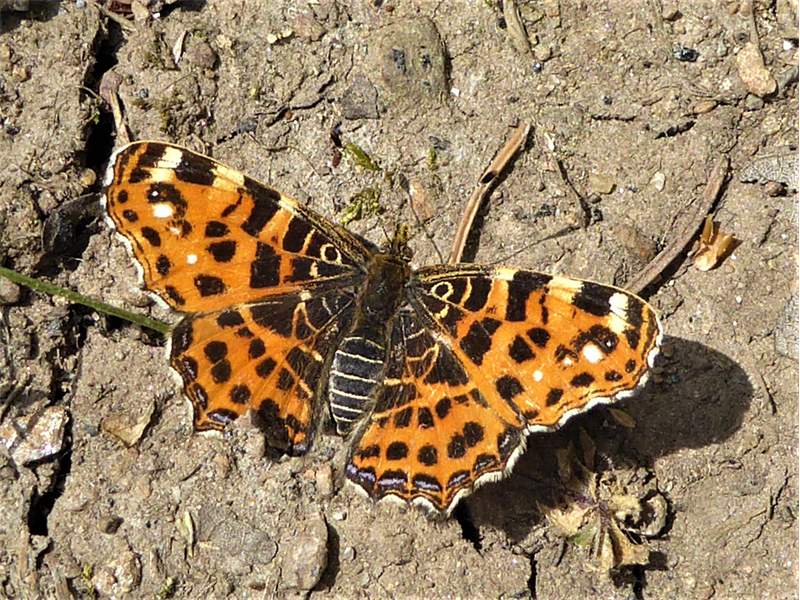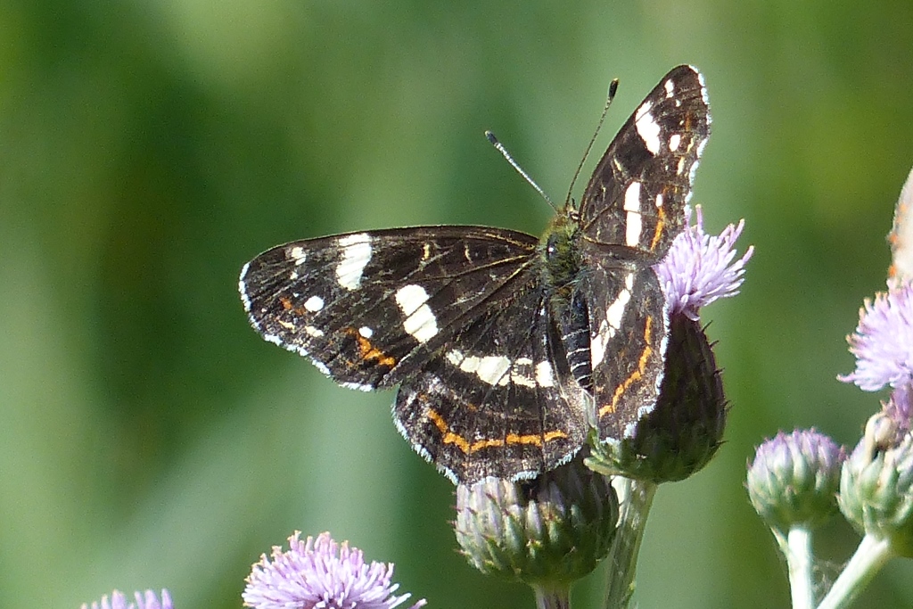 Landkärtchen, Sommergeneration der Schmetterlingsart auf Nektarspender Doldenblüte fotografiert, Falteroberseite im Sichtfeld, Ende Juni 2022, Auwald bei 06254 Horburg-Masslau (Sachsen-Anhalt) (© Heinz Sass)( Bild vergrößern)