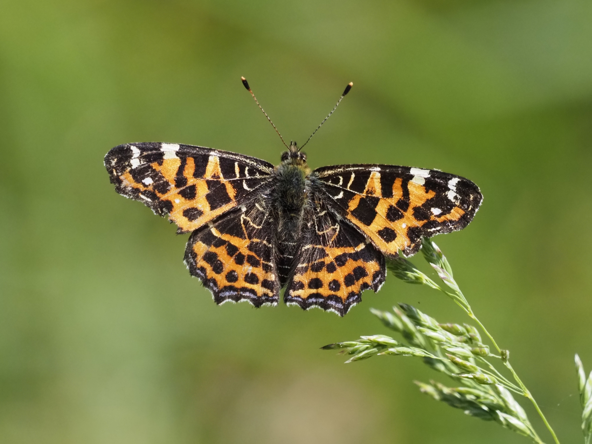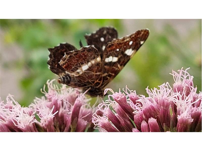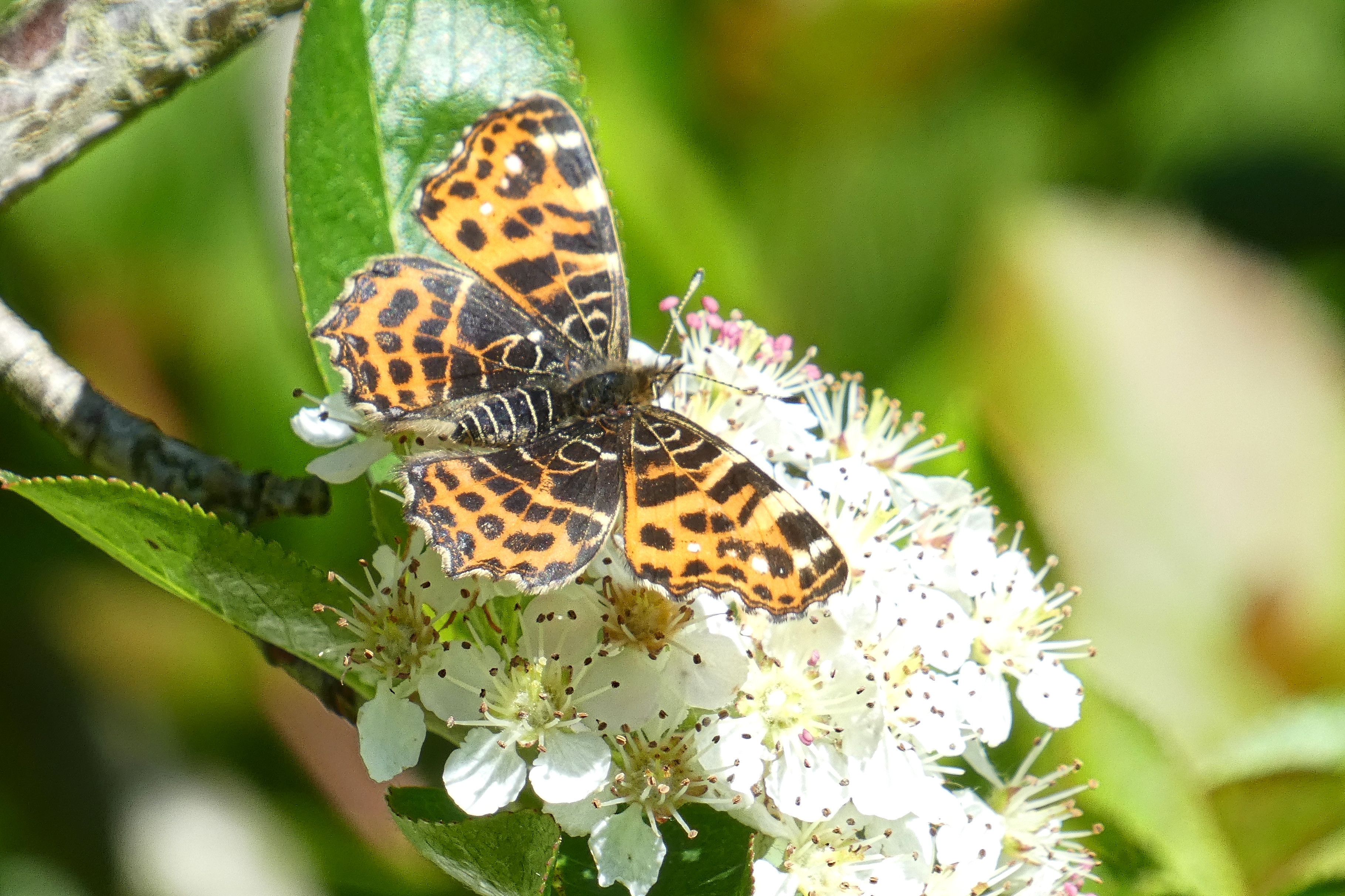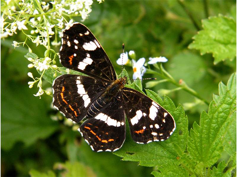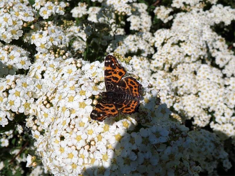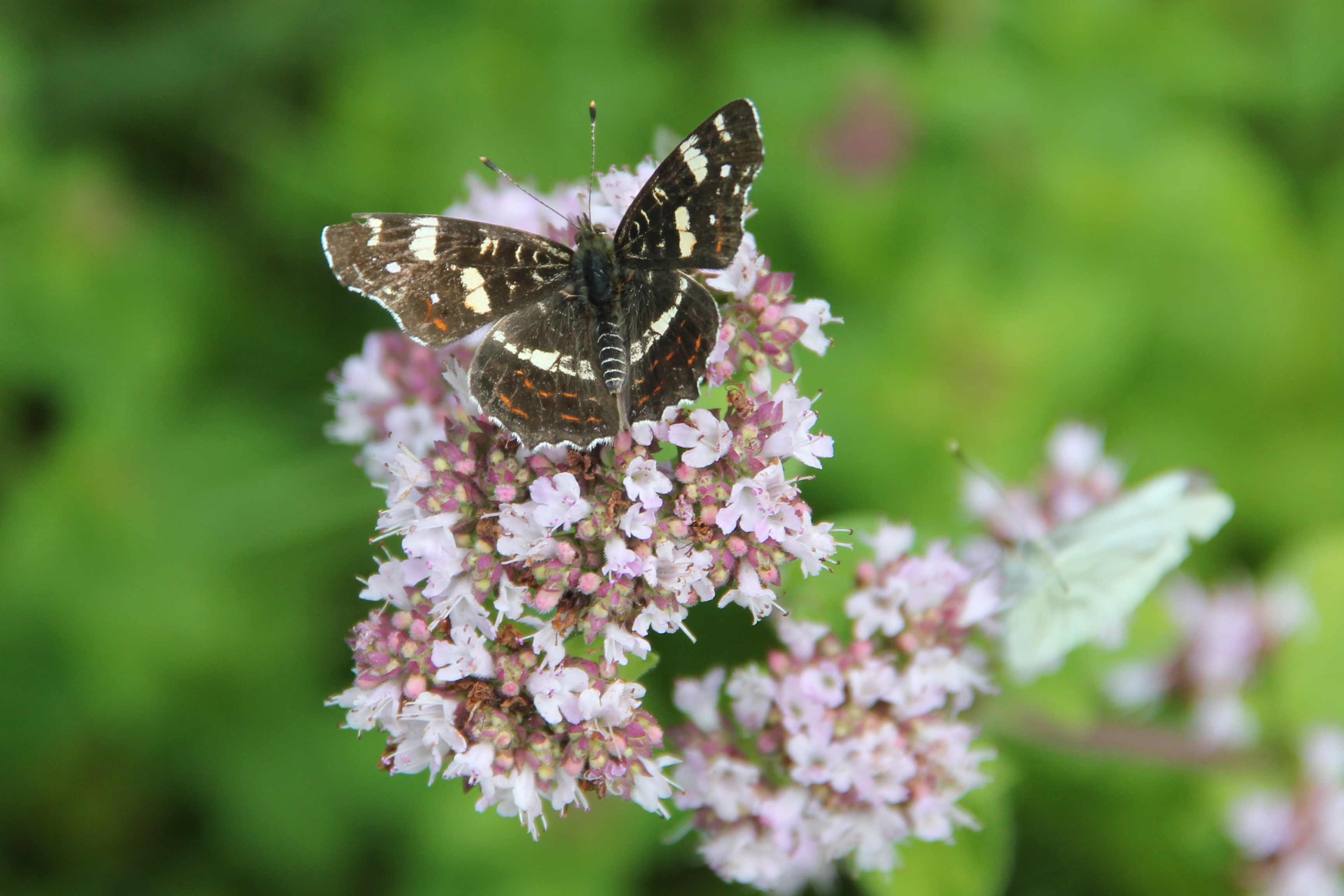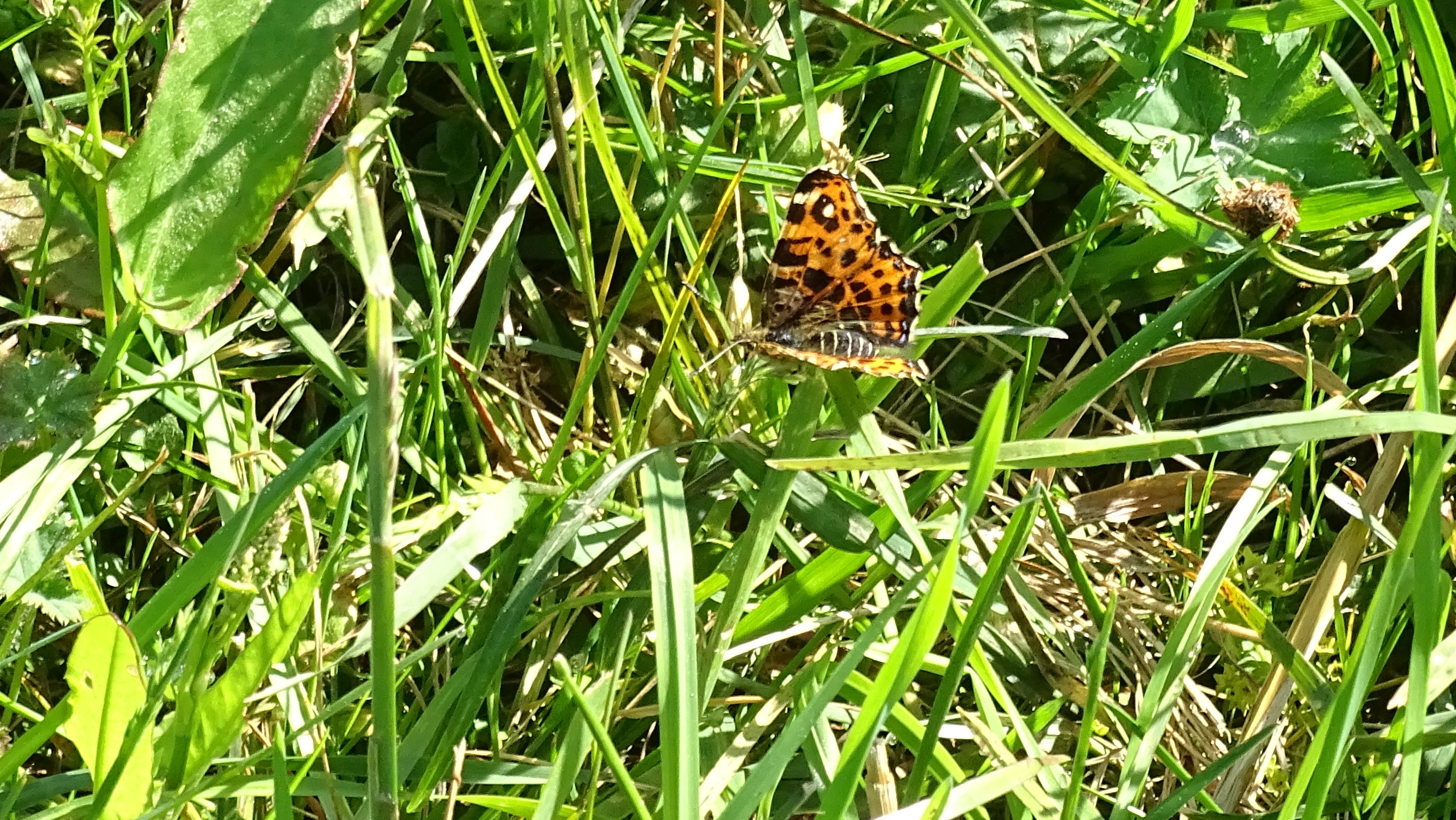 Landkärtchen, Sommergeneration der Schmetterlingsart auf Nektarspender Doldenblüte fotografiert, Falteroberseite im Sichtfeld, Ende Juni 2022, Auwald bei 06254 Horburg-Masslau (Sachsen-Anhalt) (© Heinz Sass)( Bild vergrößern)