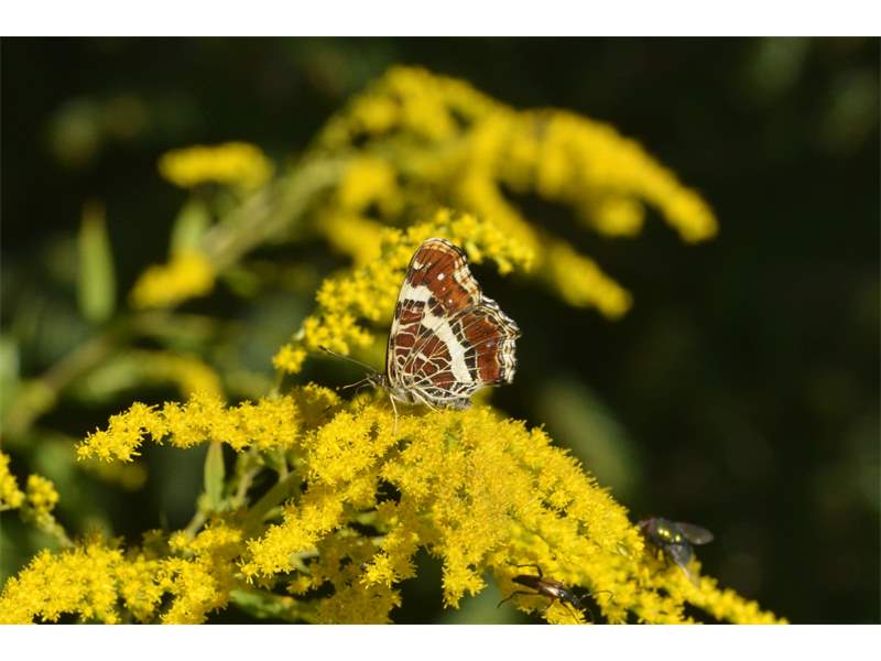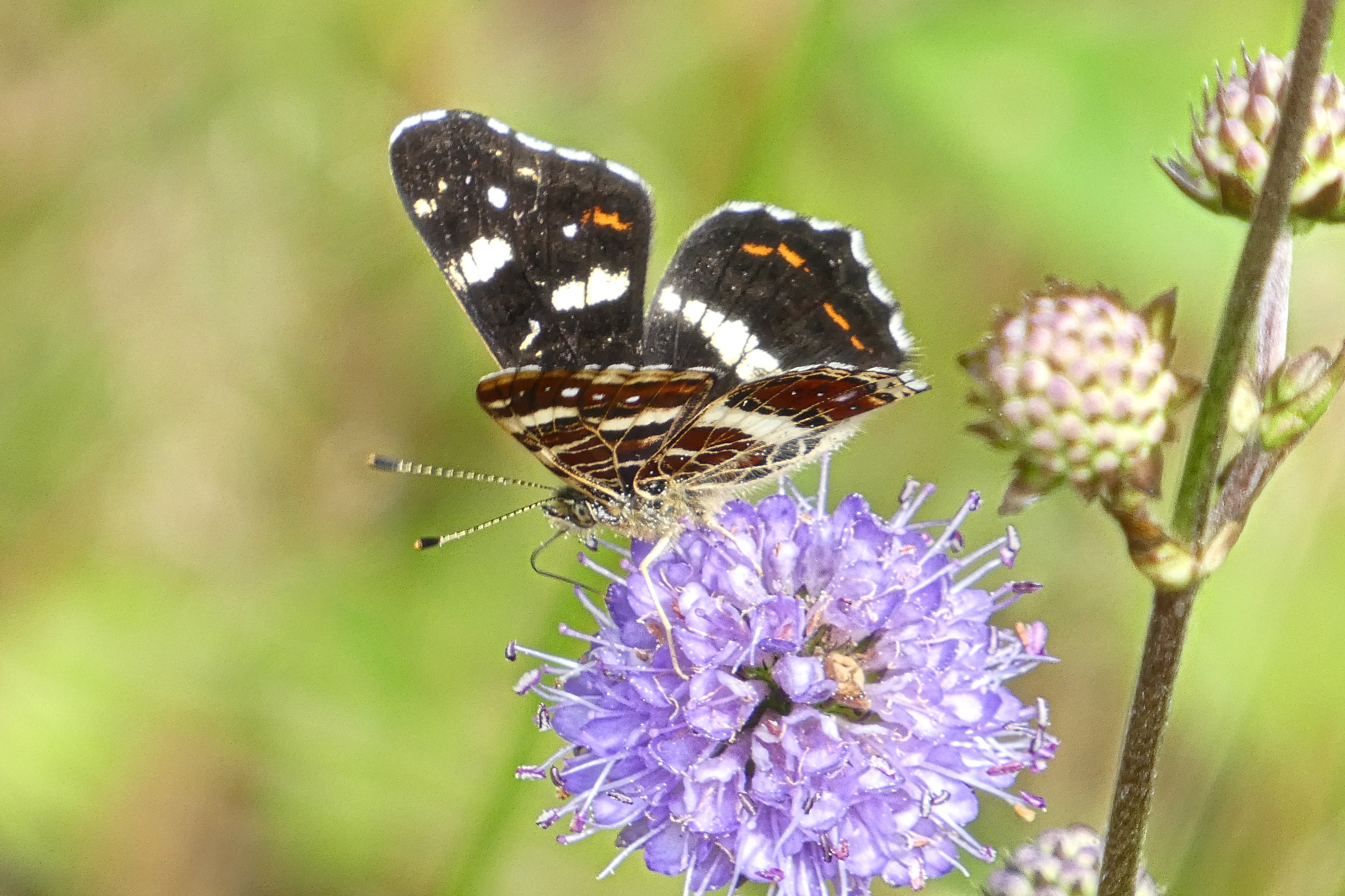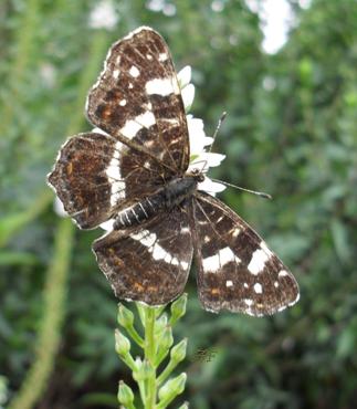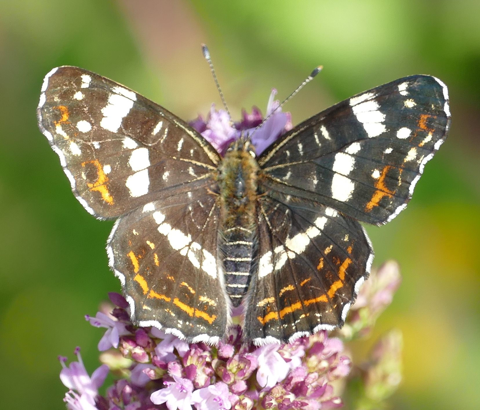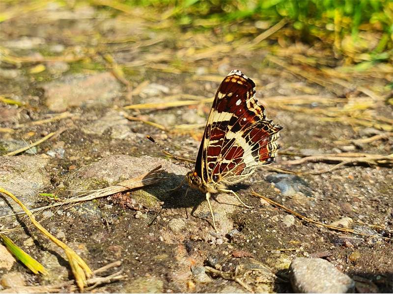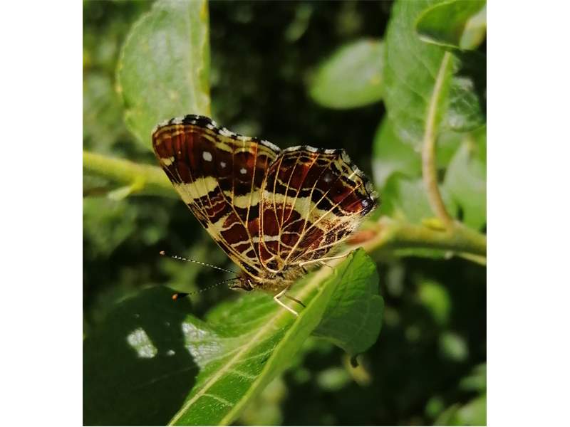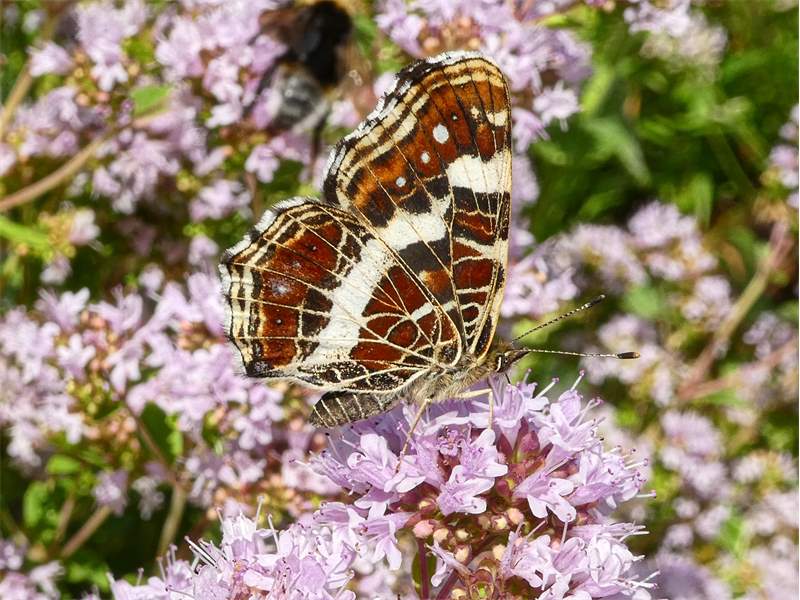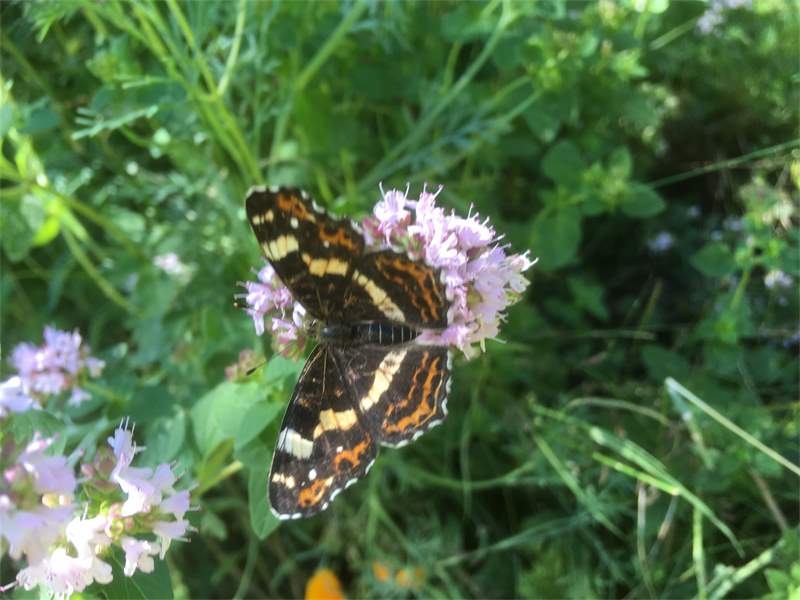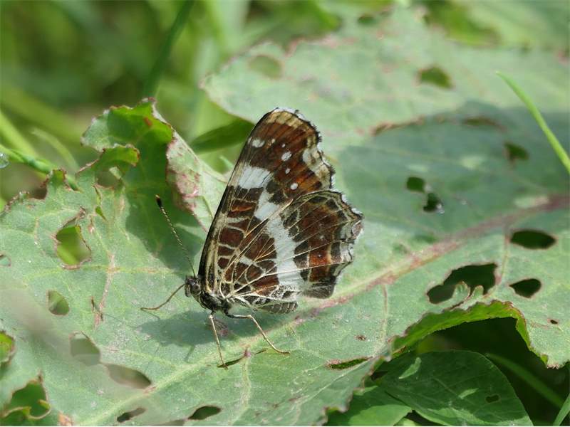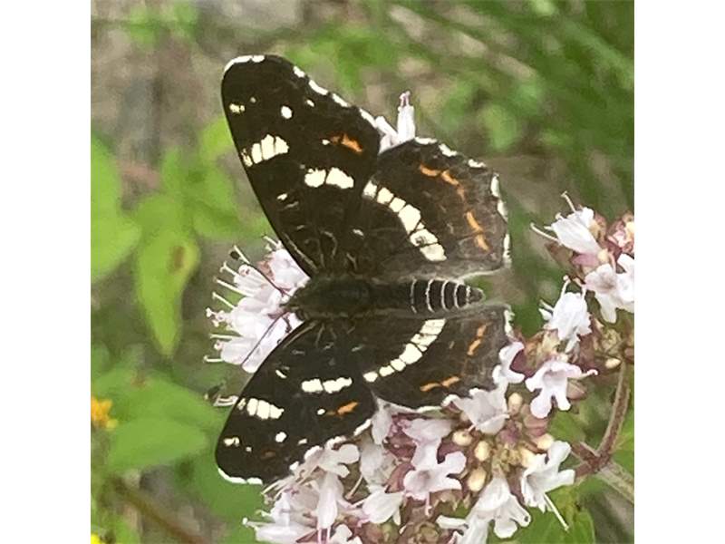 Landkärtchen, Sommergeneration der Schmetterlingsart auf Nektarspender Doldenblüte fotografiert, Falteroberseite im Sichtfeld, Ende Juni 2022, Auwald bei 06254 Horburg-Masslau (Sachsen-Anhalt) (© Heinz Sass)( Bild vergrößern)