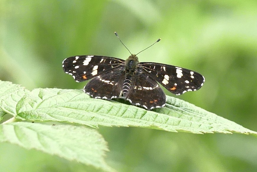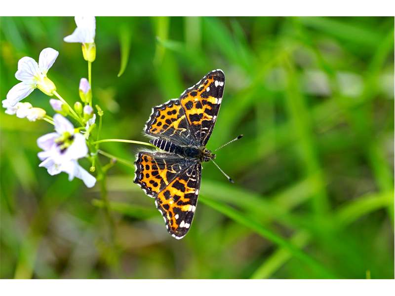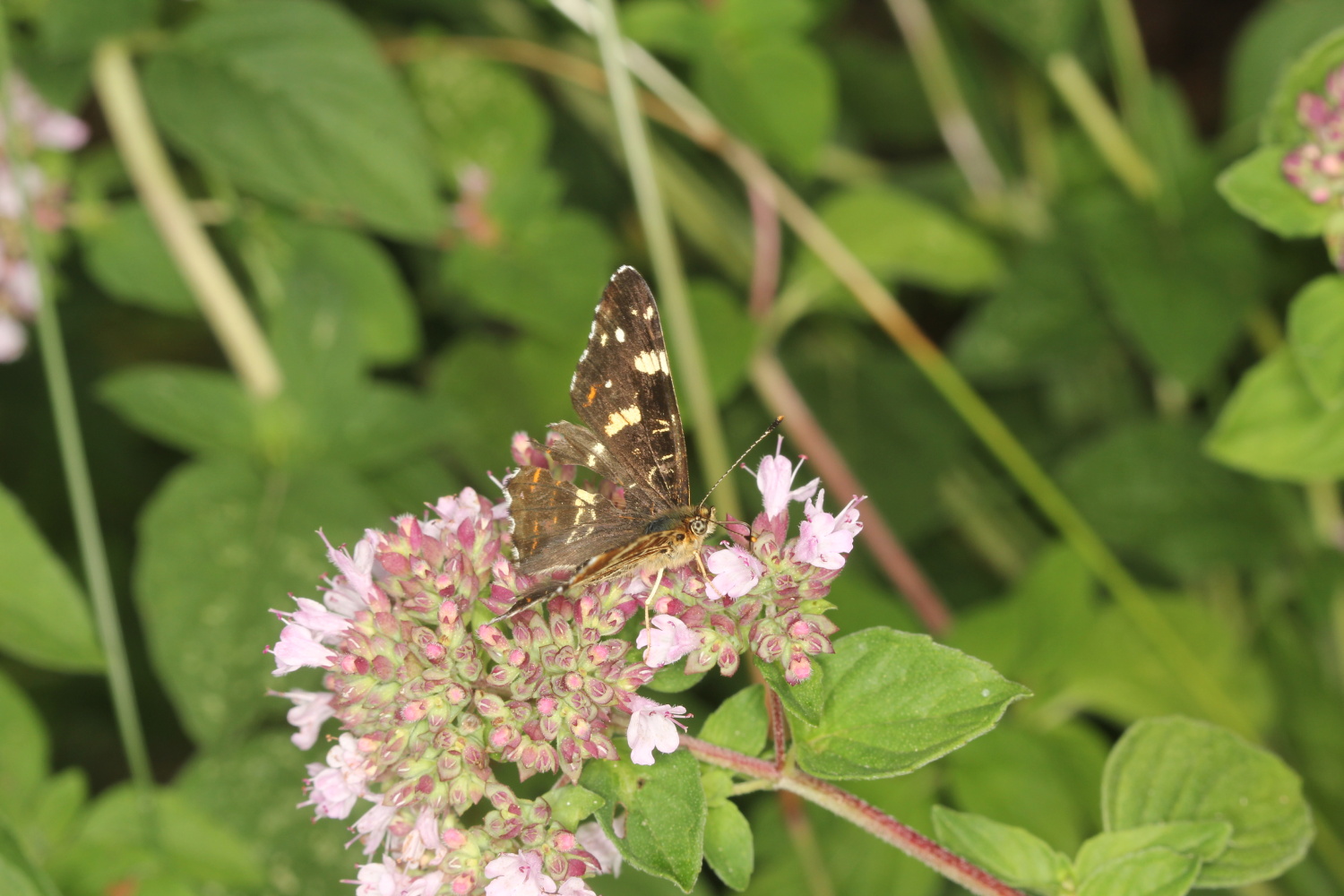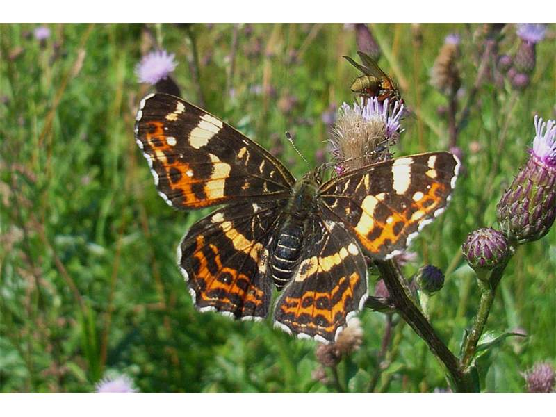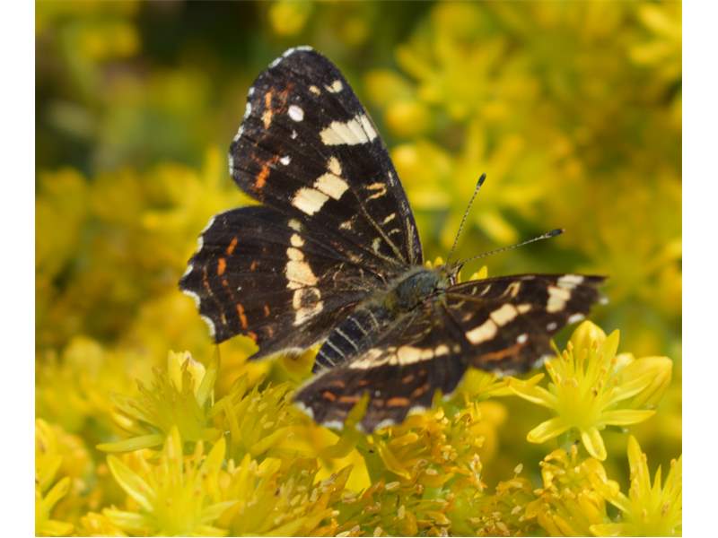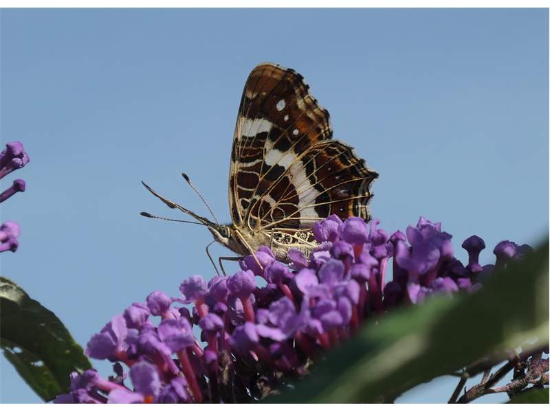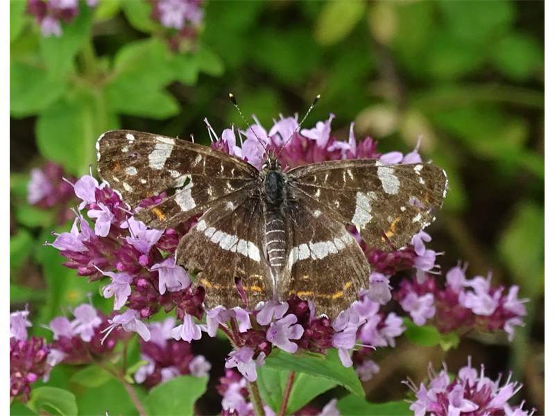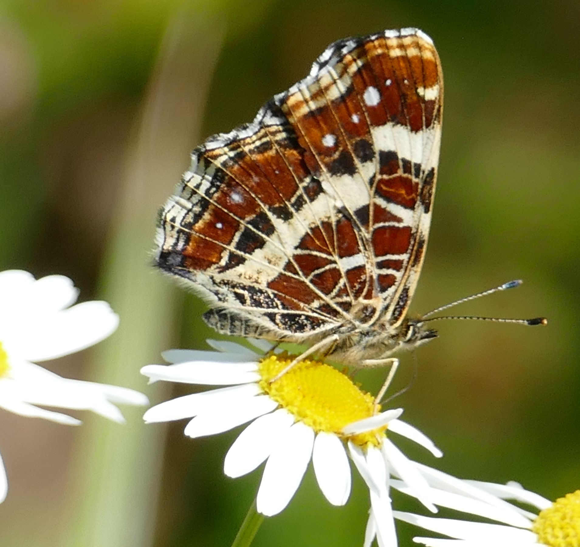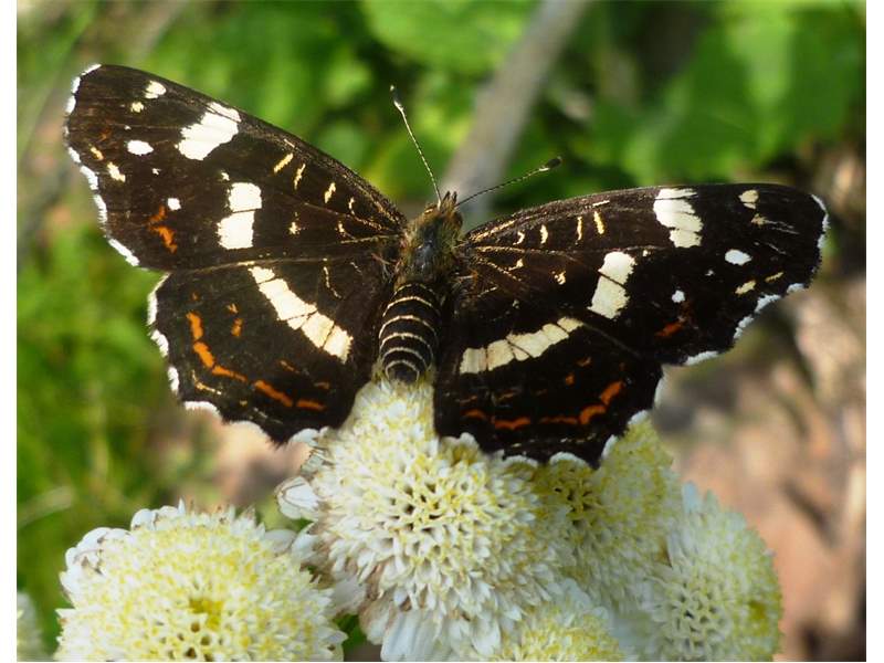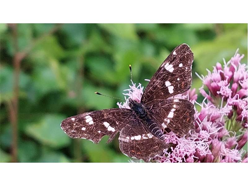 Landkärtchen, Sommergeneration der Schmetterlingsart auf Nektarspender Doldenblüte fotografiert, Falteroberseite im Sichtfeld, Ende Juni 2022, Auwald bei 06254 Horburg-Masslau (Sachsen-Anhalt) (© Heinz Sass)( Bild vergrößern)