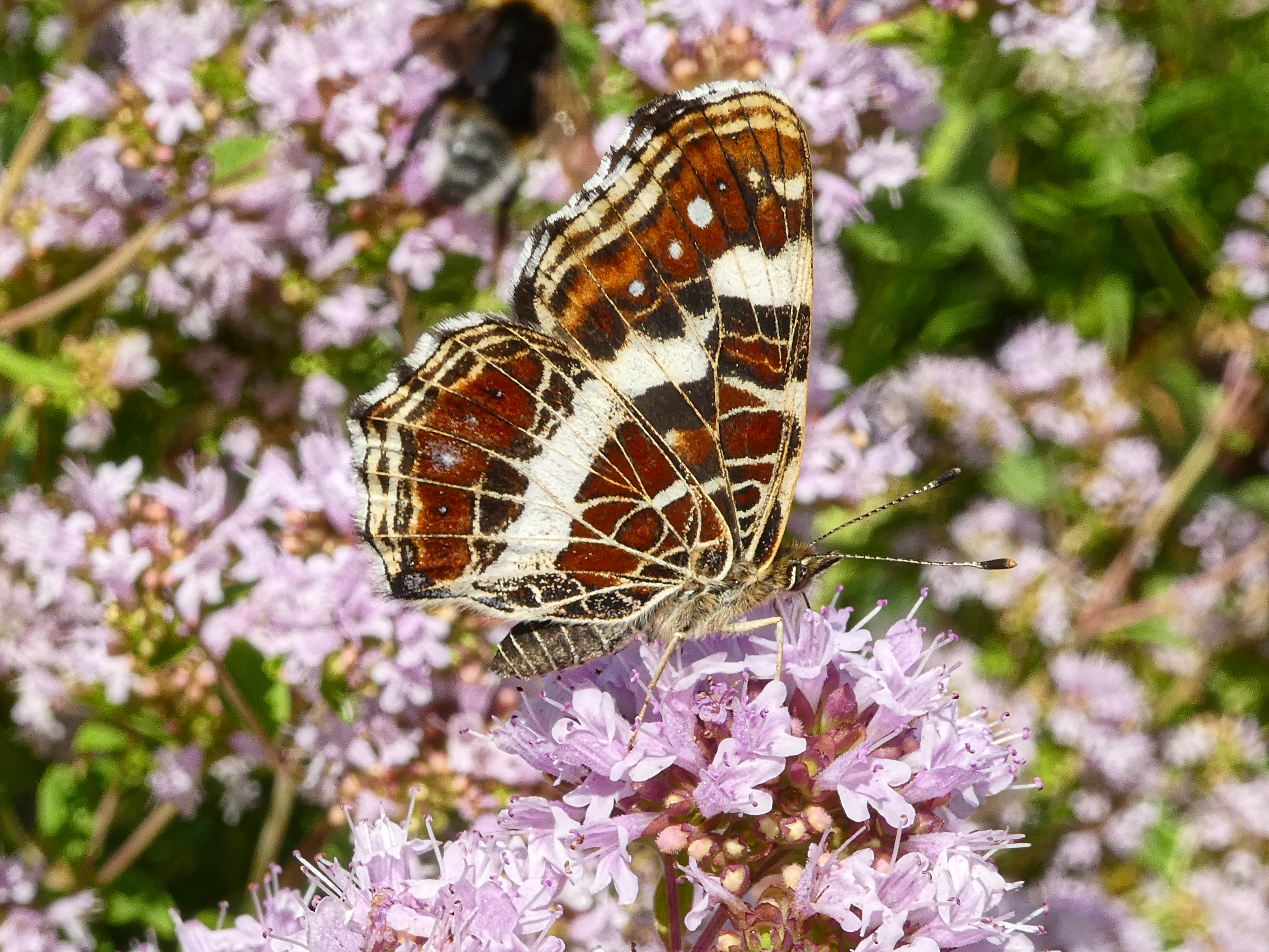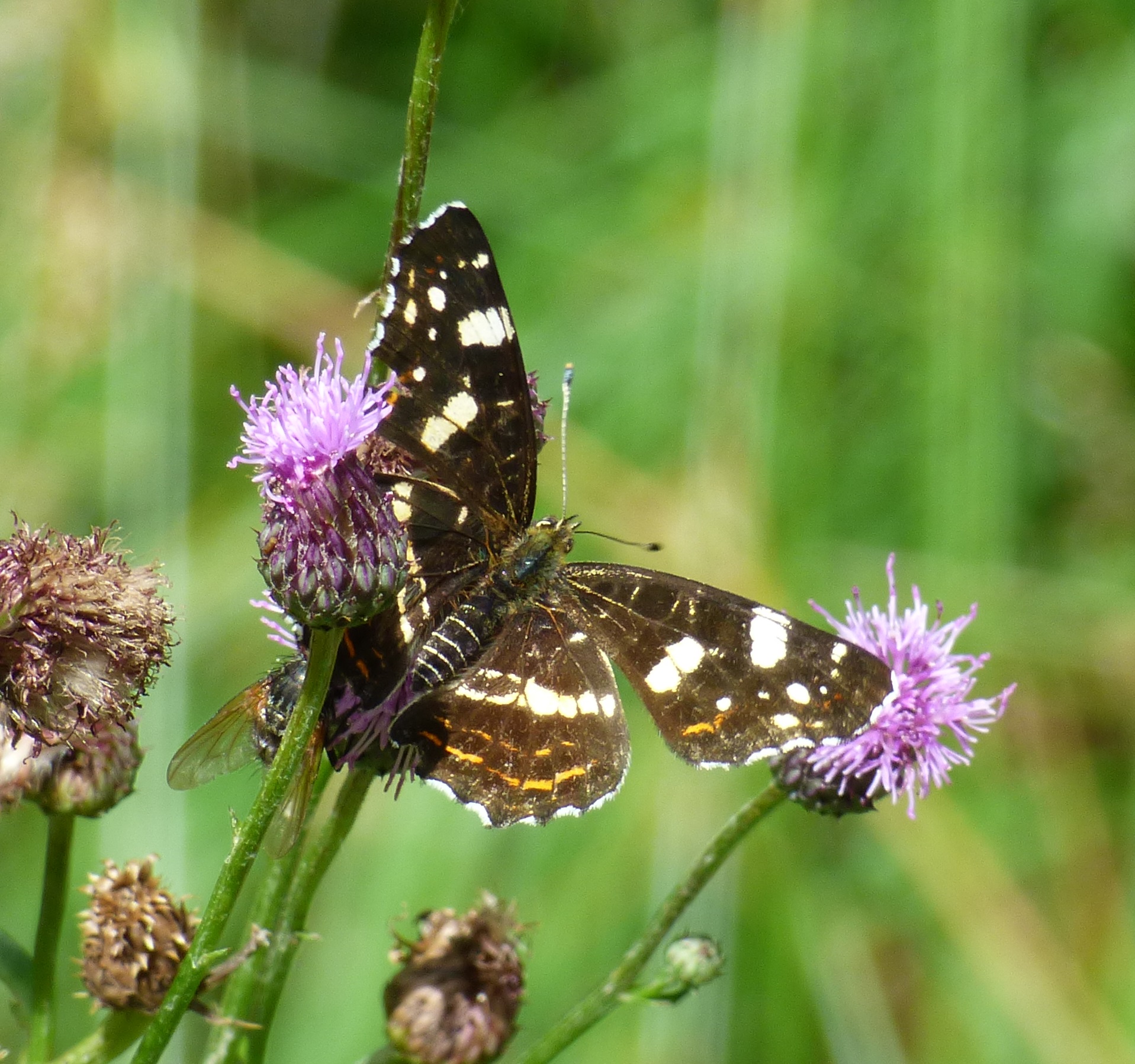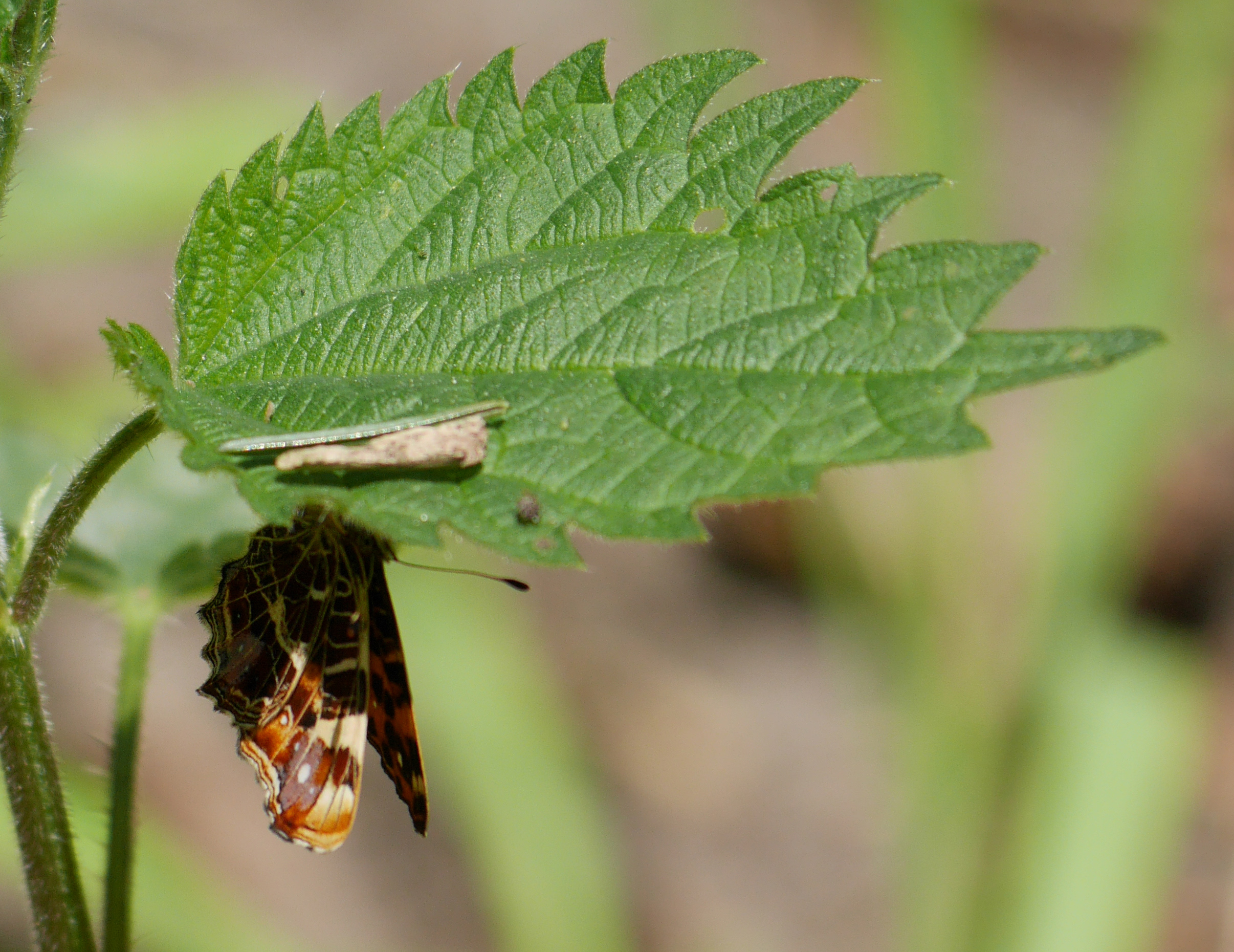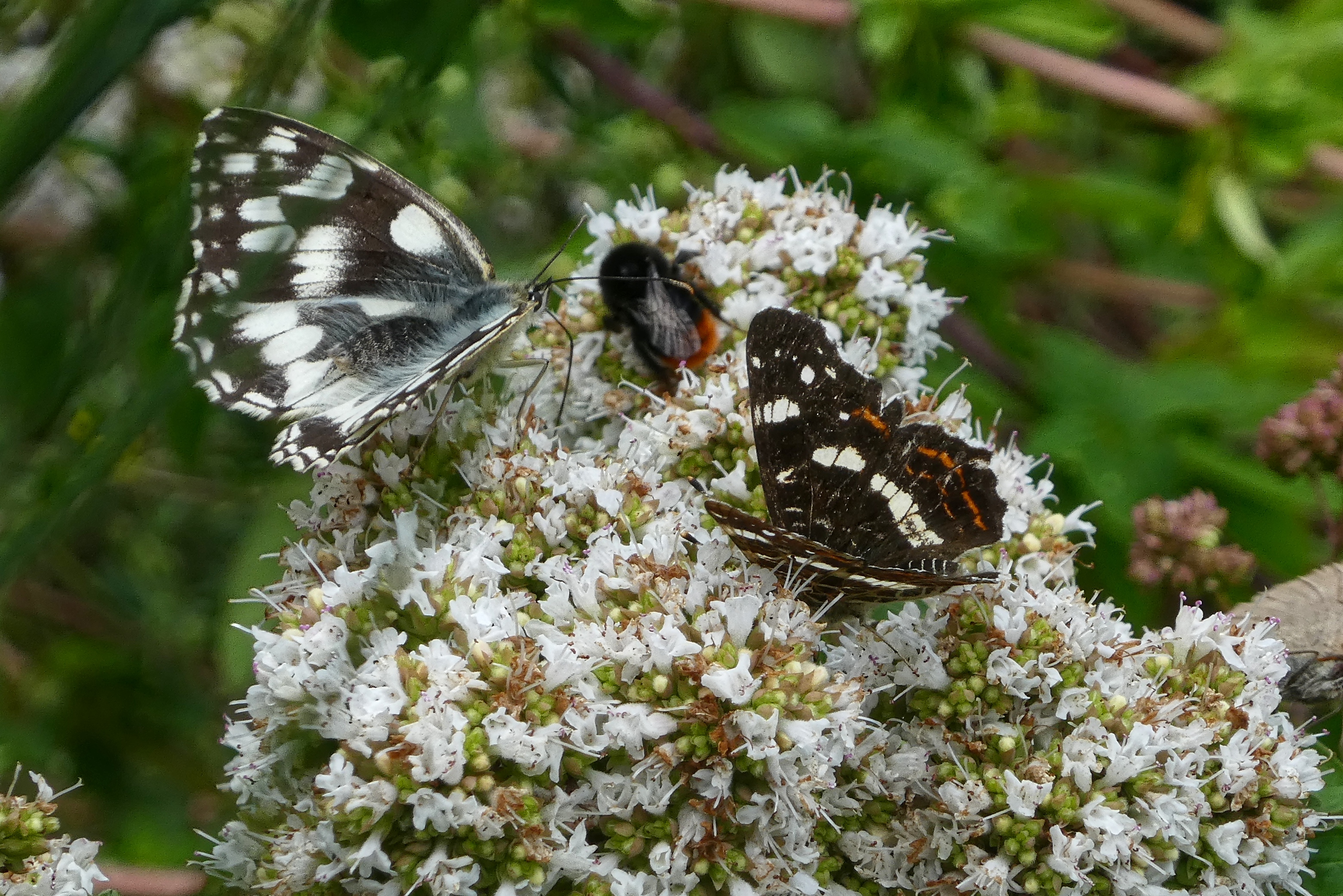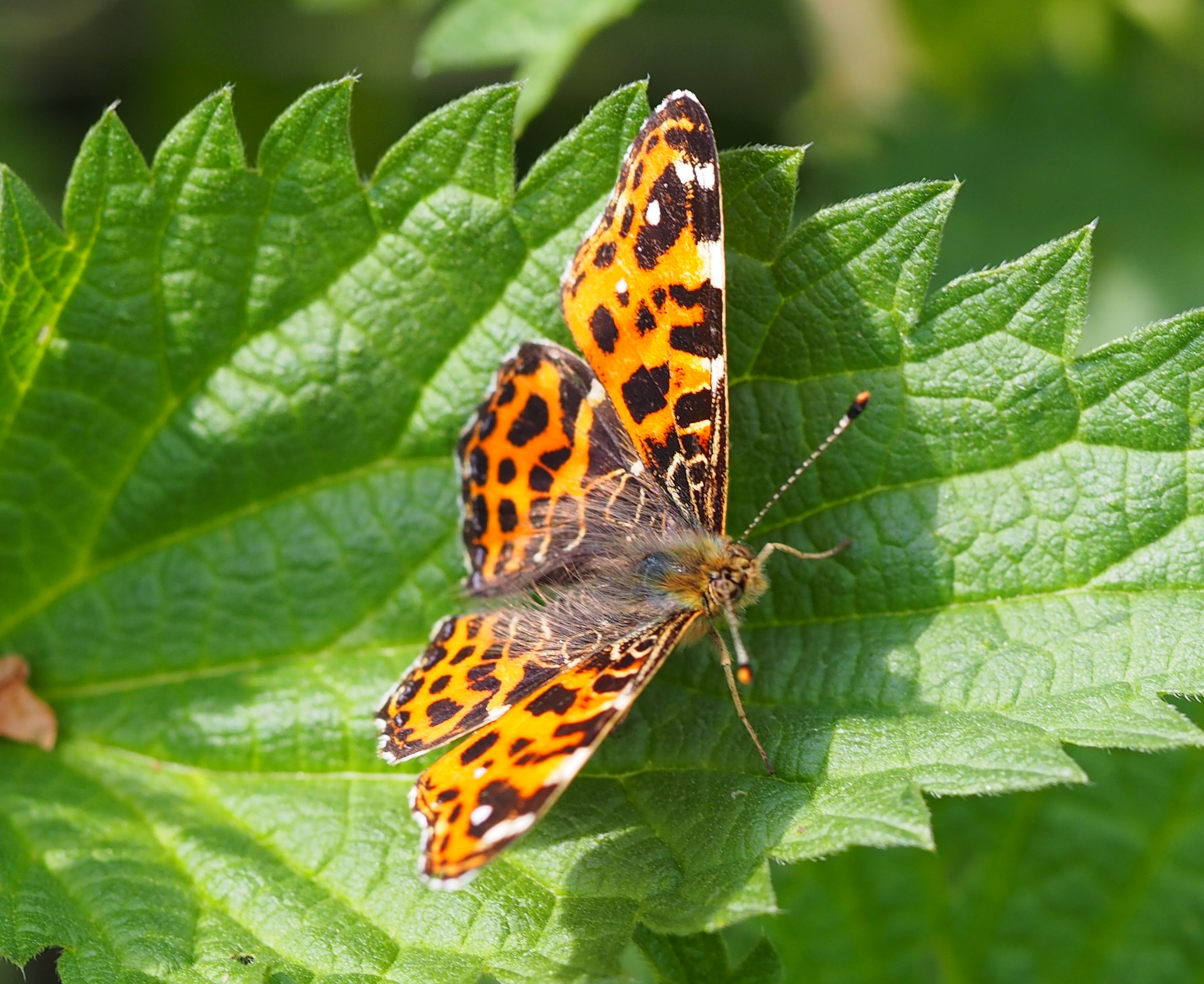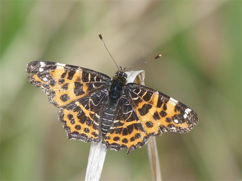 Landkärtchen, Sommergeneration der Schmetterlingsart auf Nektarspender Doldenblüte fotografiert, Falteroberseite im Sichtfeld, Ende Juni 2022, Auwald bei 06254 Horburg-Masslau (Sachsen-Anhalt) (© Heinz Sass)( Bild vergrößern)