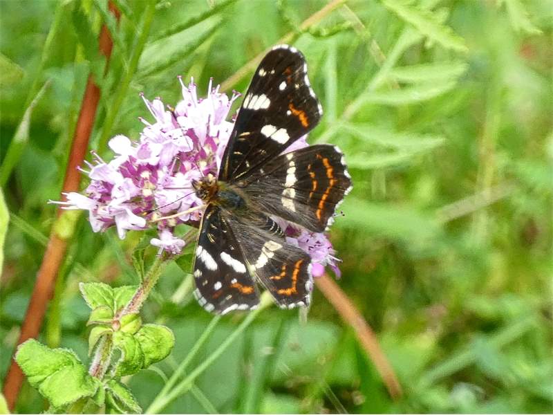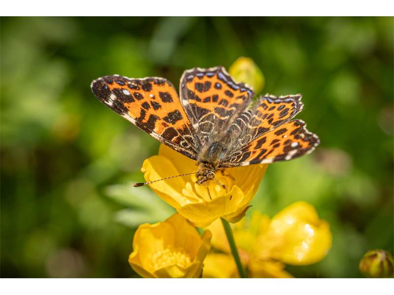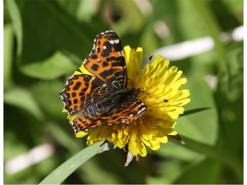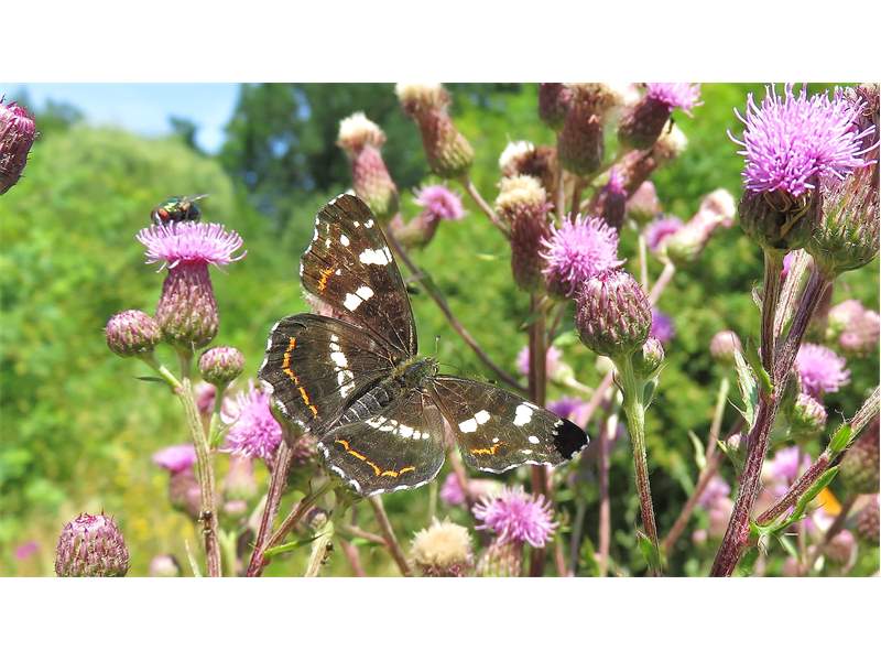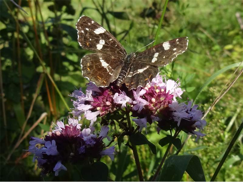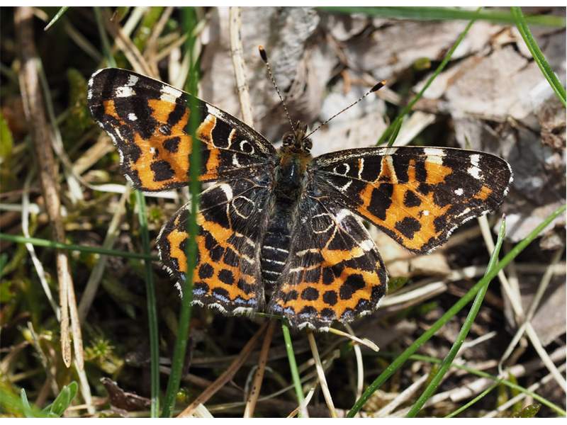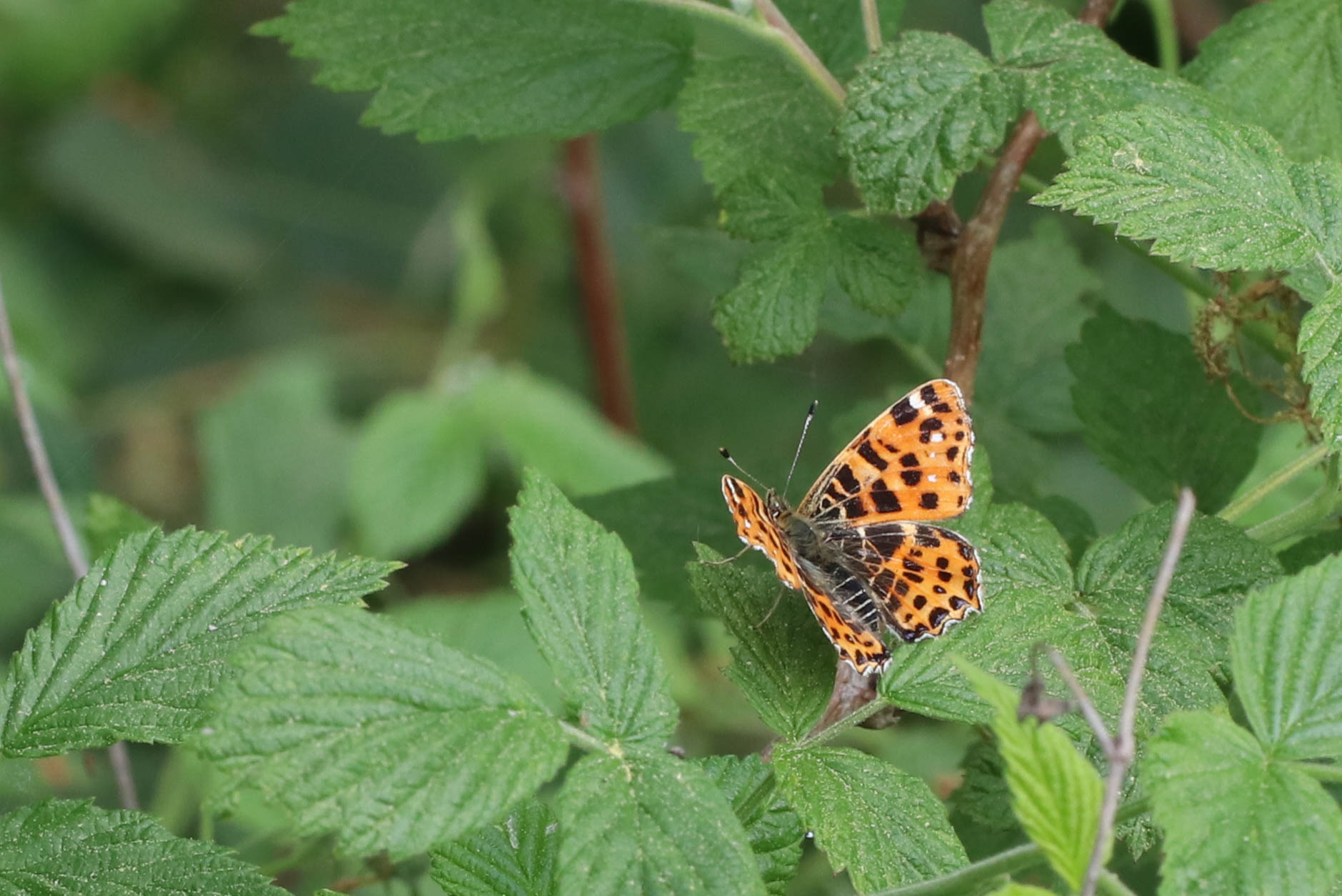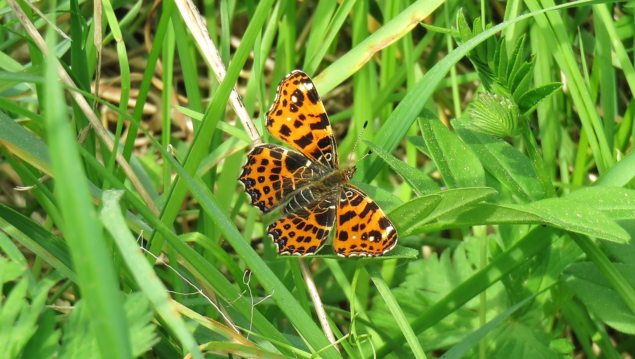 Landkärtchen, Sommergeneration der Schmetterlingsart auf Nektarspender Doldenblüte fotografiert, Falteroberseite im Sichtfeld, Ende Juni 2022, Auwald bei 06254 Horburg-Masslau (Sachsen-Anhalt) (© Heinz Sass)( Bild vergrößern)