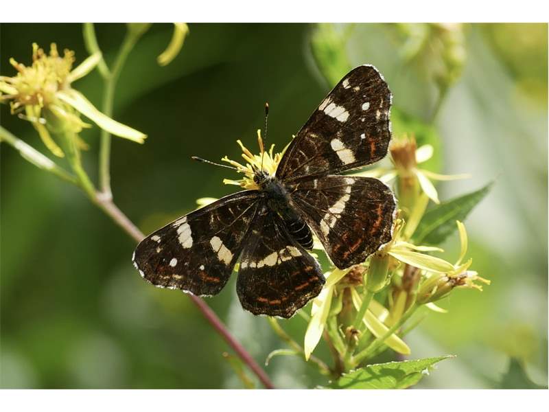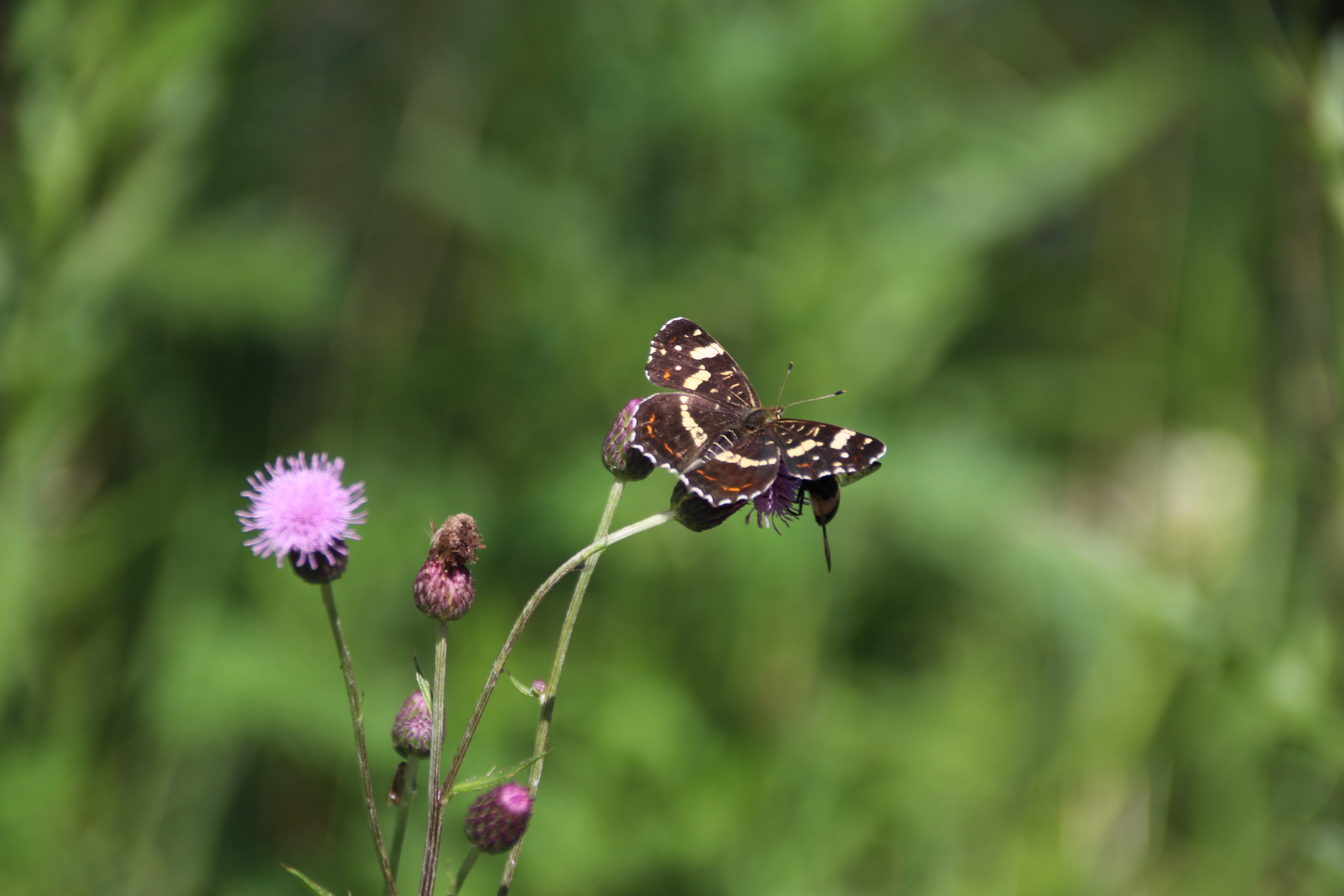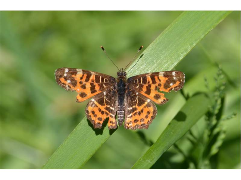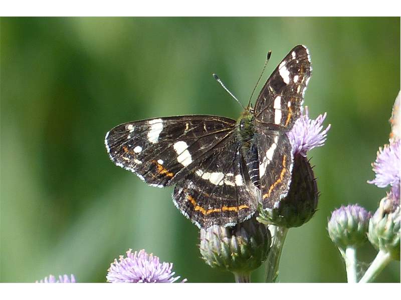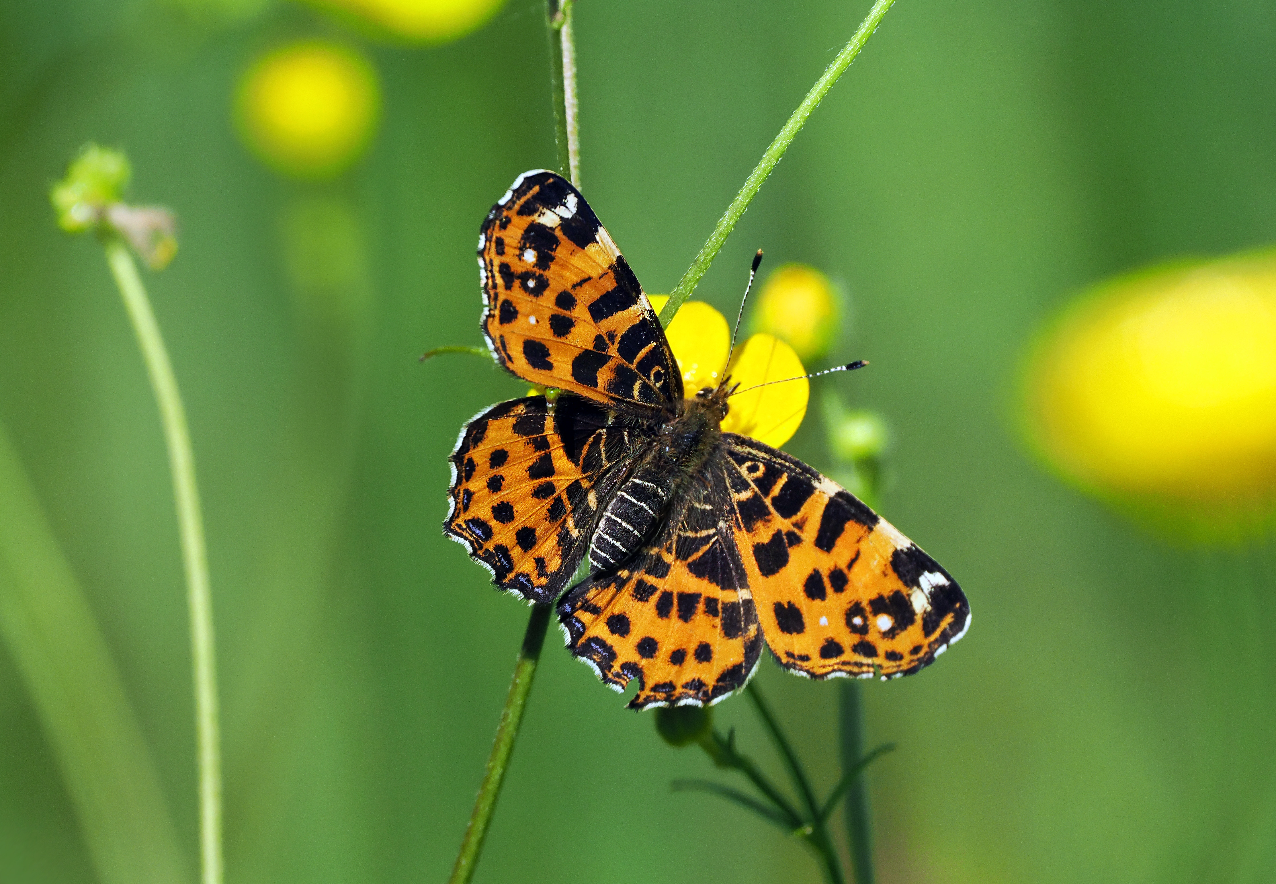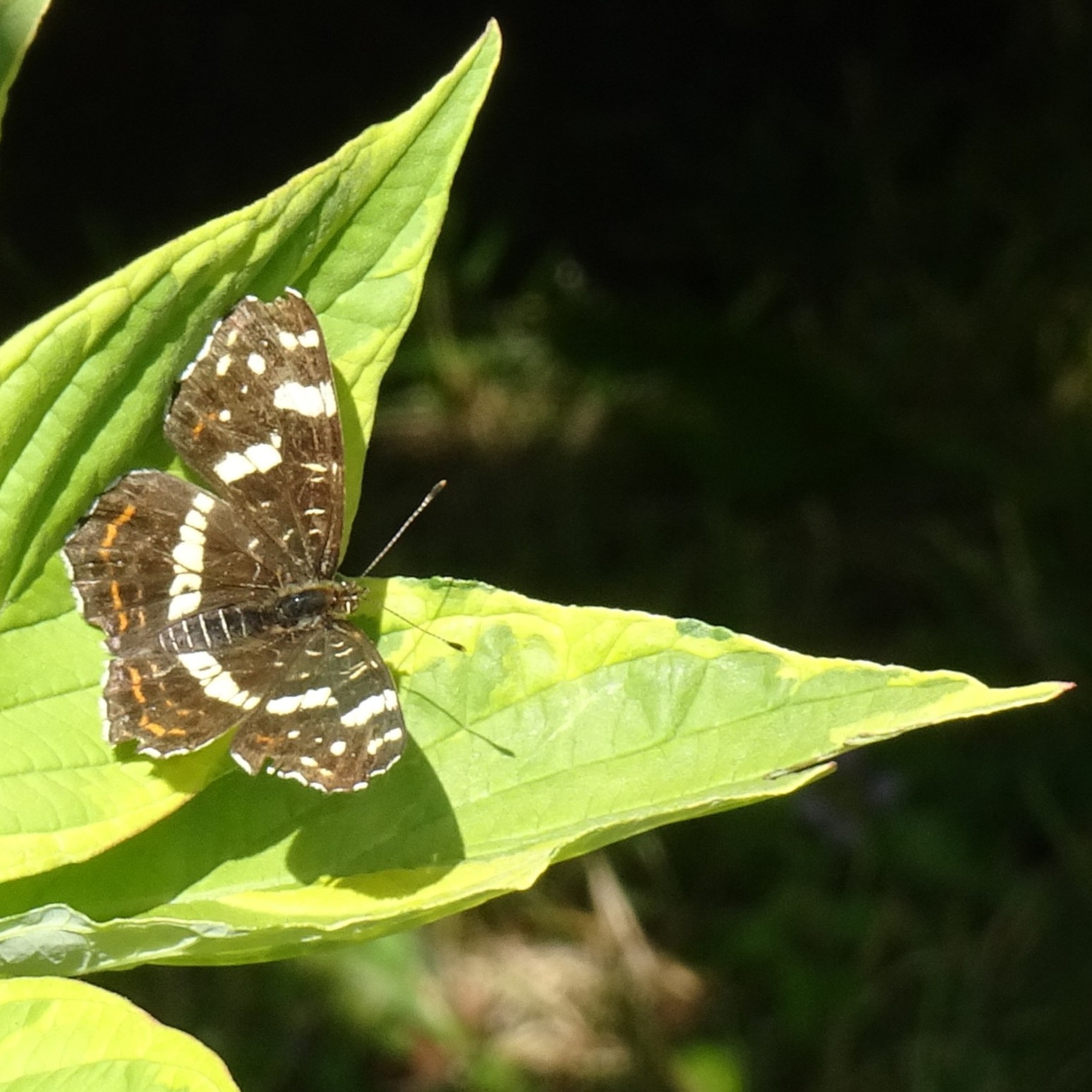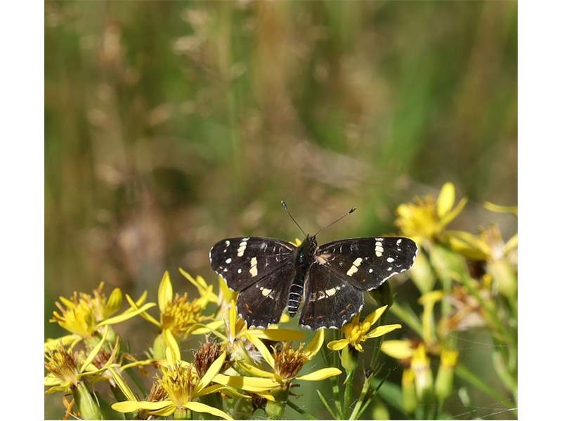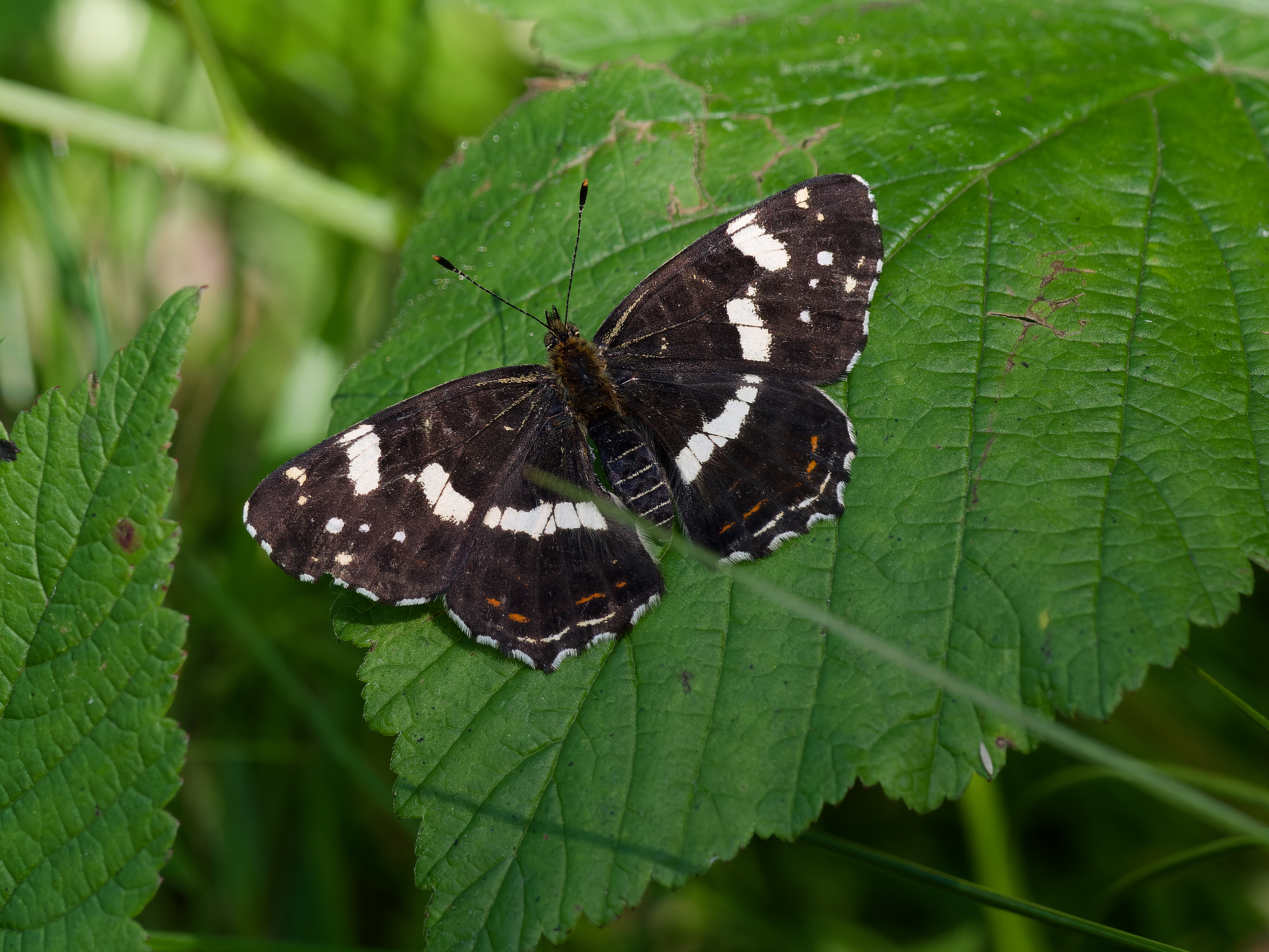 Landkärtchen, Sommergeneration der Schmetterlingsart auf Nektarspender Doldenblüte fotografiert, Falteroberseite im Sichtfeld, Ende Juni 2022, Auwald bei 06254 Horburg-Masslau (Sachsen-Anhalt) (© Heinz Sass)( Bild vergrößern)