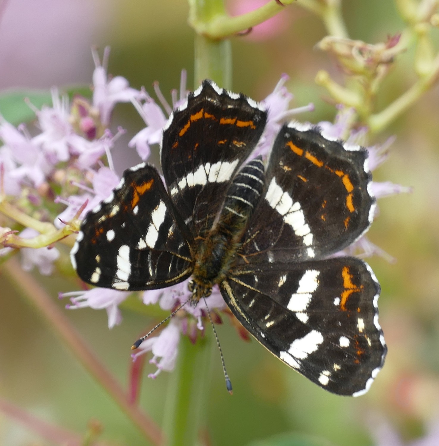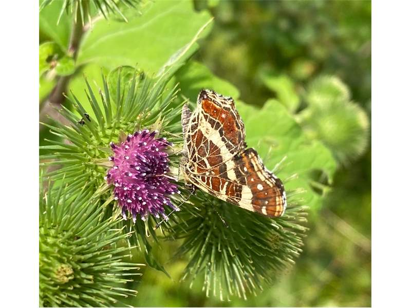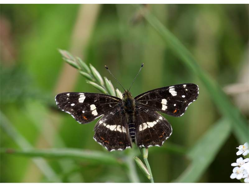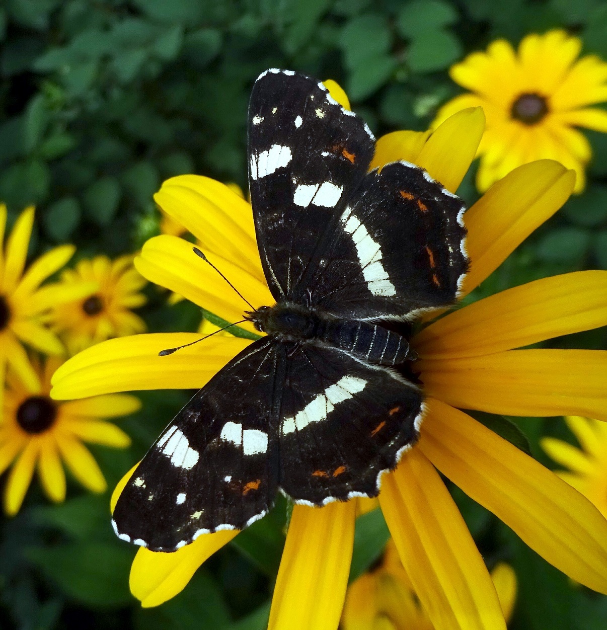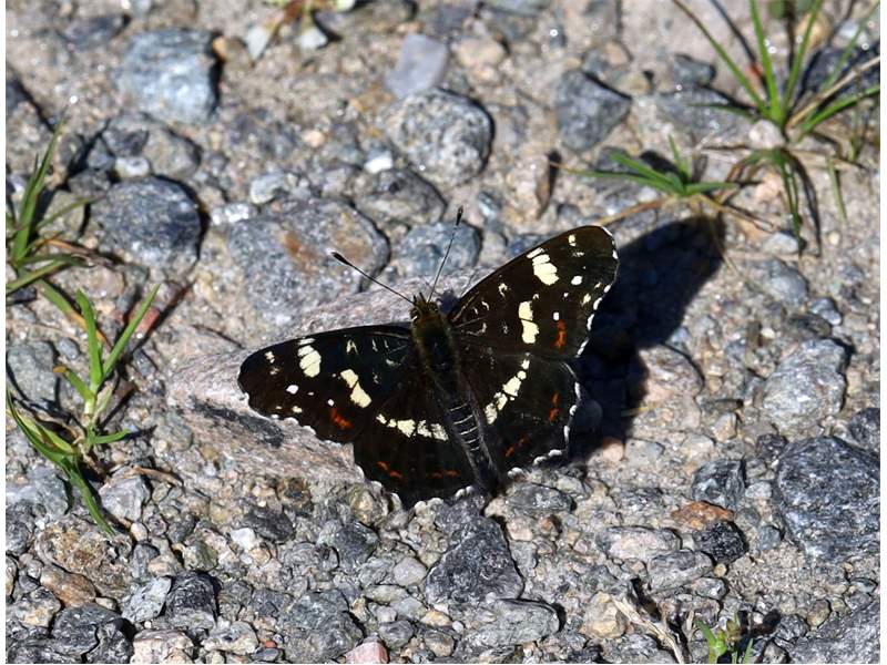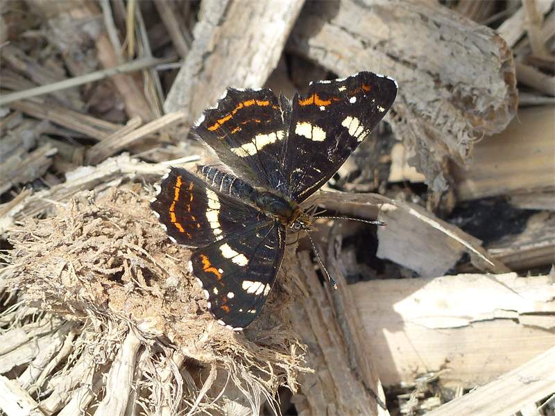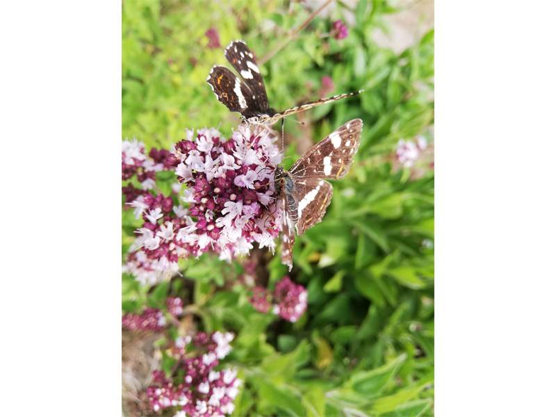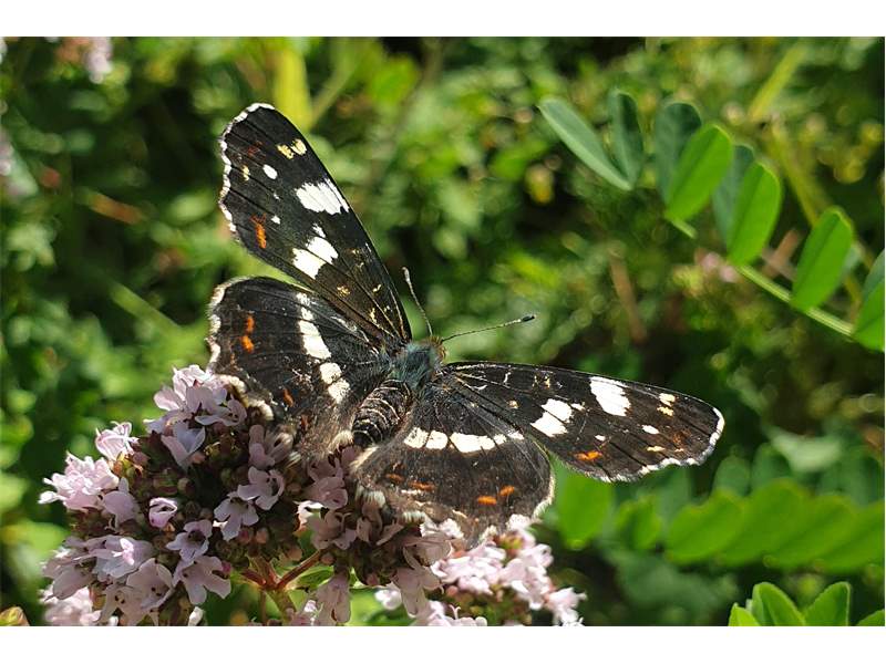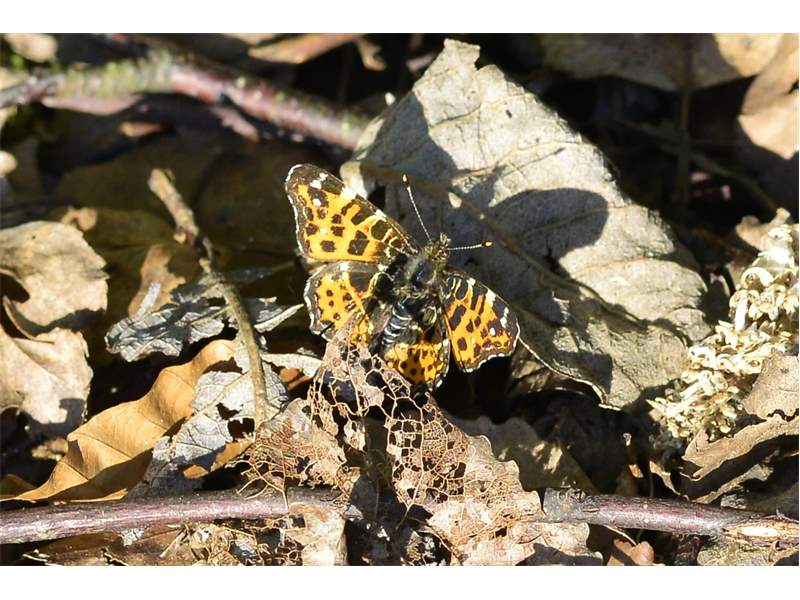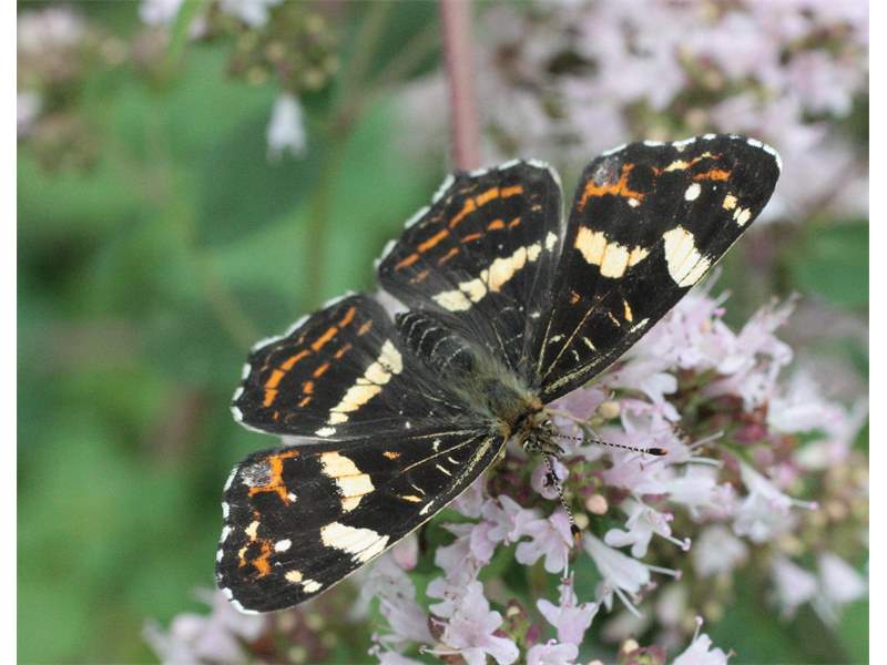Landkärtchen, Sommergeneration der Schmetterlingsart auf Nektarspender Doldenblüte fotografiert, Falteroberseite im Sichtfeld, Ende Juni 2022, Auwald bei 06254 Horburg-Masslau (Sachsen-Anhalt) (© Heinz Sass)( Bild vergrößern)