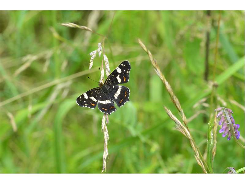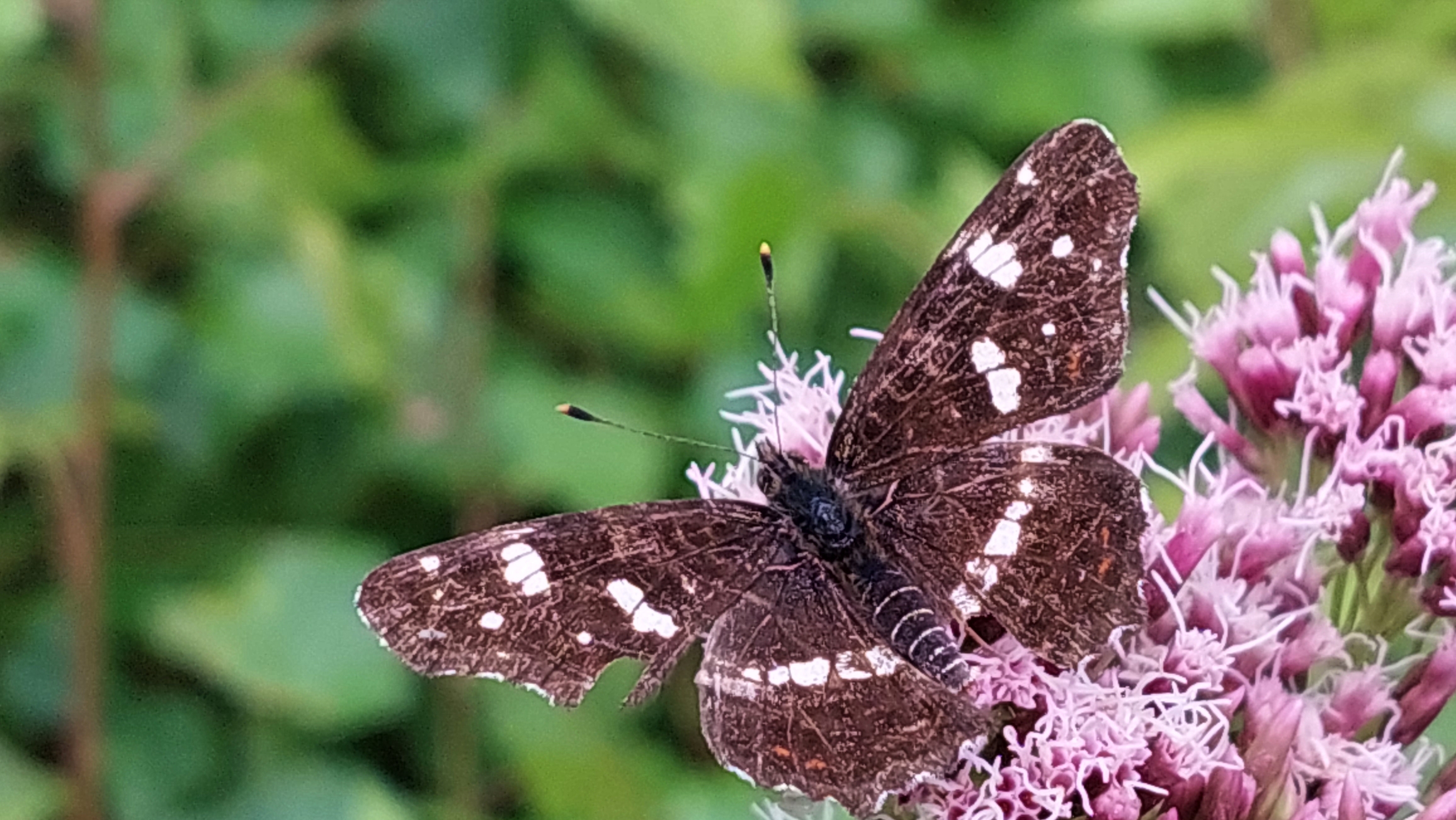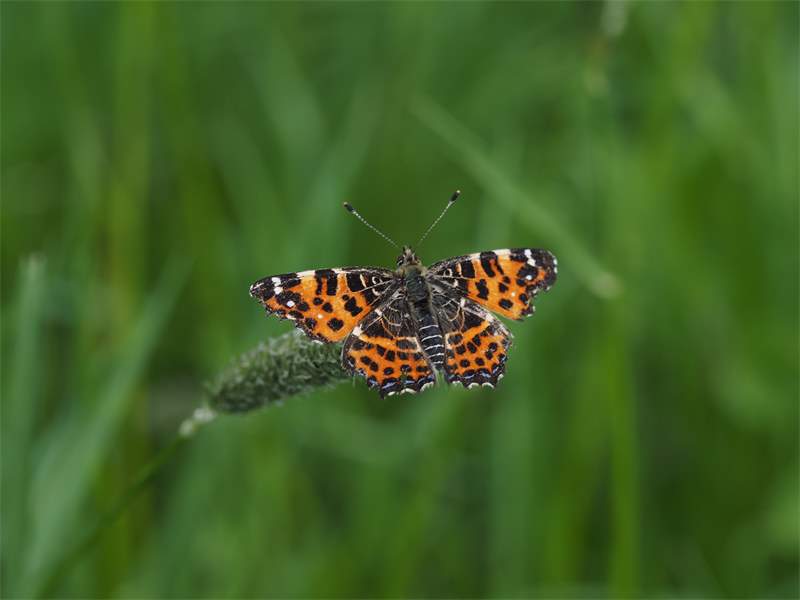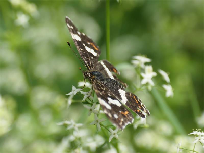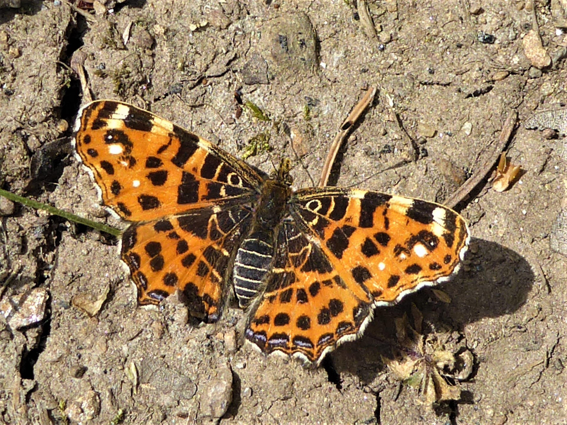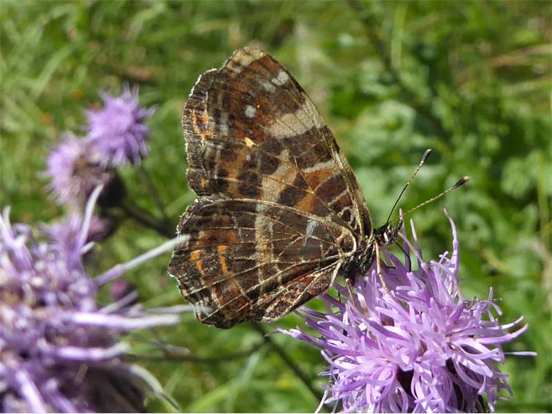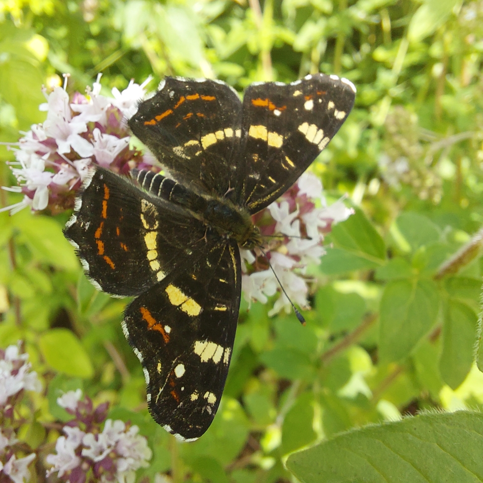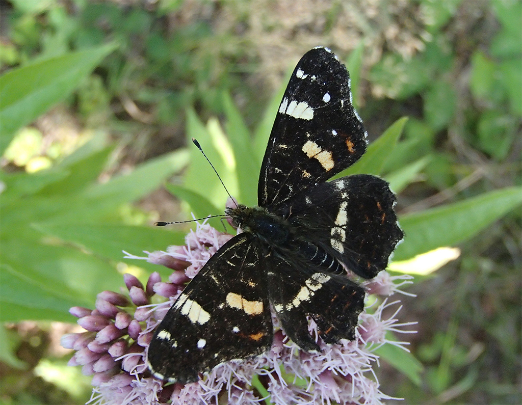 Landkärtchen, Sommergeneration der Schmetterlingsart auf Nektarspender Doldenblüte fotografiert, Falteroberseite im Sichtfeld, Ende Juni 2022, Auwald bei 06254 Horburg-Masslau (Sachsen-Anhalt) (© Heinz Sass)( Bild vergrößern)