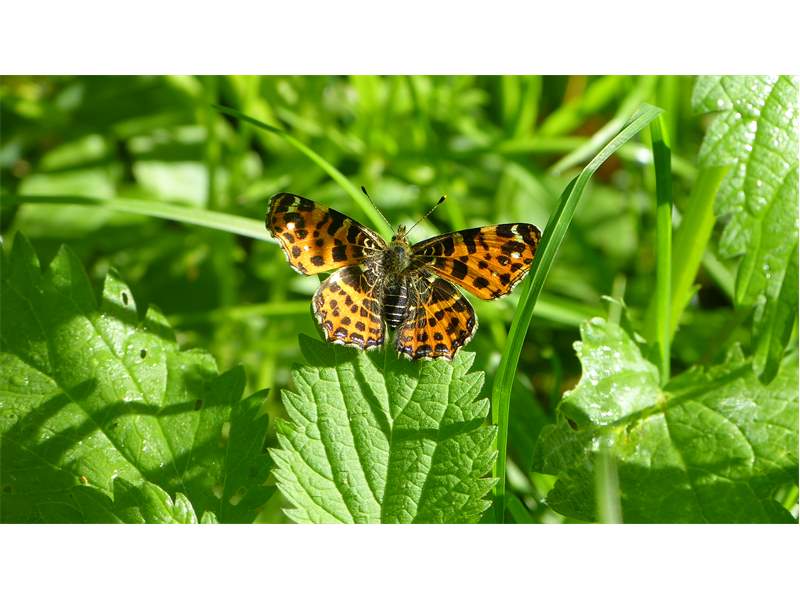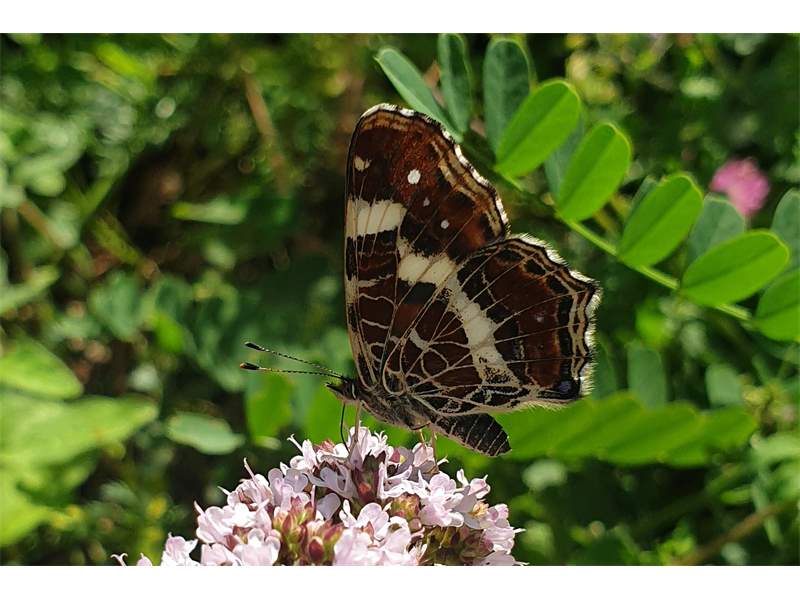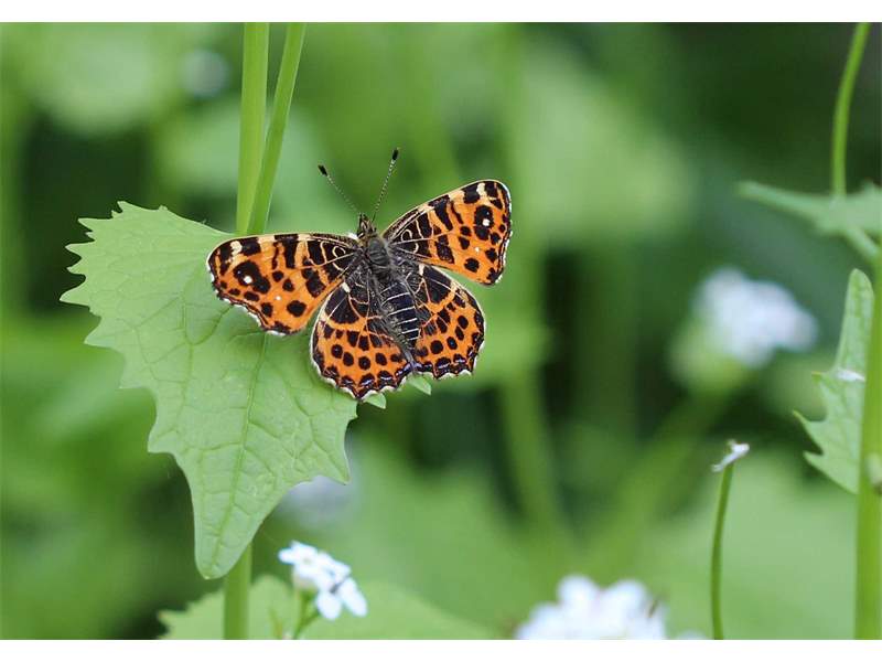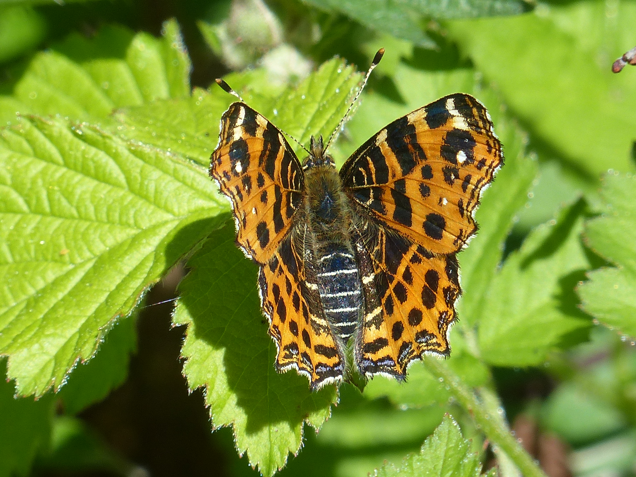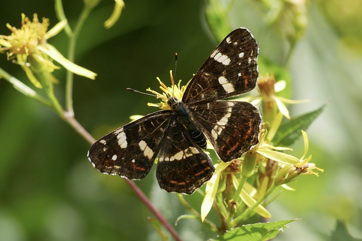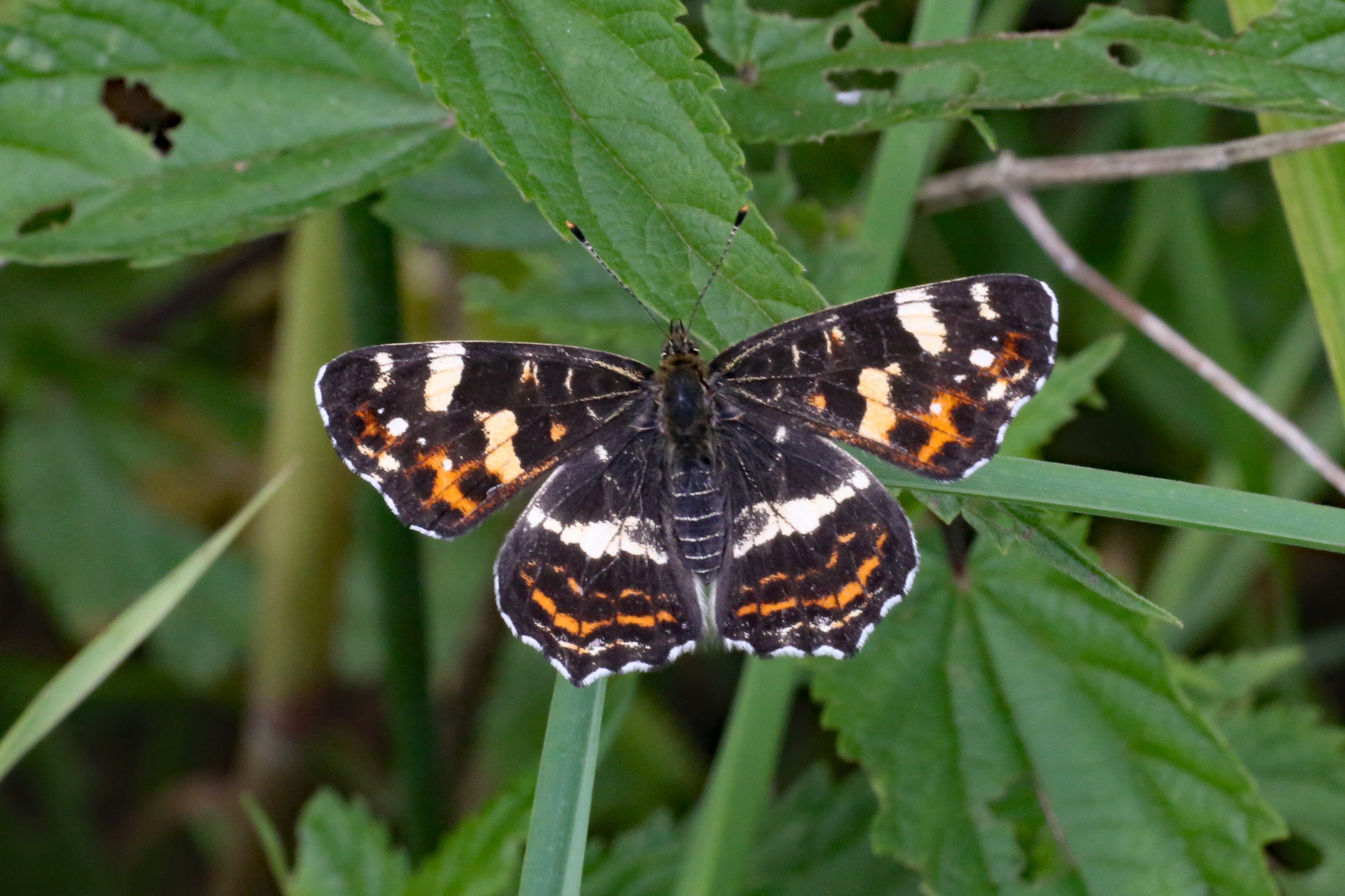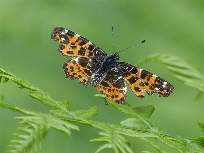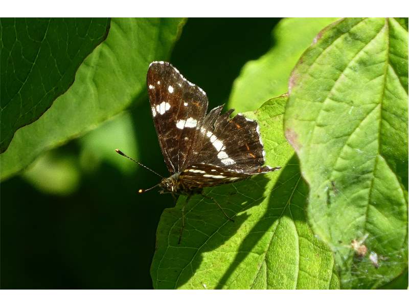 Landkärtchen, Sommergeneration der Schmetterlingsart auf Nektarspender Doldenblüte fotografiert, Falteroberseite im Sichtfeld, Ende Juni 2022, Auwald bei 06254 Horburg-Masslau (Sachsen-Anhalt) (© Heinz Sass)( Bild vergrößern)