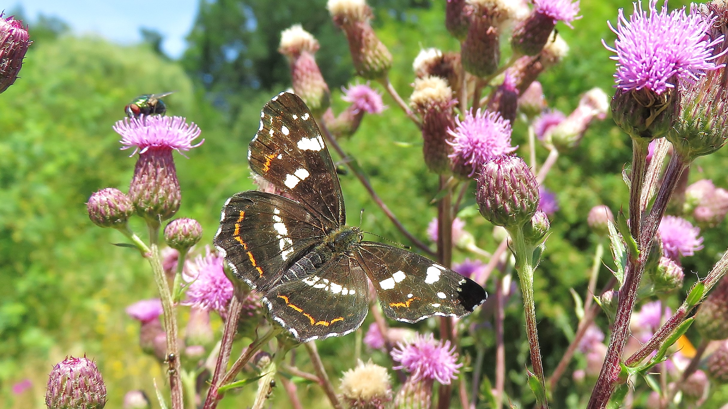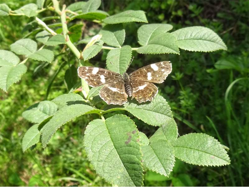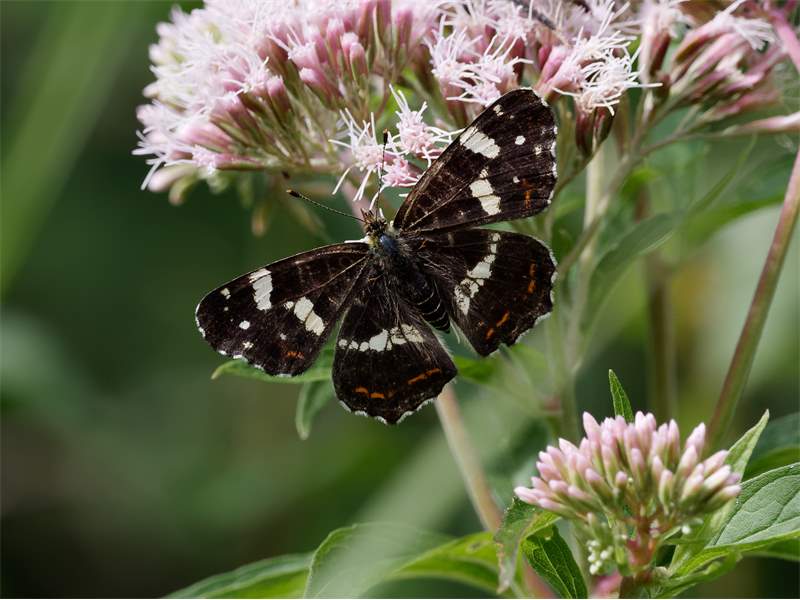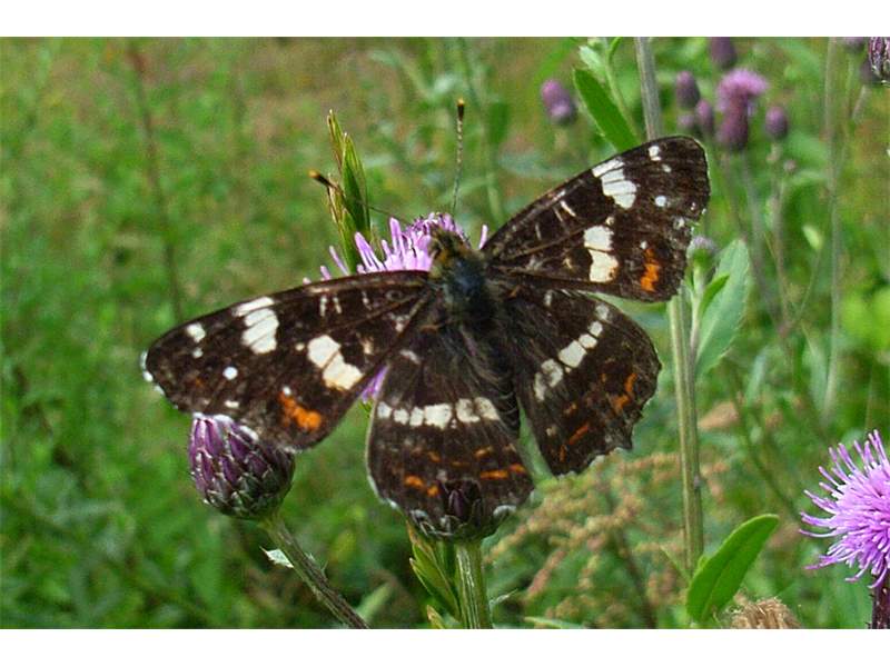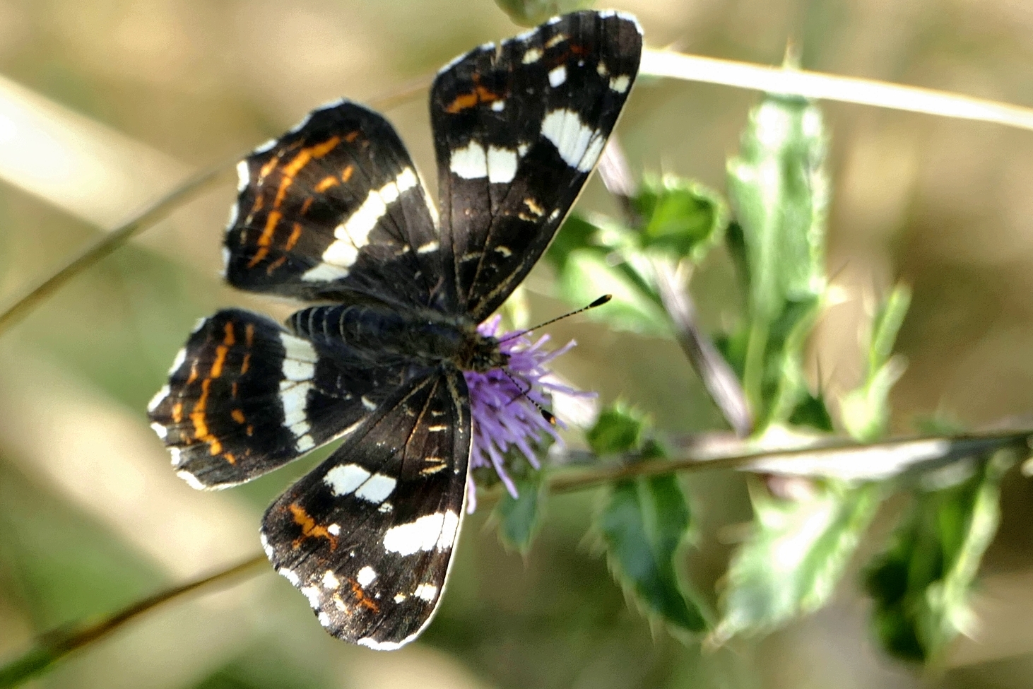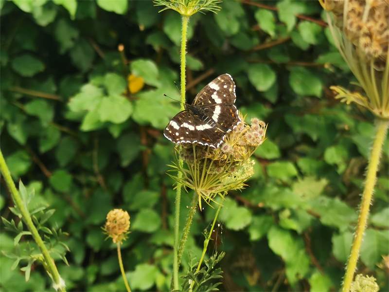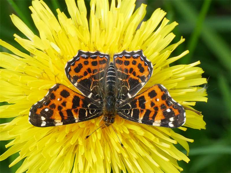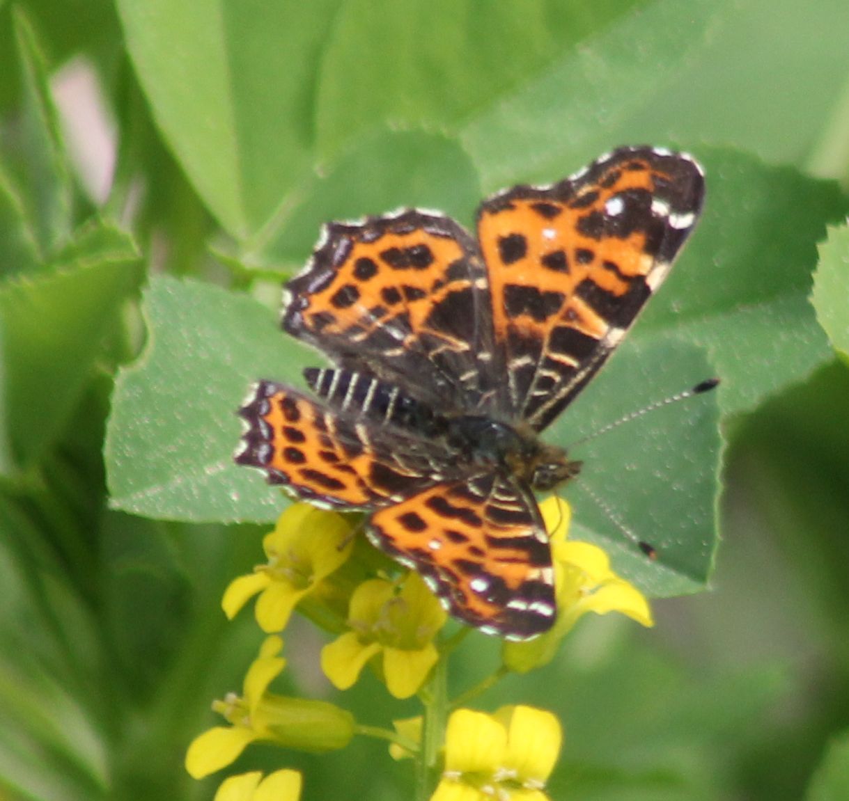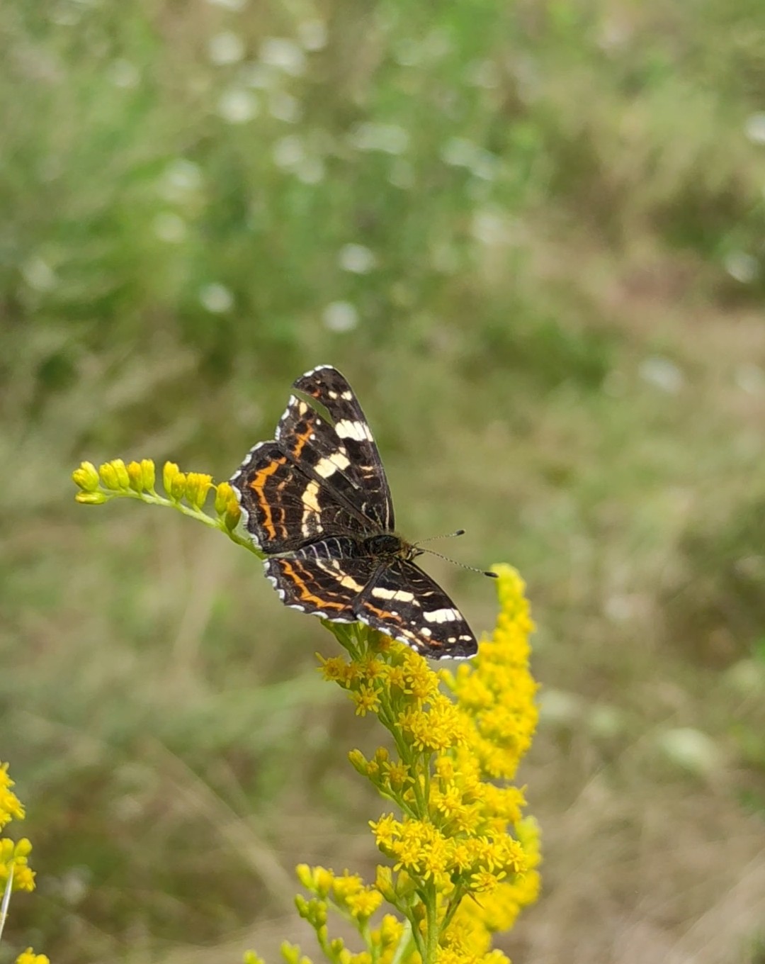 Landkärtchen, Sommergeneration der Schmetterlingsart auf Nektarspender Doldenblüte fotografiert, Falteroberseite im Sichtfeld, Ende Juni 2022, Auwald bei 06254 Horburg-Masslau (Sachsen-Anhalt) (© Heinz Sass)( Bild vergrößern)
