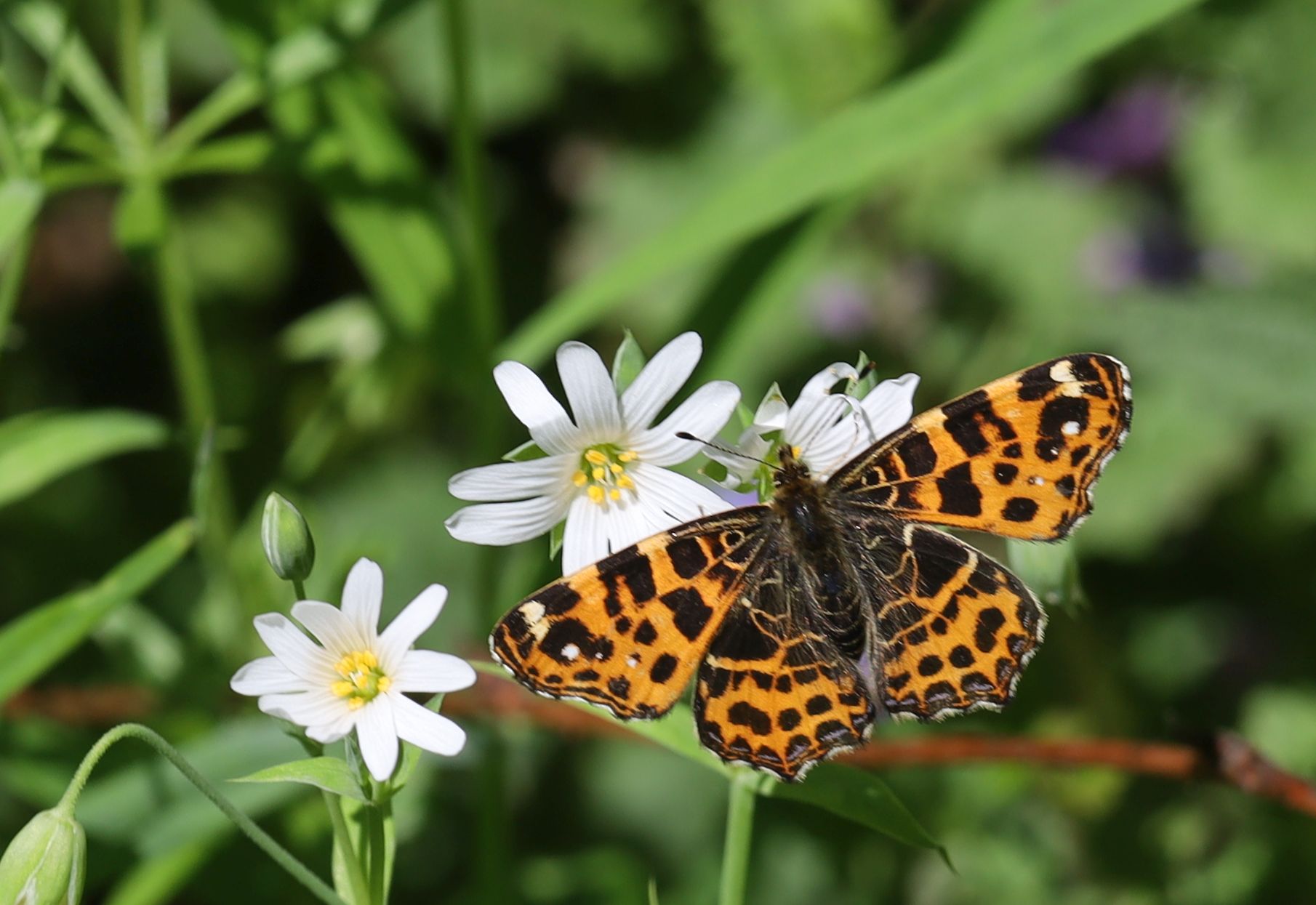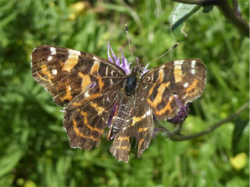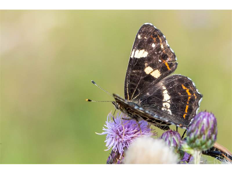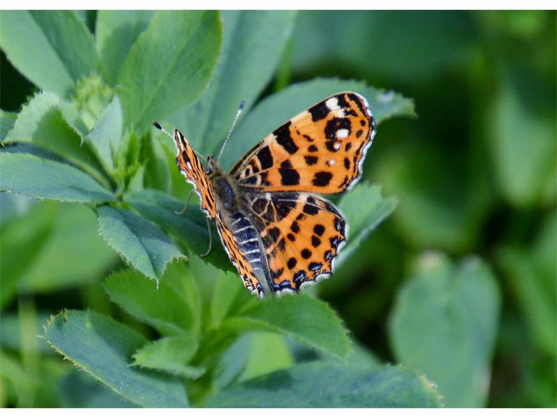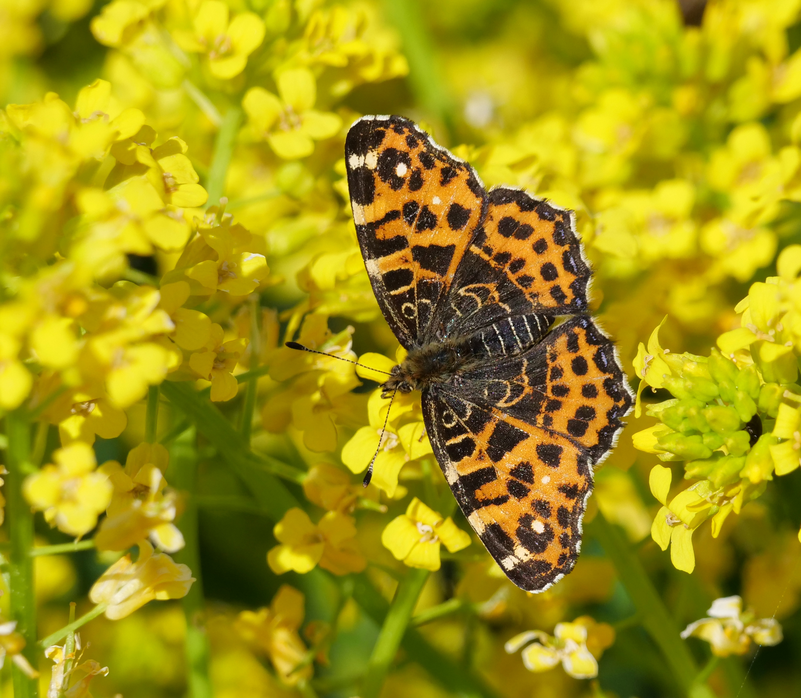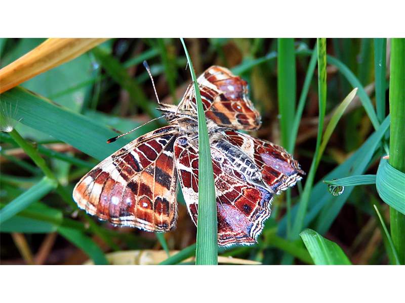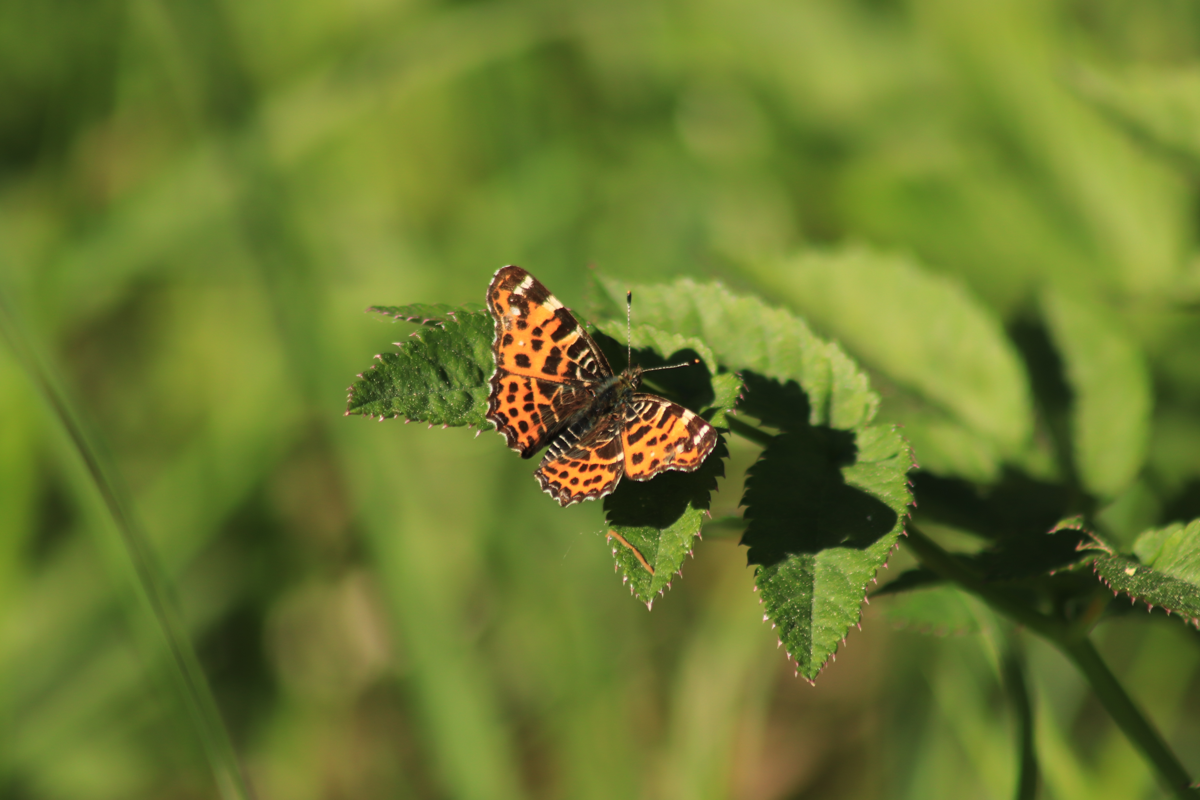 Landkärtchen, Sommergeneration der Schmetterlingsart auf Nektarspender Doldenblüte fotografiert, Falteroberseite im Sichtfeld, Ende Juni 2022, Auwald bei 06254 Horburg-Masslau (Sachsen-Anhalt) (© Heinz Sass)( Bild vergrößern)