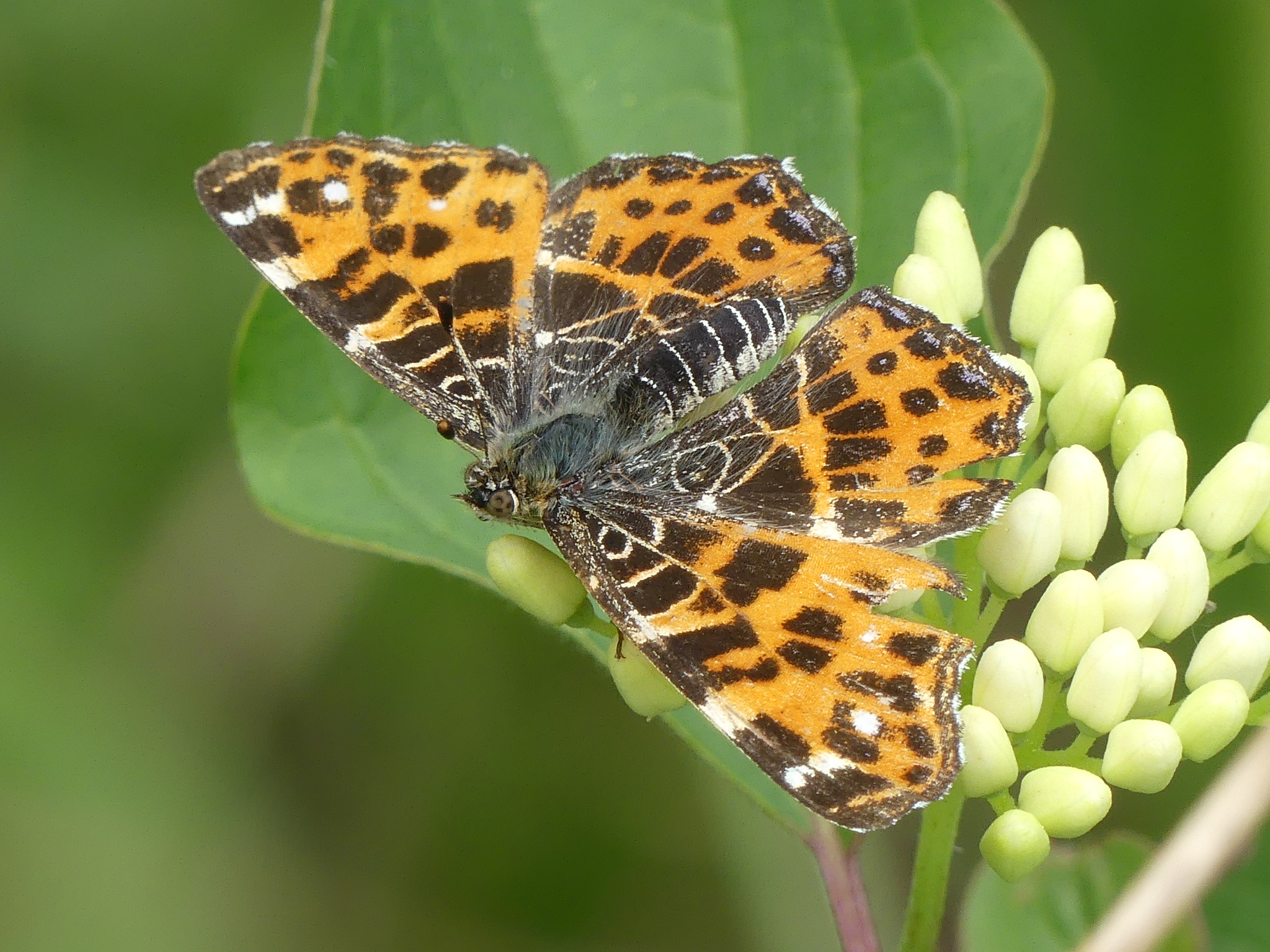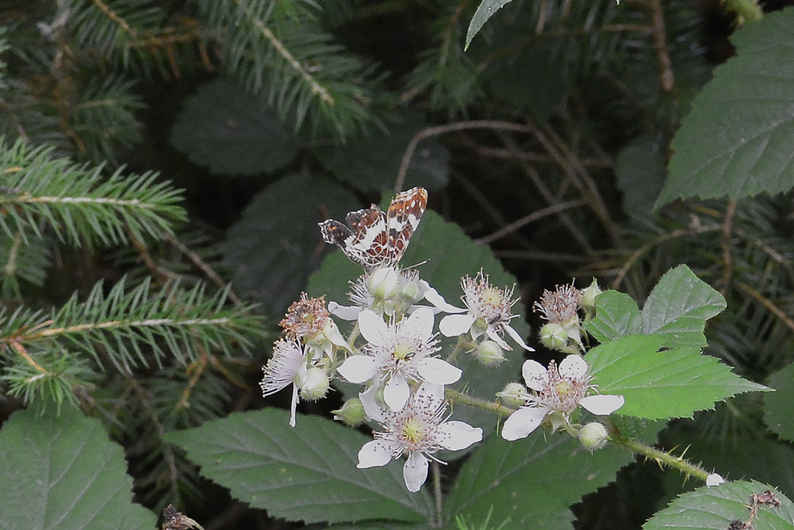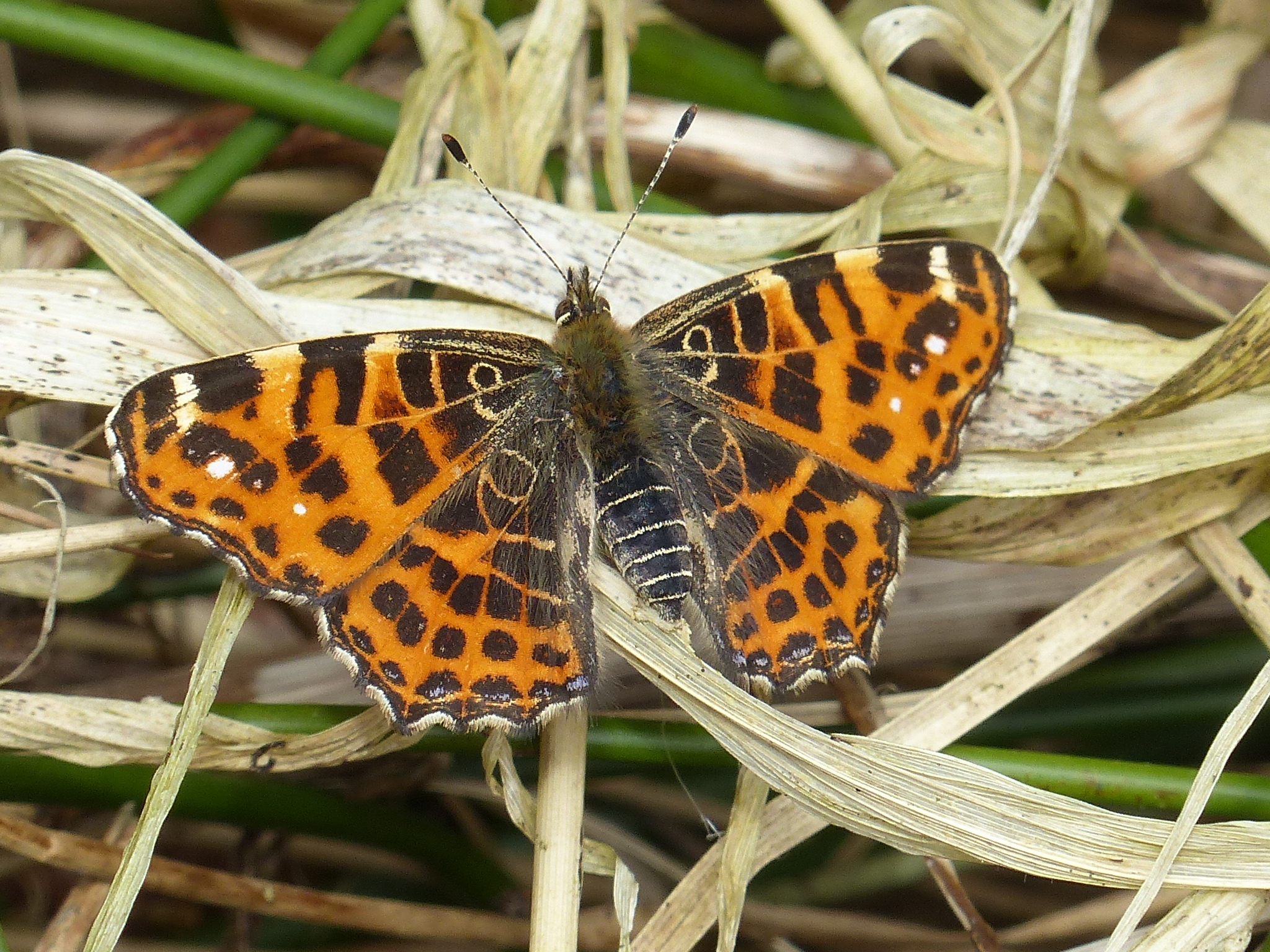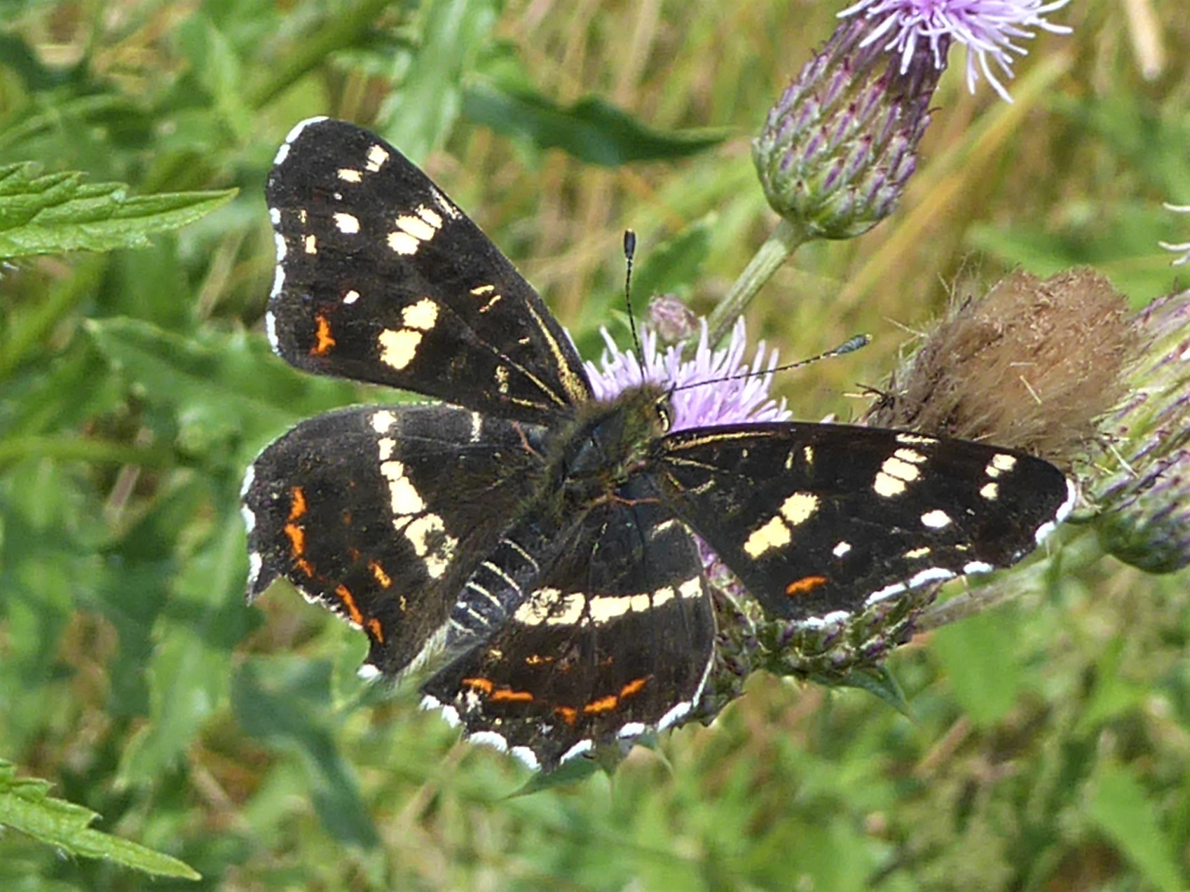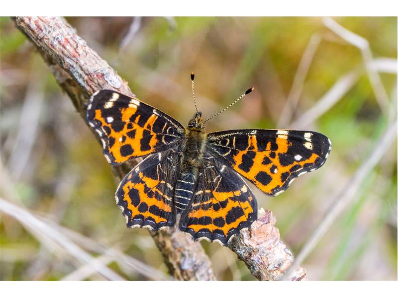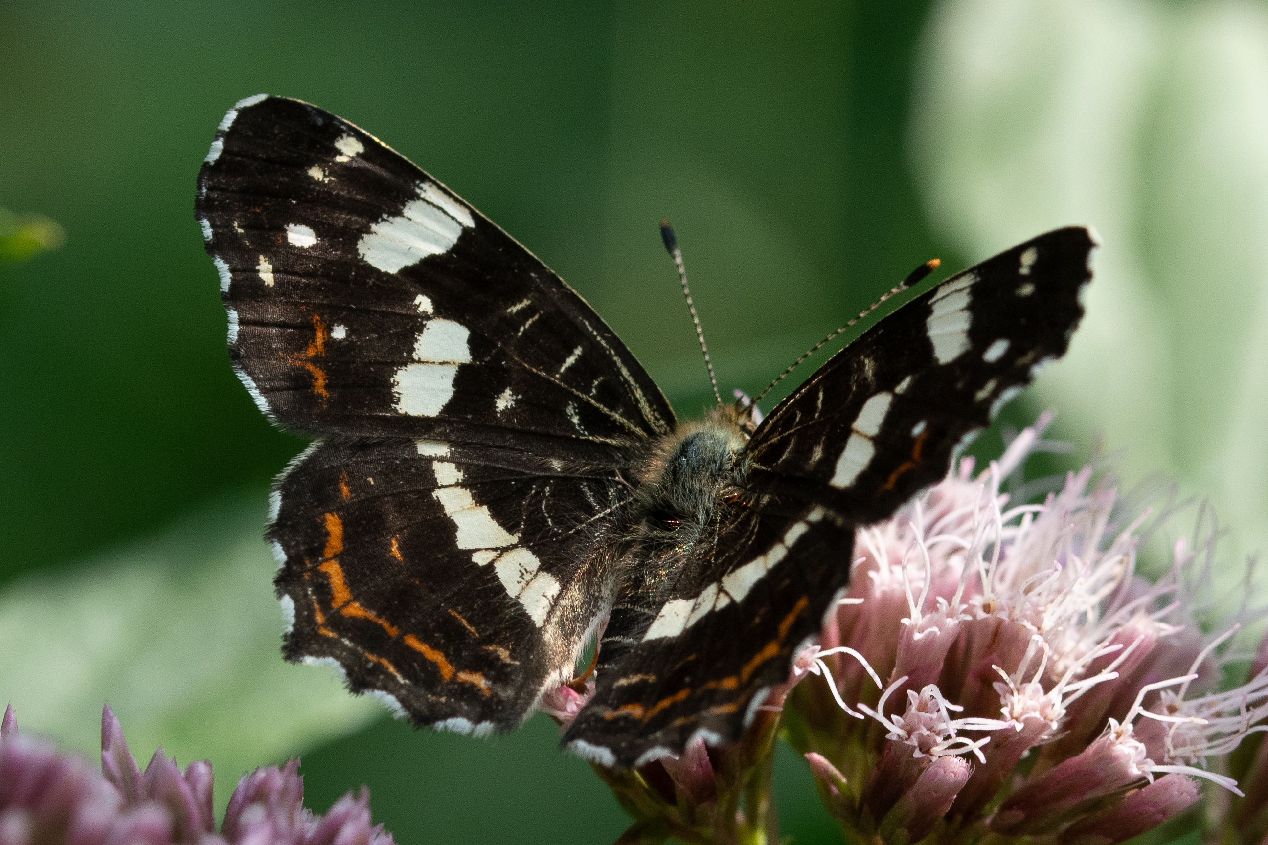 Landkärtchen, Sommergeneration der Schmetterlingsart auf Nektarspender Doldenblüte fotografiert, Falteroberseite im Sichtfeld, Ende Juni 2022, Auwald bei 06254 Horburg-Masslau (Sachsen-Anhalt) (© Heinz Sass)( Bild vergrößern)