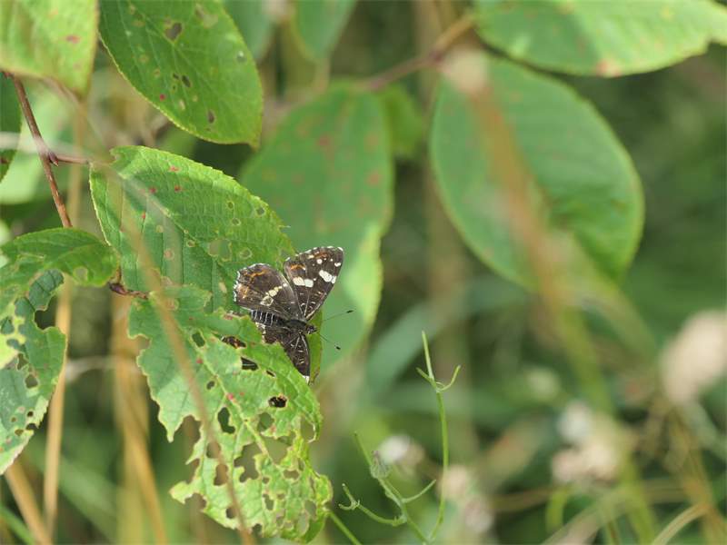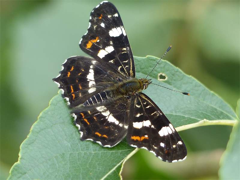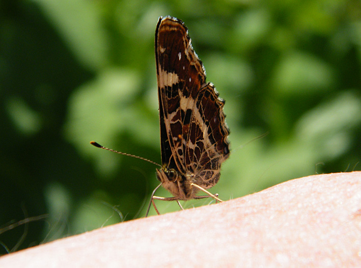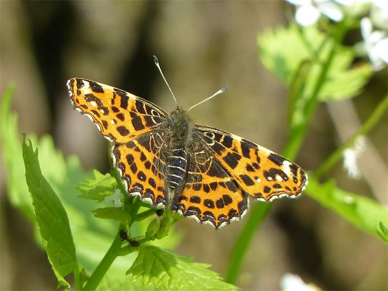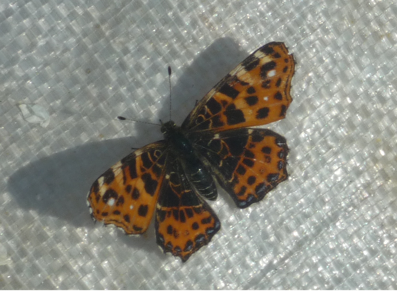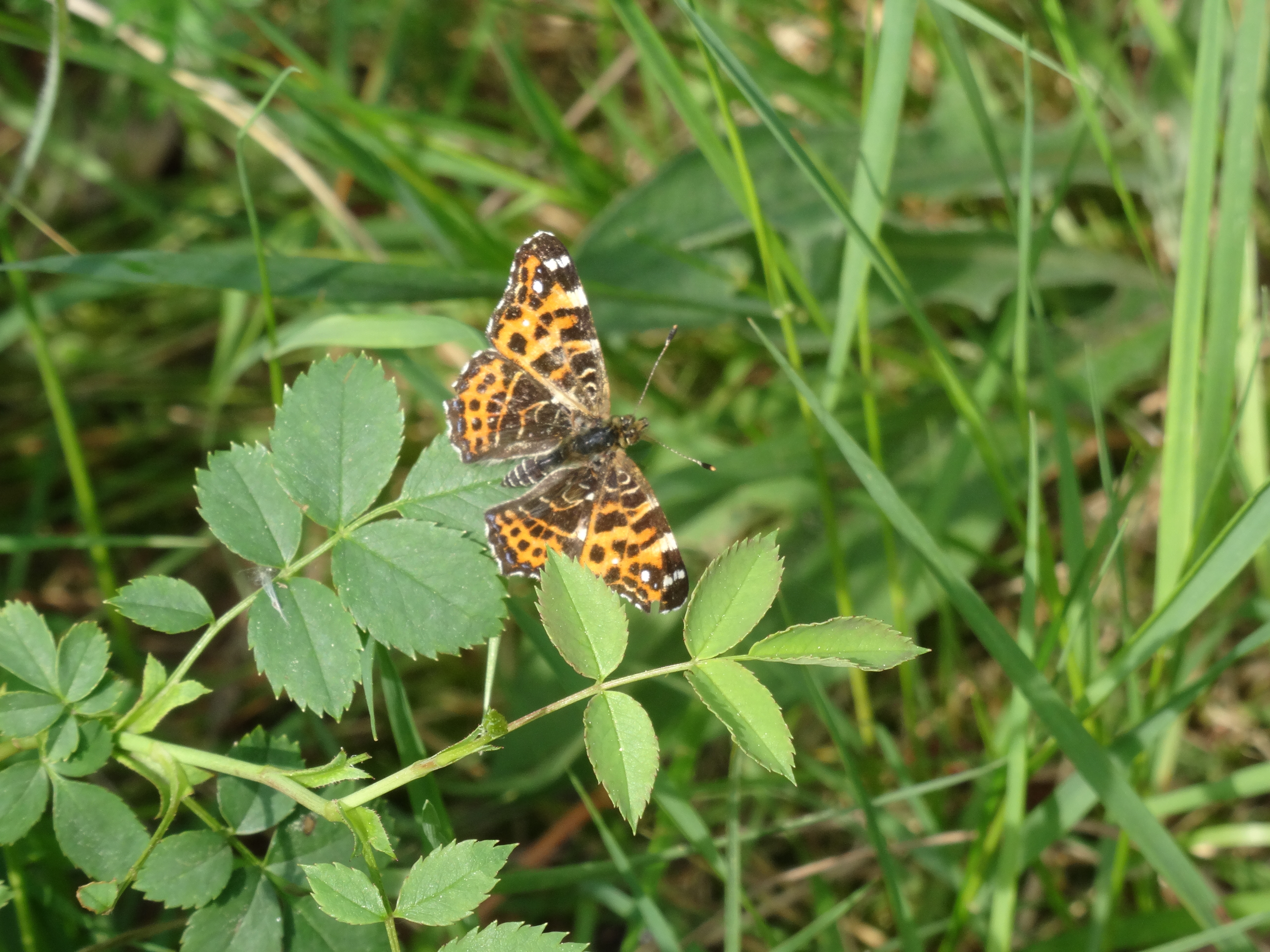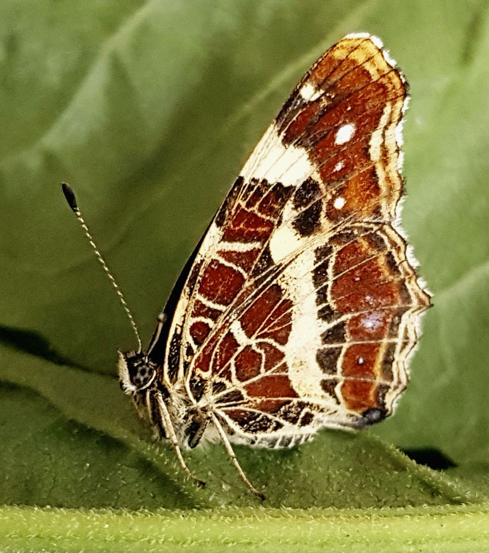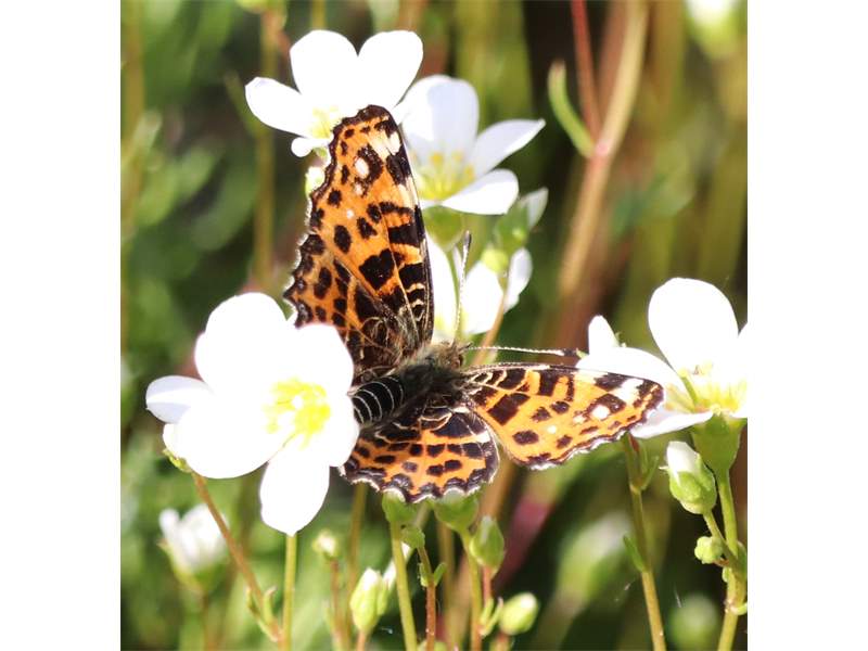 Landkärtchen, Sommergeneration der Schmetterlingsart auf Nektarspender Doldenblüte fotografiert, Falteroberseite im Sichtfeld, Ende Juni 2022, Auwald bei 06254 Horburg-Masslau (Sachsen-Anhalt) (© Heinz Sass)( Bild vergrößern)