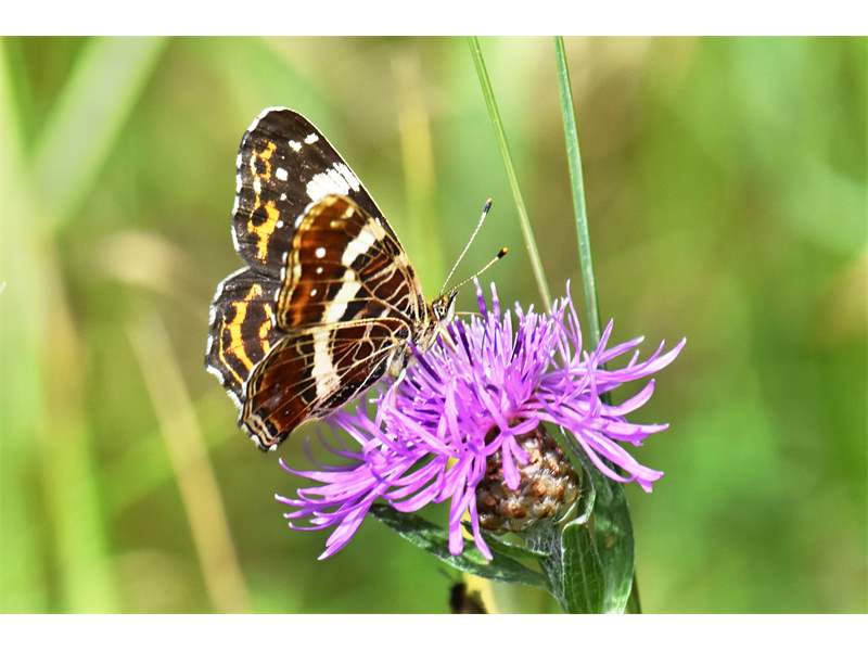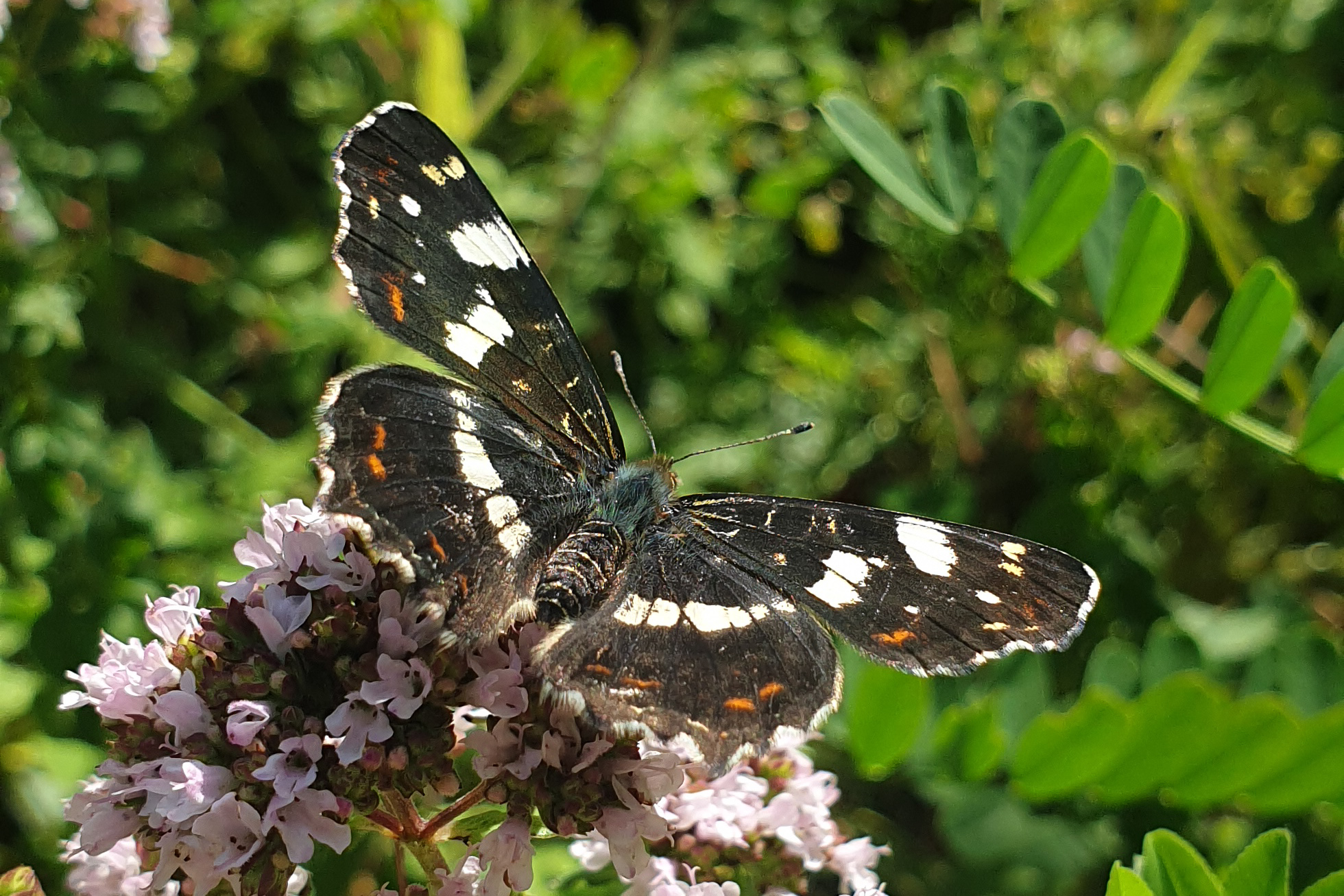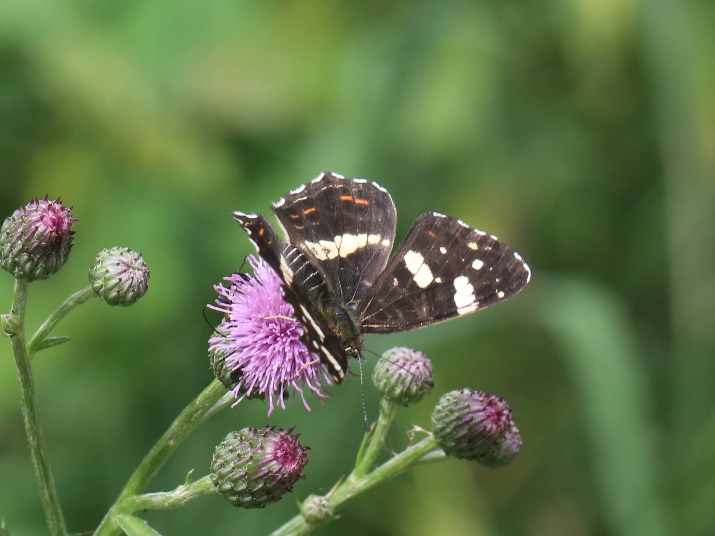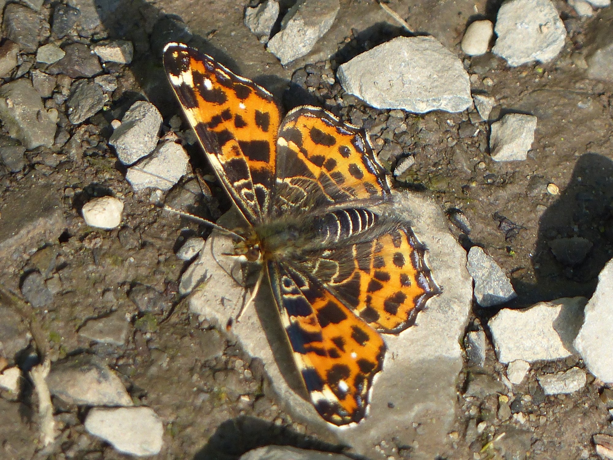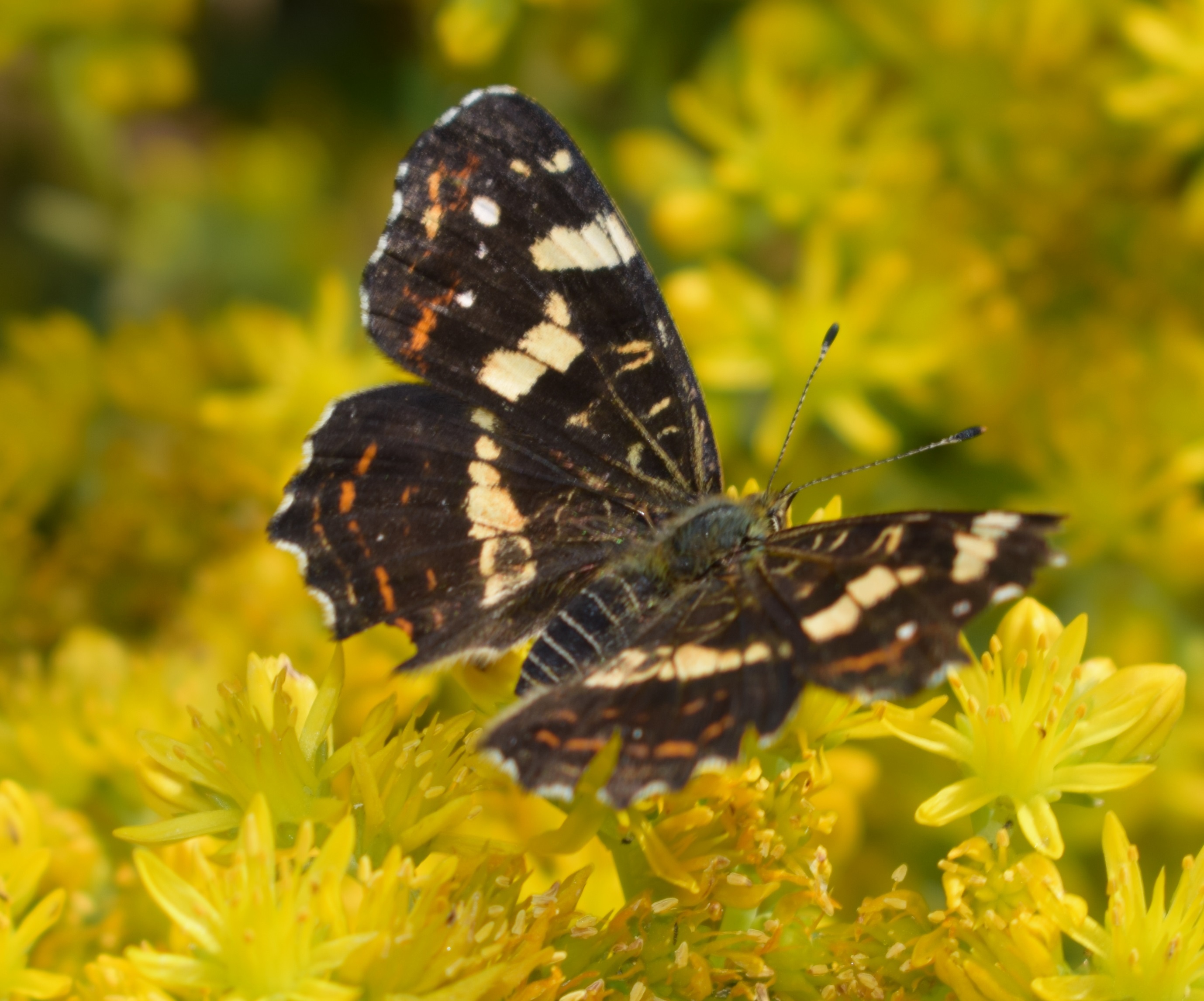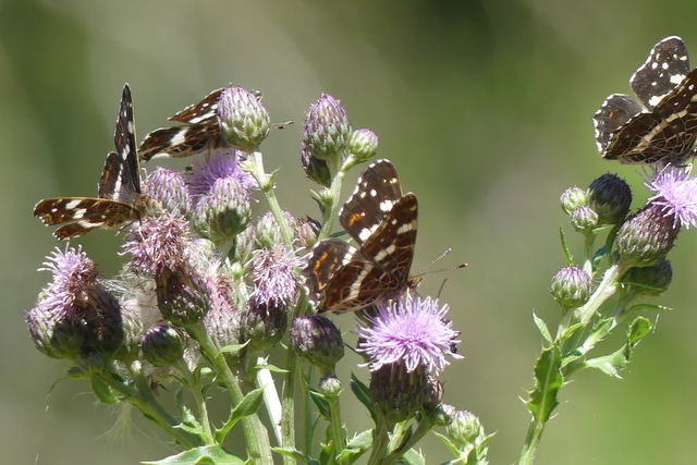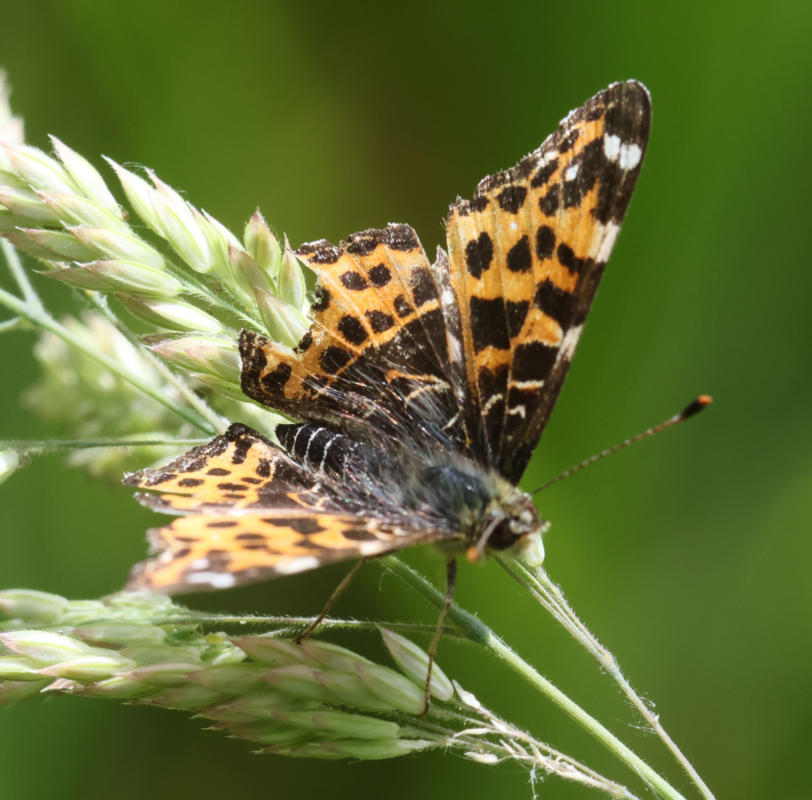 Landkärtchen, Sommergeneration der Schmetterlingsart auf Nektarspender Doldenblüte fotografiert, Falteroberseite im Sichtfeld, Ende Juni 2022, Auwald bei 06254 Horburg-Masslau (Sachsen-Anhalt) (© Heinz Sass)( Bild vergrößern)