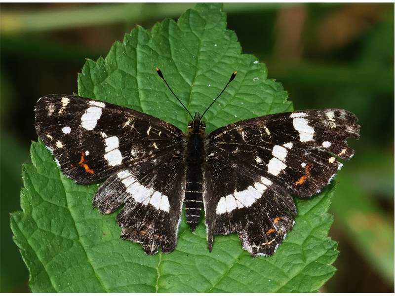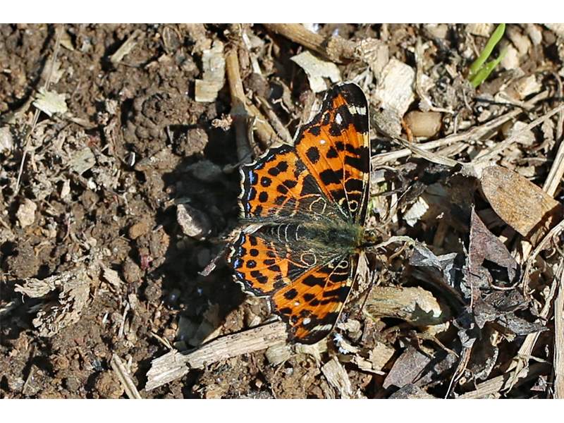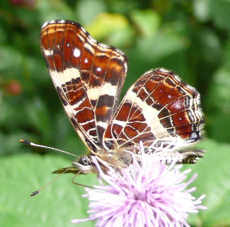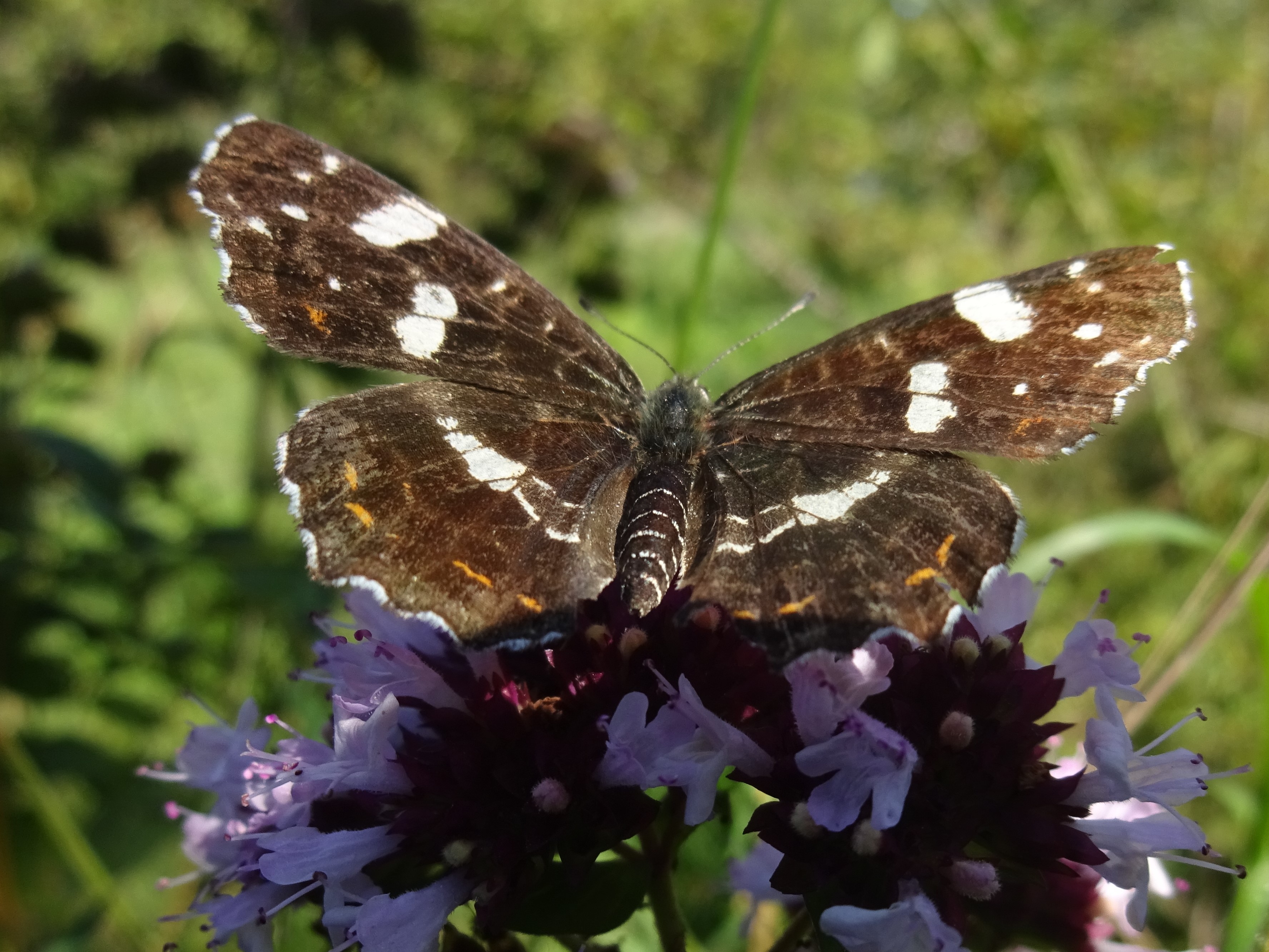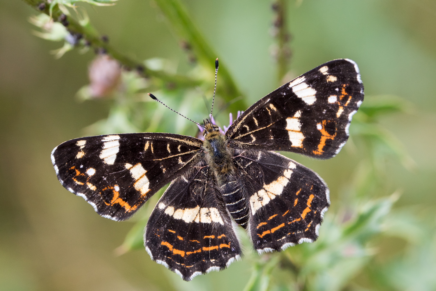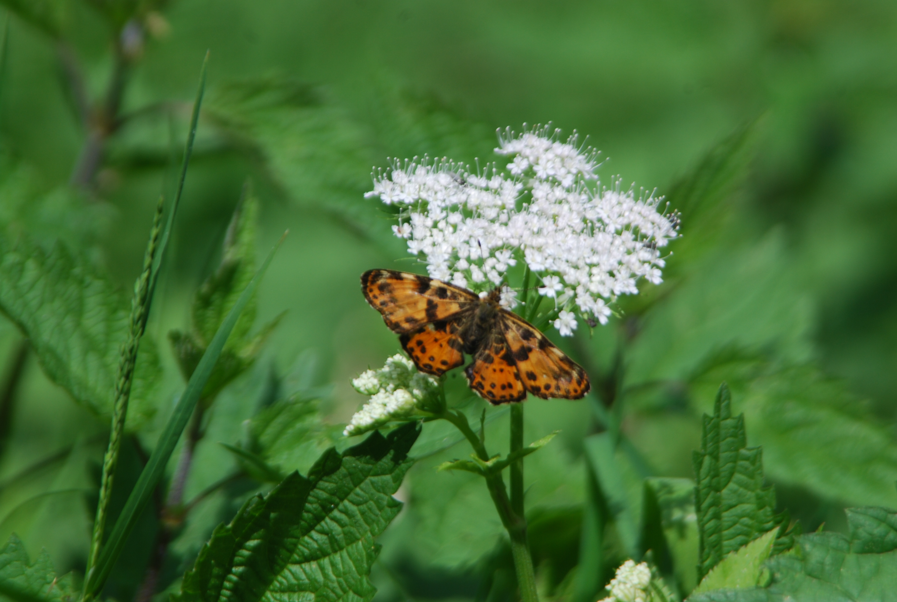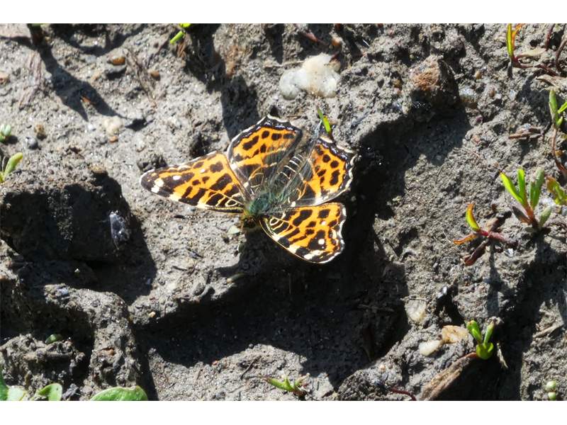 Landkärtchen, Sommergeneration der Schmetterlingsart auf Nektarspender Doldenblüte fotografiert, Falteroberseite im Sichtfeld, Ende Juni 2022, Auwald bei 06254 Horburg-Masslau (Sachsen-Anhalt) (© Heinz Sass)( Bild vergrößern)