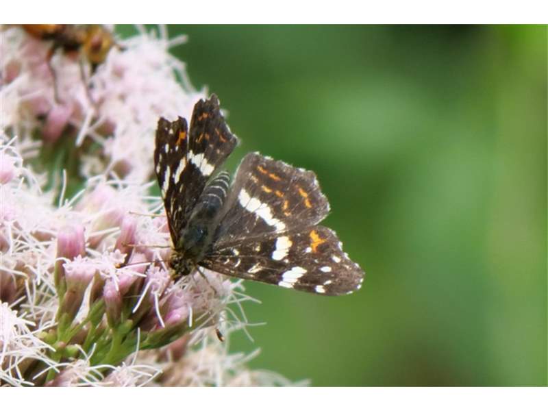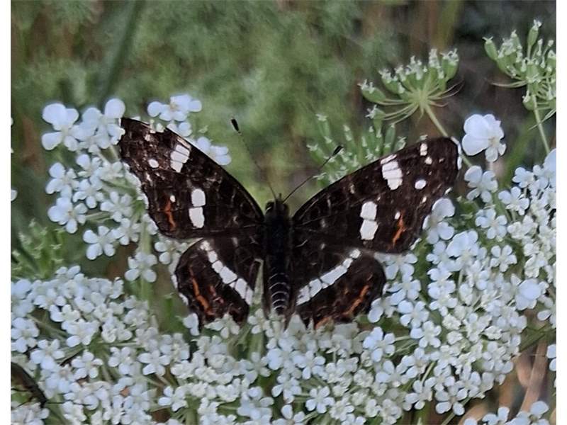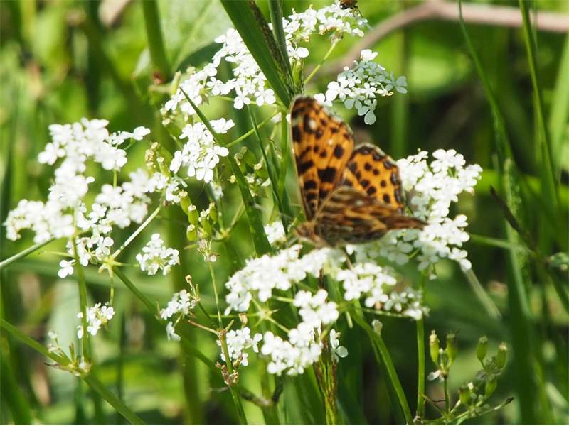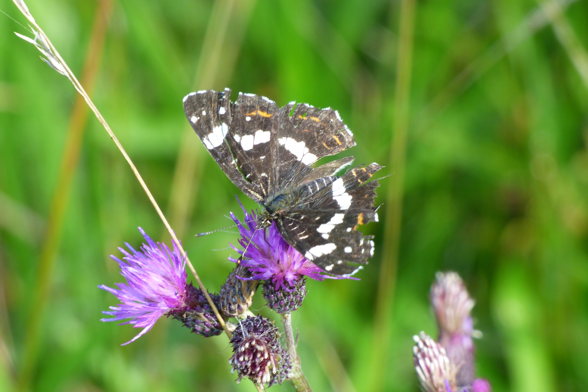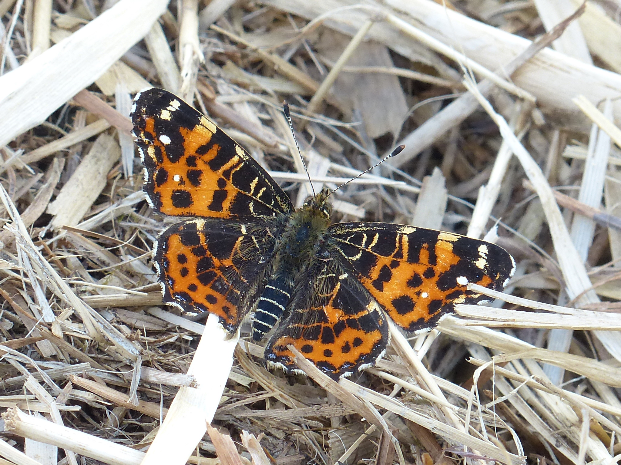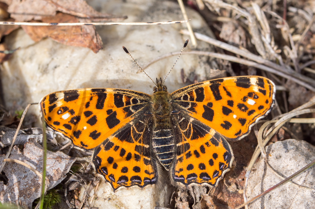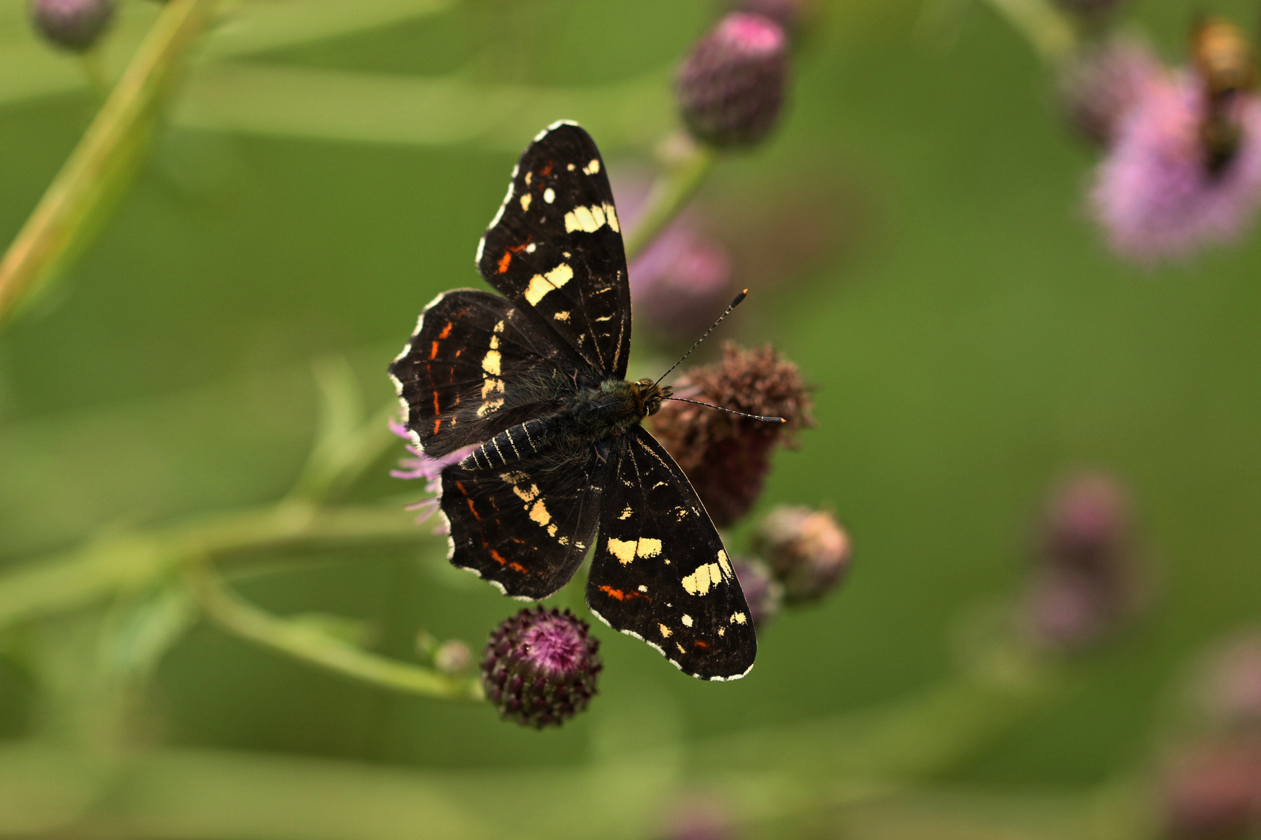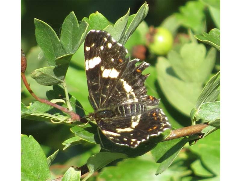 Landkärtchen, Sommergeneration der Schmetterlingsart auf Nektarspender Doldenblüte fotografiert, Falteroberseite im Sichtfeld, Ende Juni 2022, Auwald bei 06254 Horburg-Masslau (Sachsen-Anhalt) (© Heinz Sass)( Bild vergrößern)