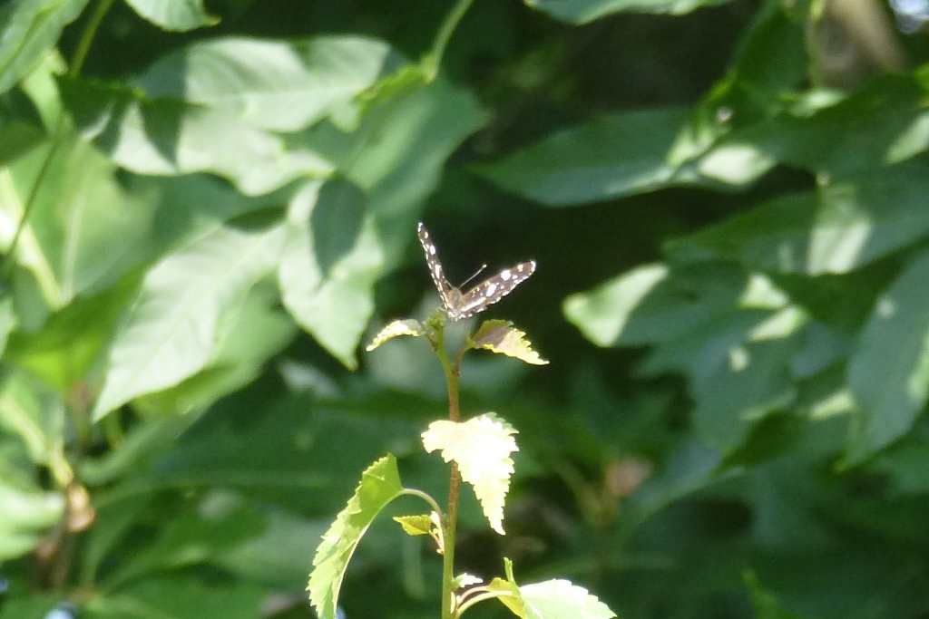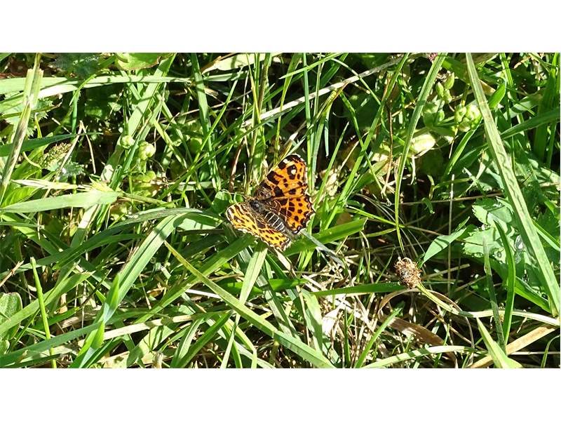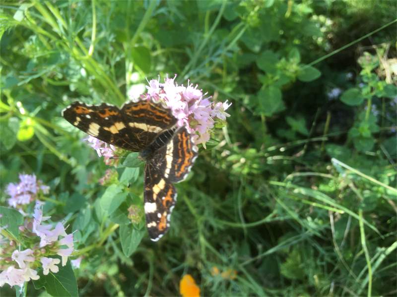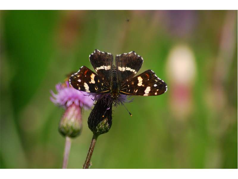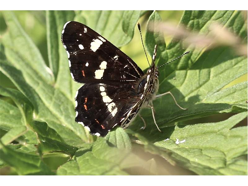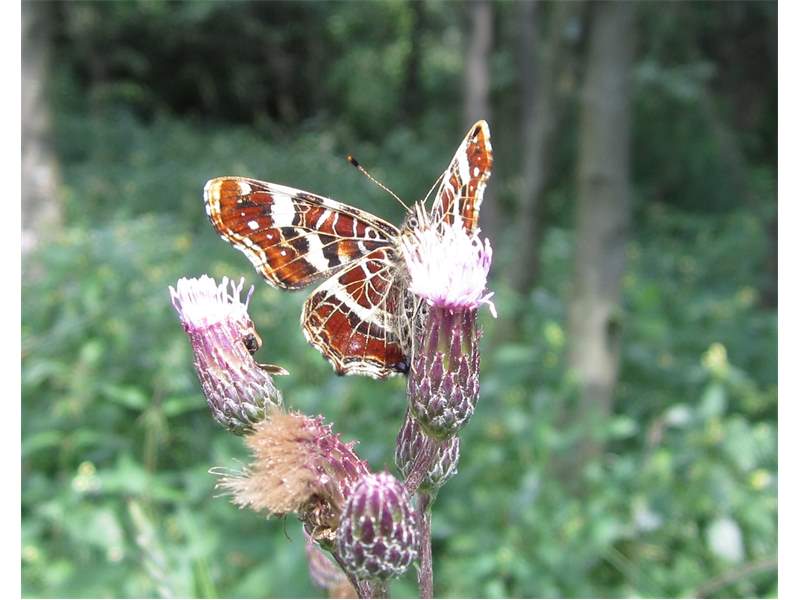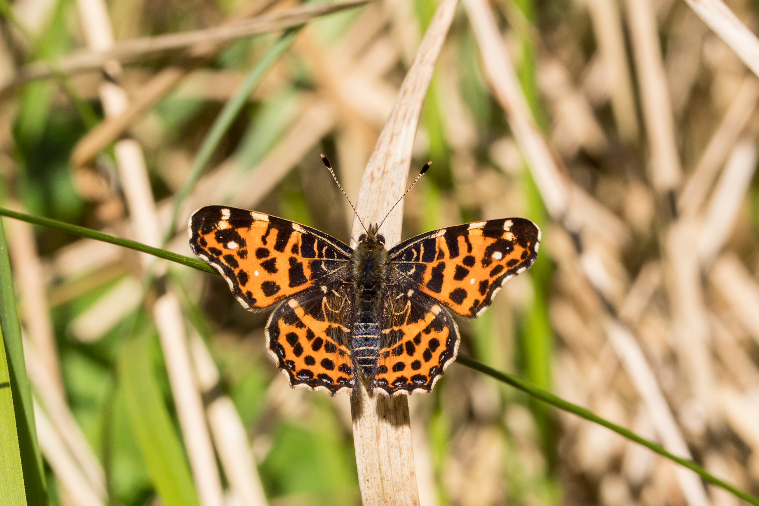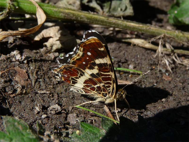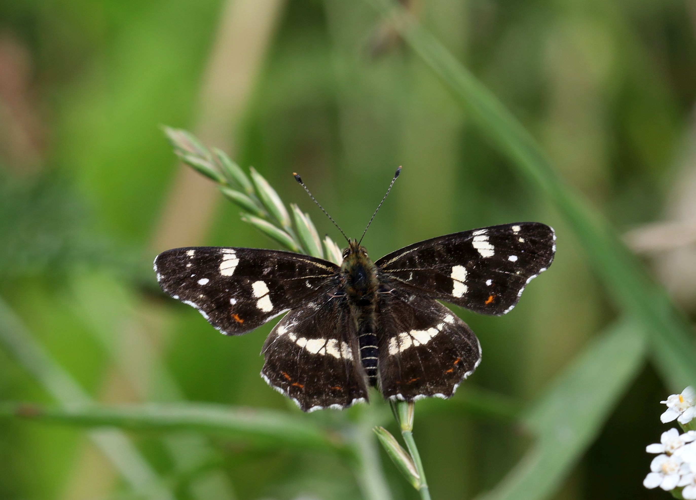 Landkärtchen, Sommergeneration der Schmetterlingsart auf Nektarspender Doldenblüte fotografiert, Falteroberseite im Sichtfeld, Ende Juni 2022, Auwald bei 06254 Horburg-Masslau (Sachsen-Anhalt) (© Heinz Sass)( Bild vergrößern)