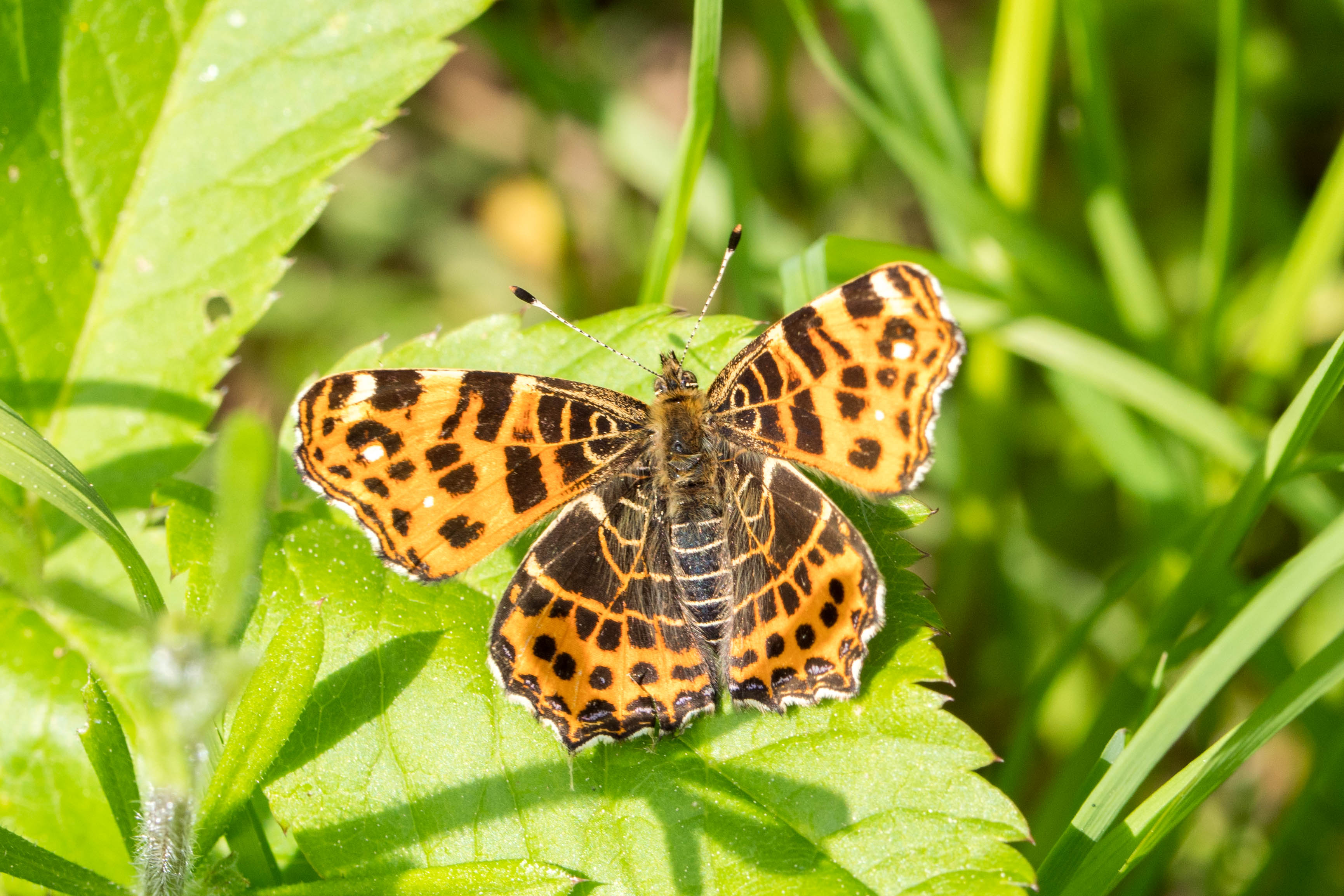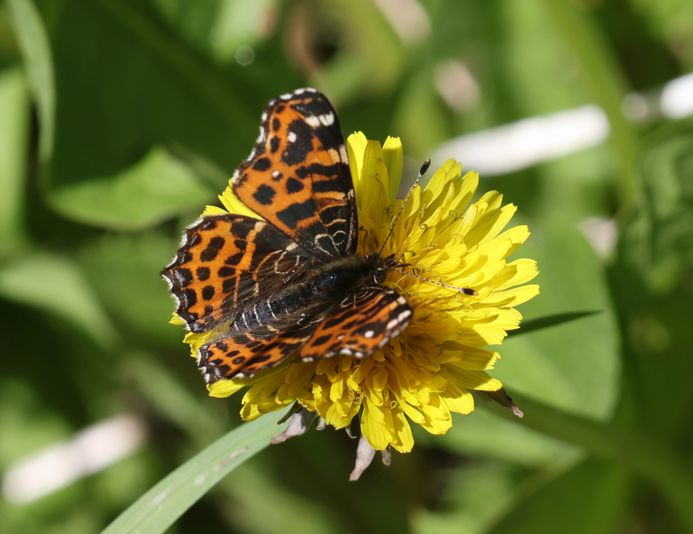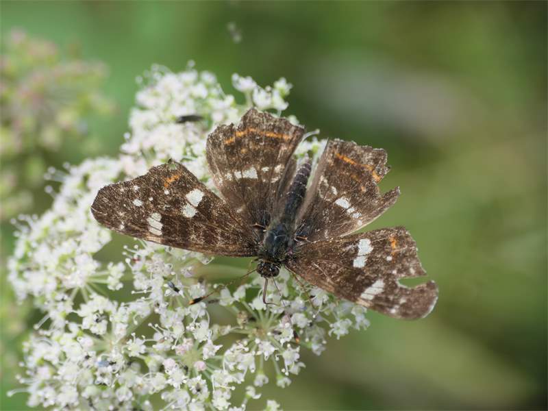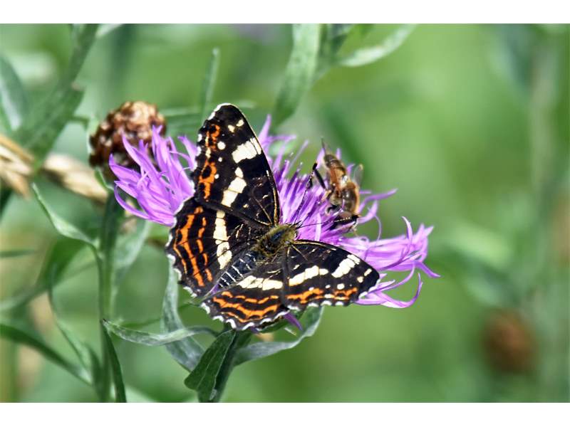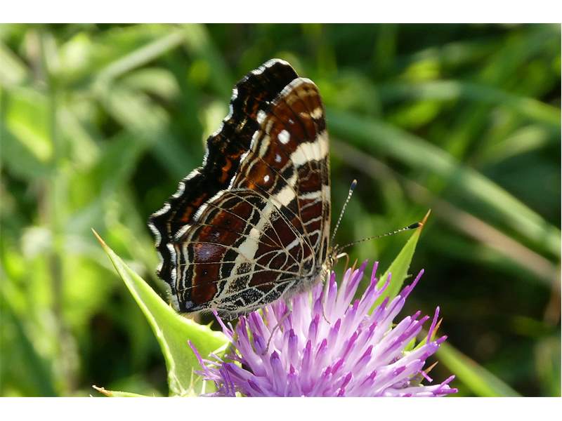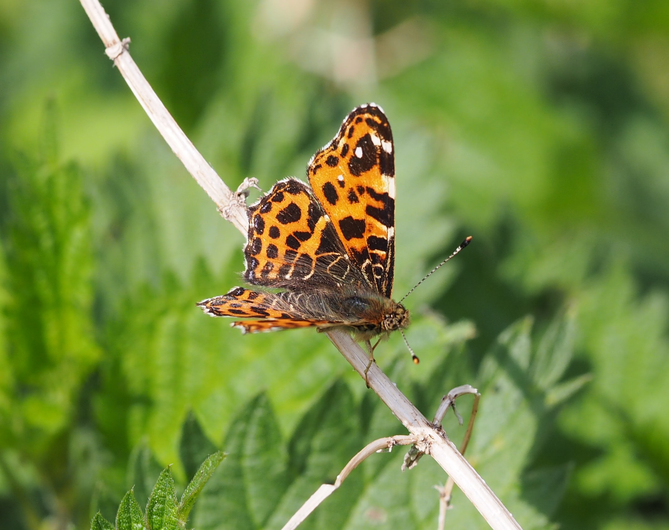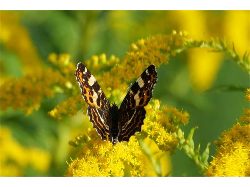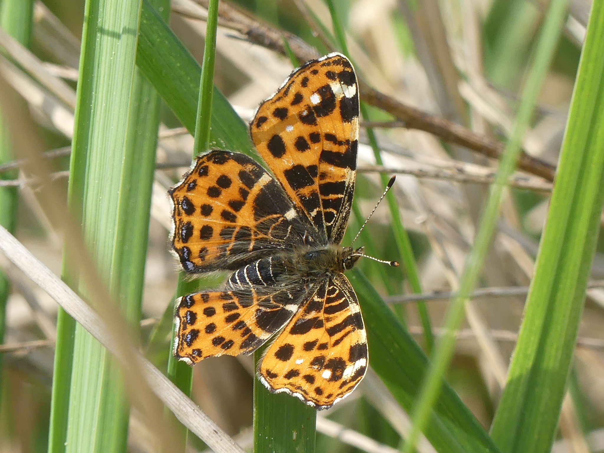 Landkärtchen, Sommergeneration der Schmetterlingsart auf Nektarspender Doldenblüte fotografiert, Falteroberseite im Sichtfeld, Ende Juni 2022, Auwald bei 06254 Horburg-Masslau (Sachsen-Anhalt) (© Heinz Sass)( Bild vergrößern)
