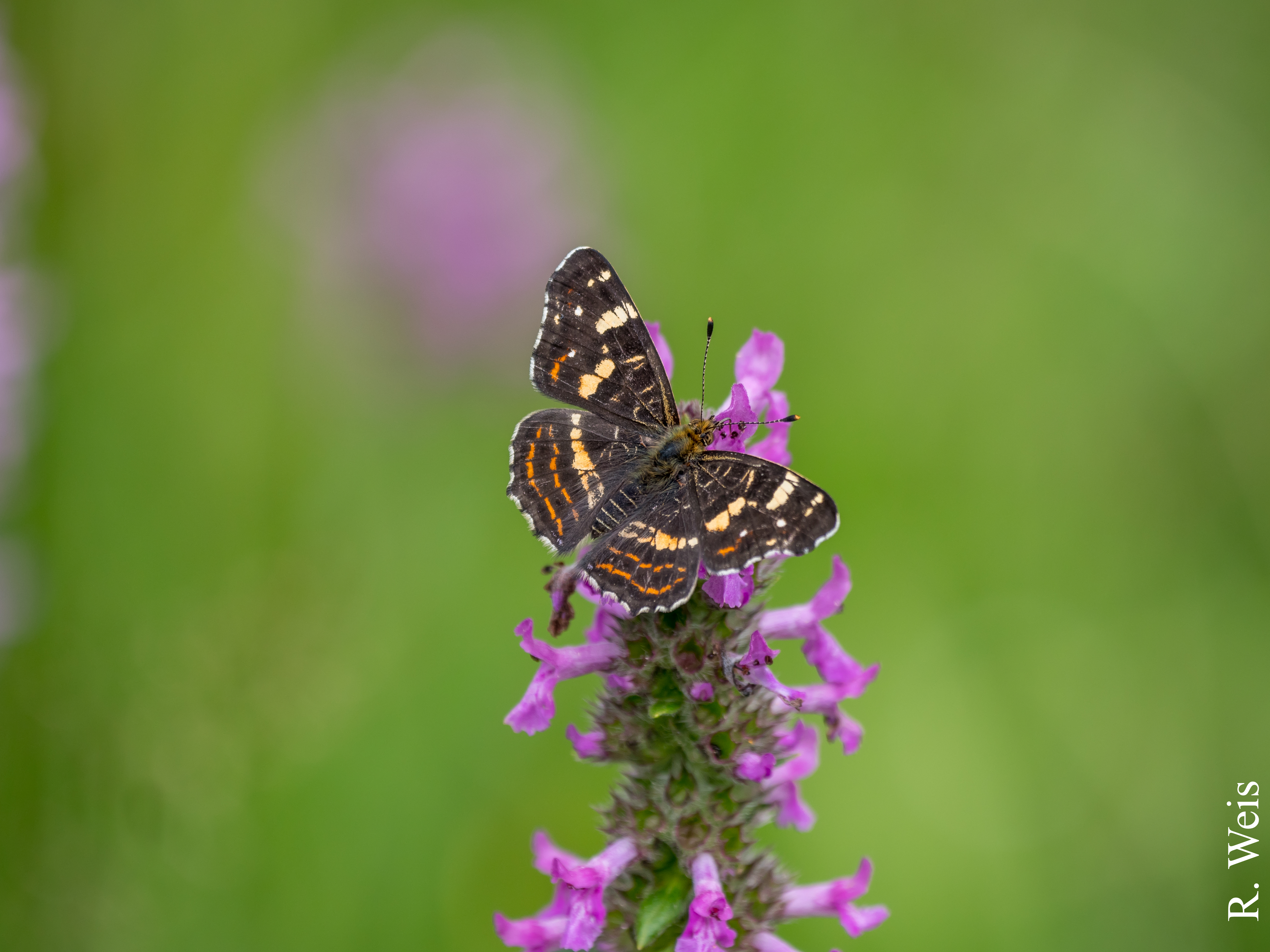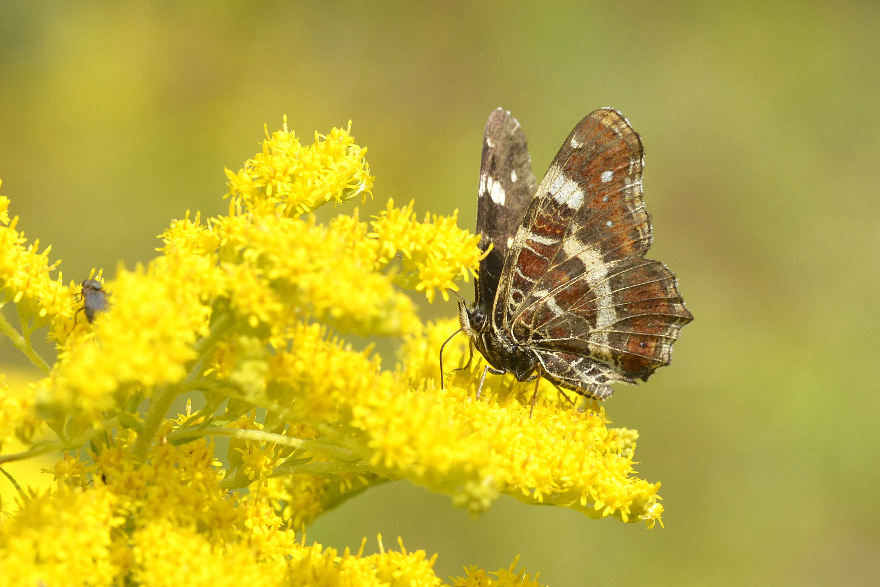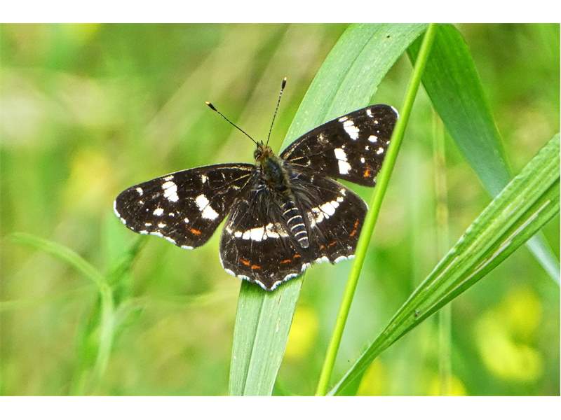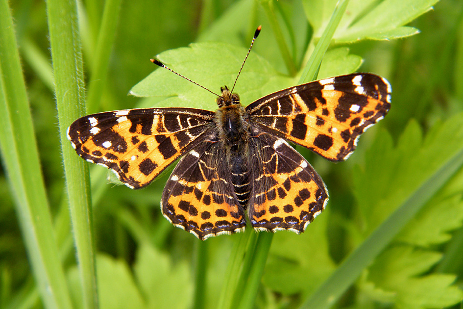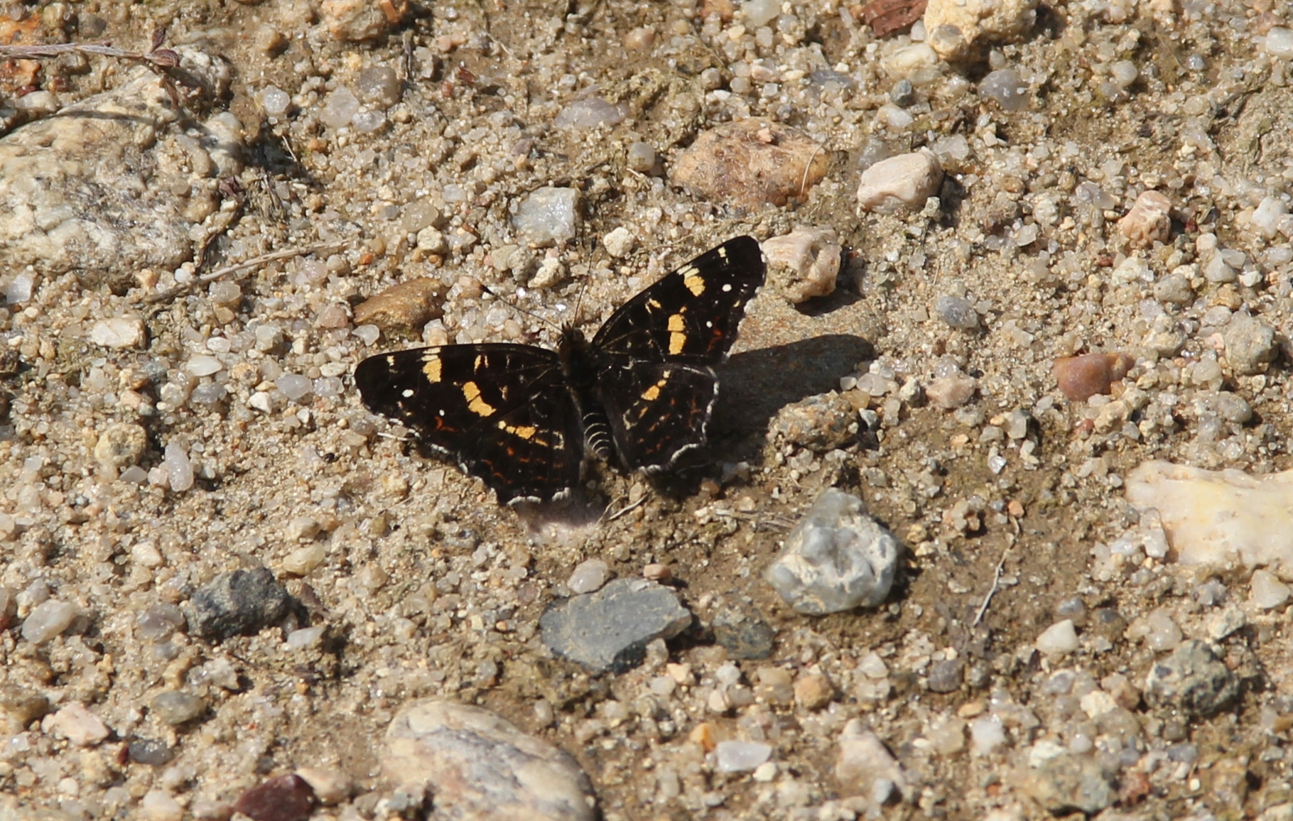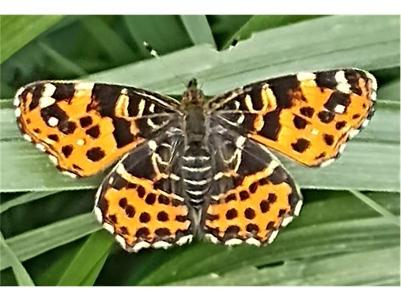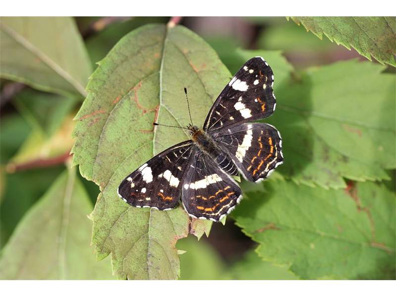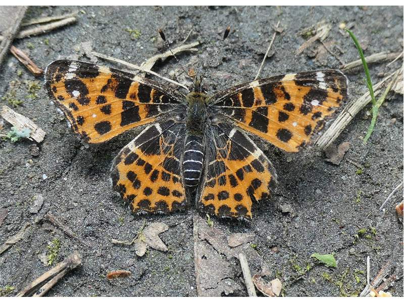 Landkärtchen, Sommergeneration der Schmetterlingsart auf Nektarspender Doldenblüte fotografiert, Falteroberseite im Sichtfeld, Ende Juni 2022, Auwald bei 06254 Horburg-Masslau (Sachsen-Anhalt) (© Heinz Sass)( Bild vergrößern)