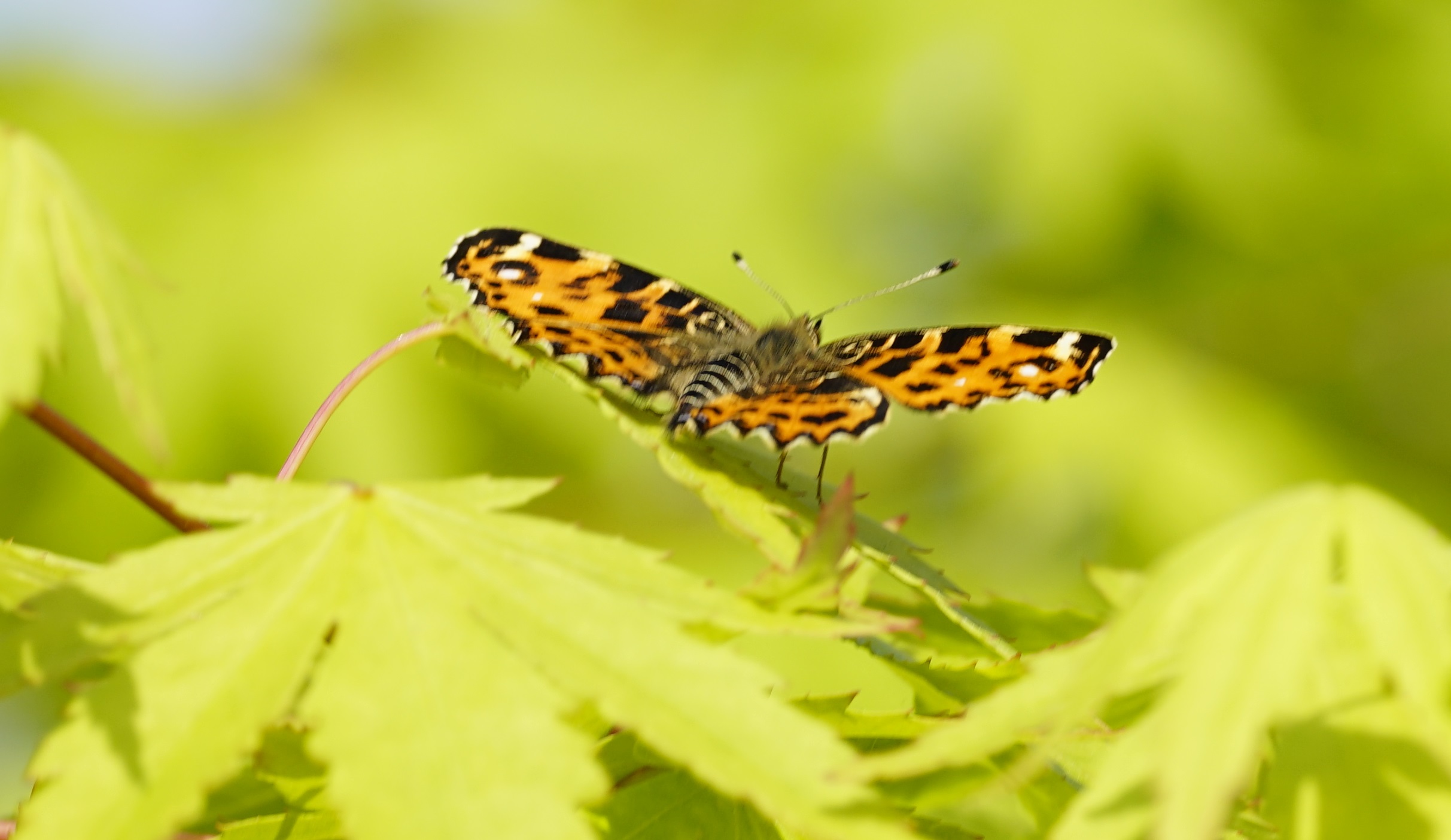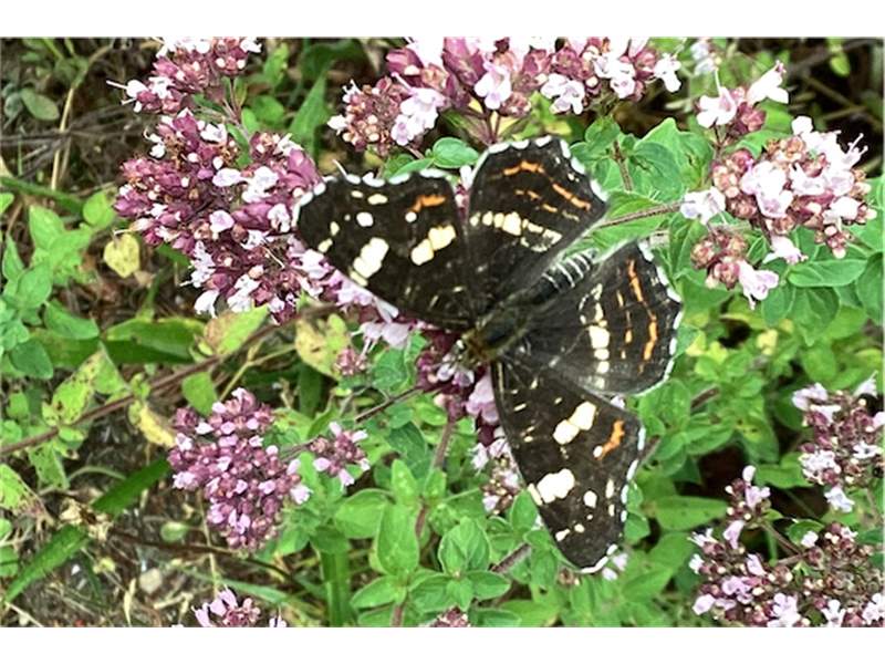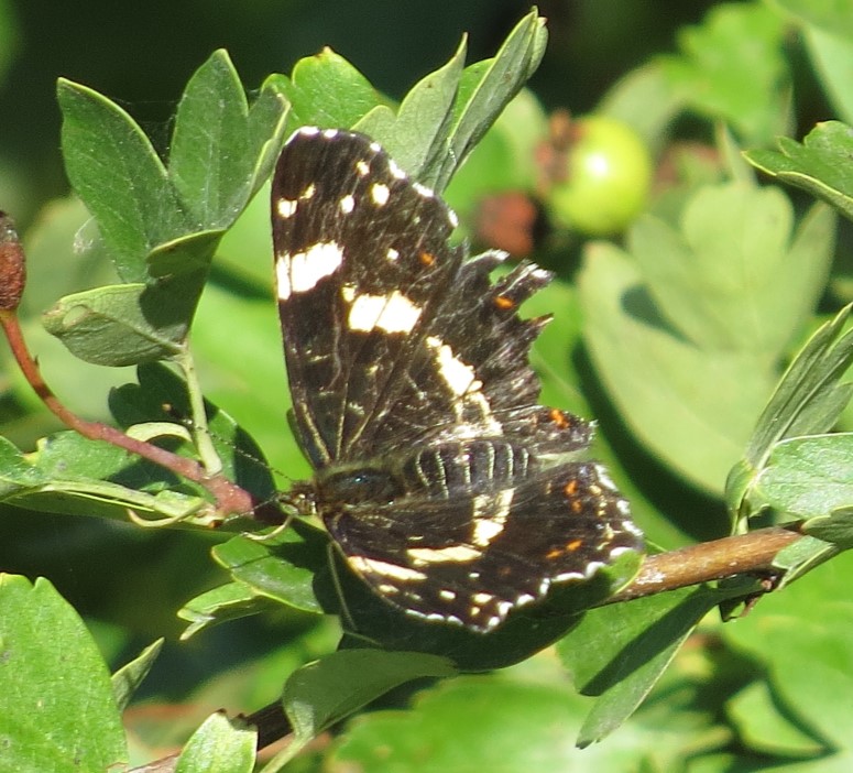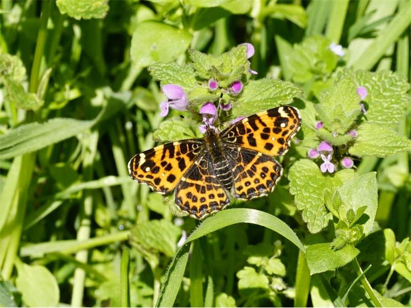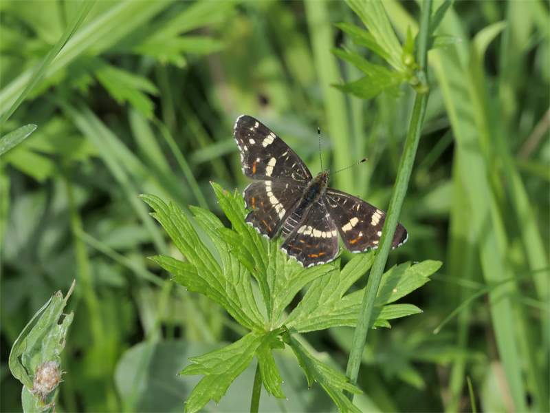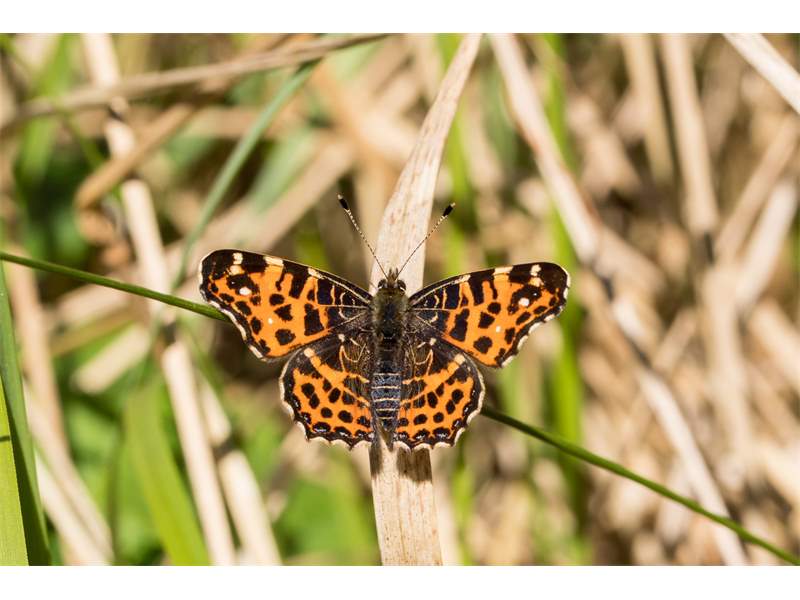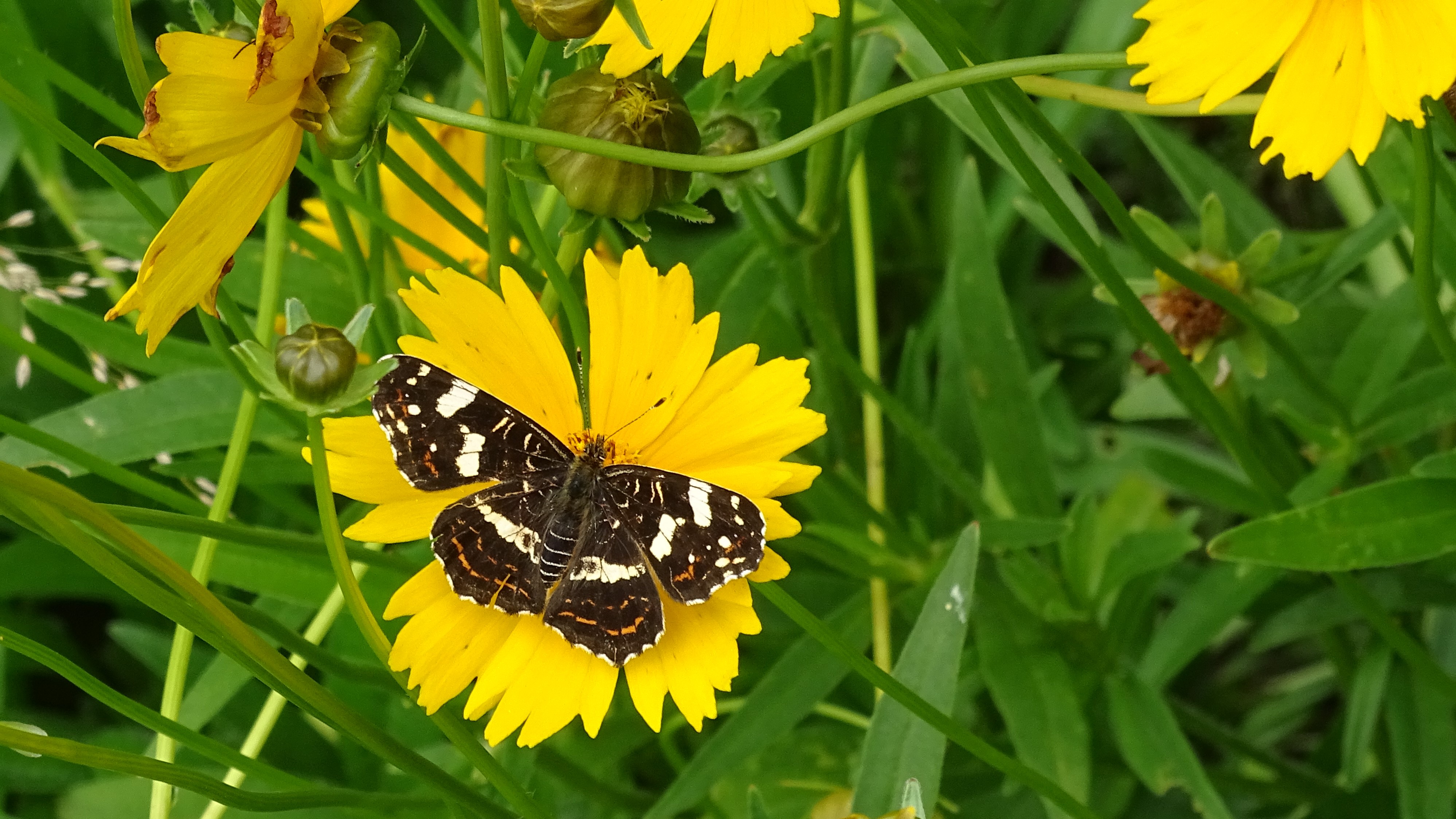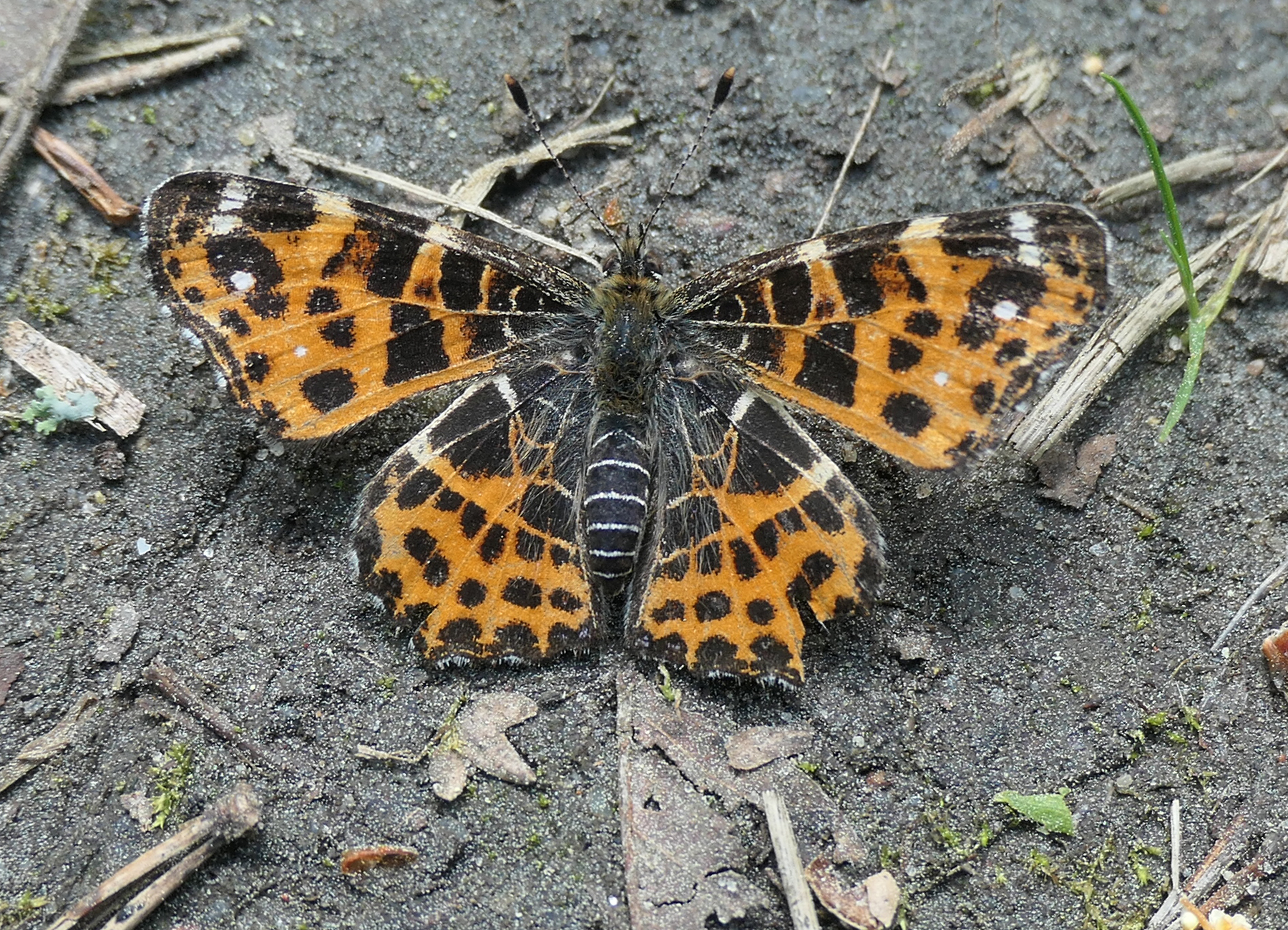 Landkärtchen, Sommergeneration der Schmetterlingsart auf Nektarspender Doldenblüte fotografiert, Falteroberseite im Sichtfeld, Ende Juni 2022, Auwald bei 06254 Horburg-Masslau (Sachsen-Anhalt) (© Heinz Sass)( Bild vergrößern)