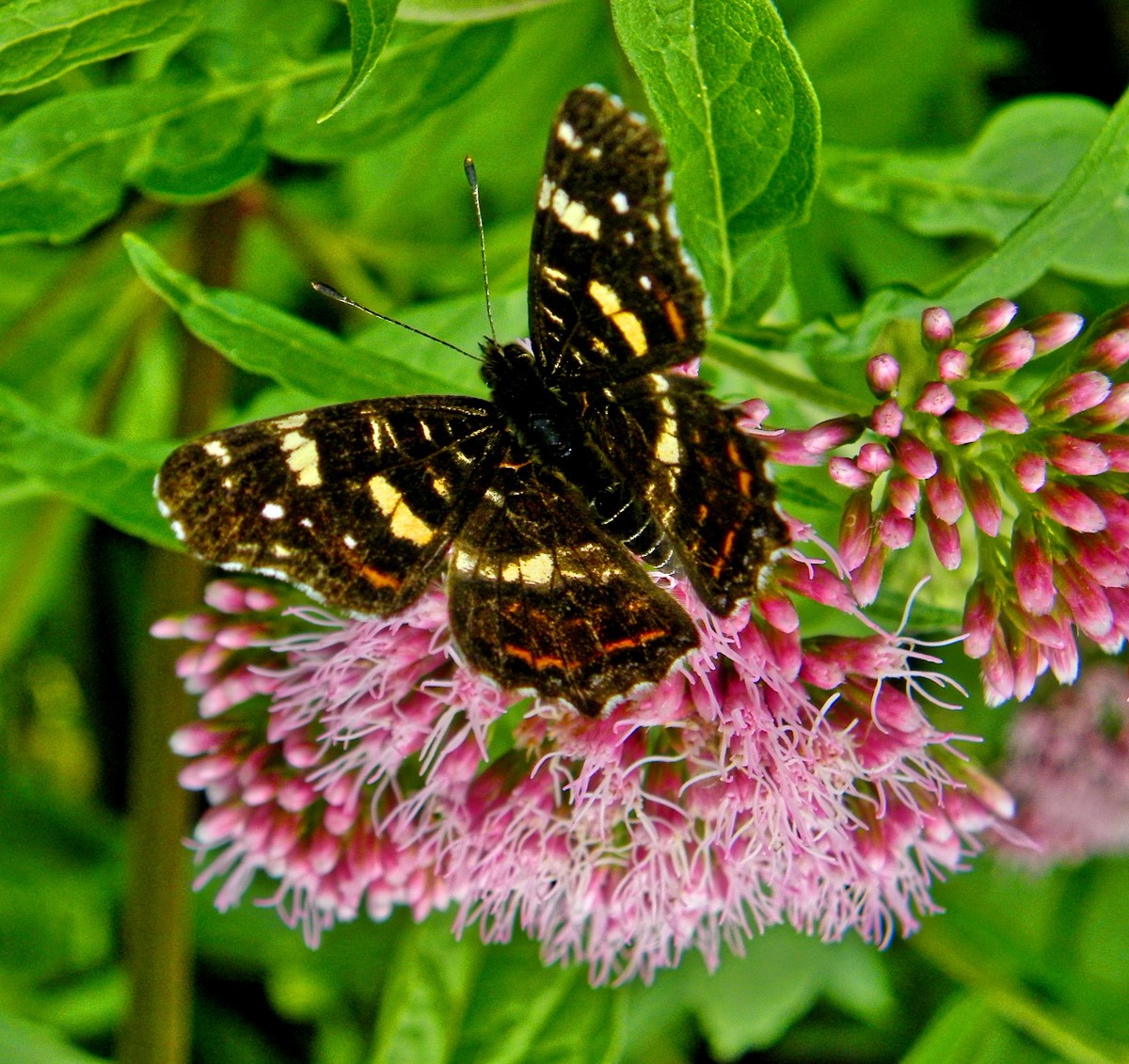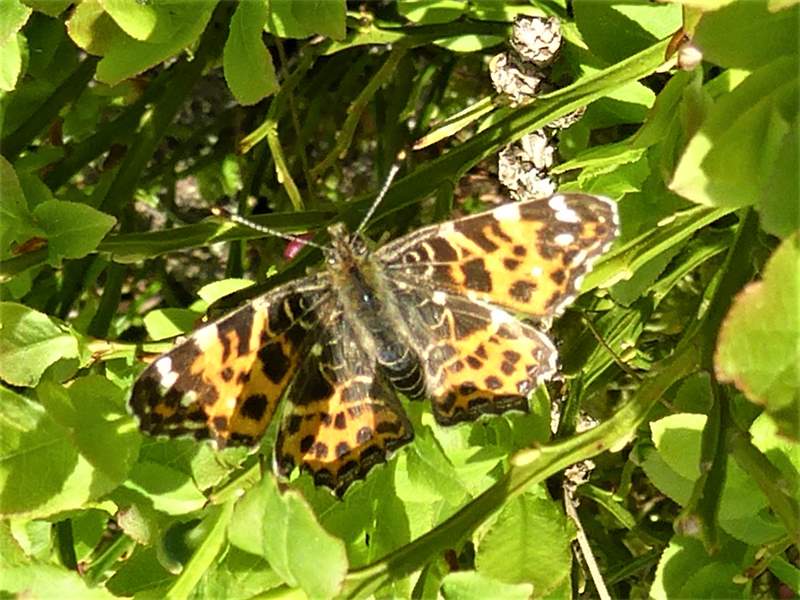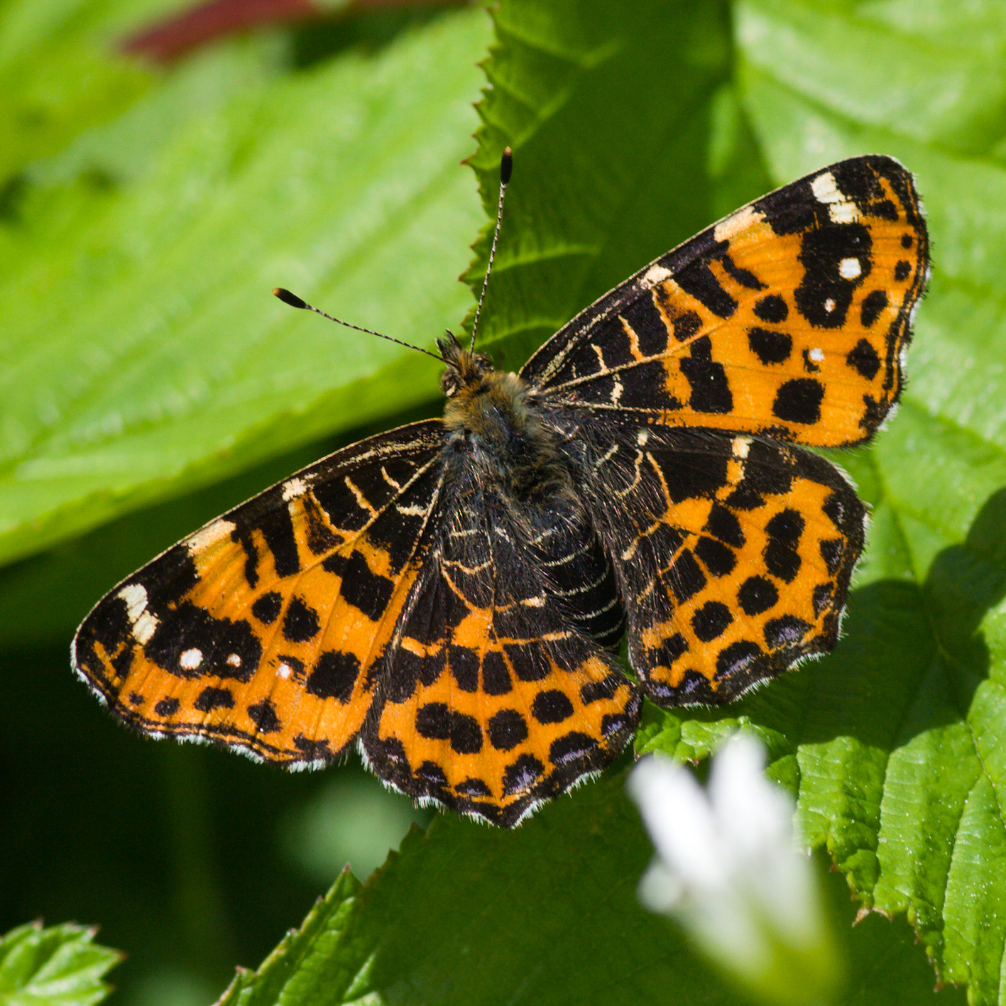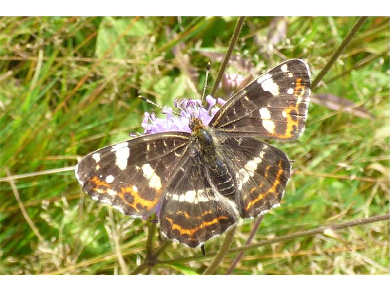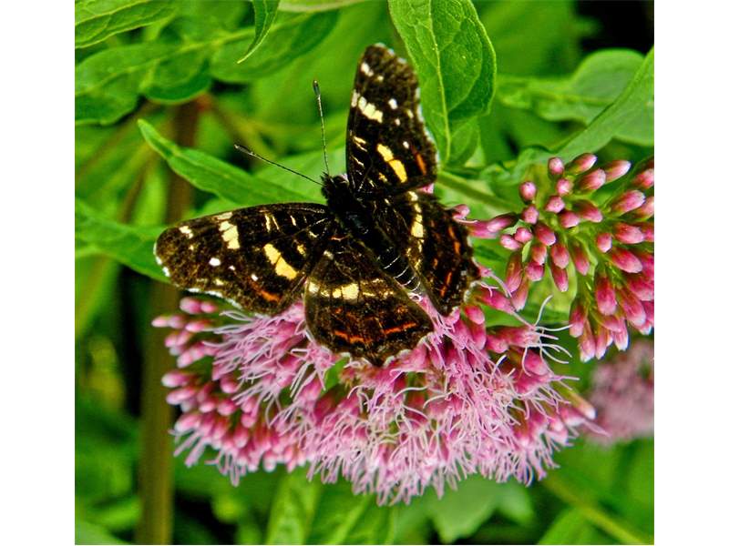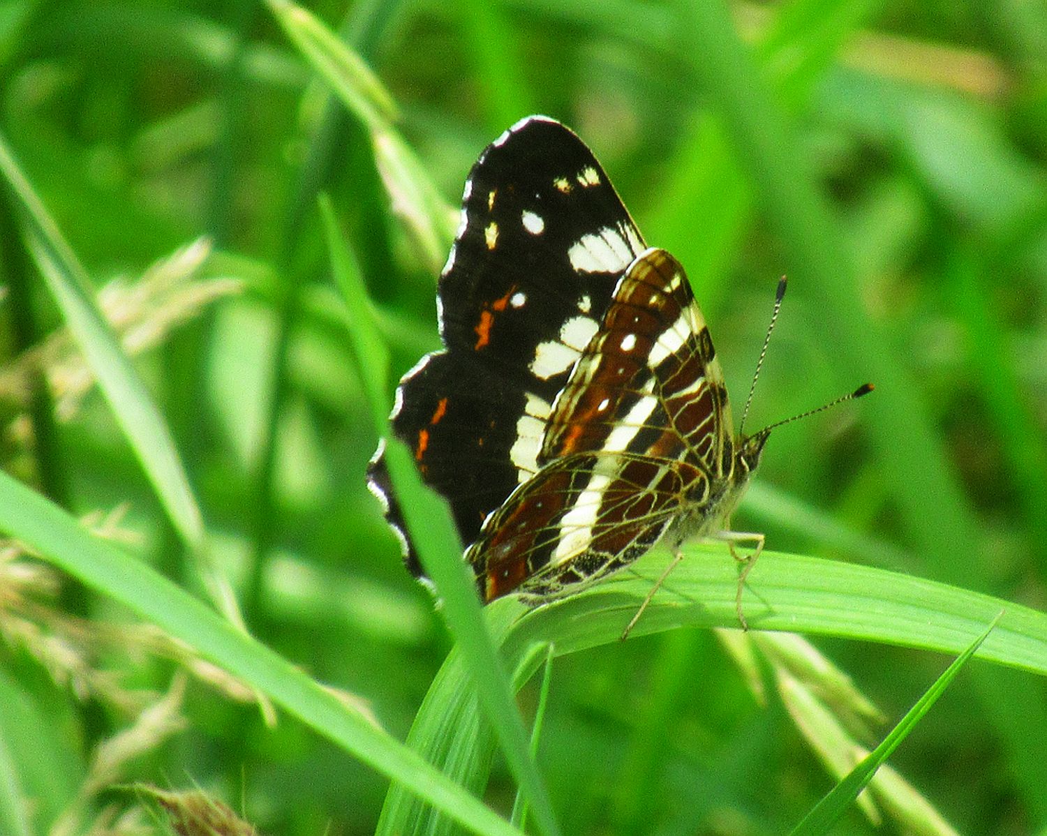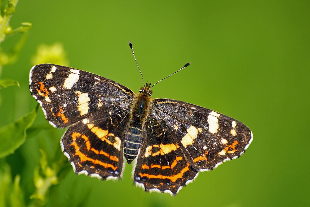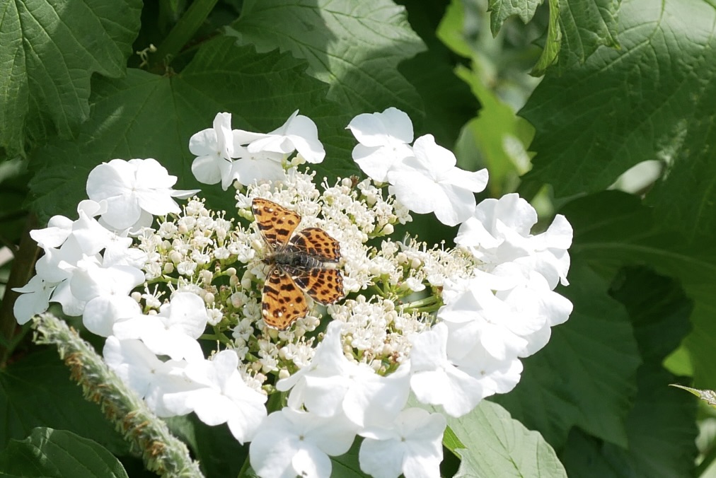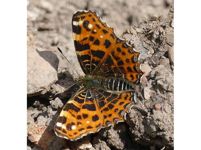Landkärtchen, Sommergeneration der Schmetterlingsart auf Nektarspender Doldenblüte fotografiert, Falteroberseite im Sichtfeld, Ende Juni 2022, Auwald bei 06254 Horburg-Masslau (Sachsen-Anhalt) (© Heinz Sass)( Bild vergrößern)