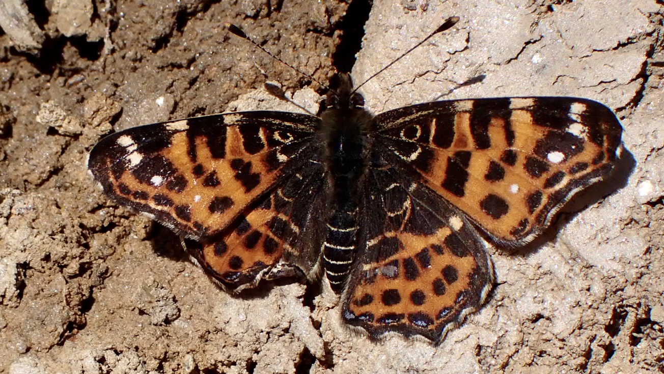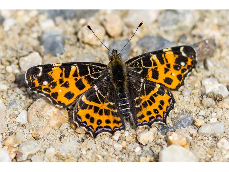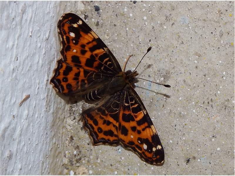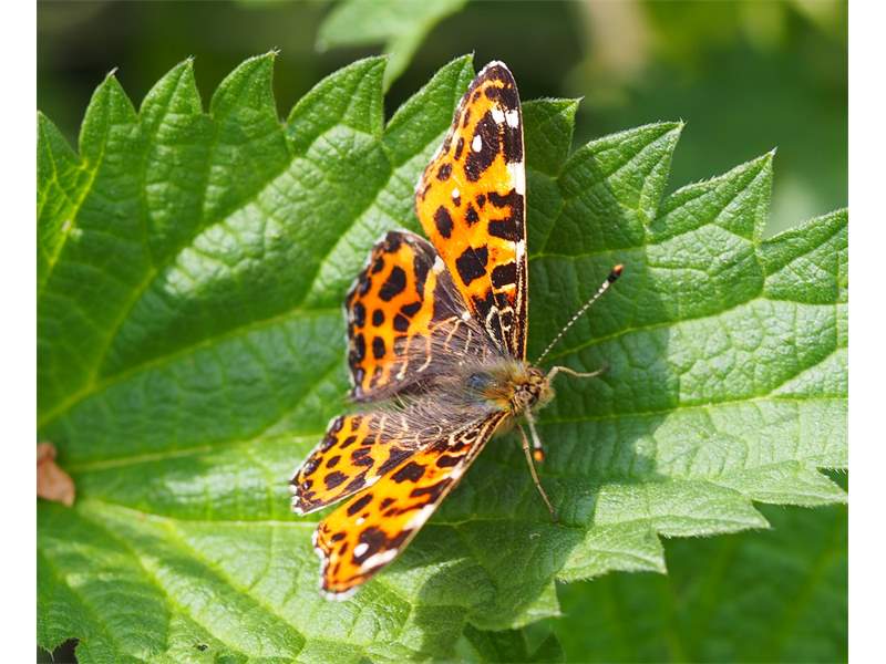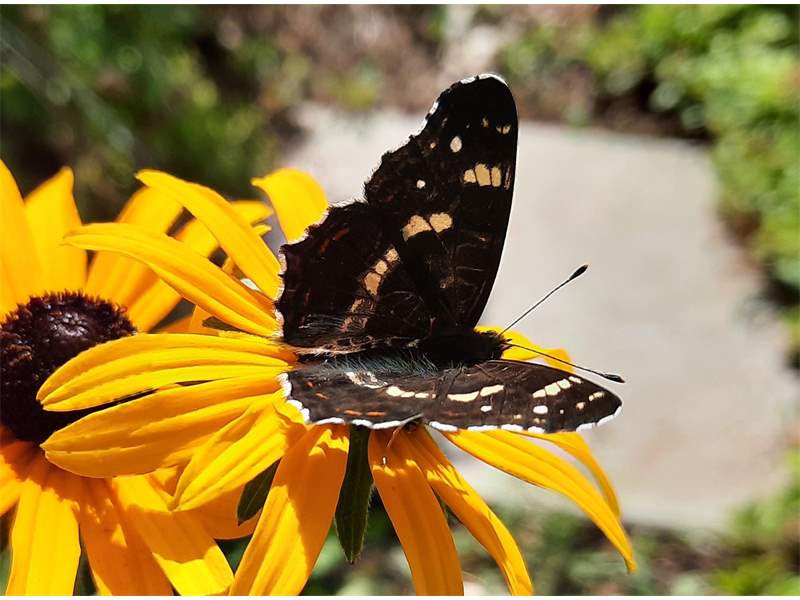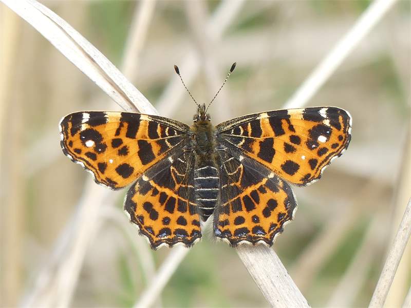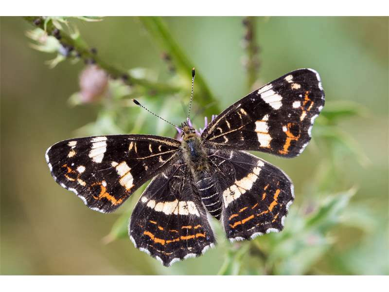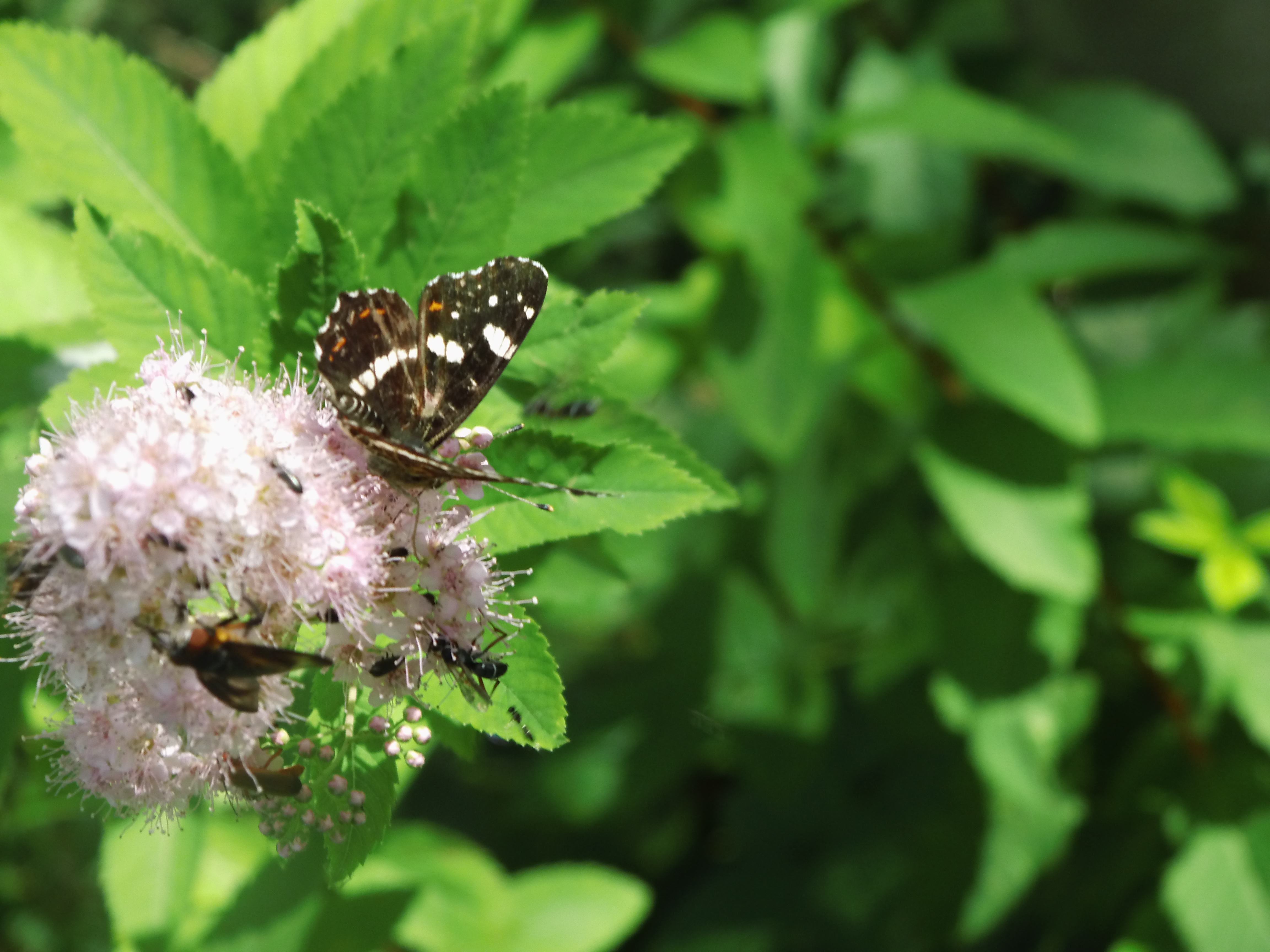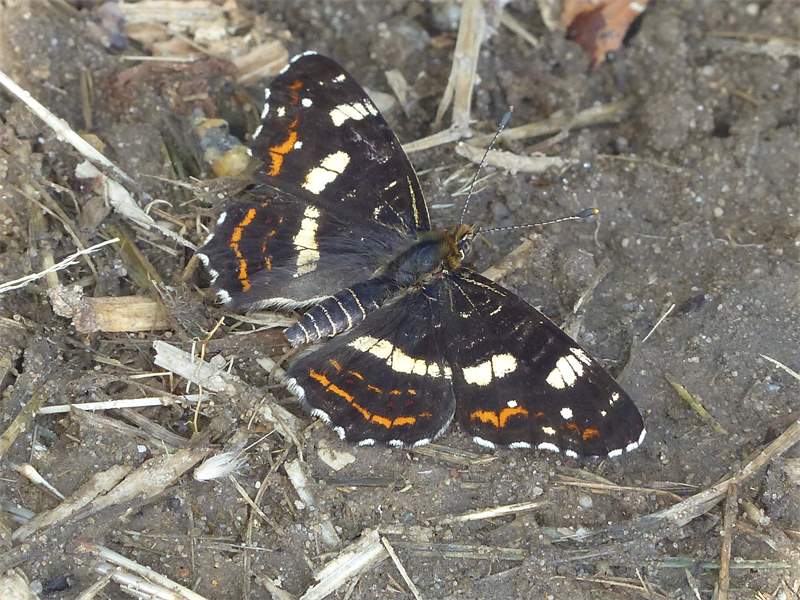 Landkärtchen, Sommergeneration der Schmetterlingsart auf Nektarspender Doldenblüte fotografiert, Falteroberseite im Sichtfeld, Ende Juni 2022, Auwald bei 06254 Horburg-Masslau (Sachsen-Anhalt) (© Heinz Sass)( Bild vergrößern)