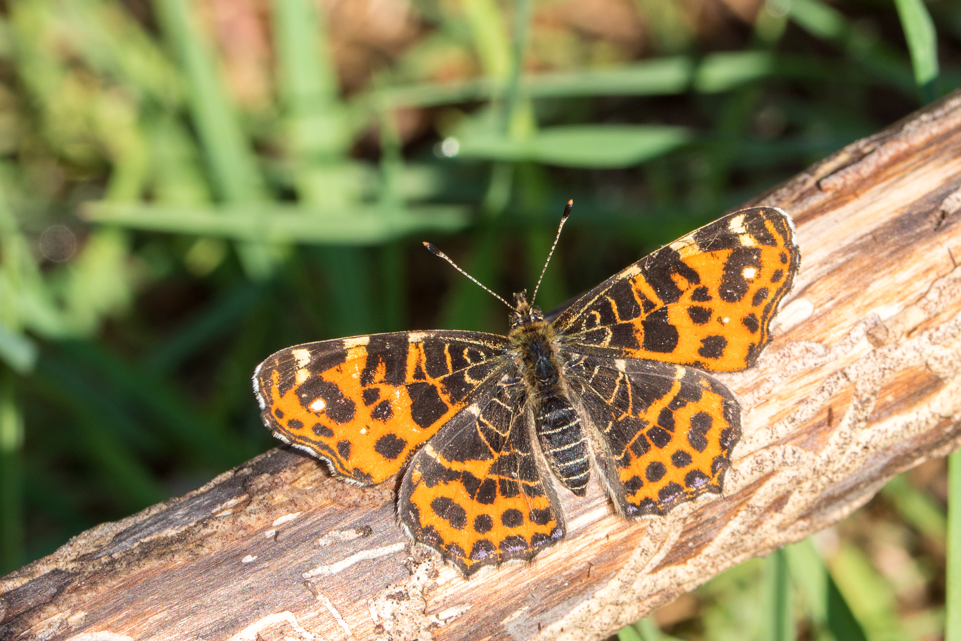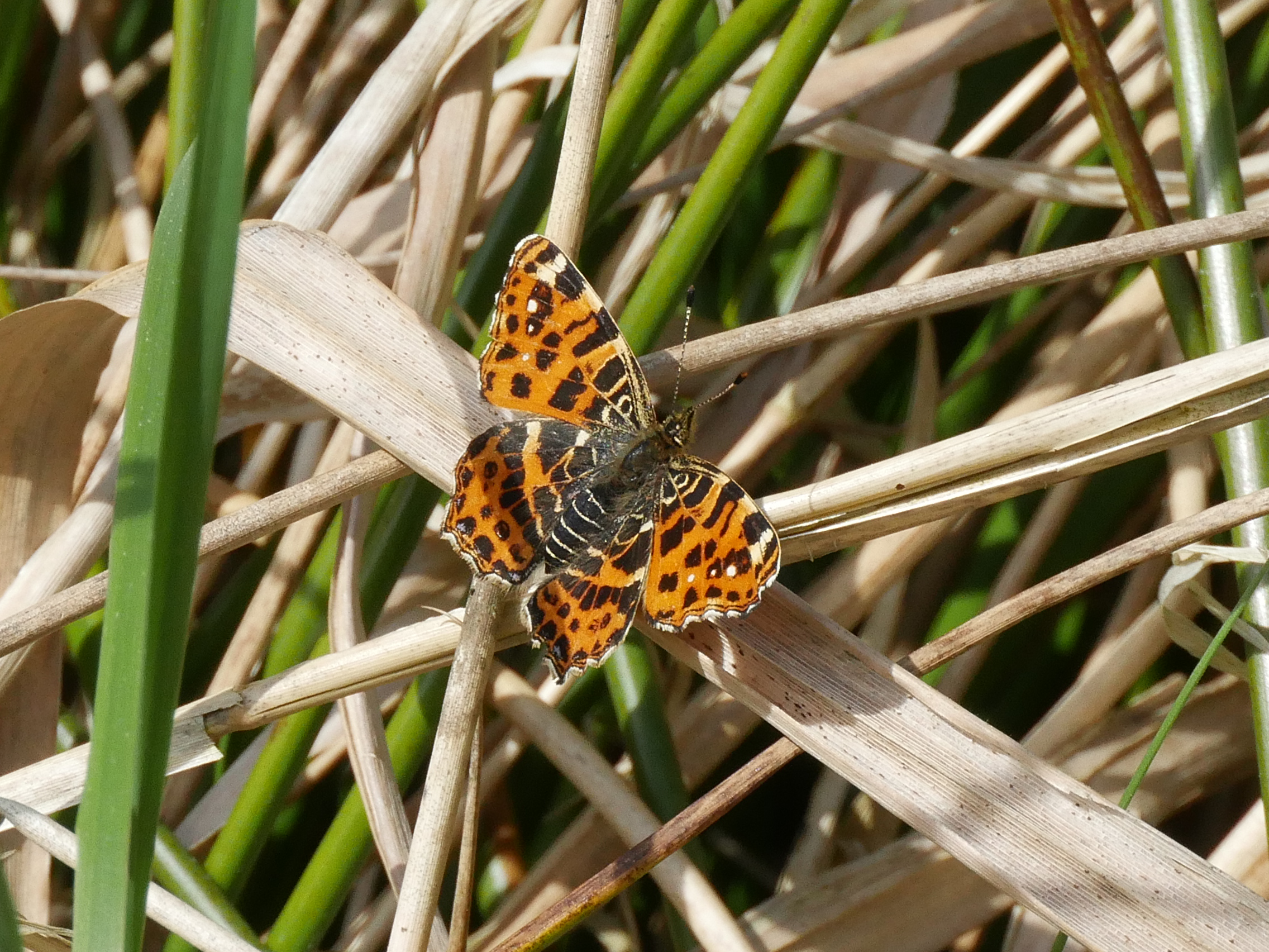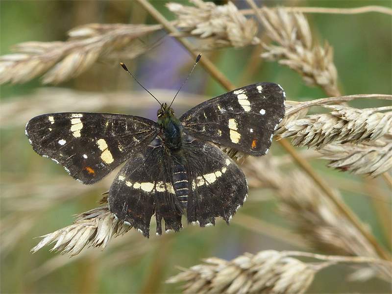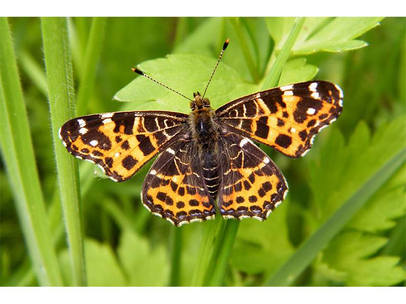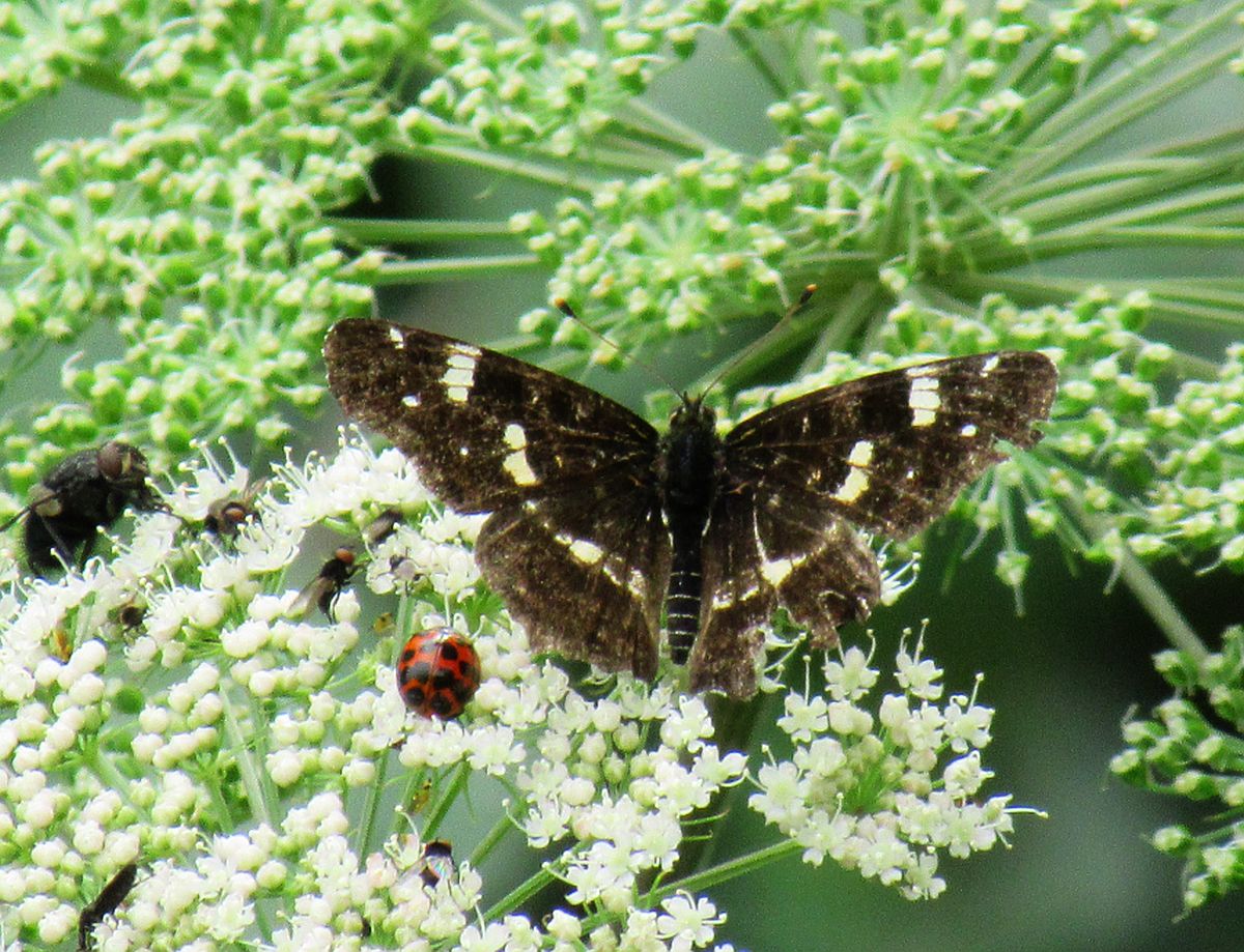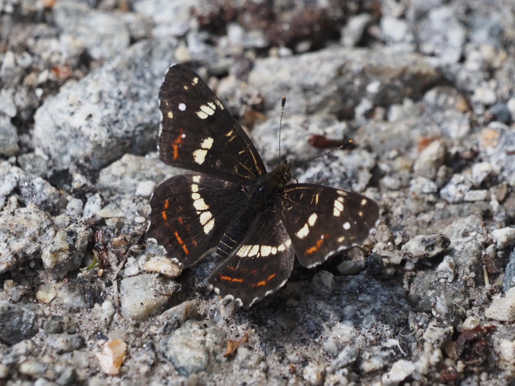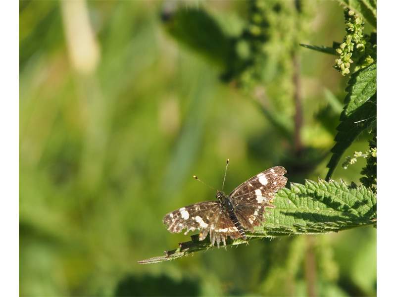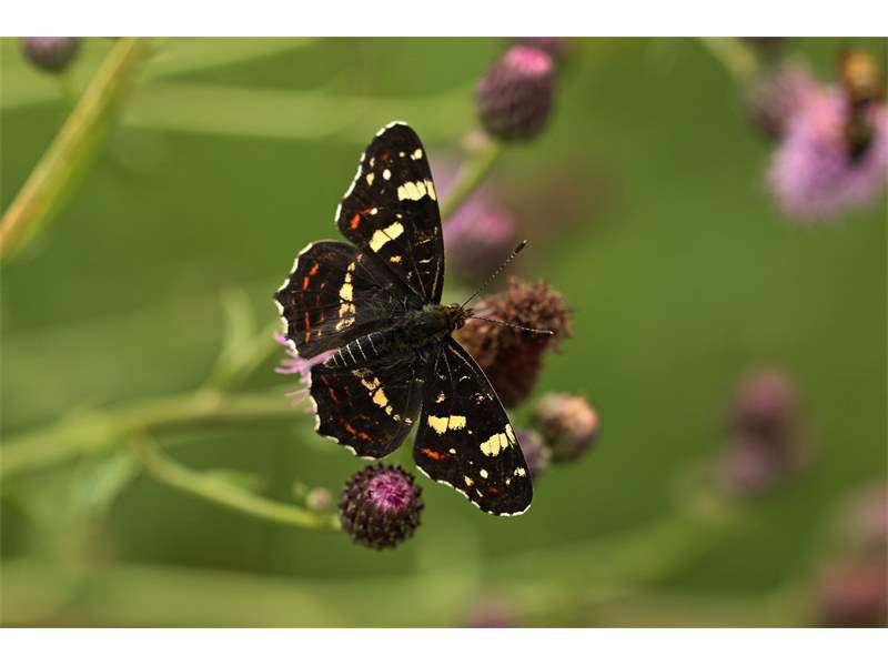 Landkärtchen, Sommergeneration der Schmetterlingsart auf Nektarspender Doldenblüte fotografiert, Falteroberseite im Sichtfeld, Ende Juni 2022, Auwald bei 06254 Horburg-Masslau (Sachsen-Anhalt) (© Heinz Sass)( Bild vergrößern)