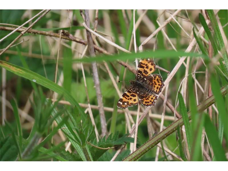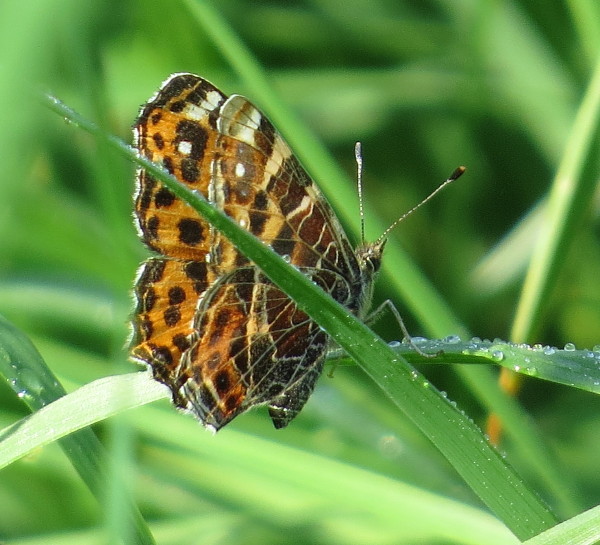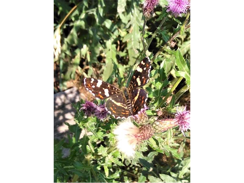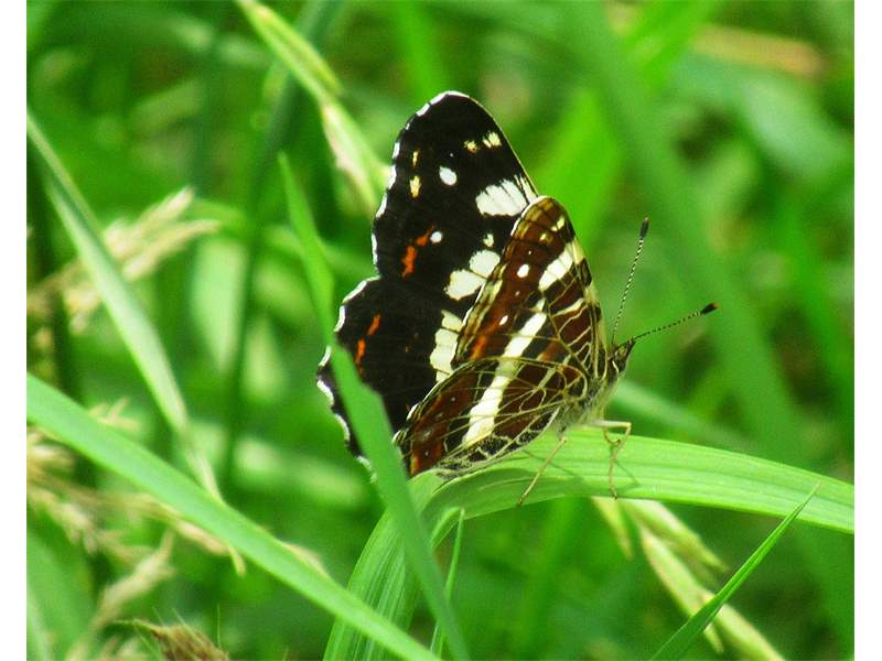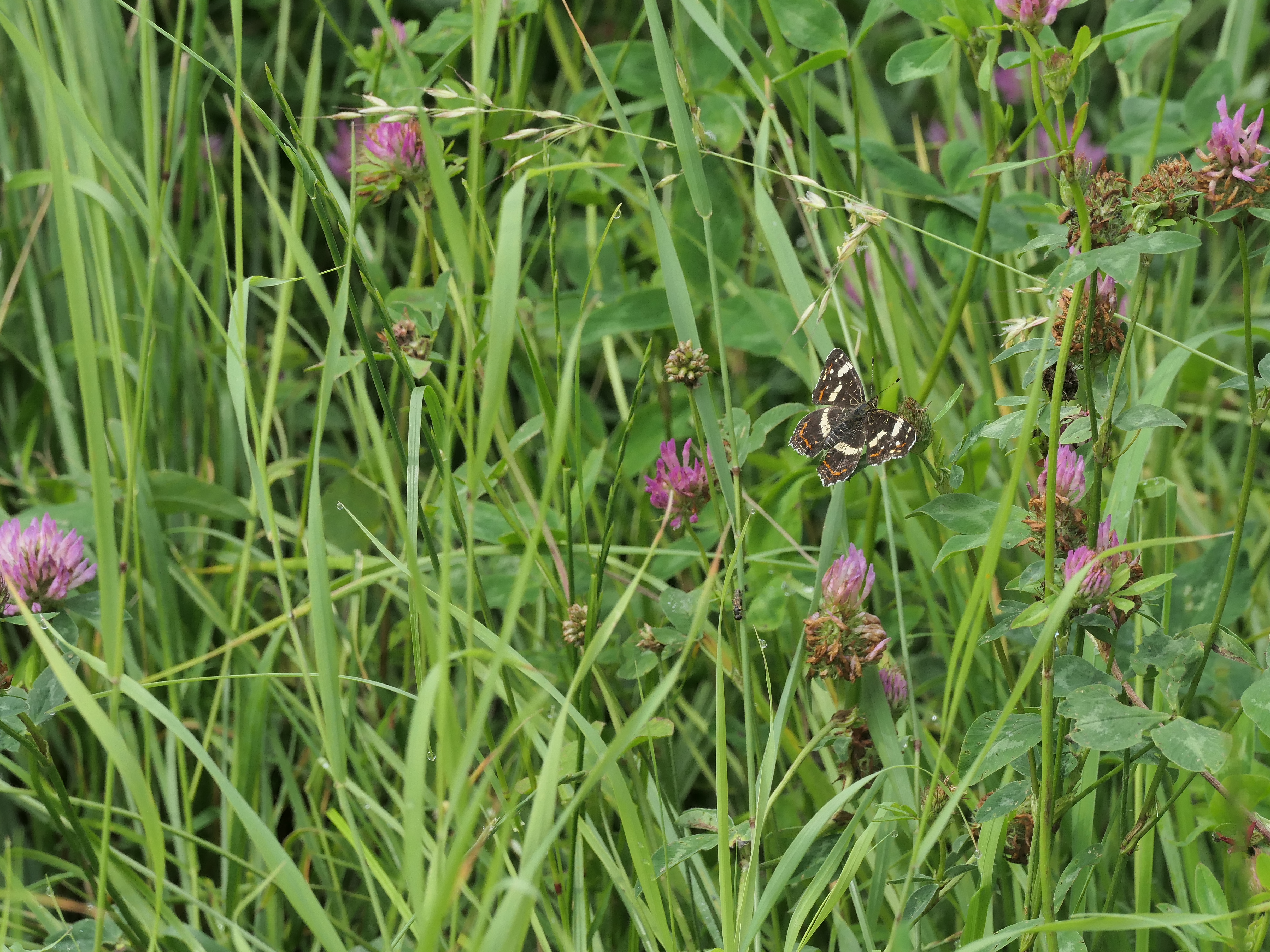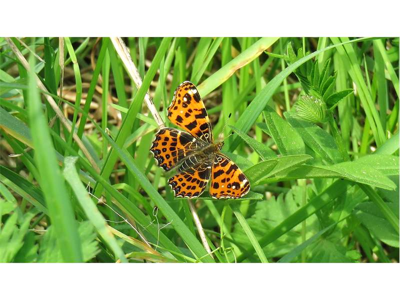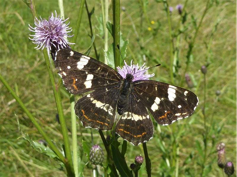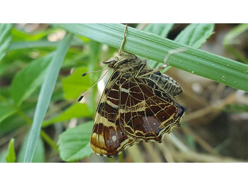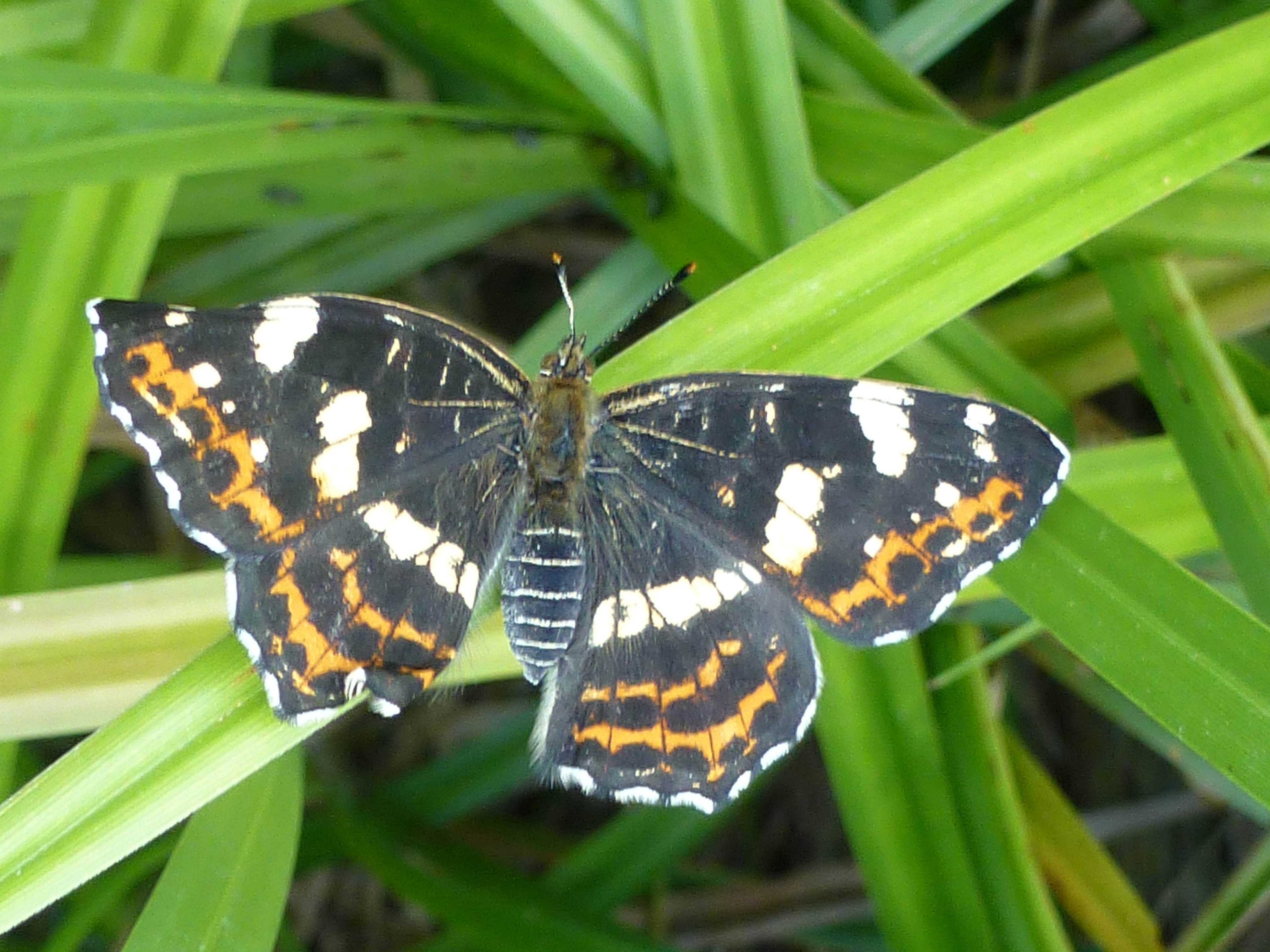 Landkärtchen, Sommergeneration der Schmetterlingsart auf Nektarspender Doldenblüte fotografiert, Falteroberseite im Sichtfeld, Ende Juni 2022, Auwald bei 06254 Horburg-Masslau (Sachsen-Anhalt) (© Heinz Sass)( Bild vergrößern)