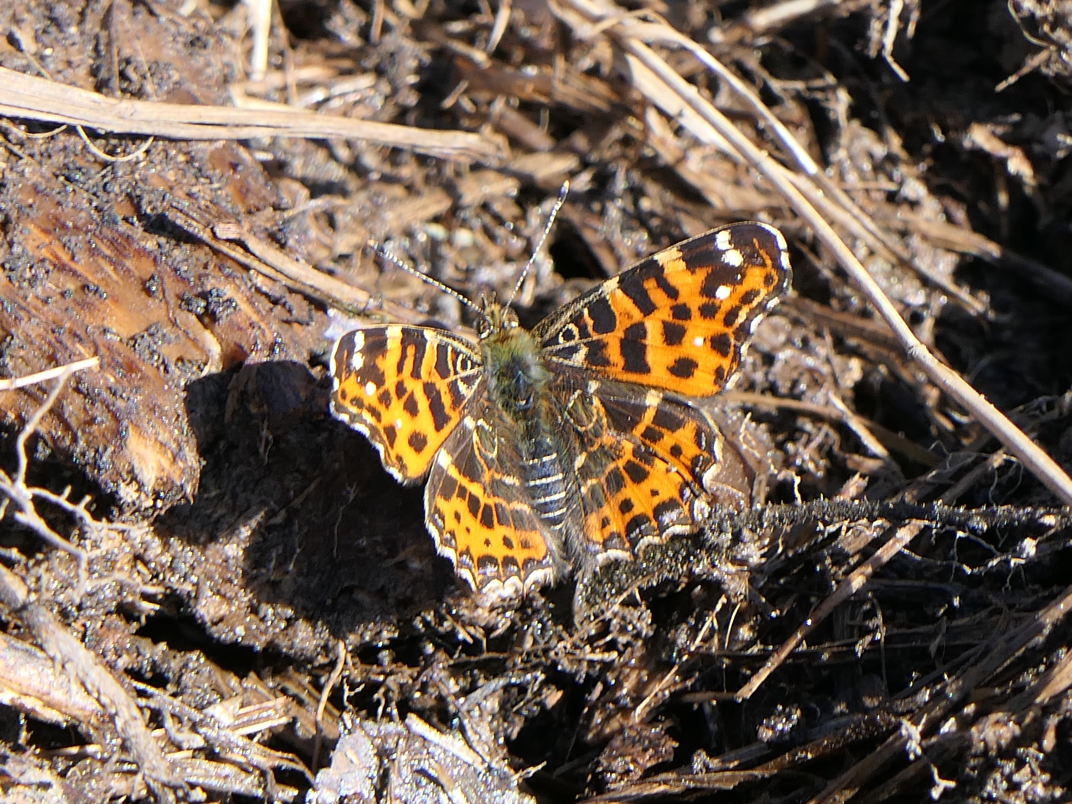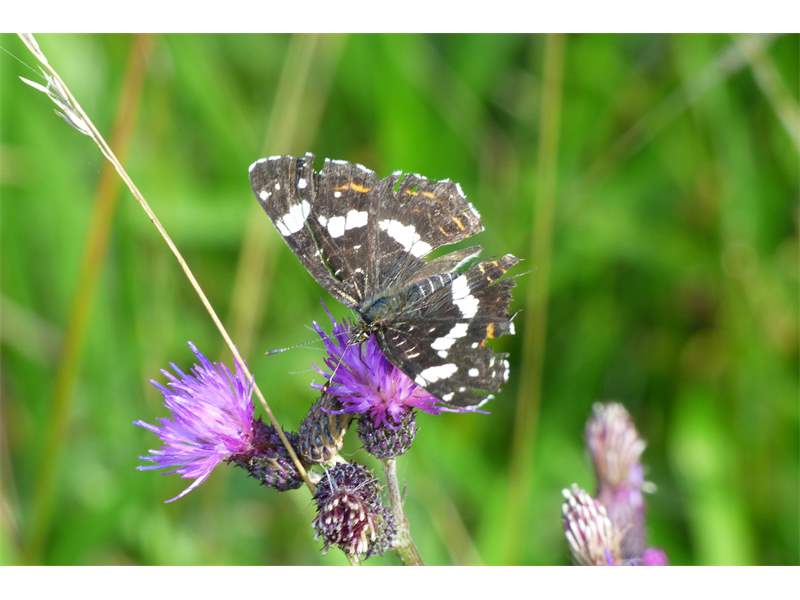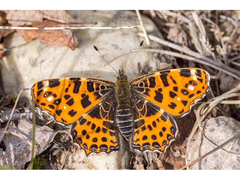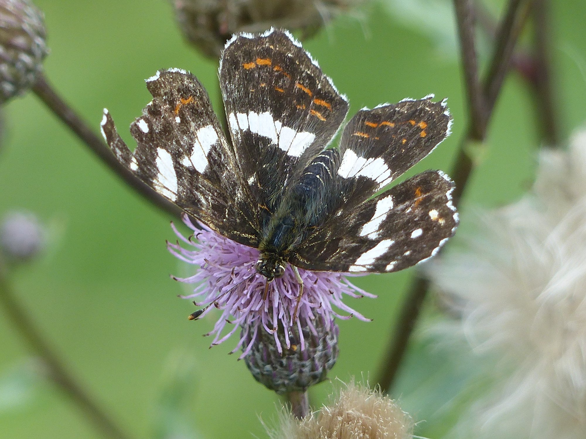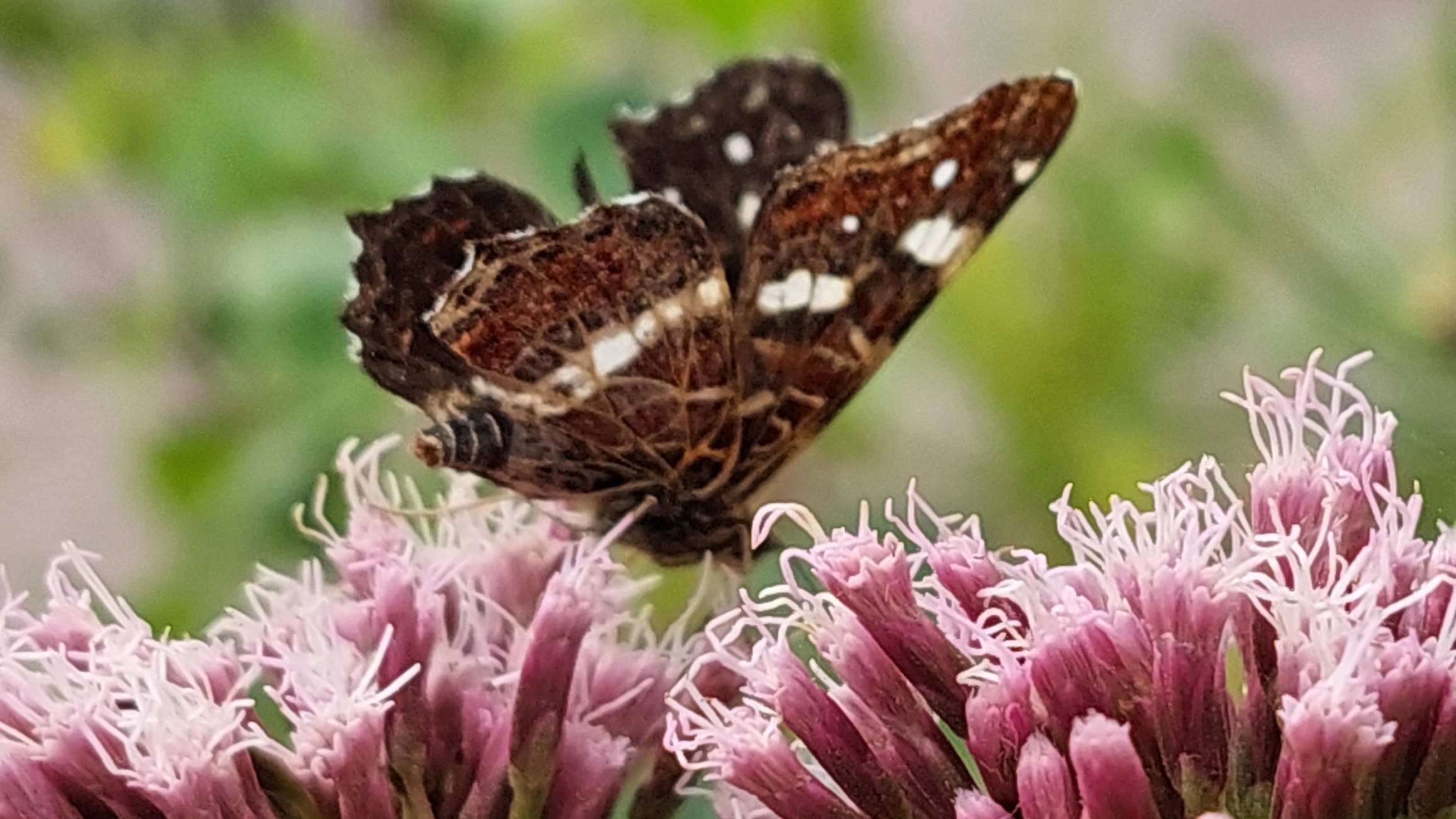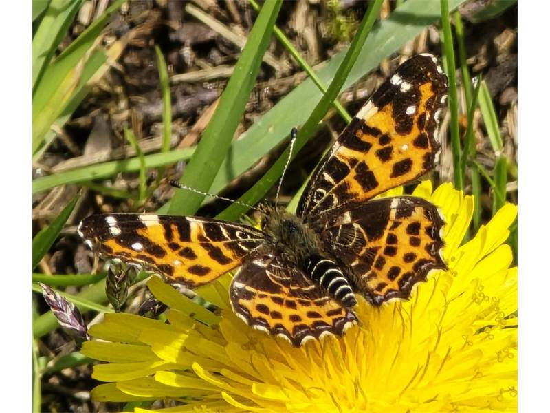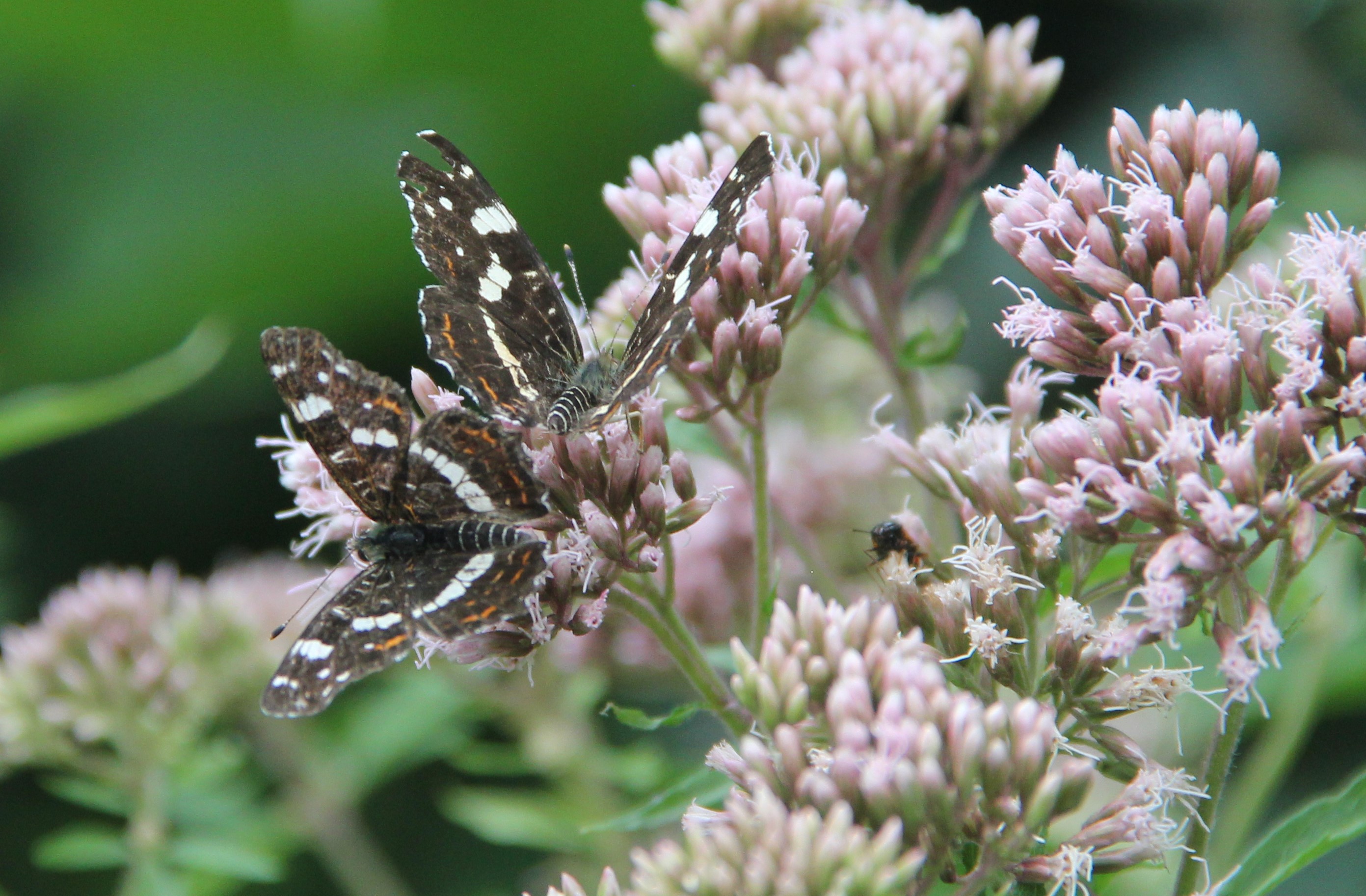 Landkärtchen, Sommergeneration der Schmetterlingsart auf Nektarspender Doldenblüte fotografiert, Falteroberseite im Sichtfeld, Ende Juni 2022, Auwald bei 06254 Horburg-Masslau (Sachsen-Anhalt) (© Heinz Sass)( Bild vergrößern)
