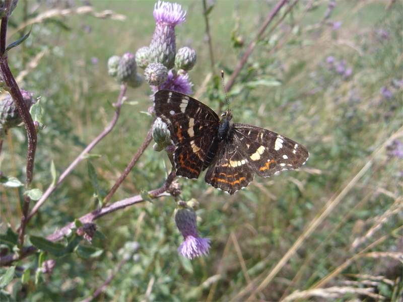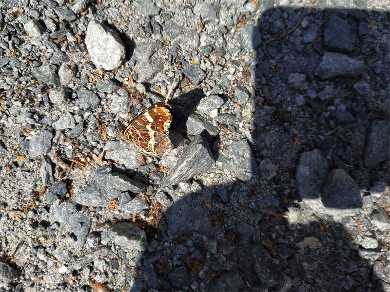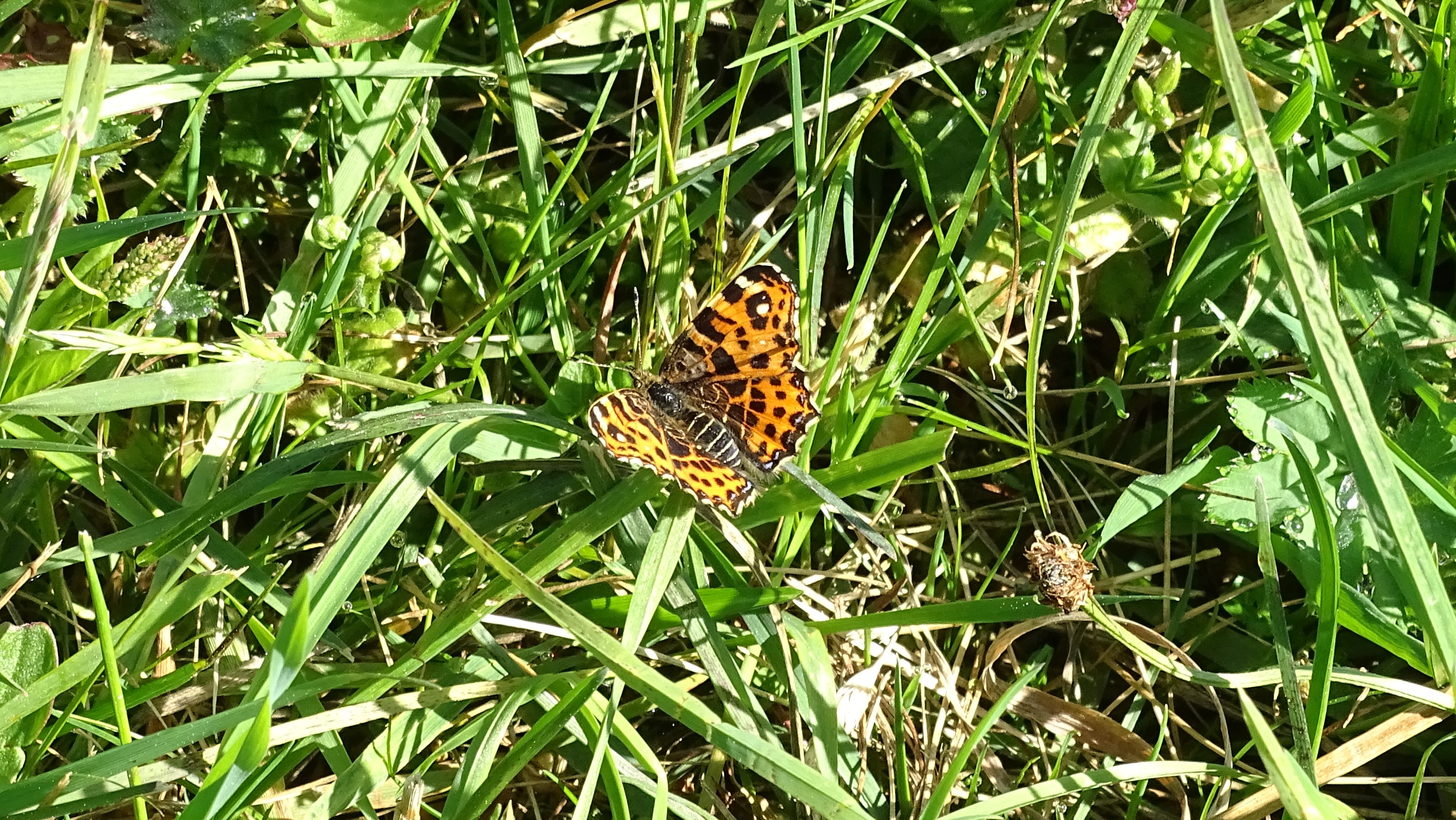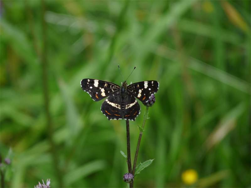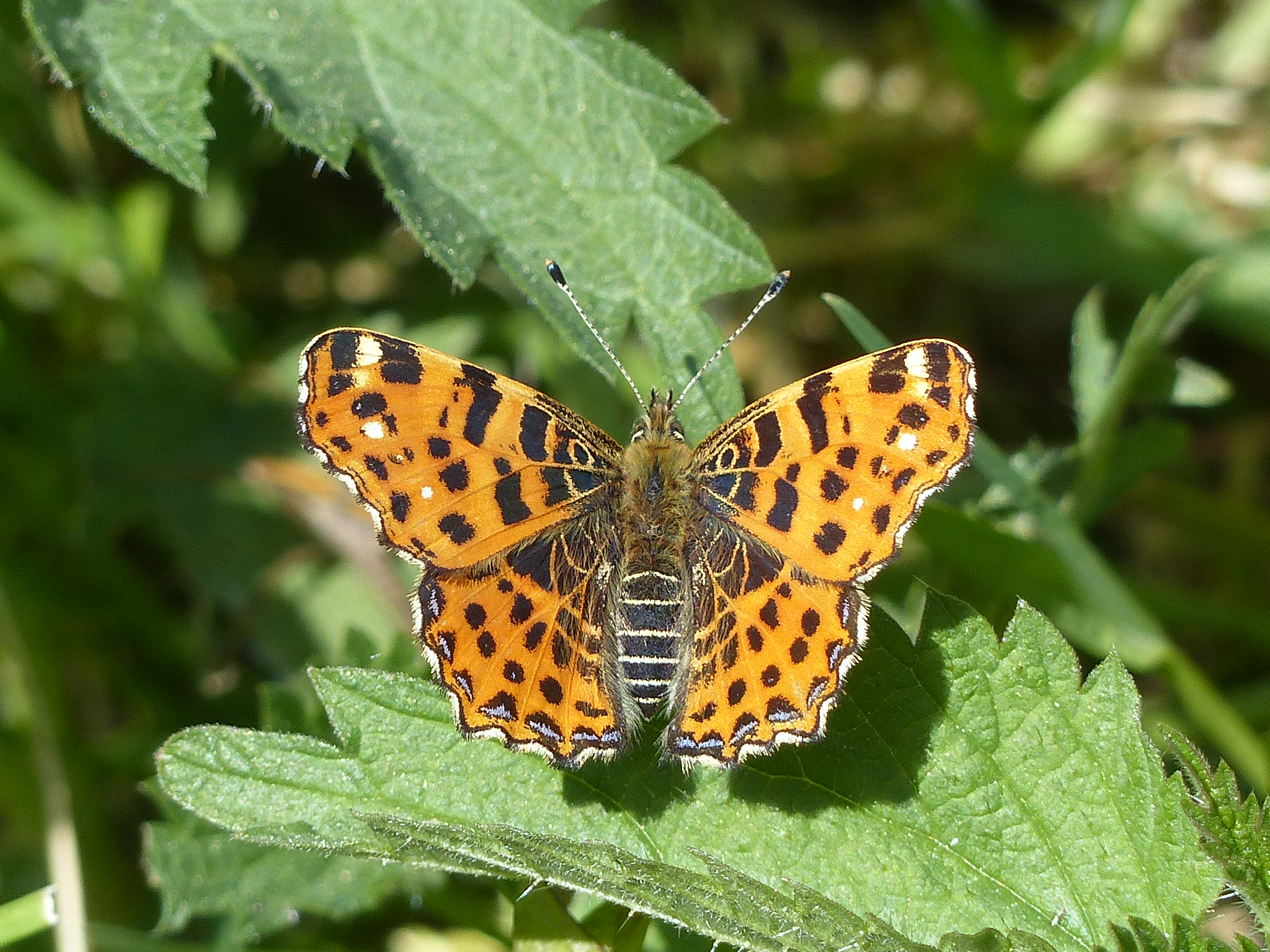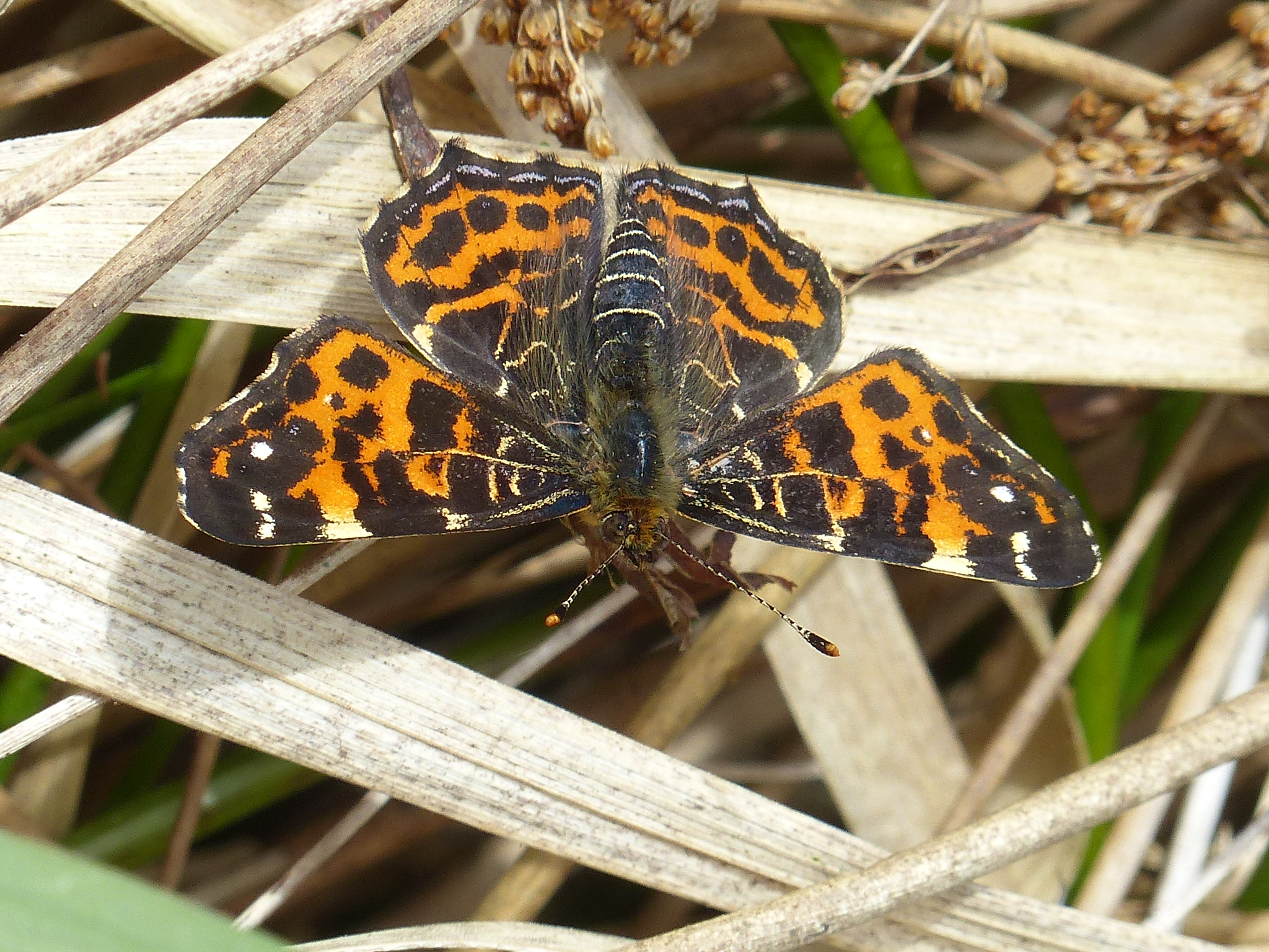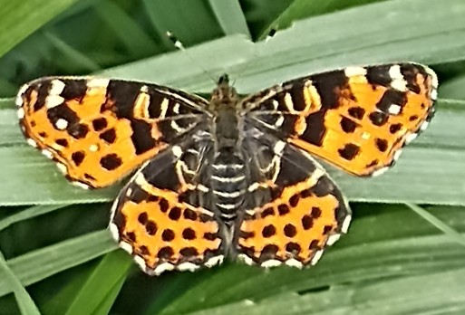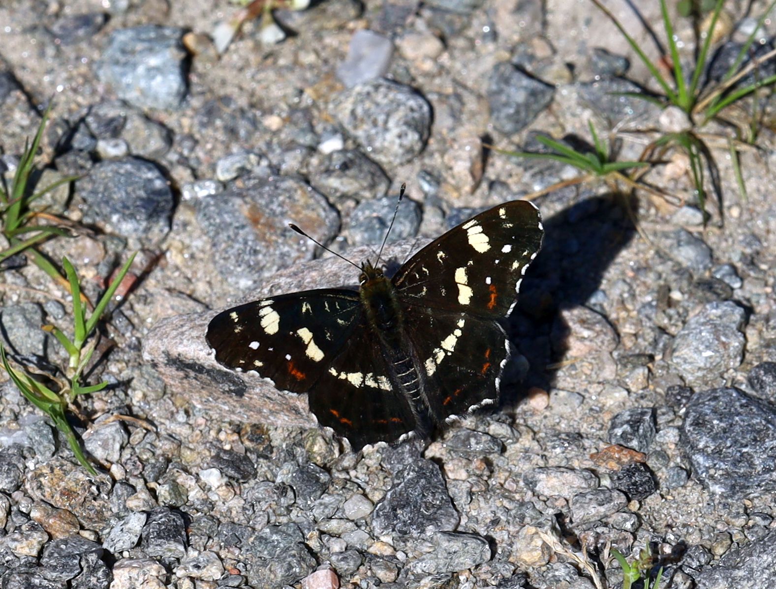 Landkärtchen, Sommergeneration der Schmetterlingsart auf Nektarspender Doldenblüte fotografiert, Falteroberseite im Sichtfeld, Ende Juni 2022, Auwald bei 06254 Horburg-Masslau (Sachsen-Anhalt) (© Heinz Sass)( Bild vergrößern)