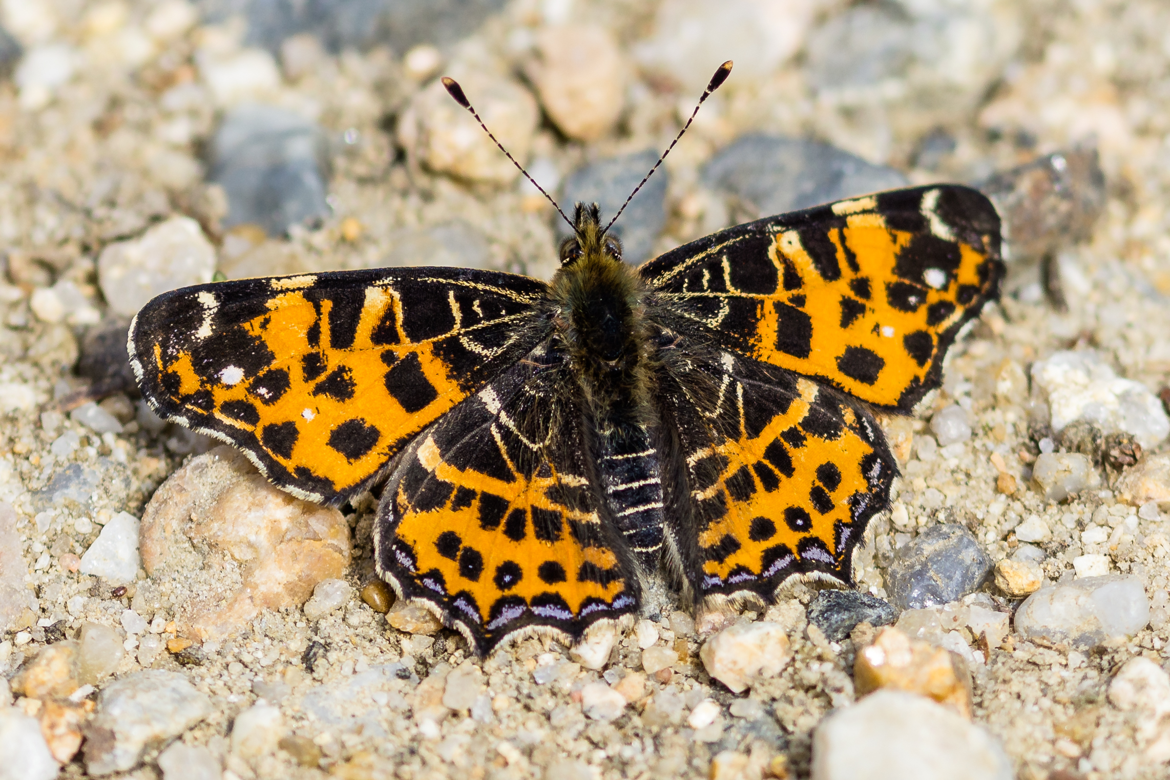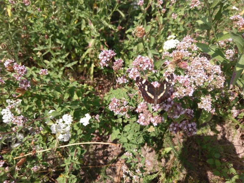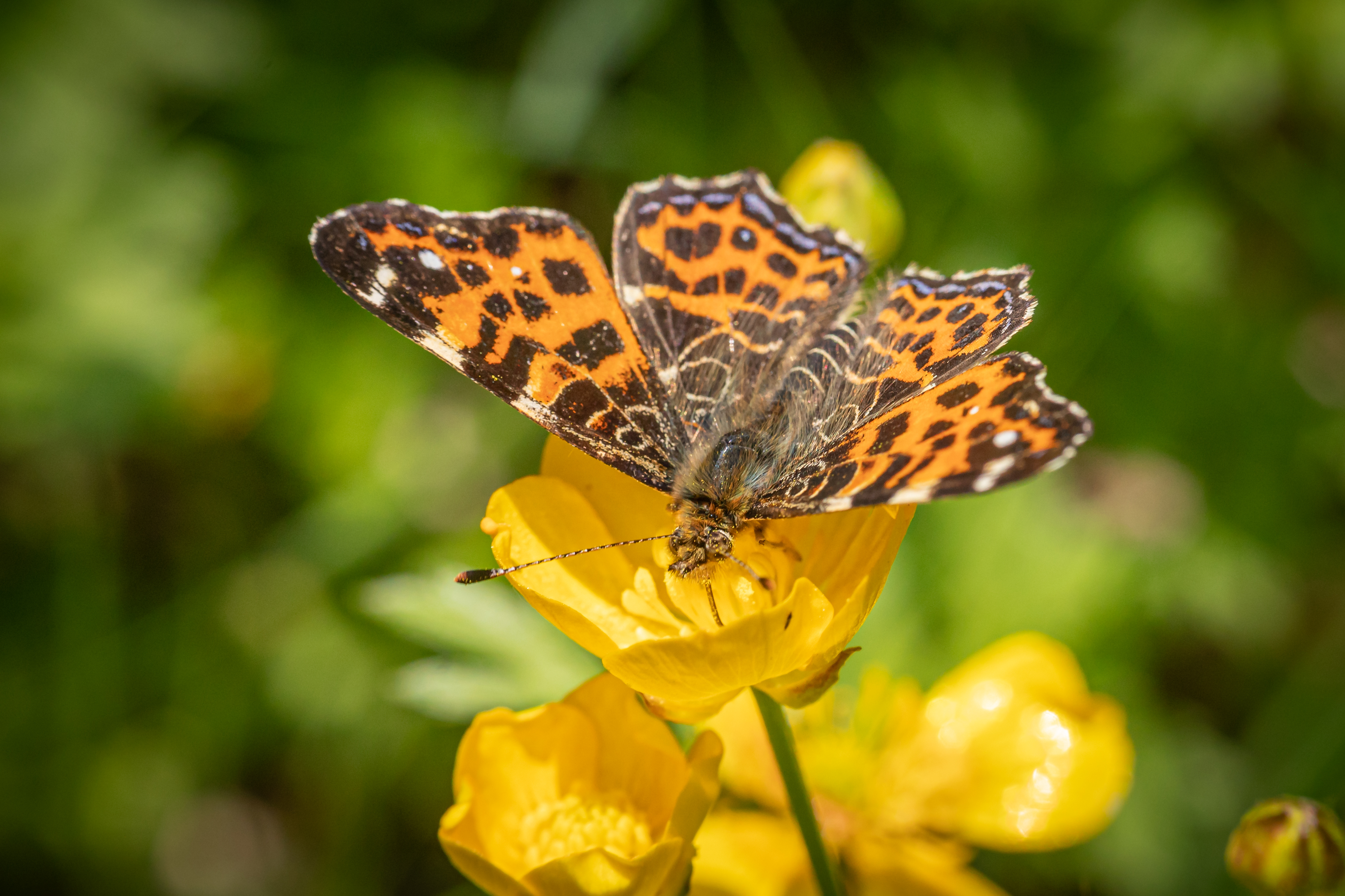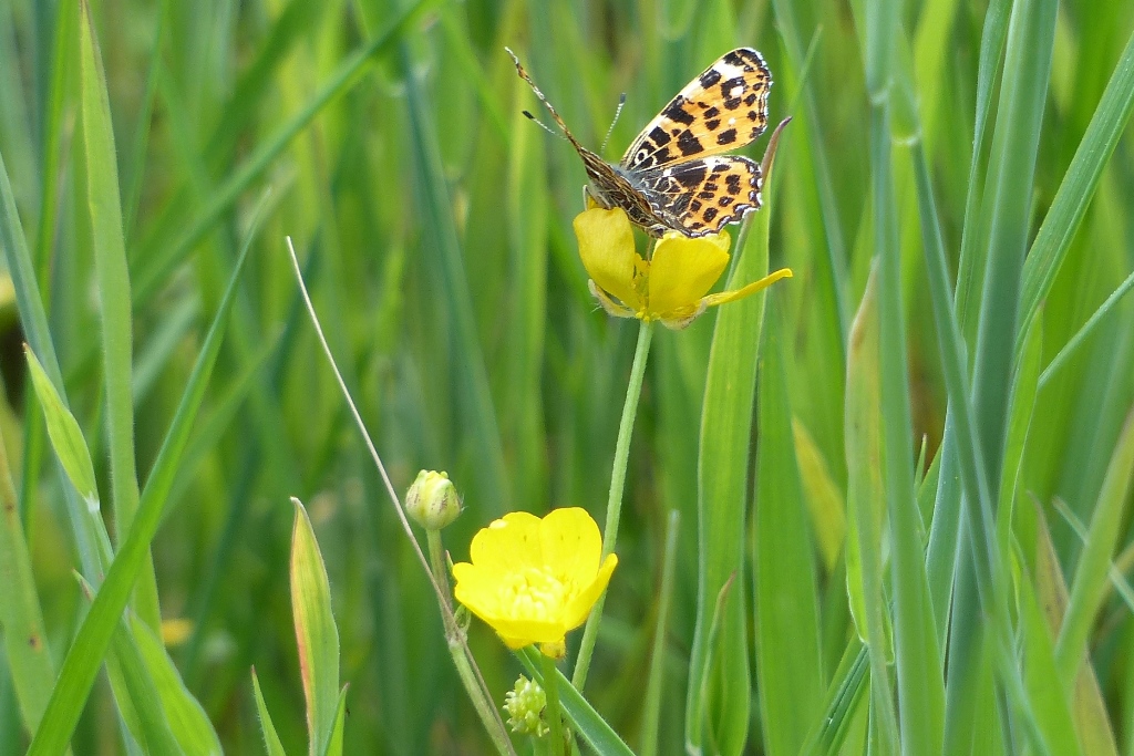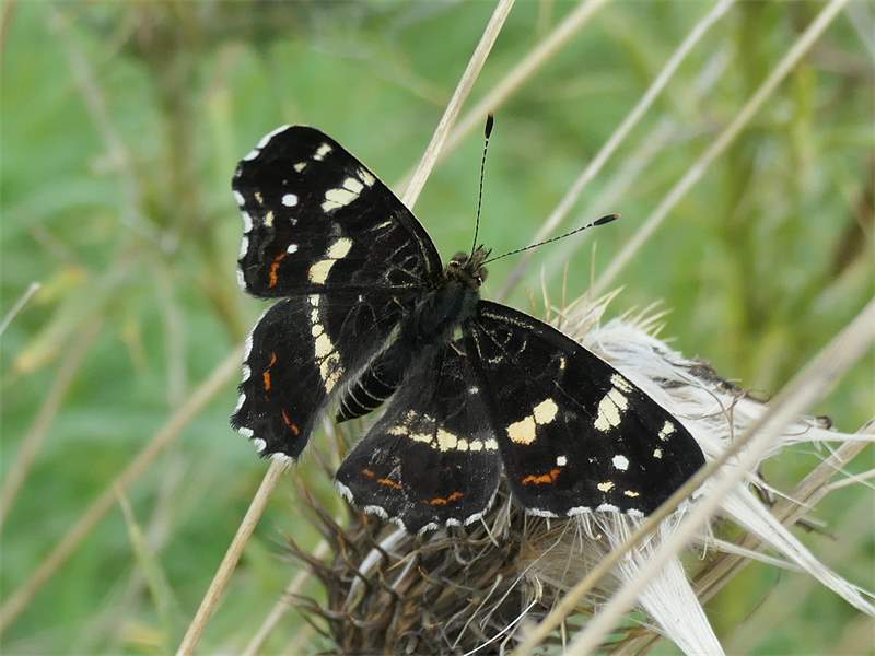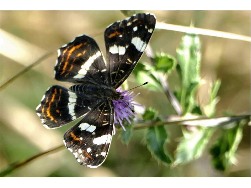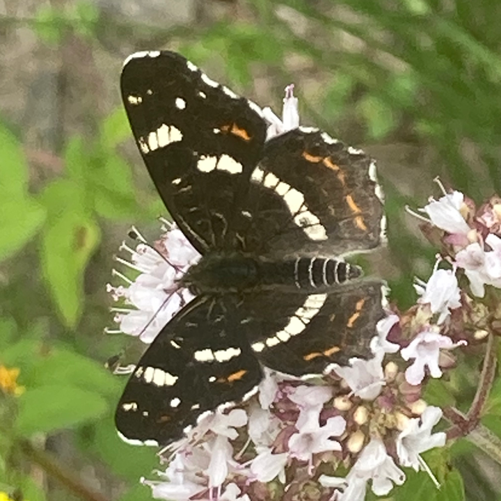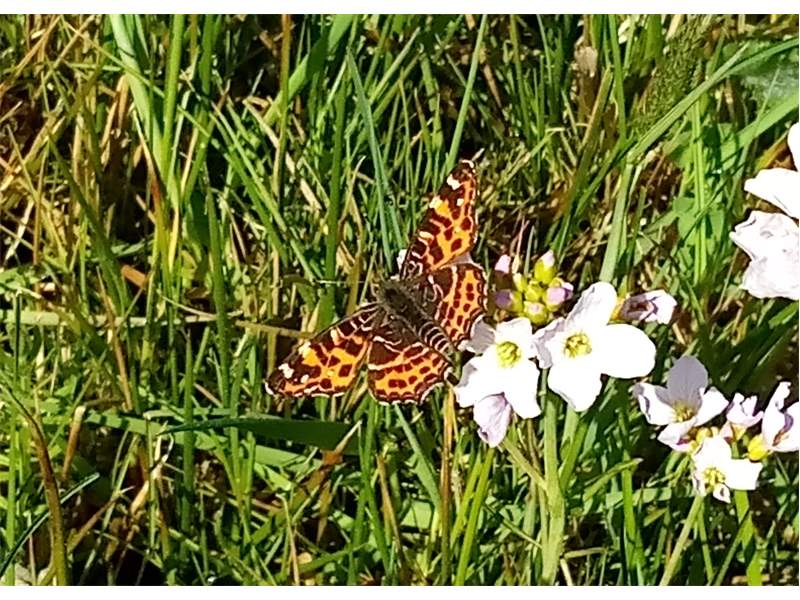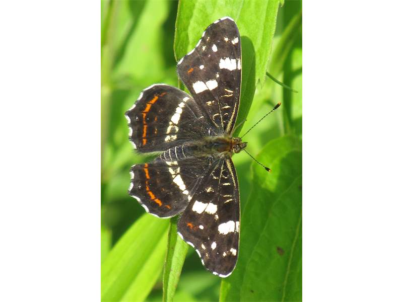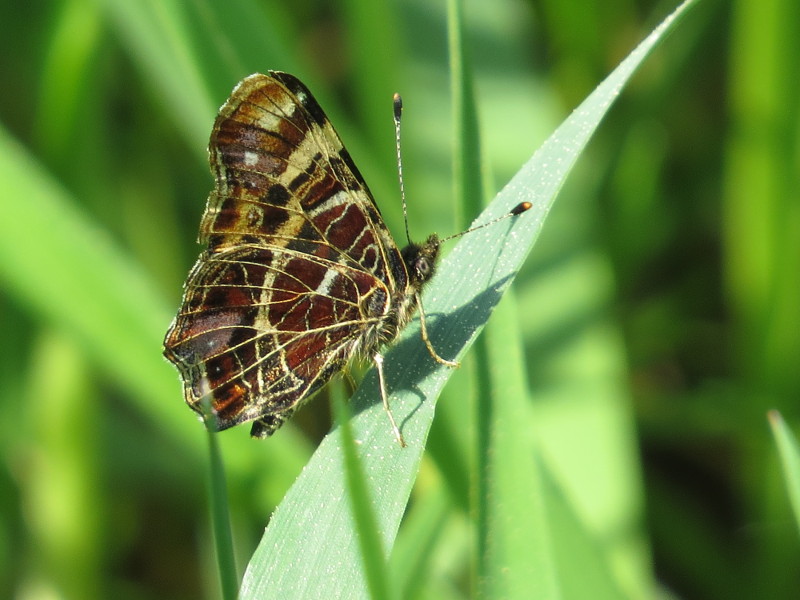 Landkärtchen, Sommergeneration der Schmetterlingsart auf Nektarspender Doldenblüte fotografiert, Falteroberseite im Sichtfeld, Ende Juni 2022, Auwald bei 06254 Horburg-Masslau (Sachsen-Anhalt) (© Heinz Sass)( Bild vergrößern)